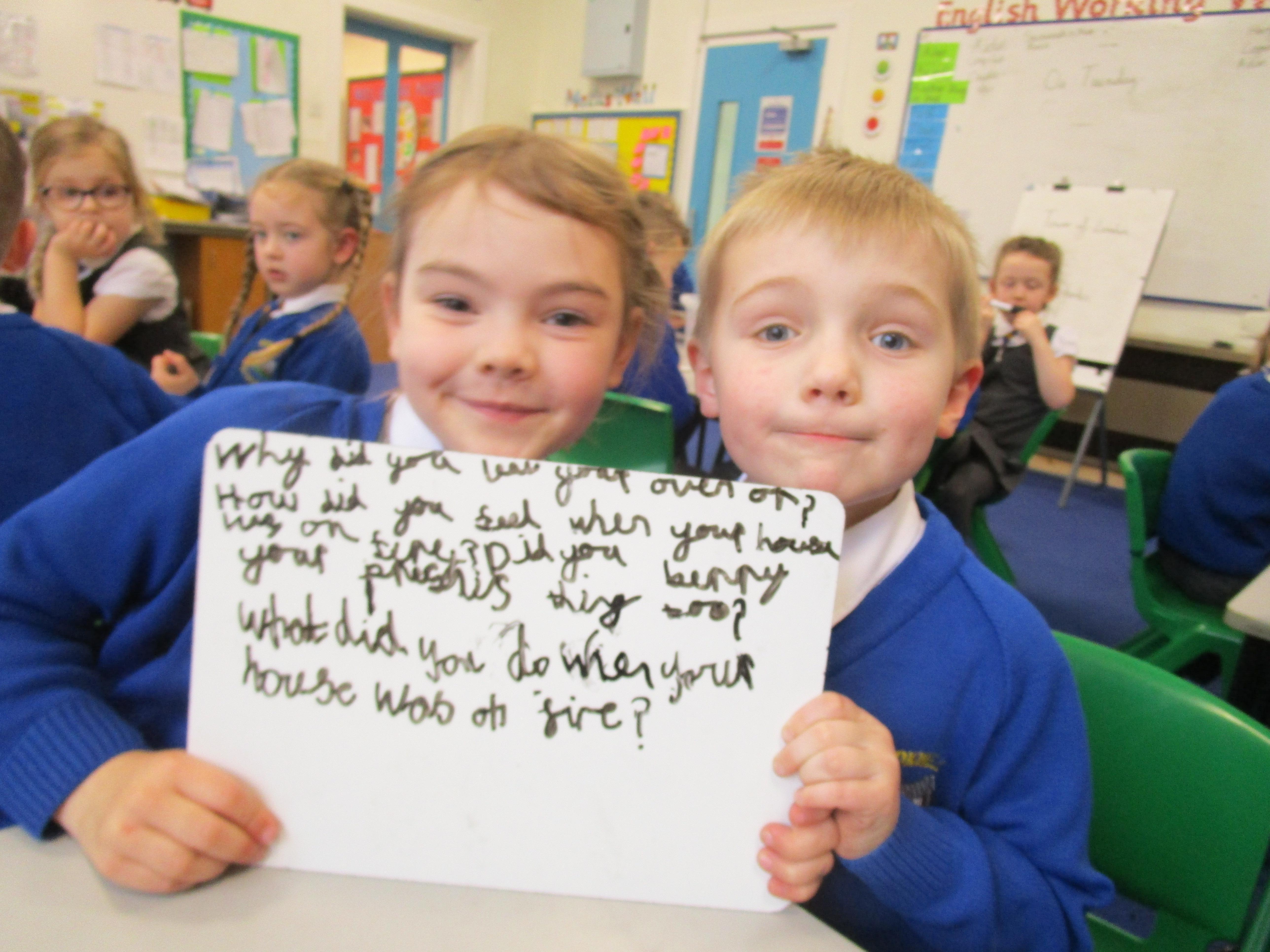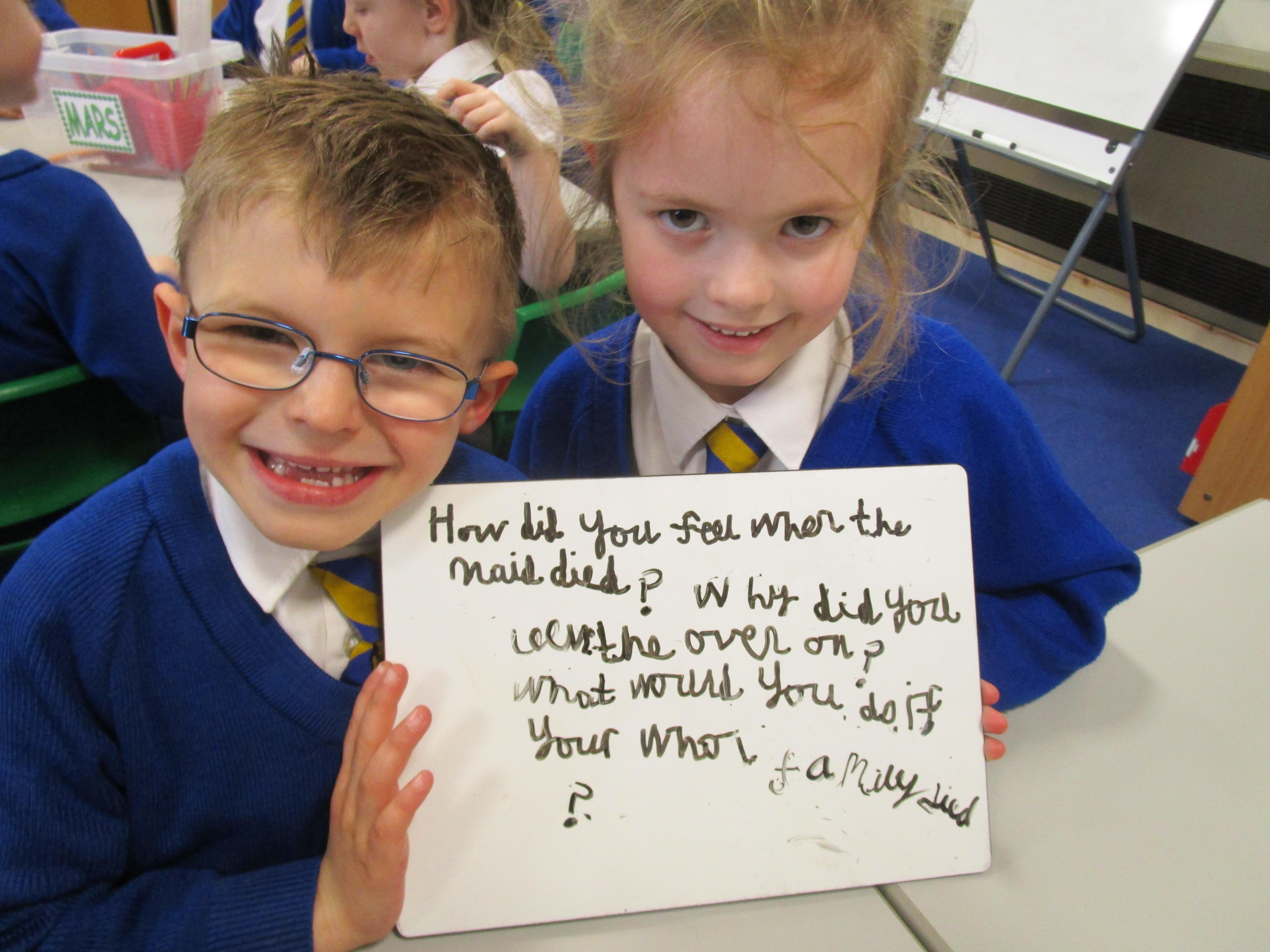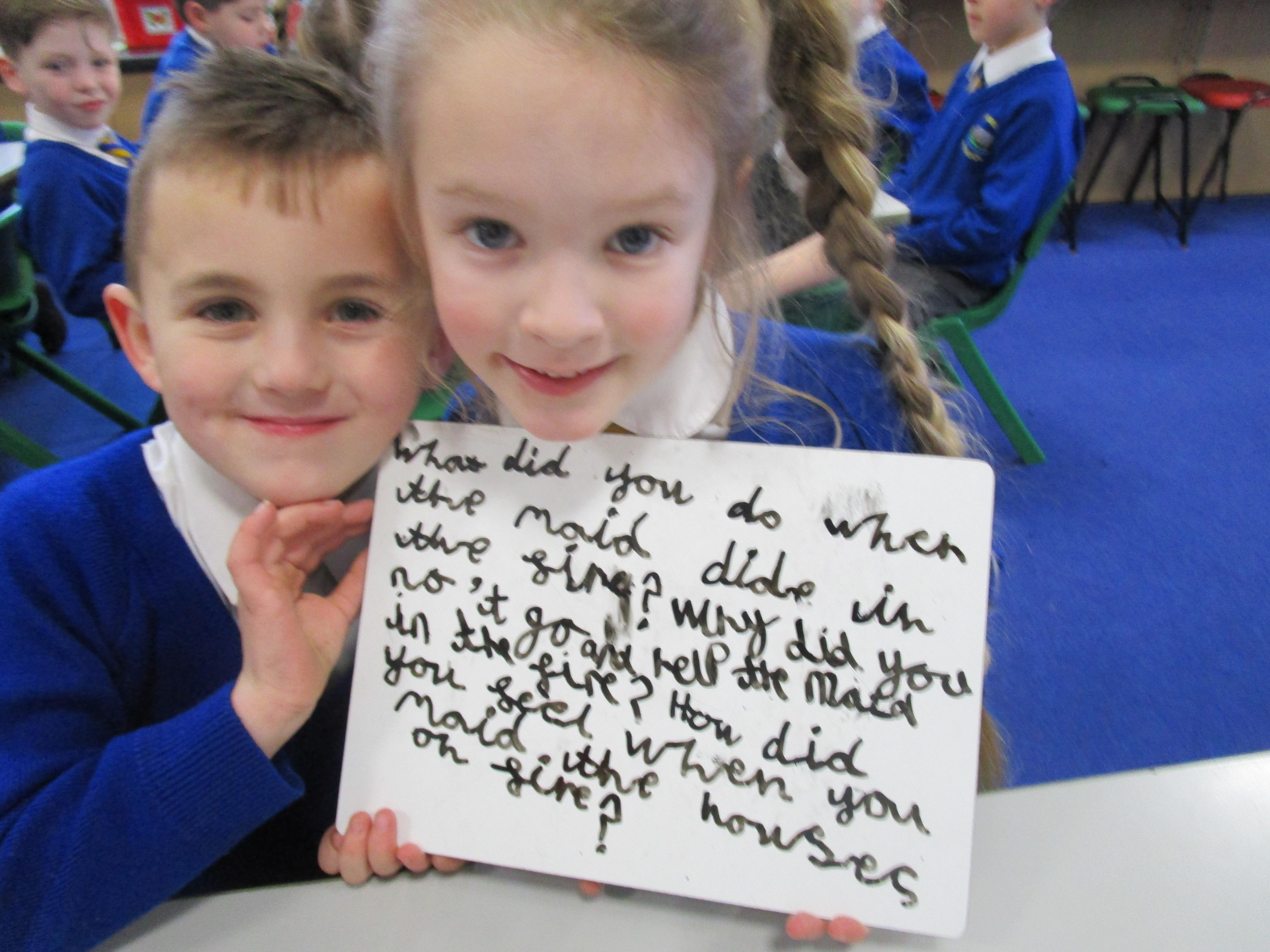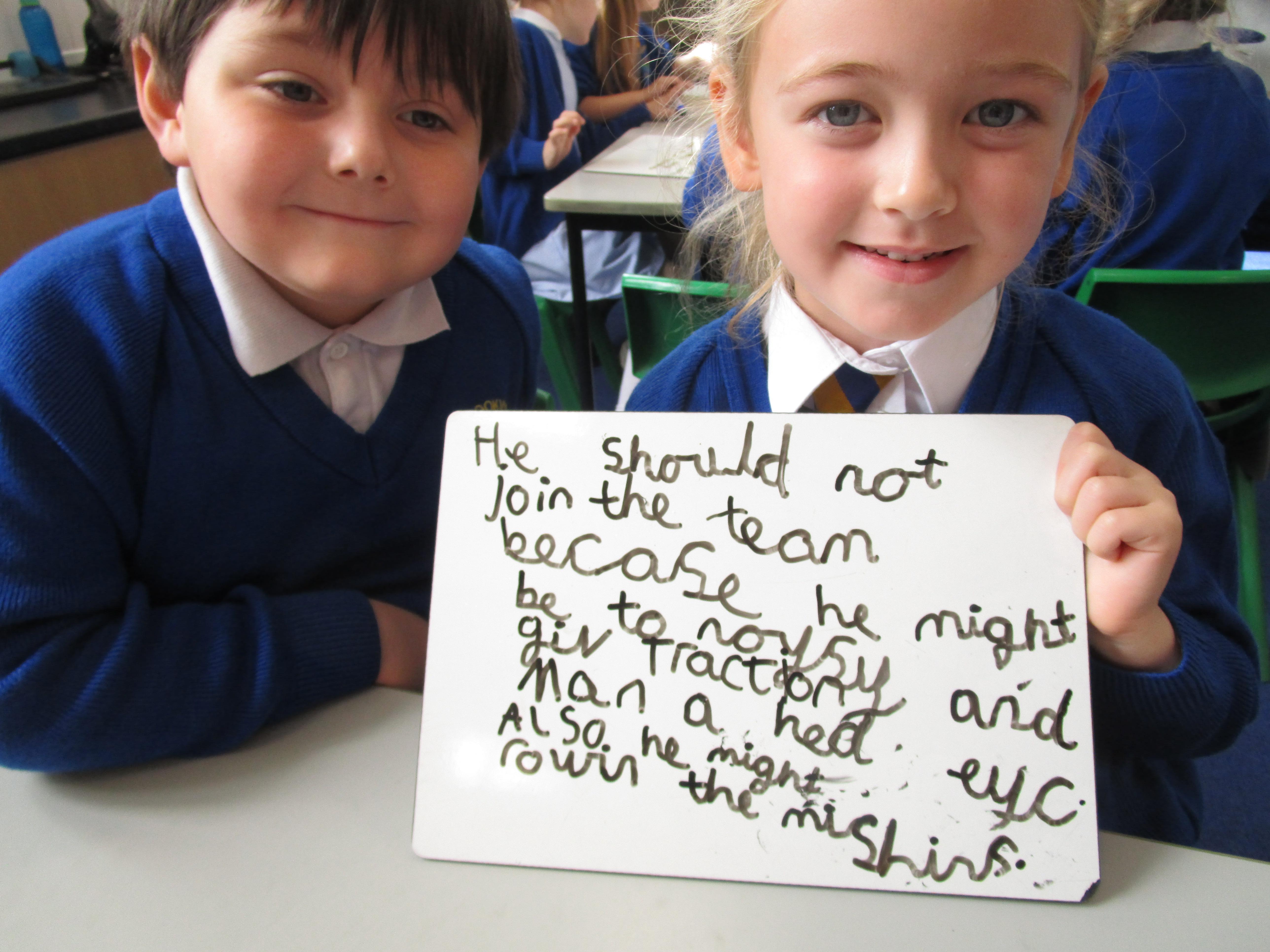 Today in class we have been reading ‘Super Daisy And the Peril of Planet Pea’. In pairs the children had to write questions that they would like to ask Super Daisy. Then some of the children sat in the hot seat and answered the questions in role as Super Daisy.
