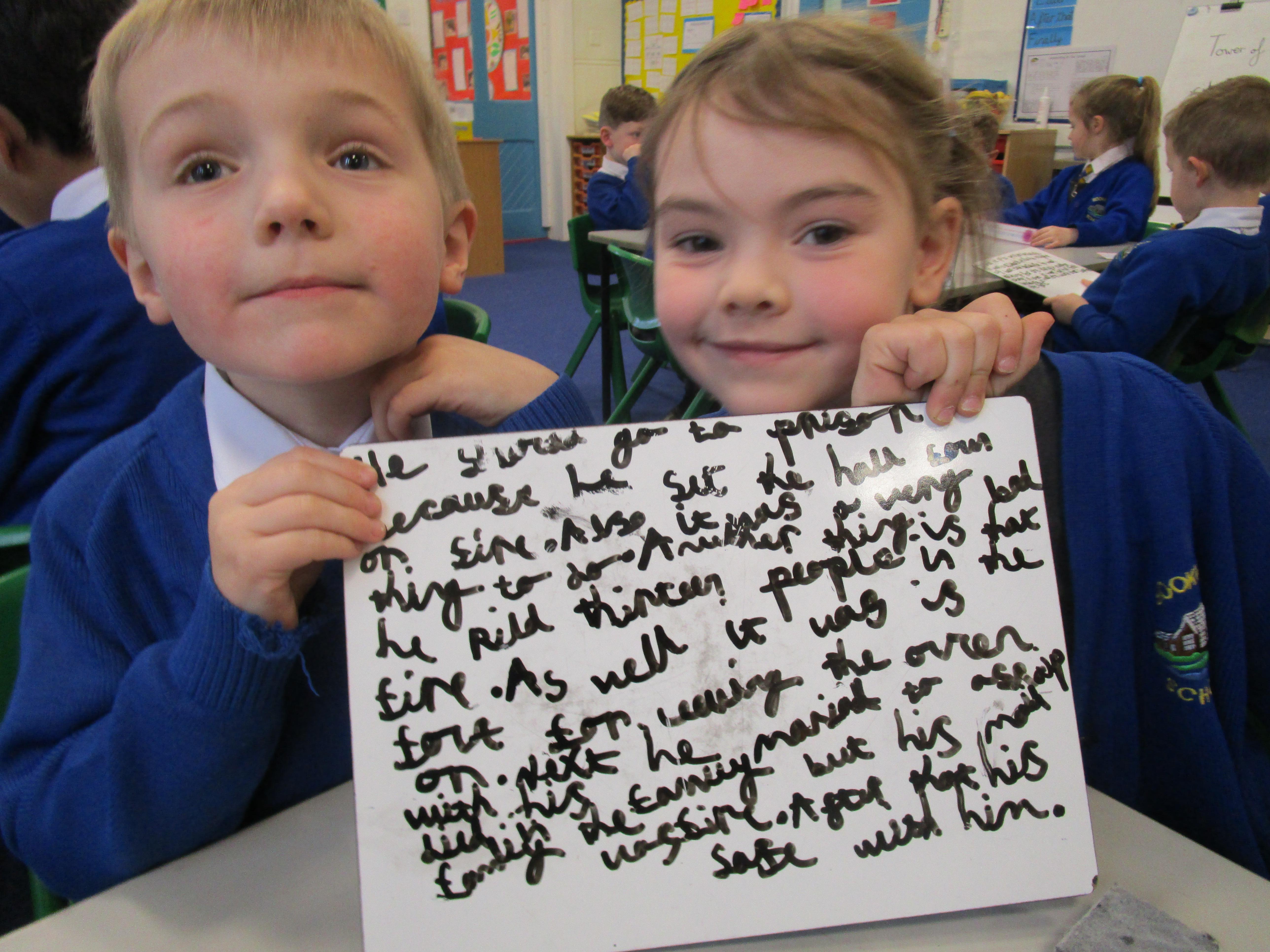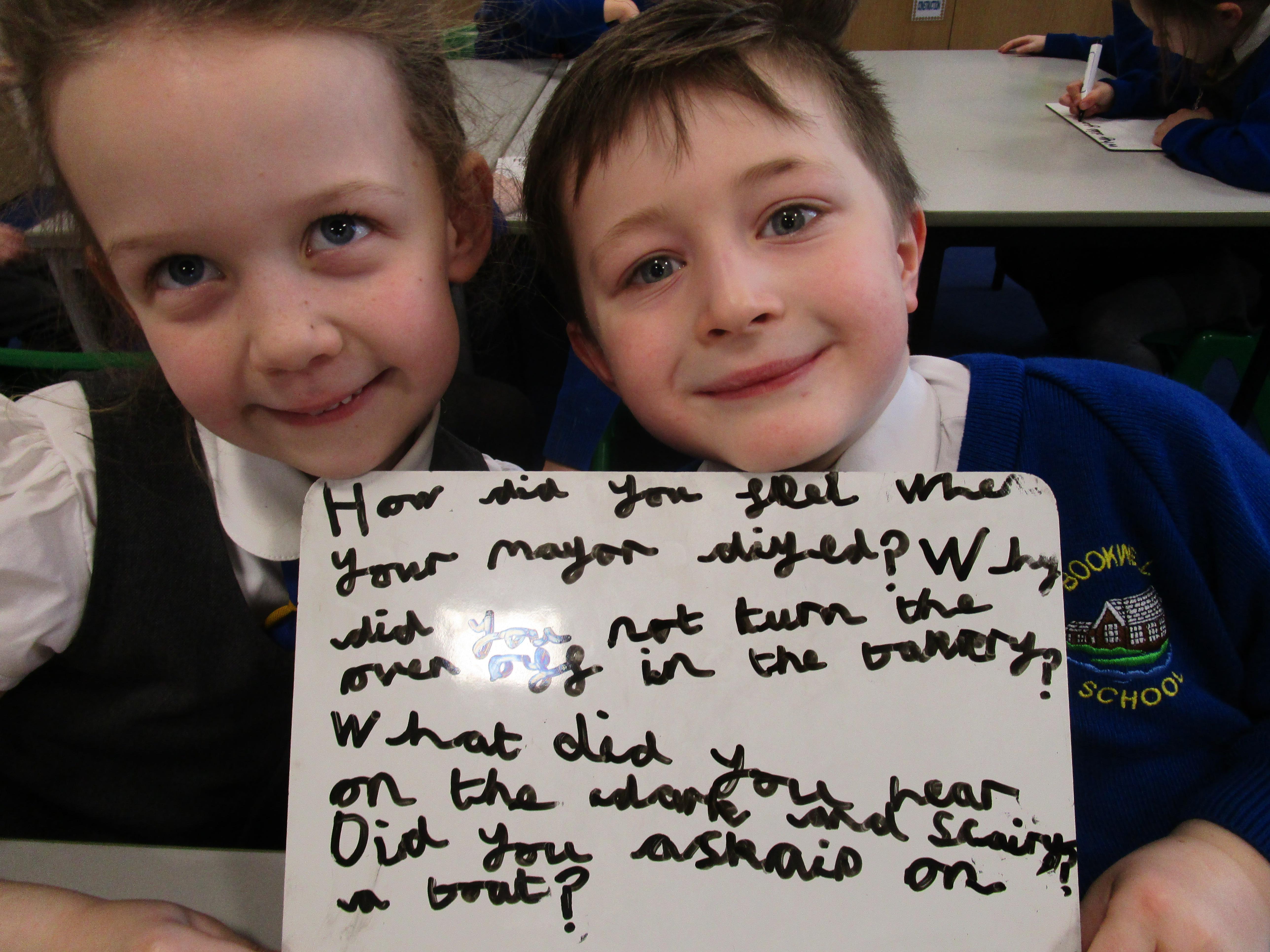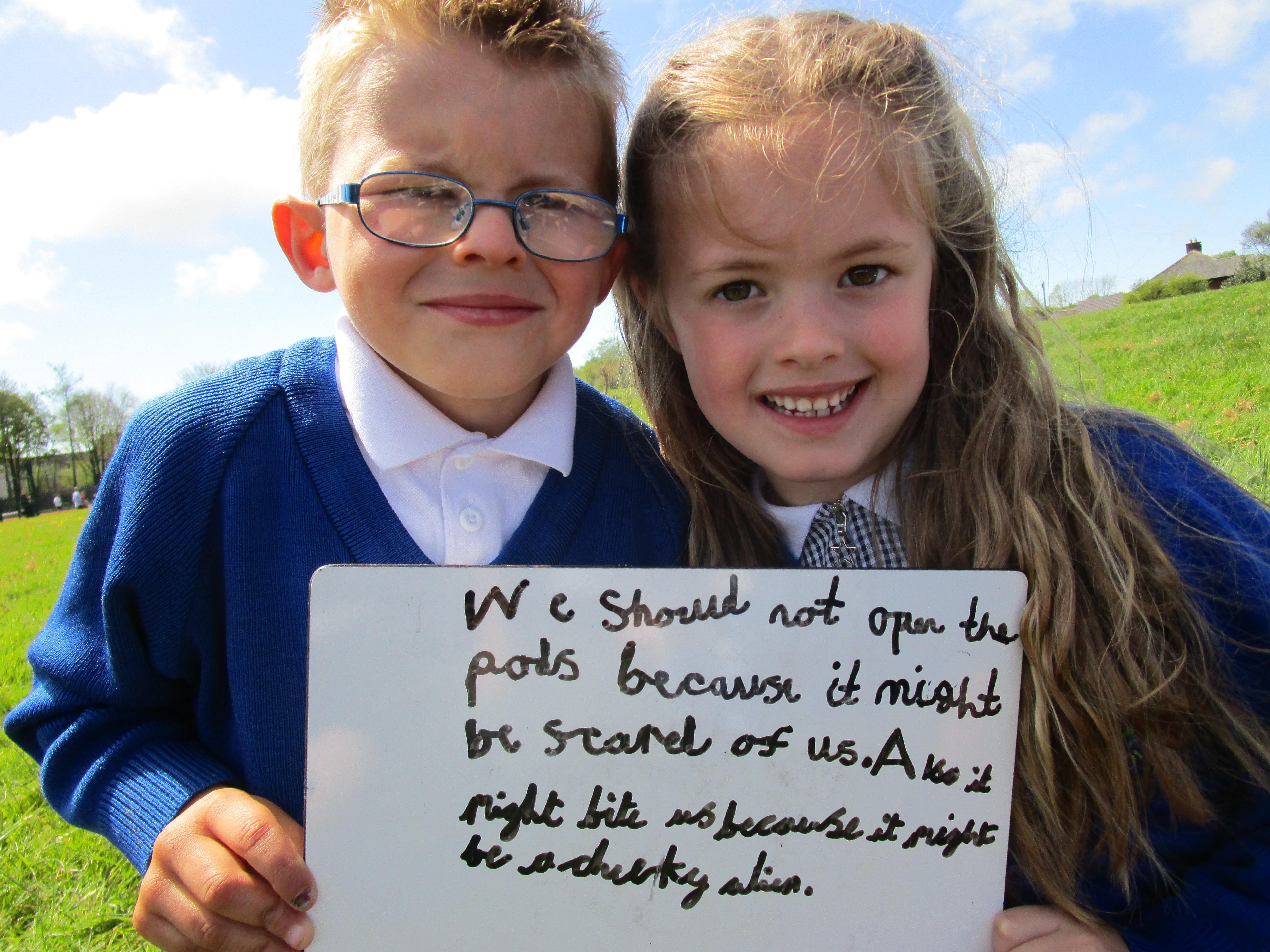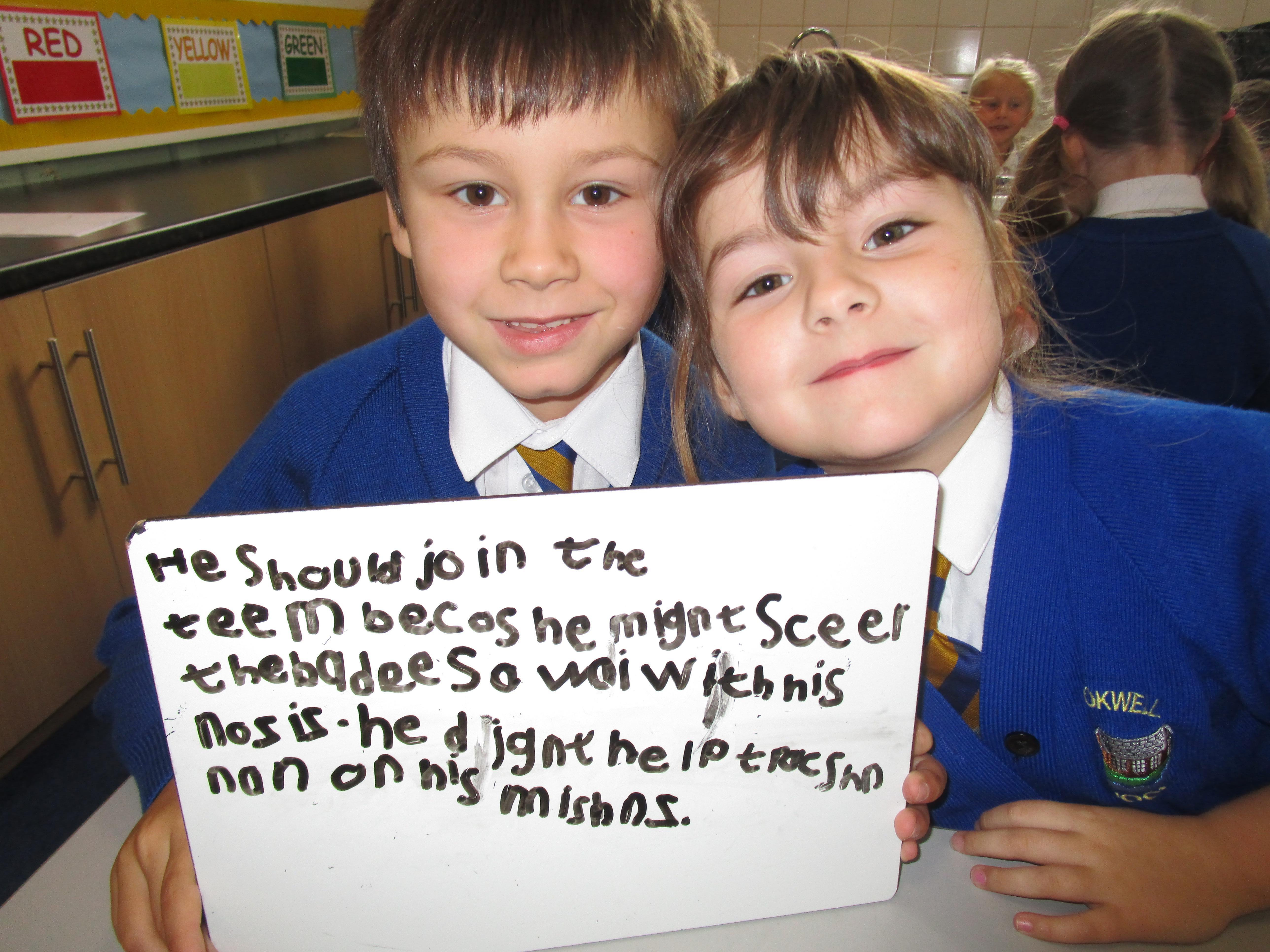 Today in class we have been reading ‘Super Daisy And the Peril of Planet Pea’. In pairs the children had to write questions that they would like to ask Super Daisy. Then some of the children sat in the hot seat and answered the questions in role as Super Daisy.