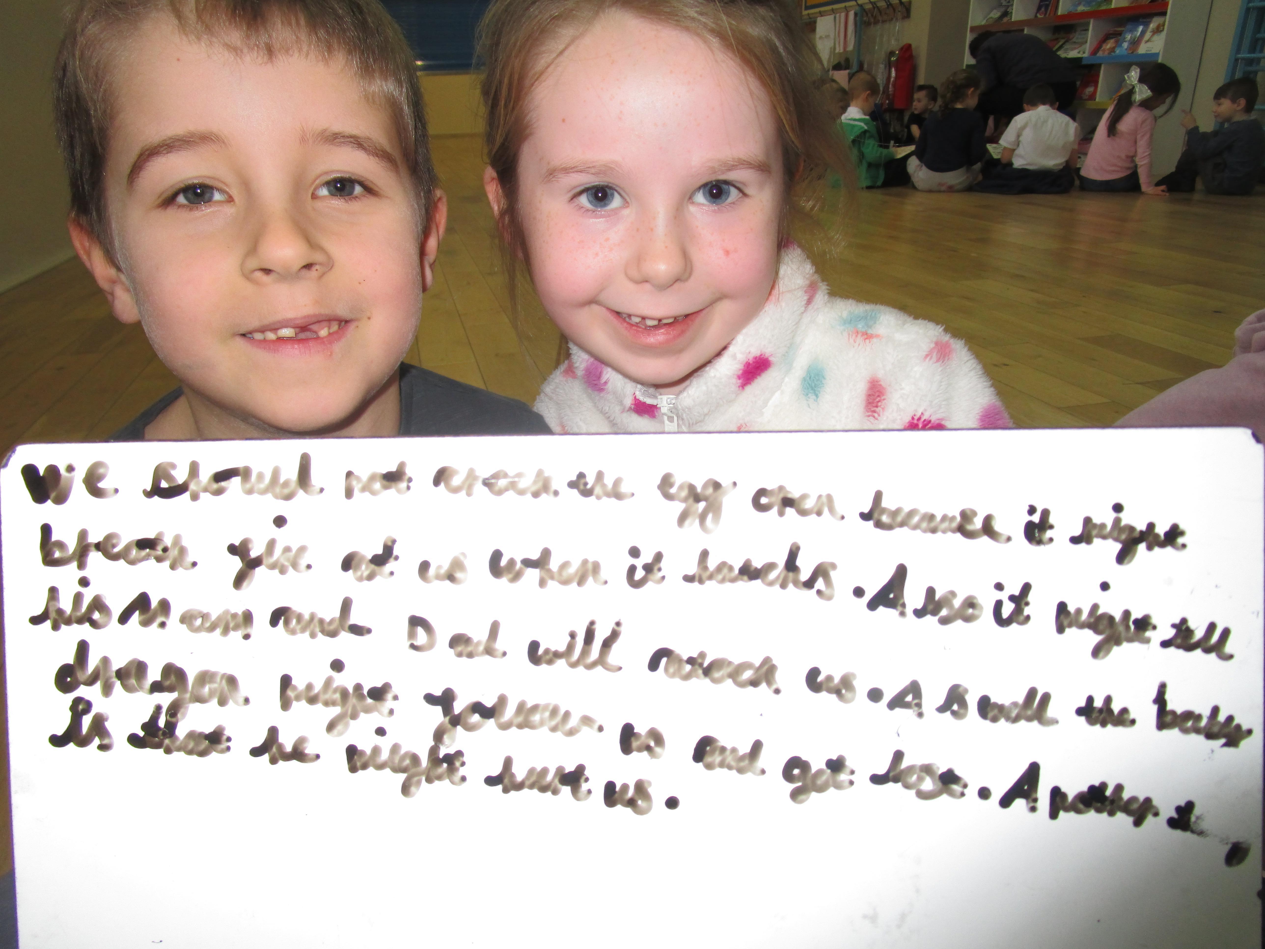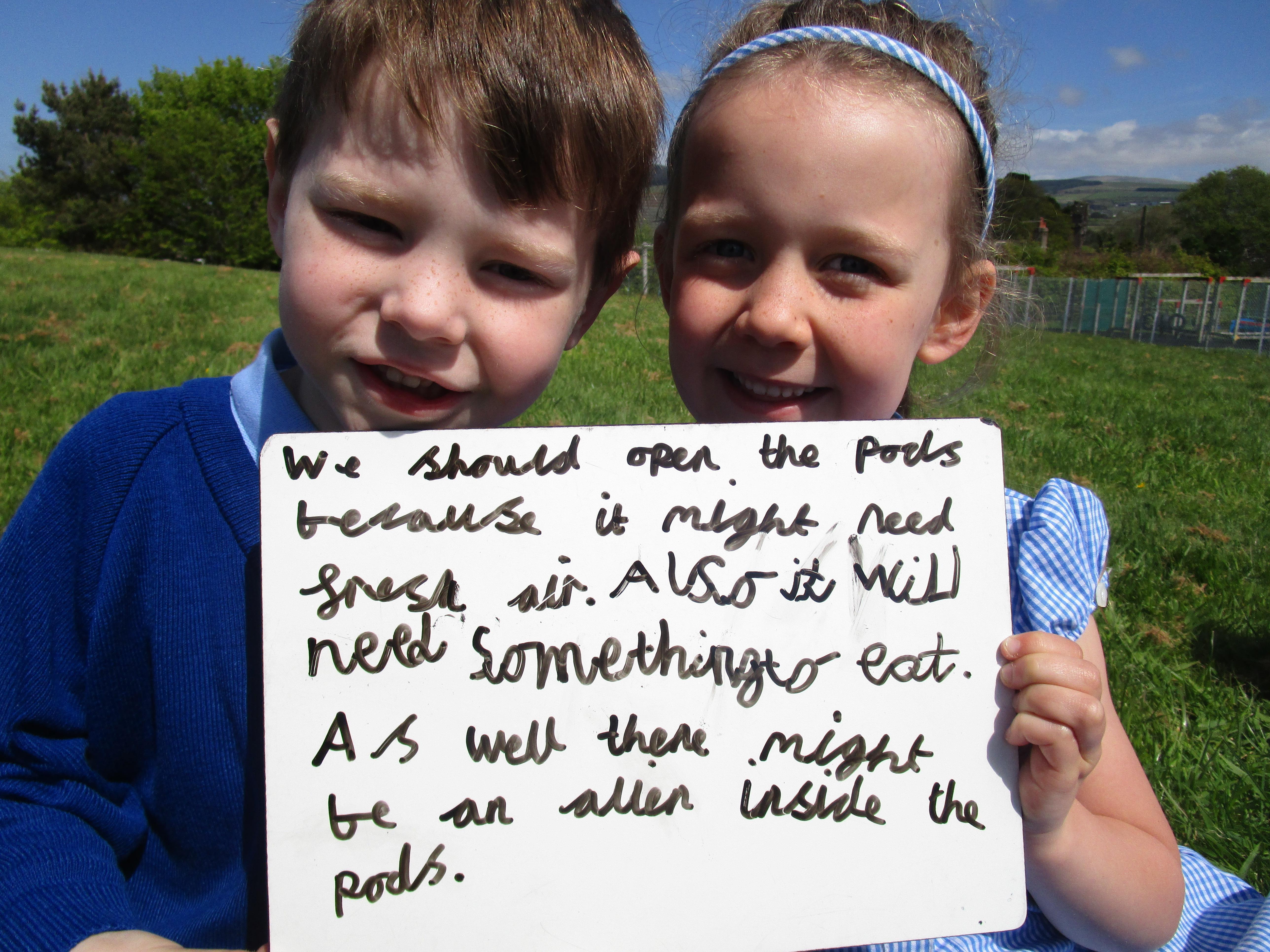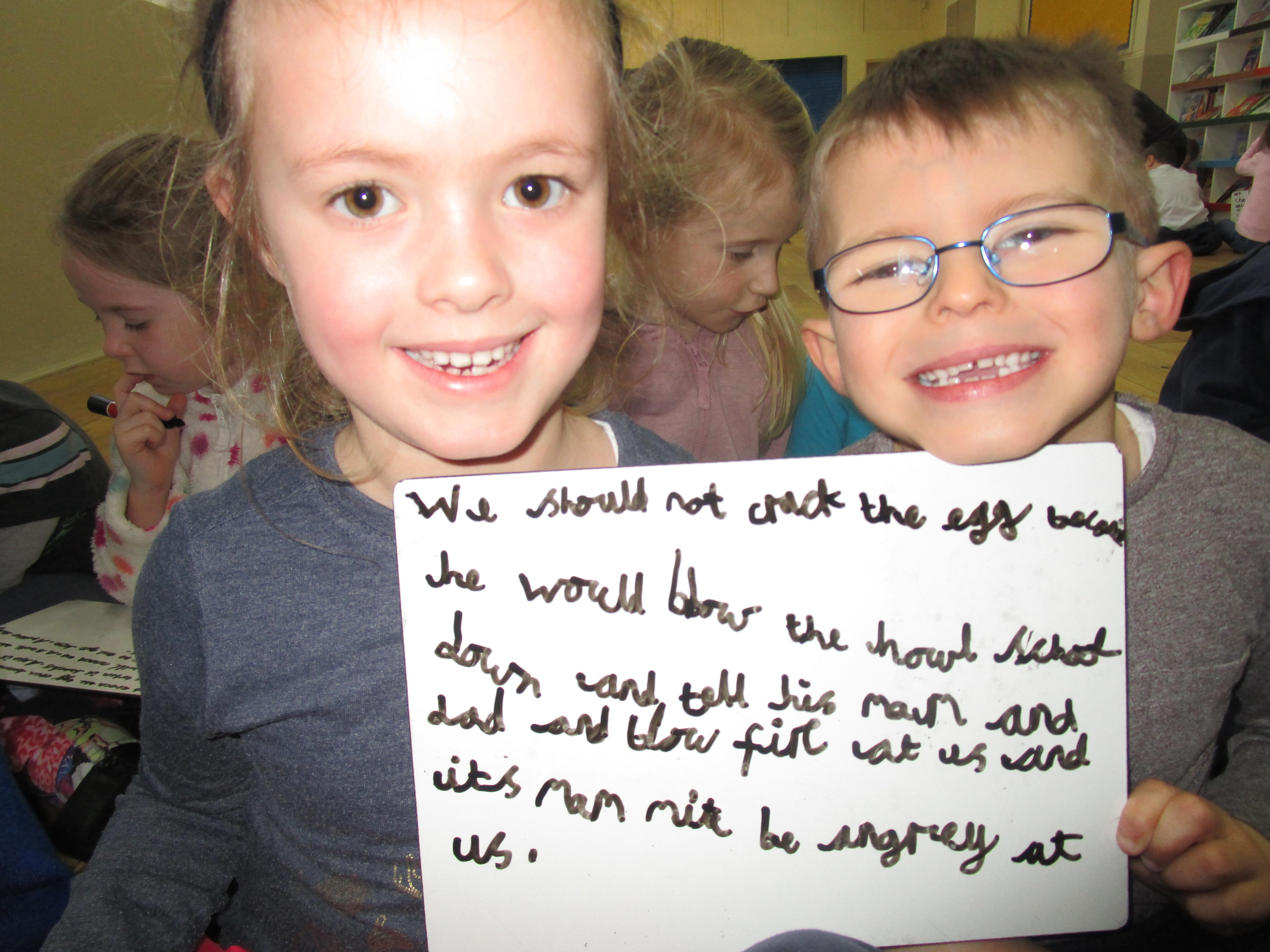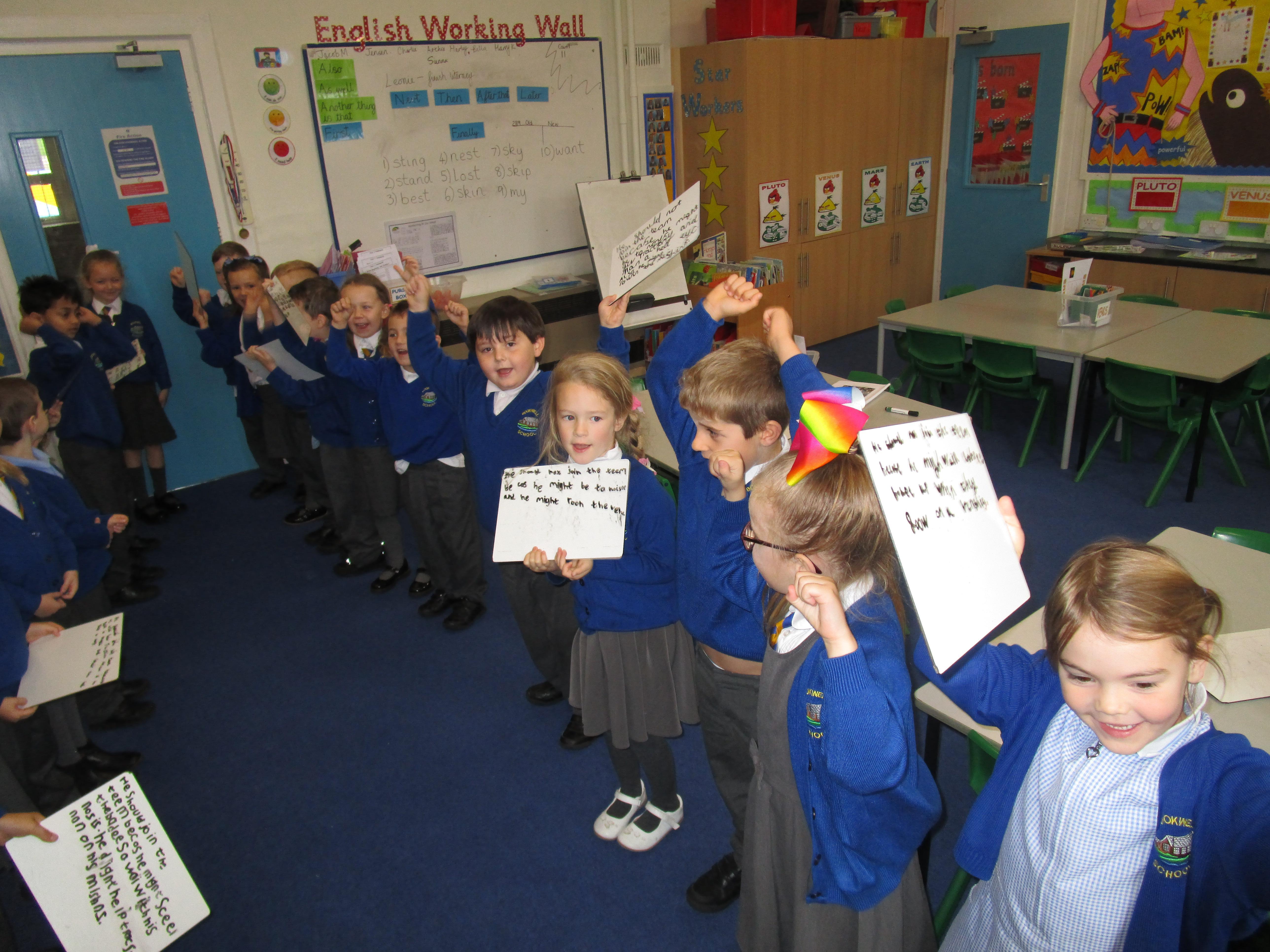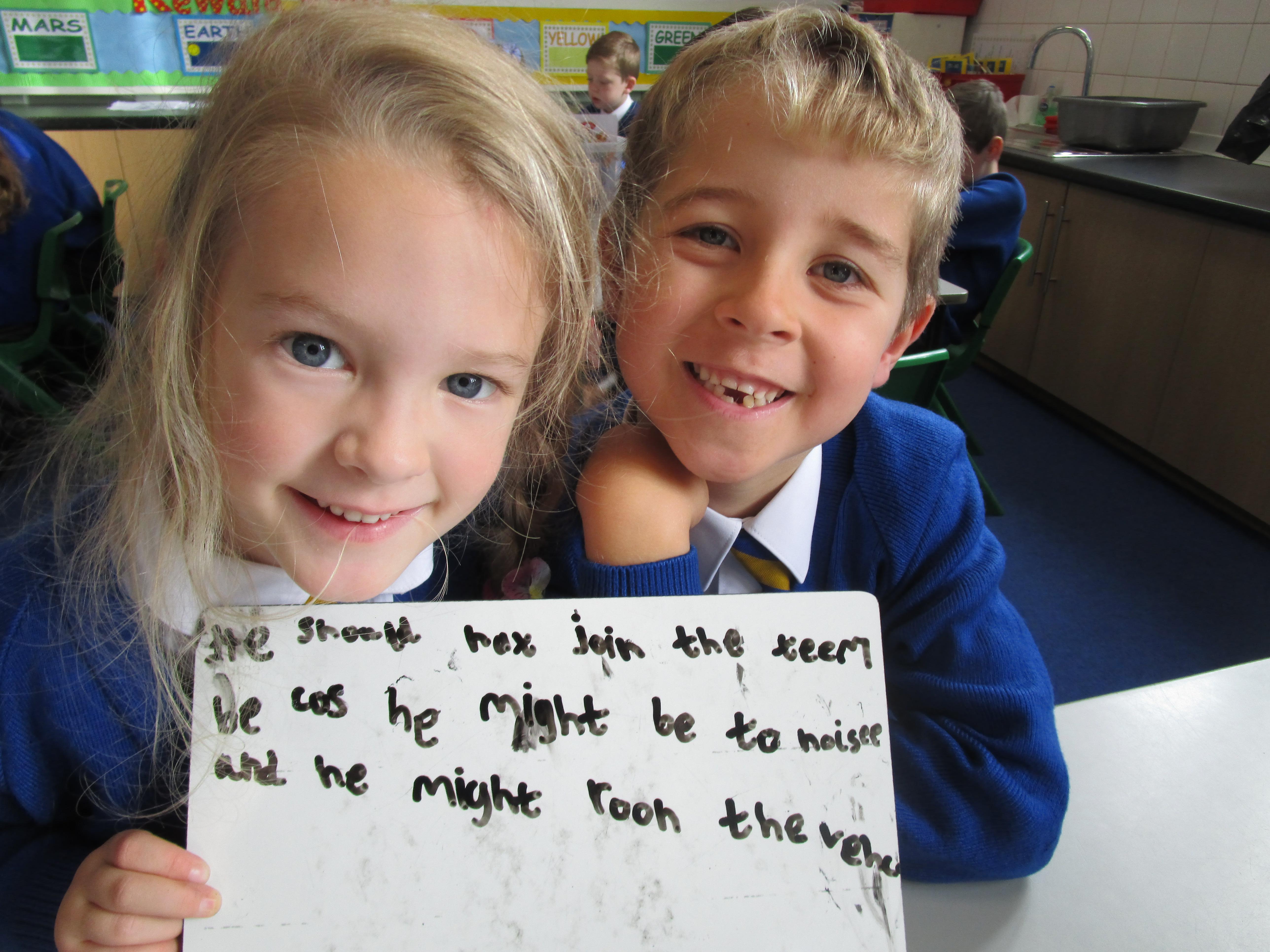 Today in class we have been reading ‘Super Daisy And the Peril of Planet Pea’. In pairs the children had to write questions that they would like to ask Super Daisy. Then some of the children sat in the hot seat and answered the questions in role as Super Daisy.