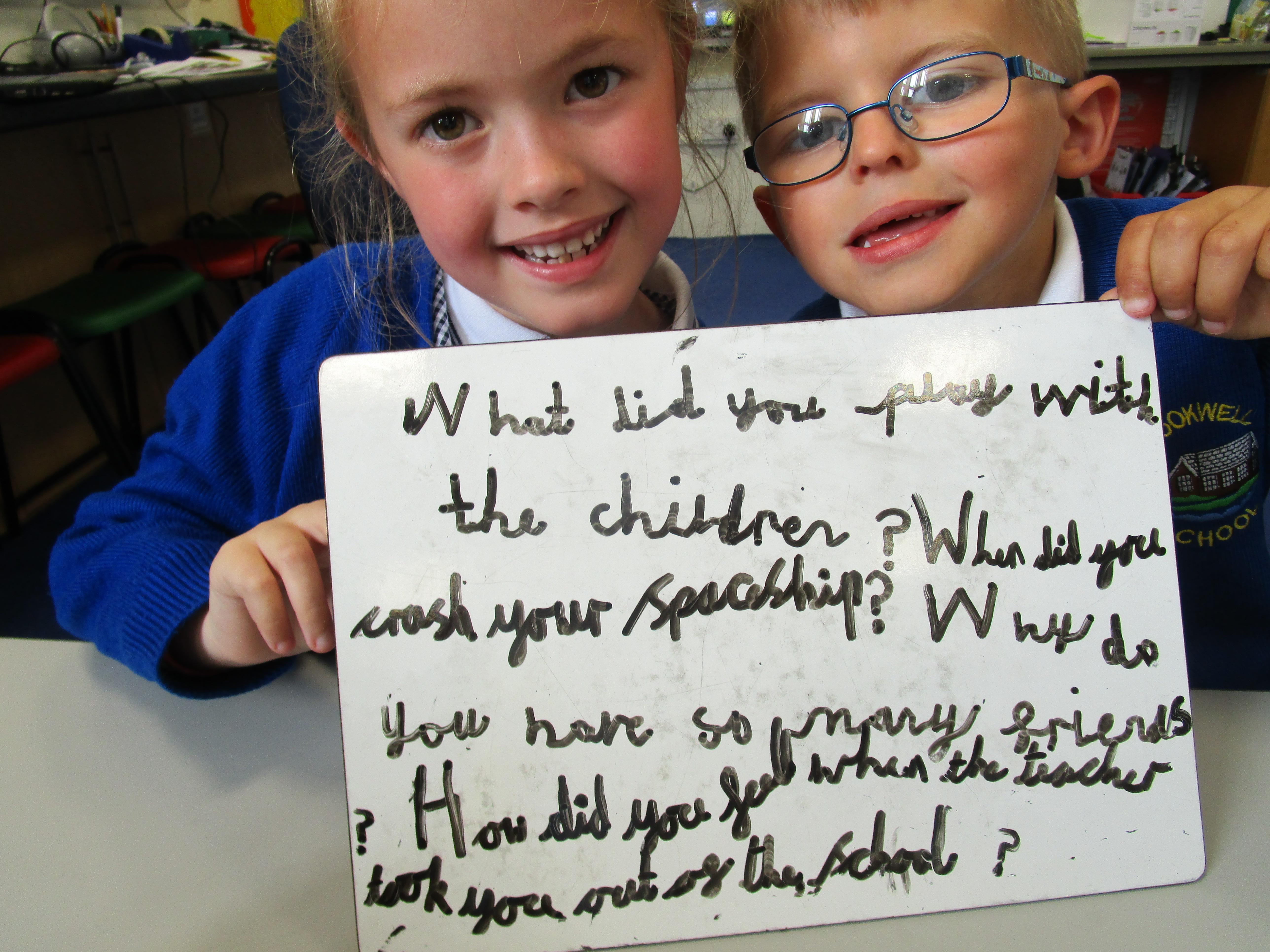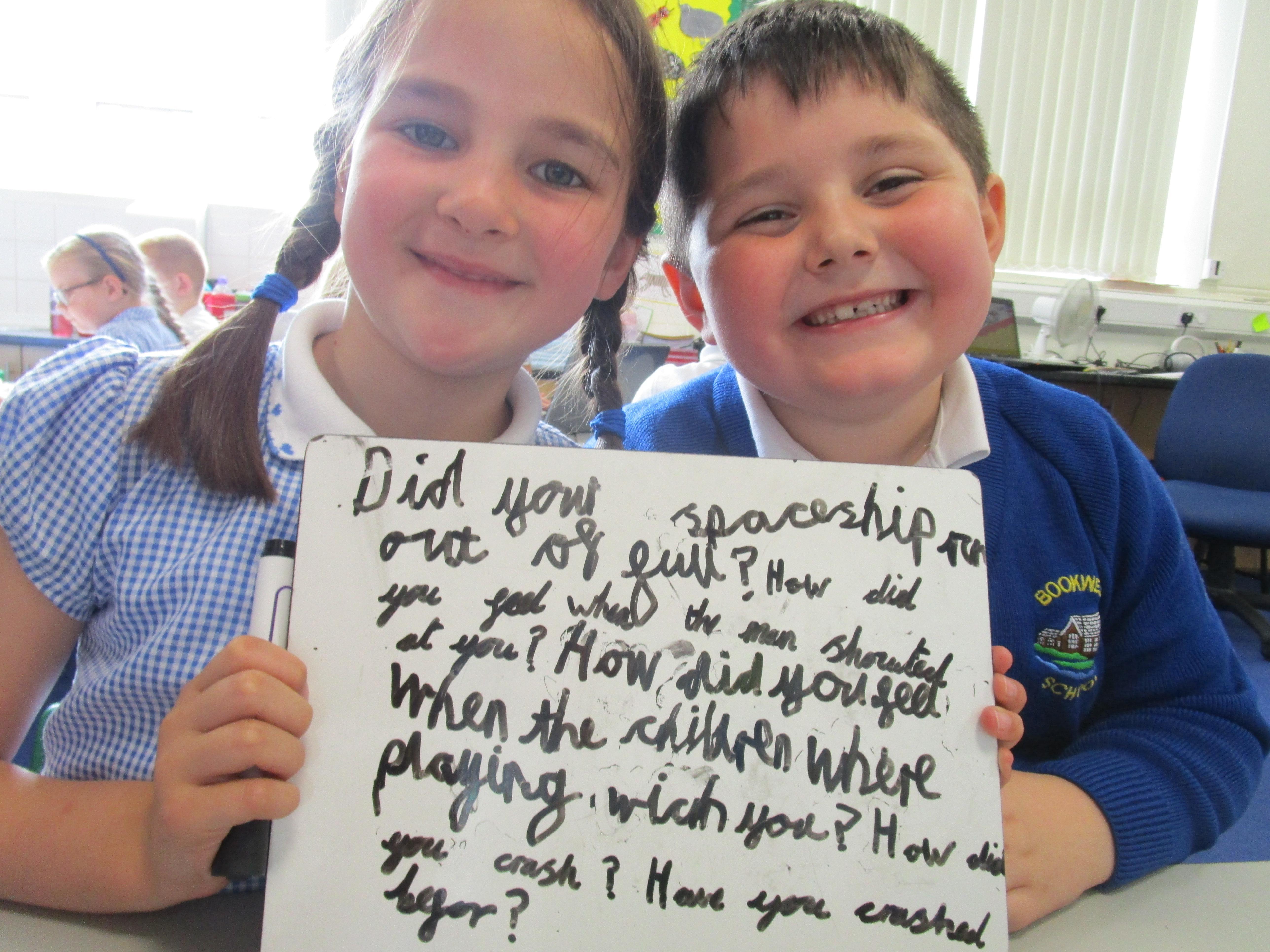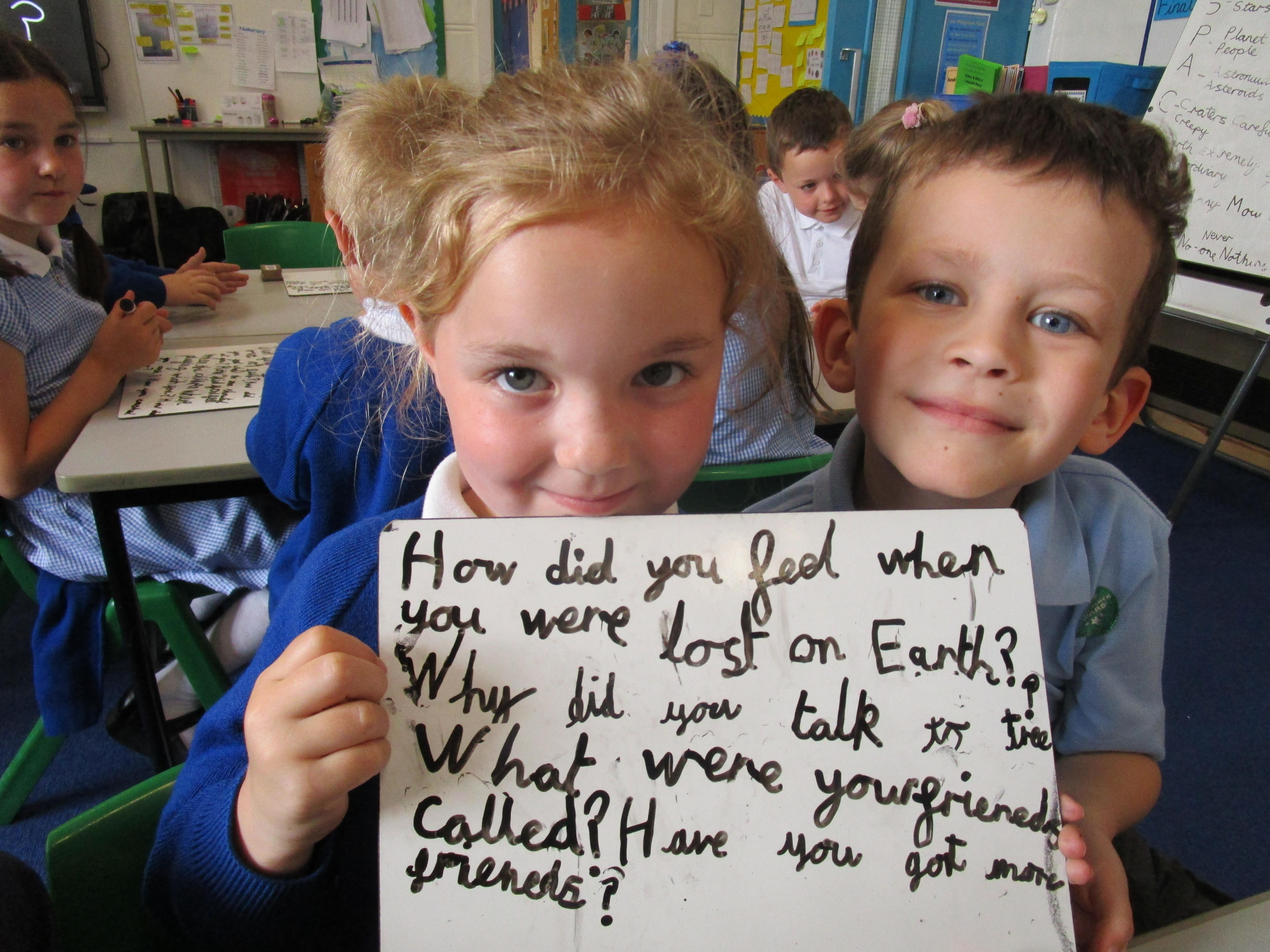 Today in class we have started reading 'Beegu' which is a fantastic story about a little alien getting stranded on Earth. Afterwards the children had to sequence the story and work in pairs to ask Beegu some questions. Later, some of the children had to pretend that they were Beegu and answer these questions in role.