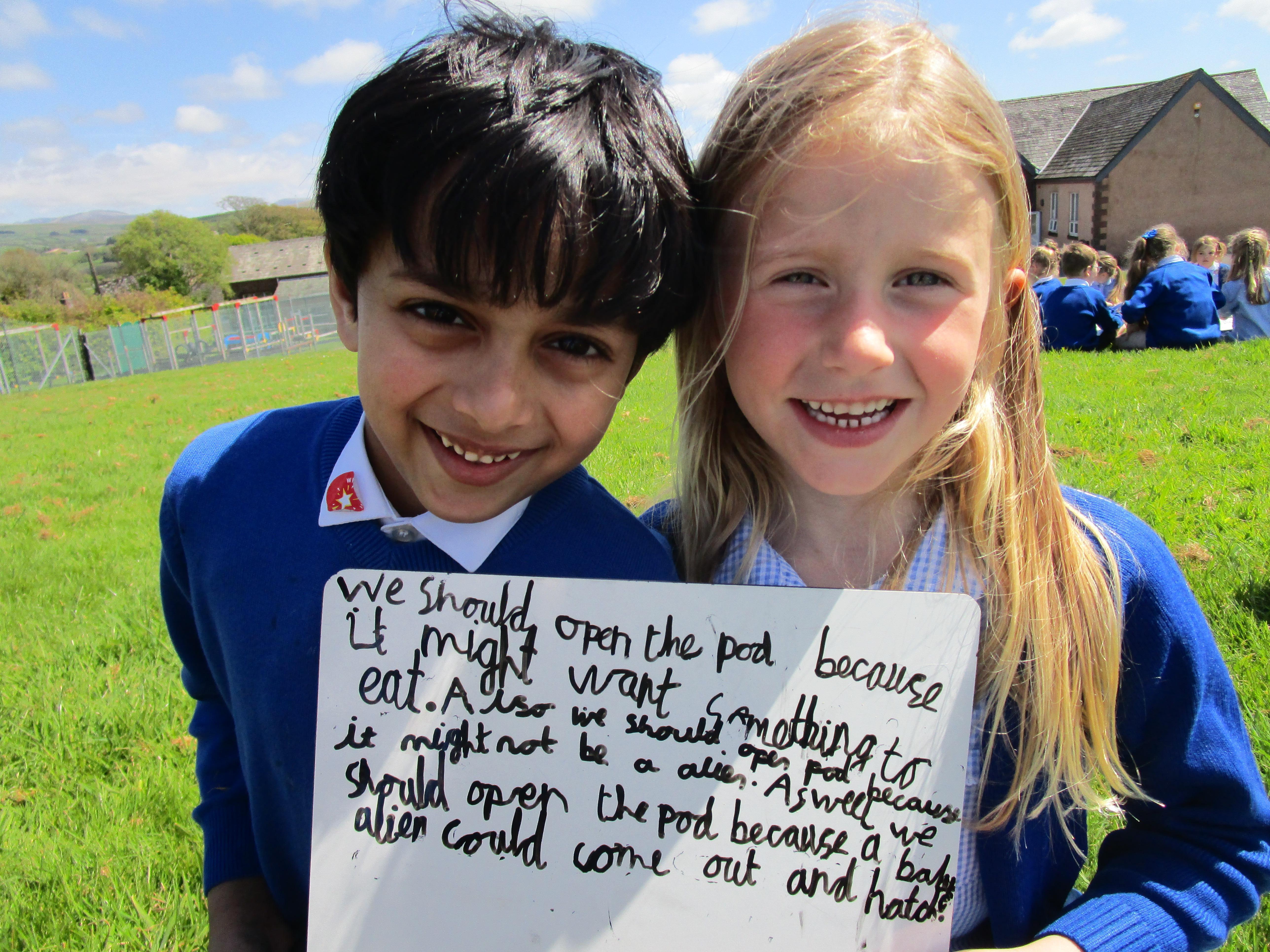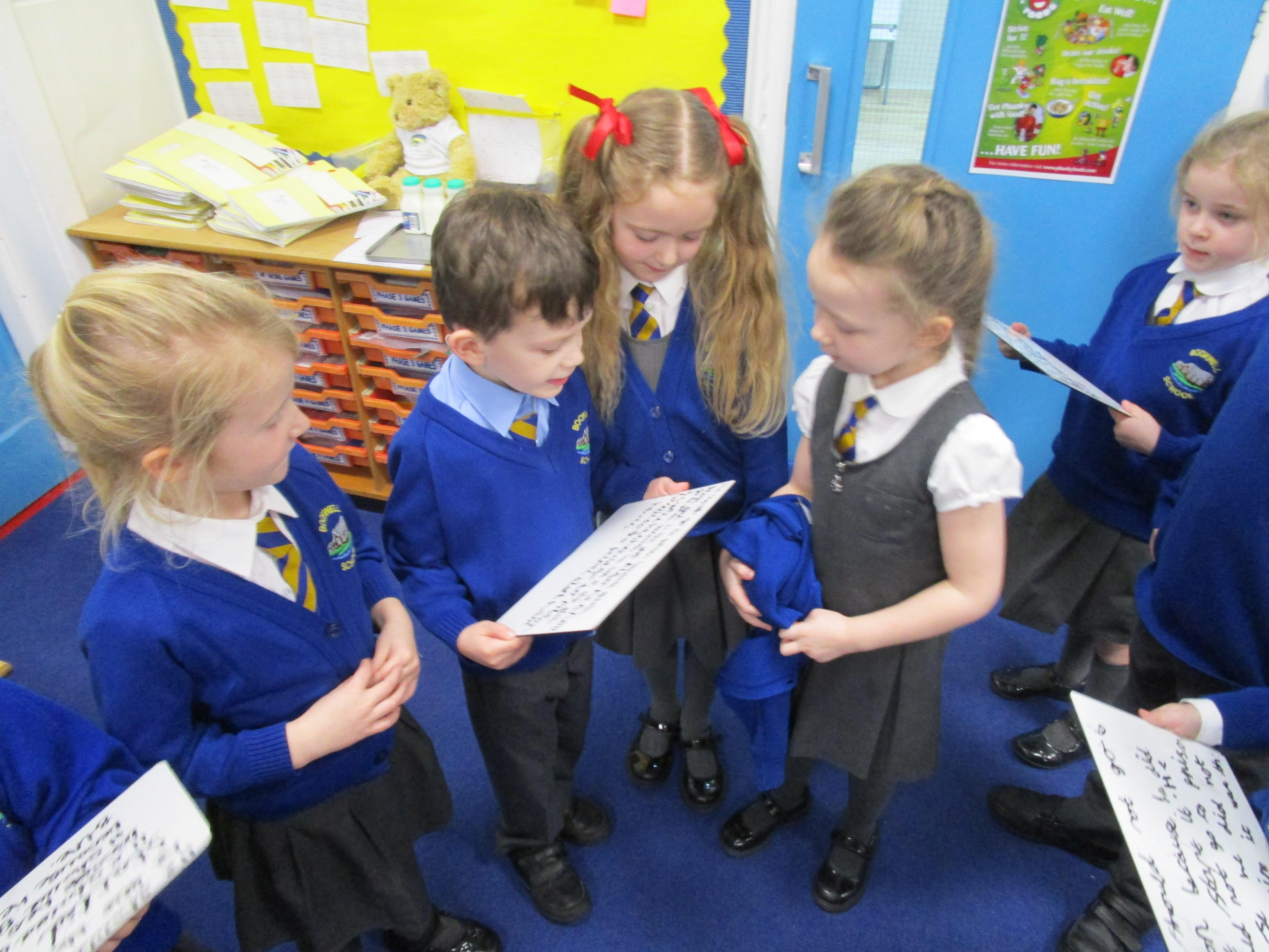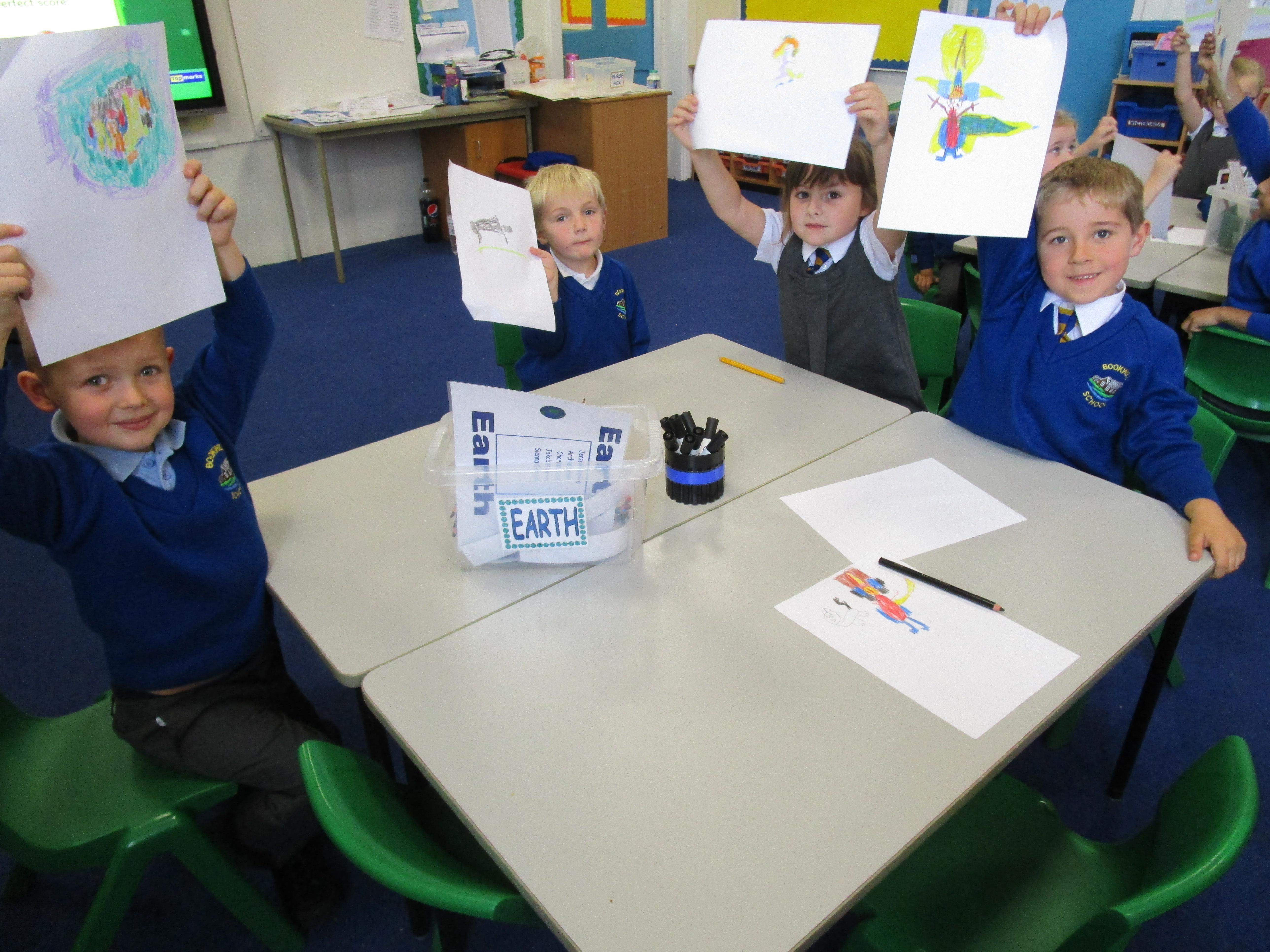 Today in class we have started reading 'Beegu' which is a fantastic story about a little alien getting stranded on Earth. Afterwards the children had to sequence the story and work in pairs to ask Beegu some questions. Later, some of the children had to pretend that they were Beegu and answer these questions in role.