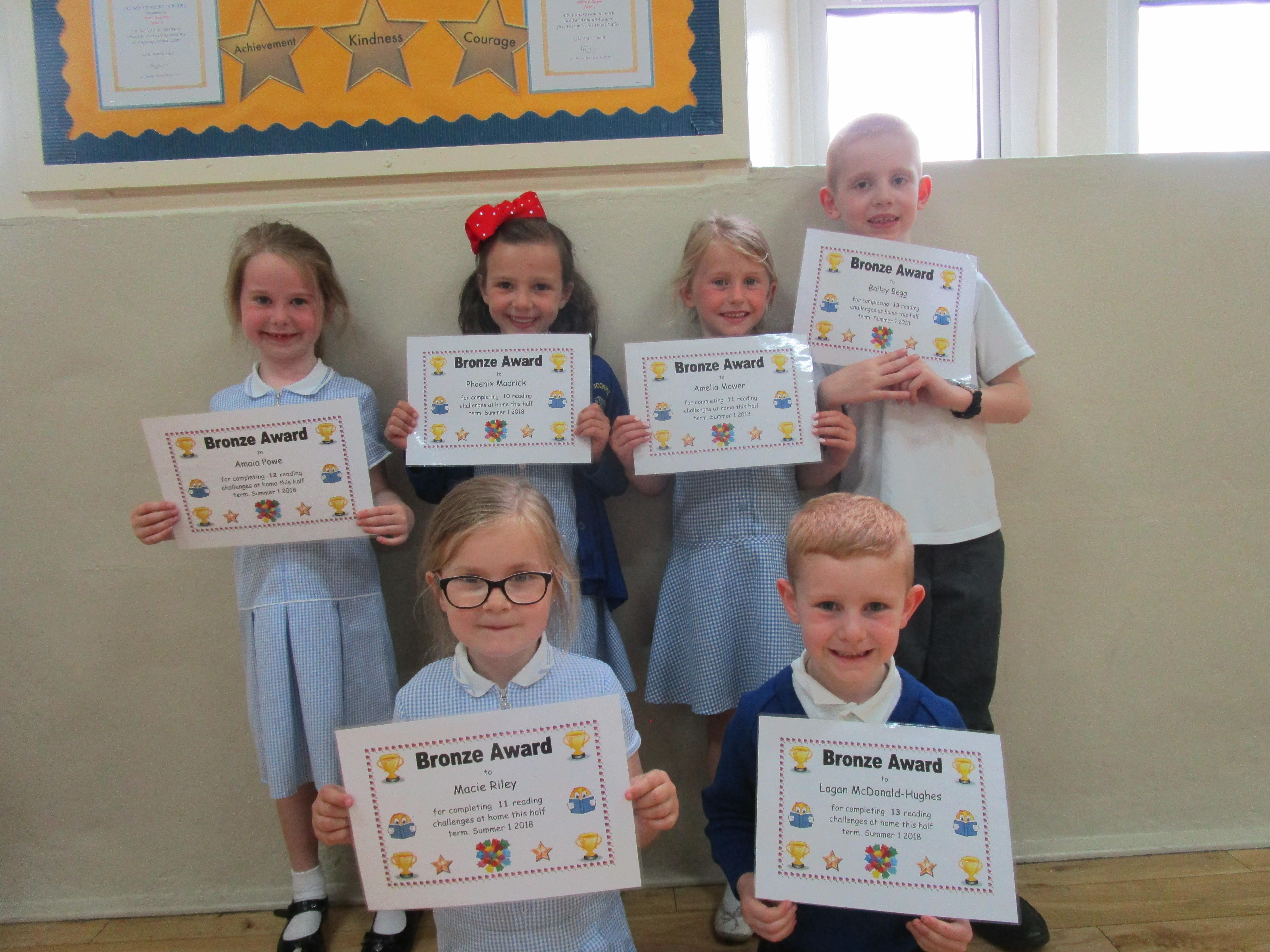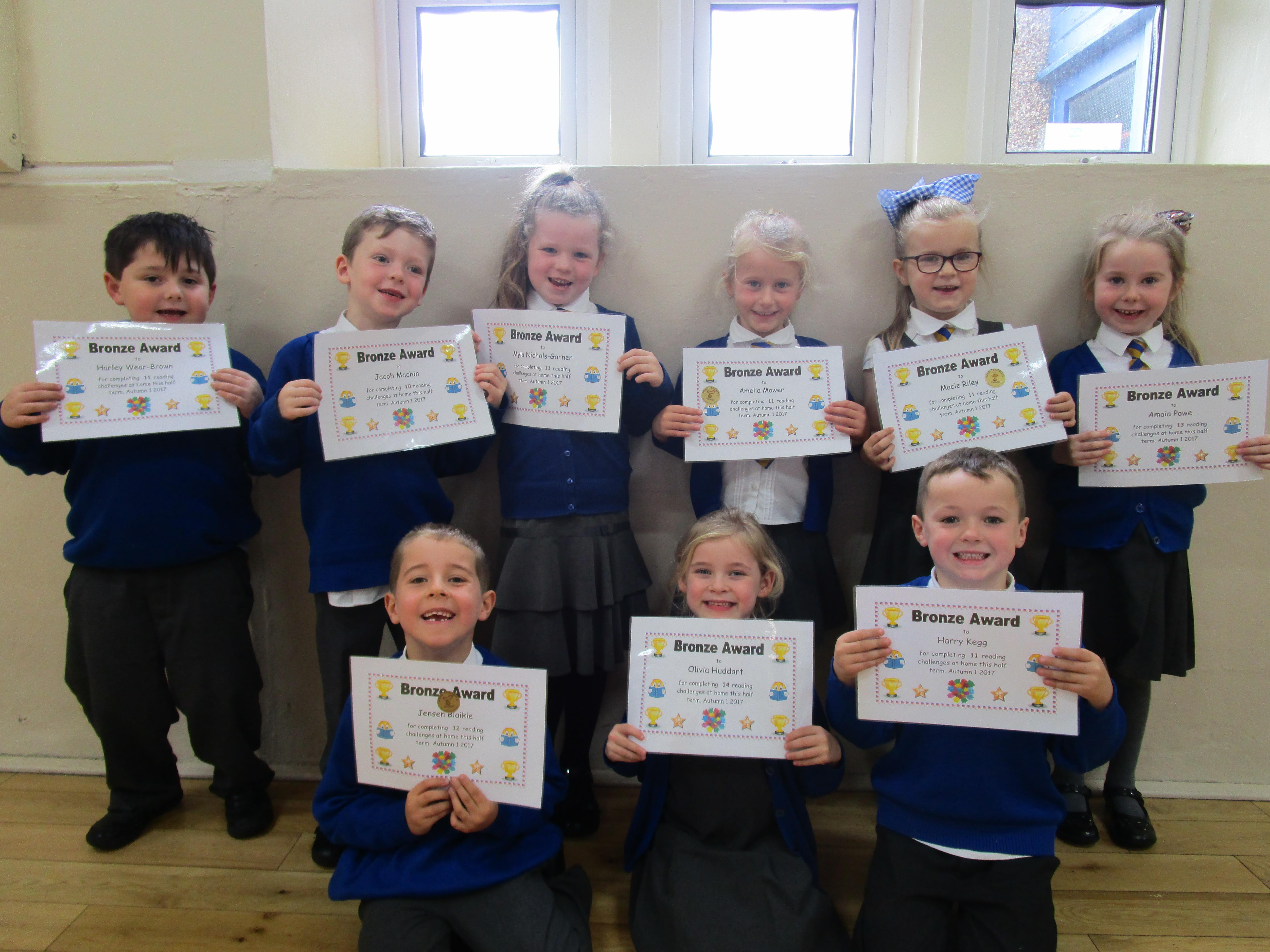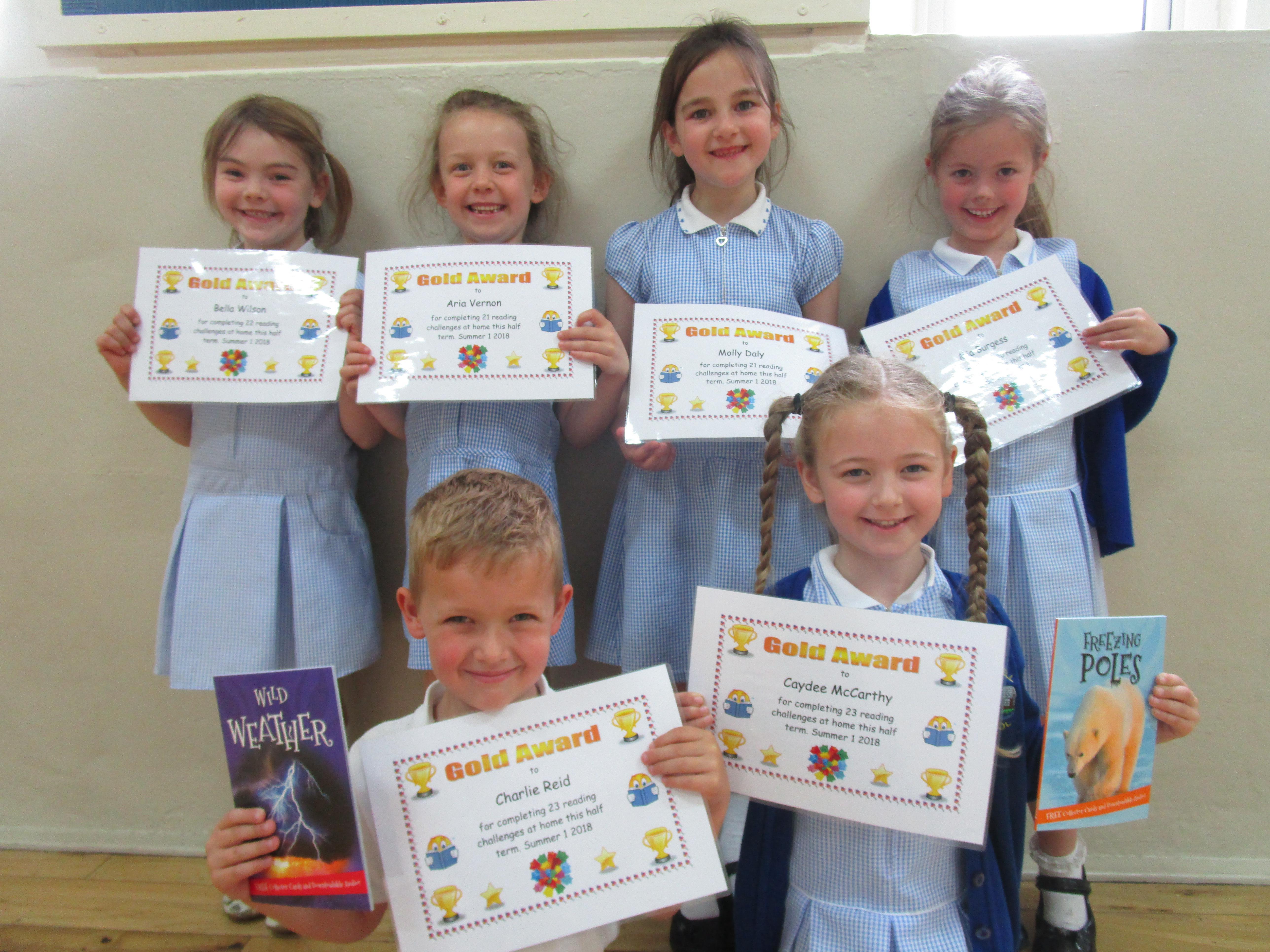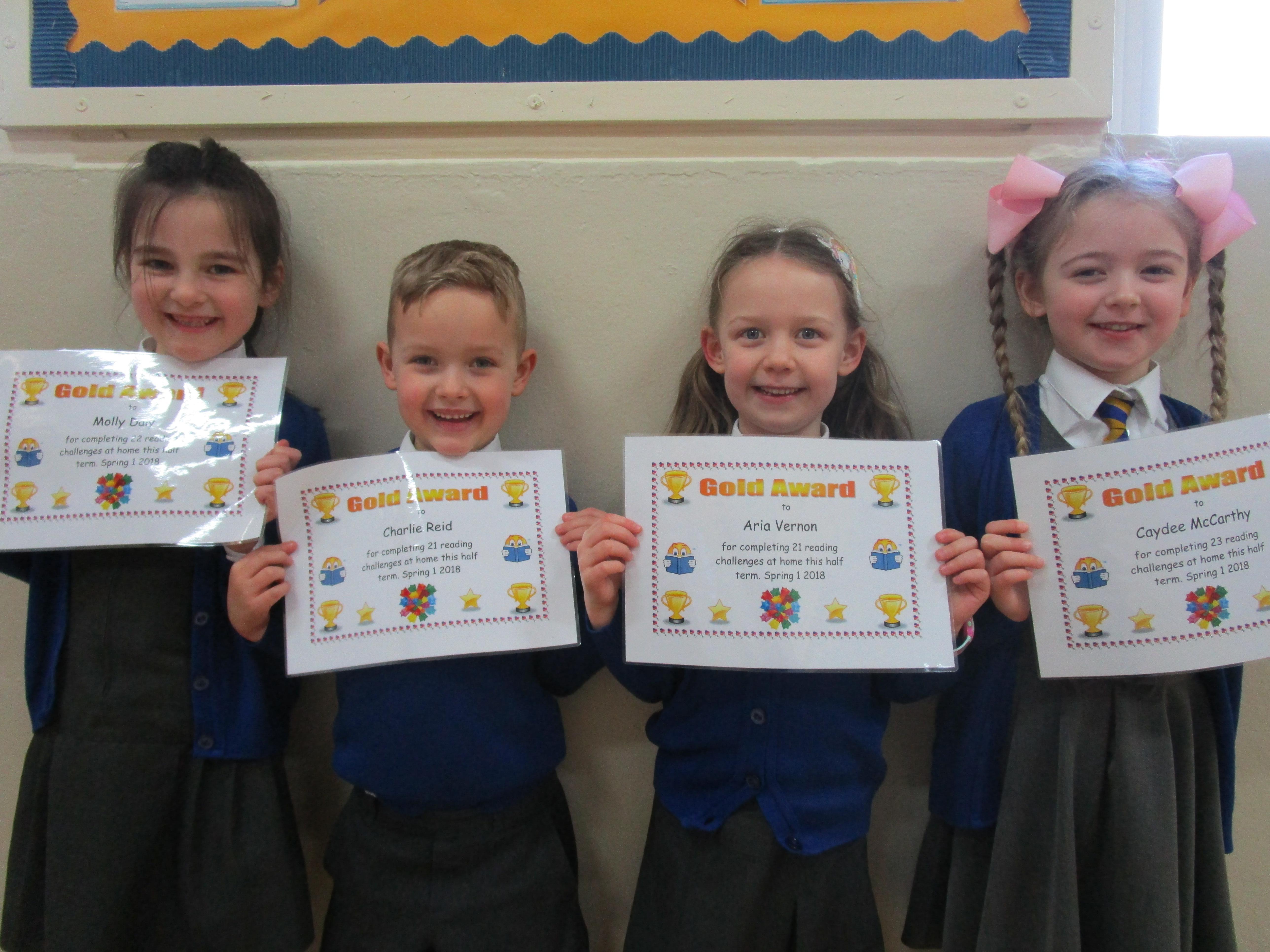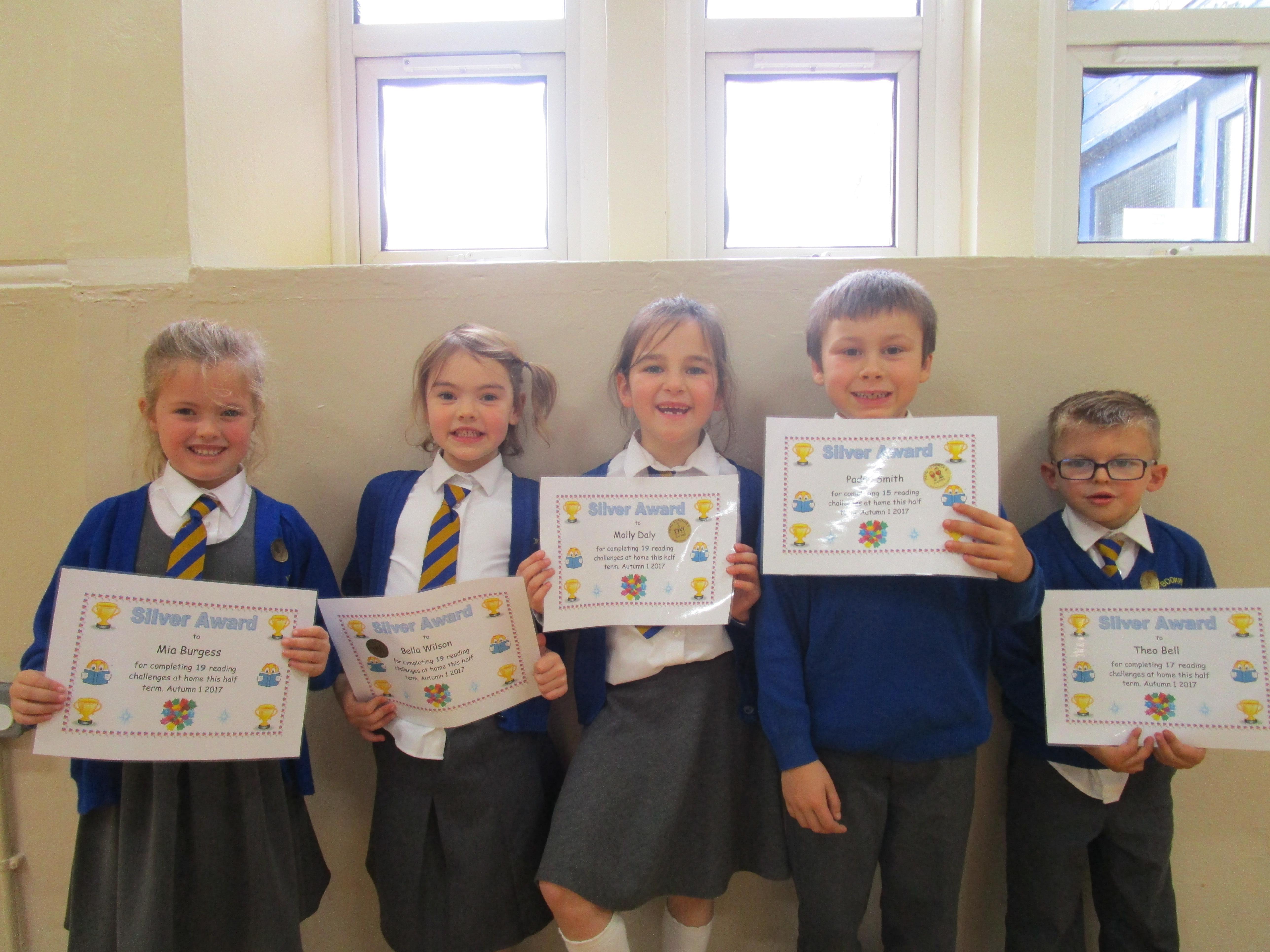 Each half-term Year 1 are set extra reading challenges to complete at home. Here are this half-term's Bronze, Silver and Gold certificate winners.