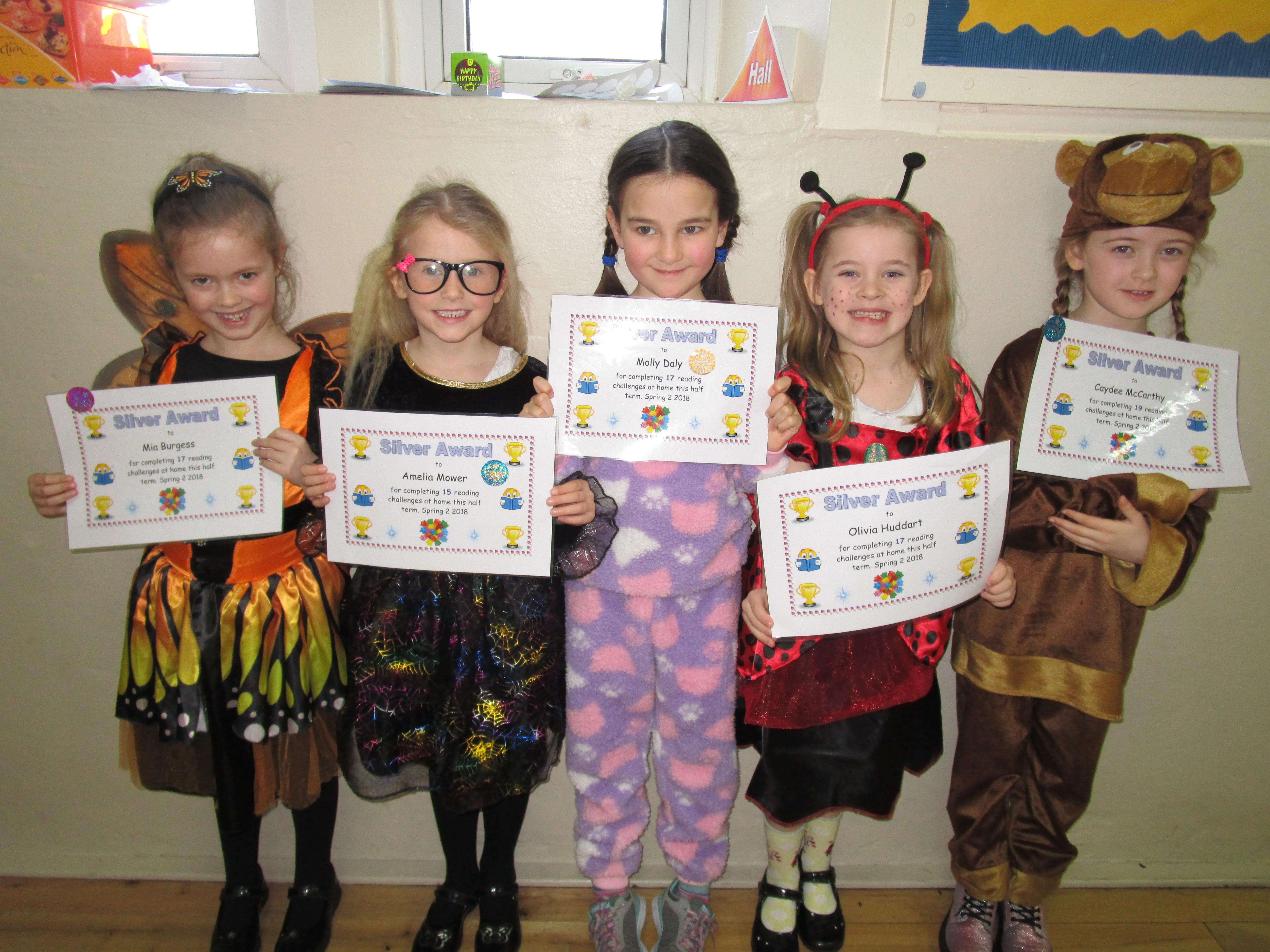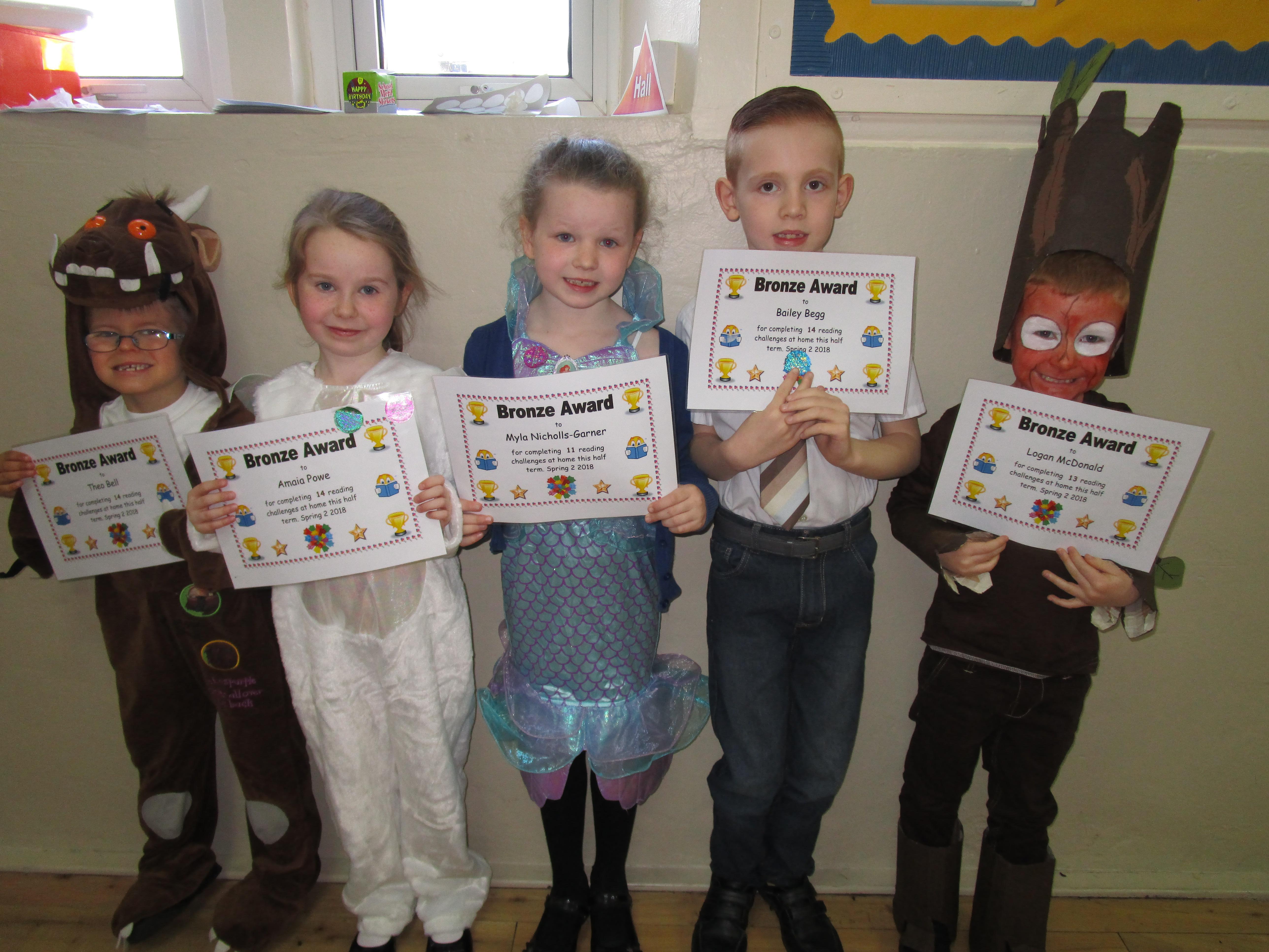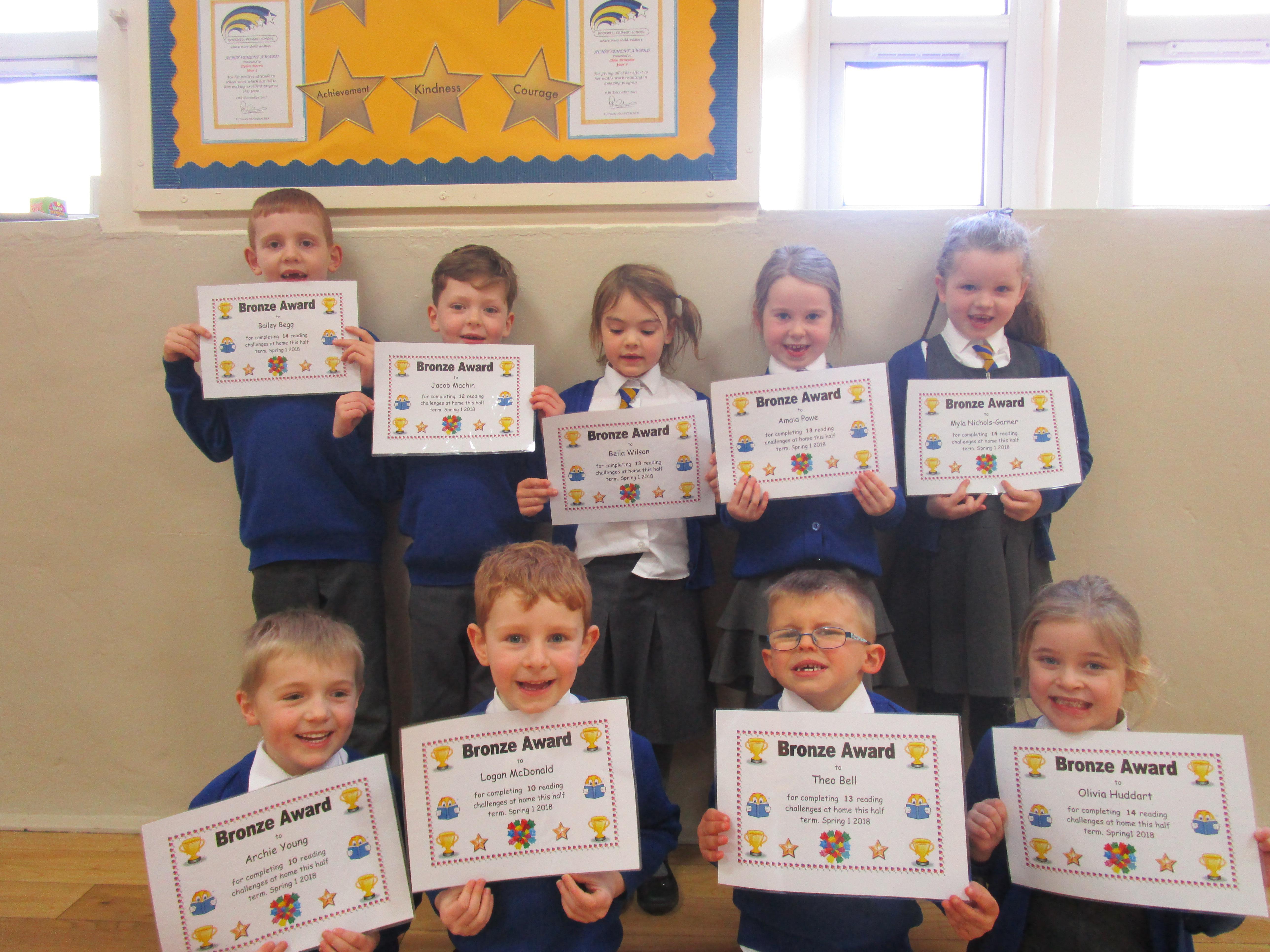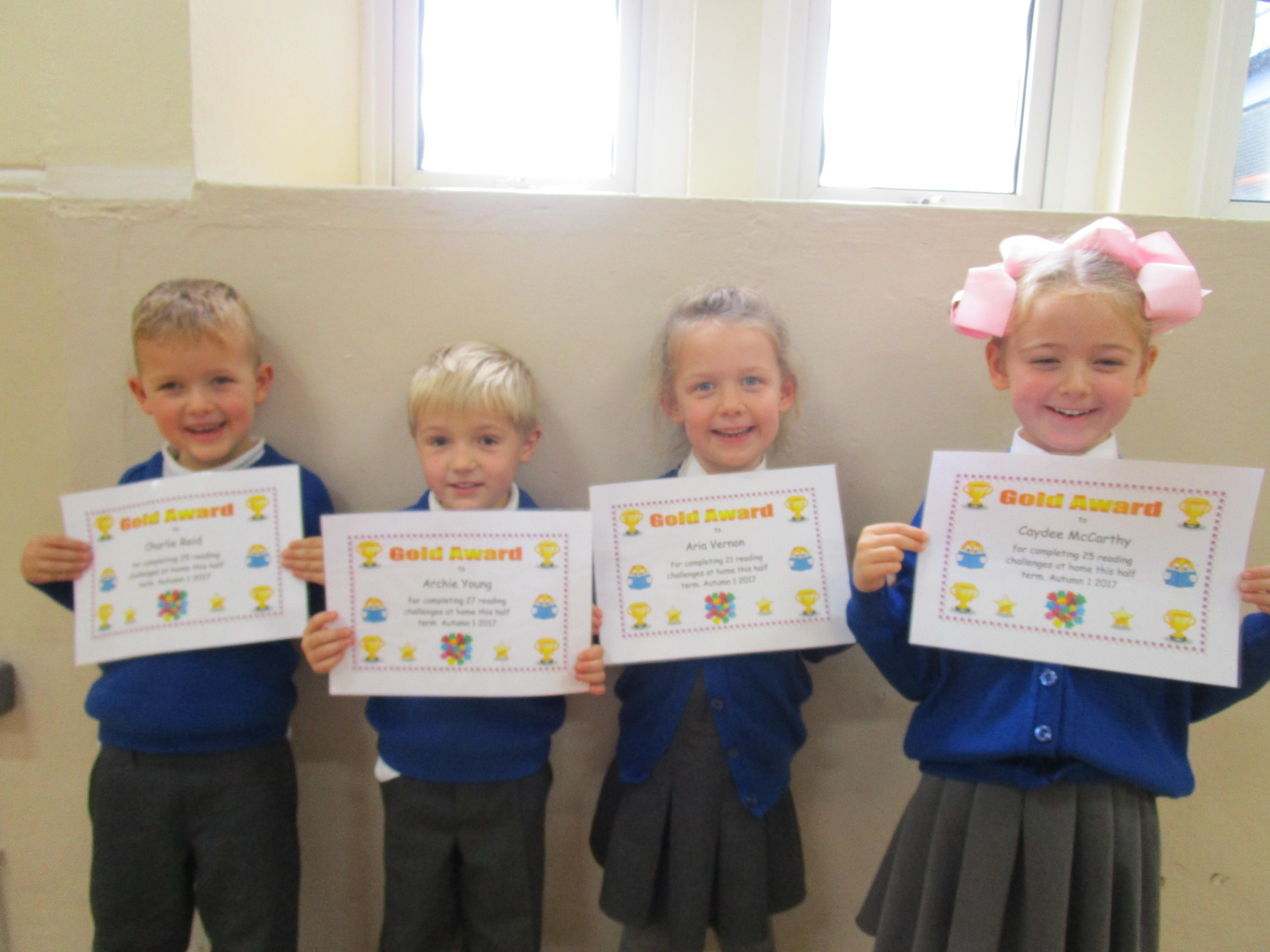 Each half-term Year 1 are set extra reading challenges to complete at home. Here are this half-term's Bronze, Silver and Gold certificate winners.