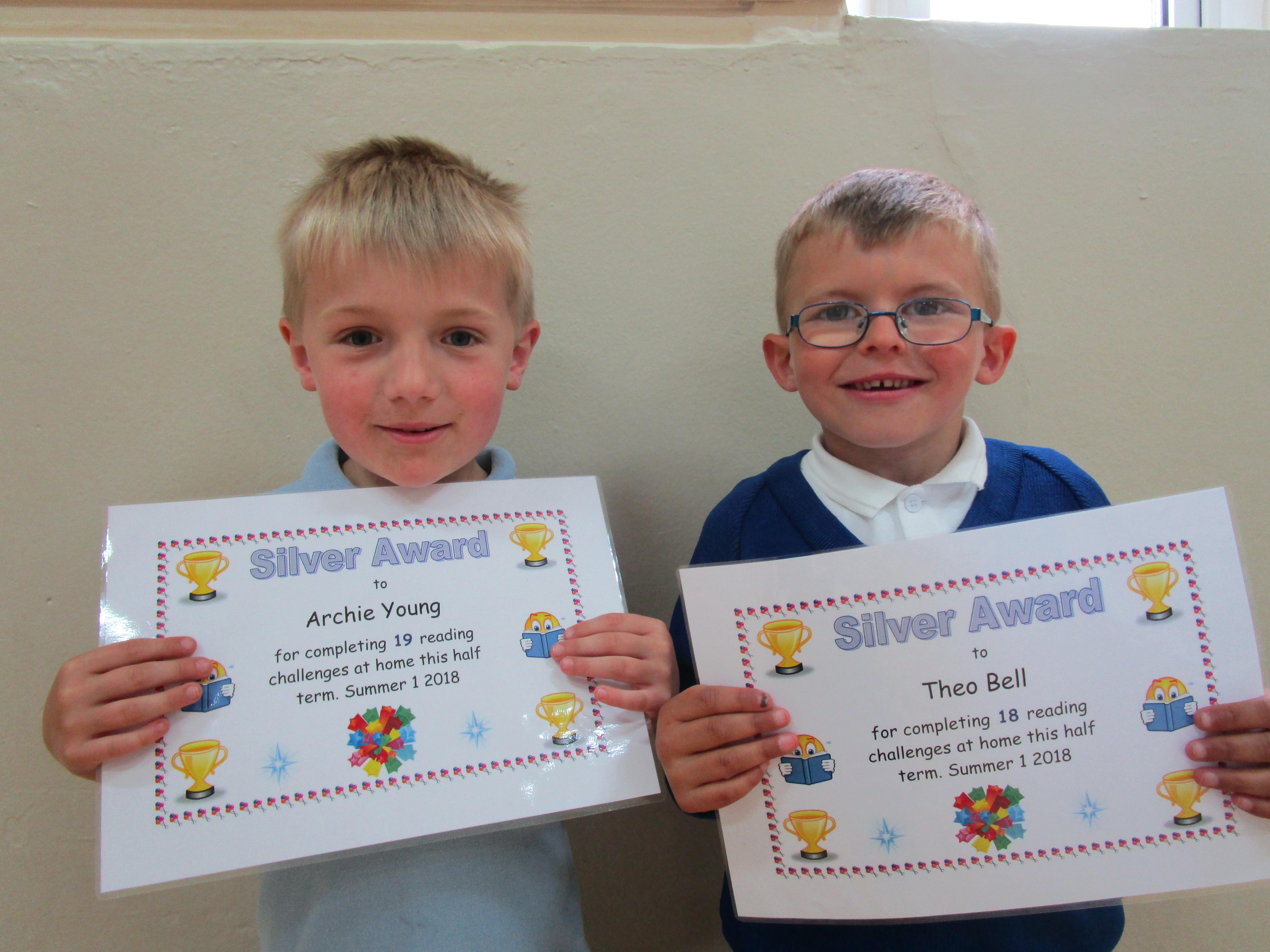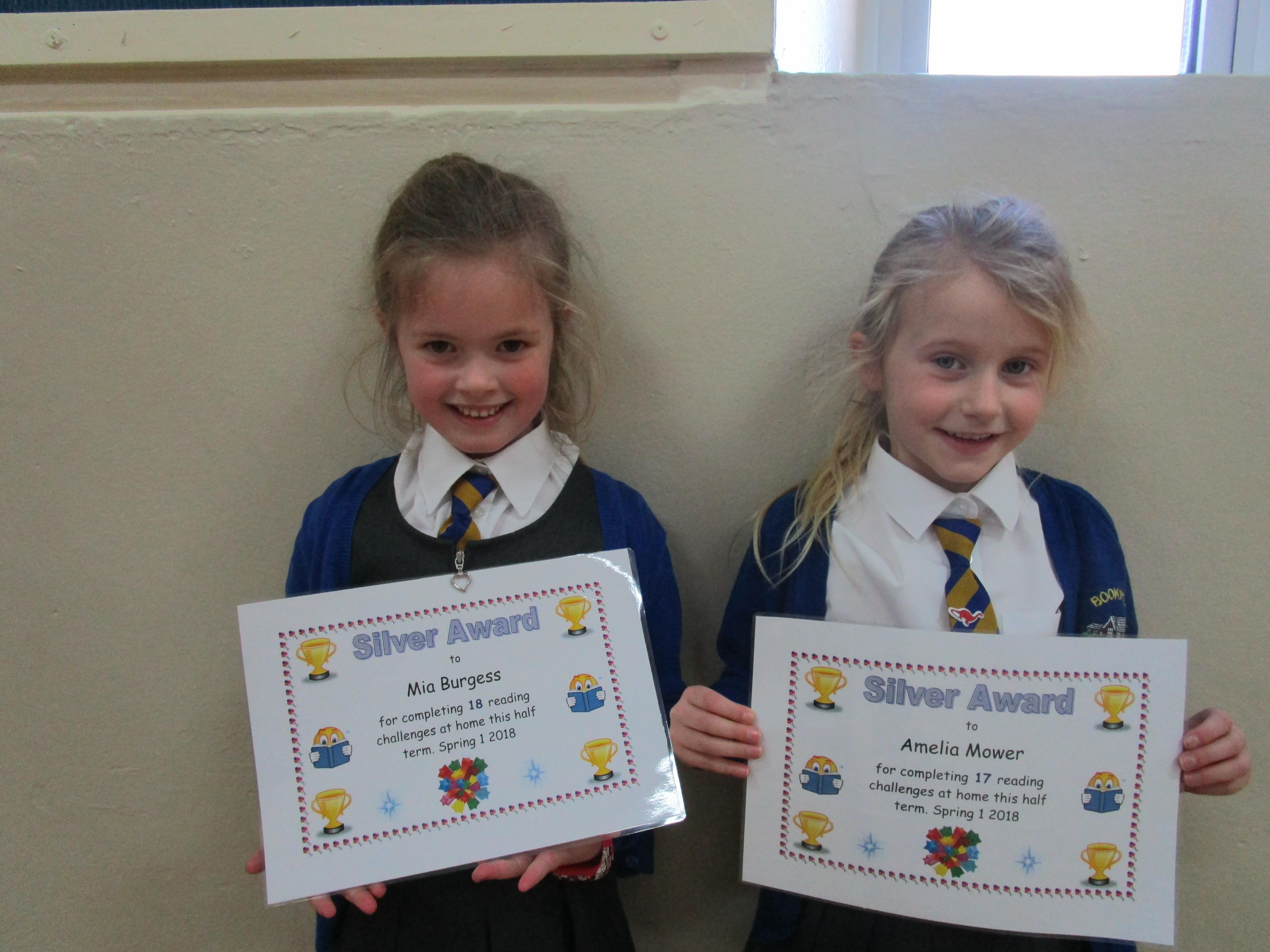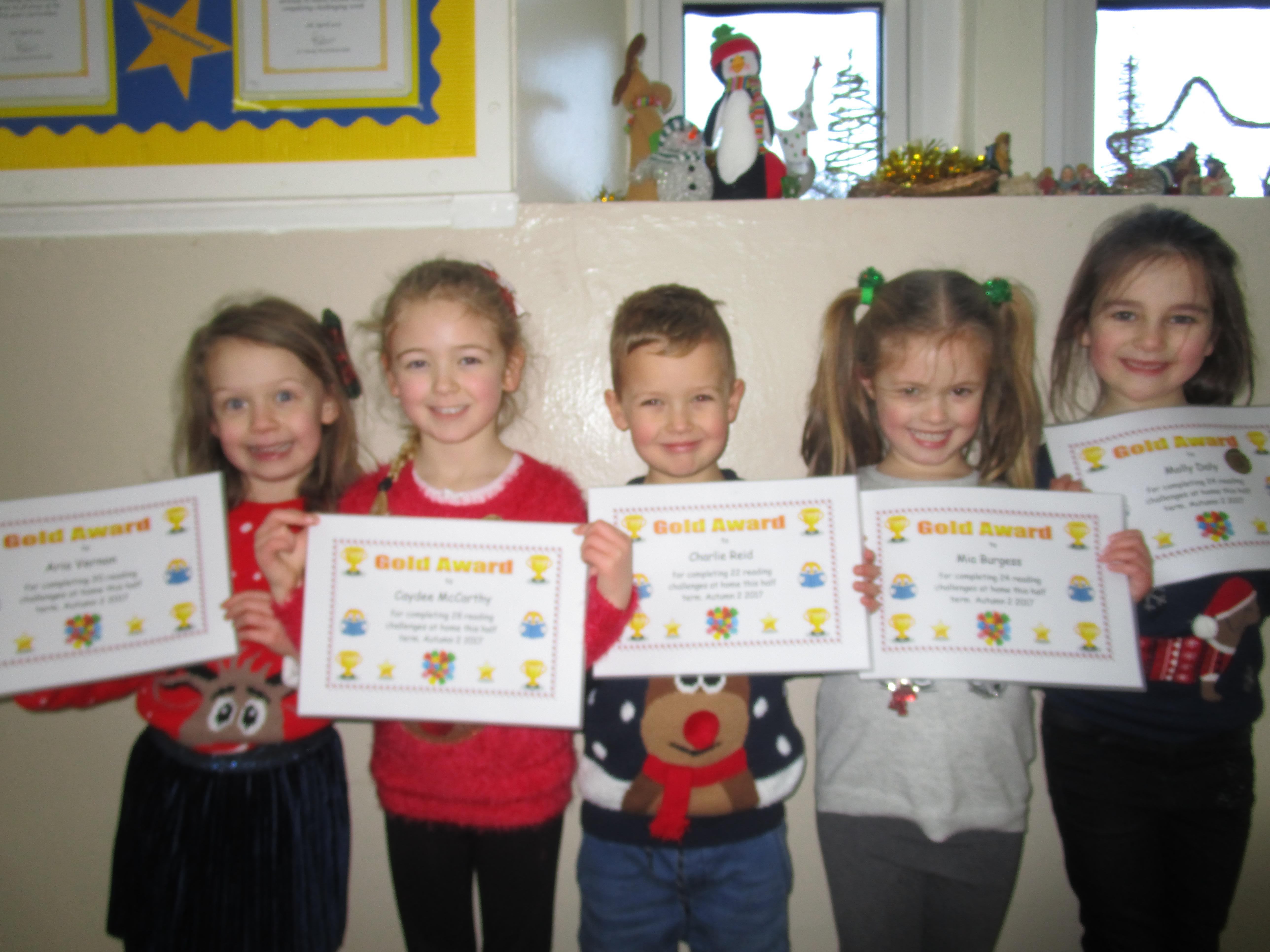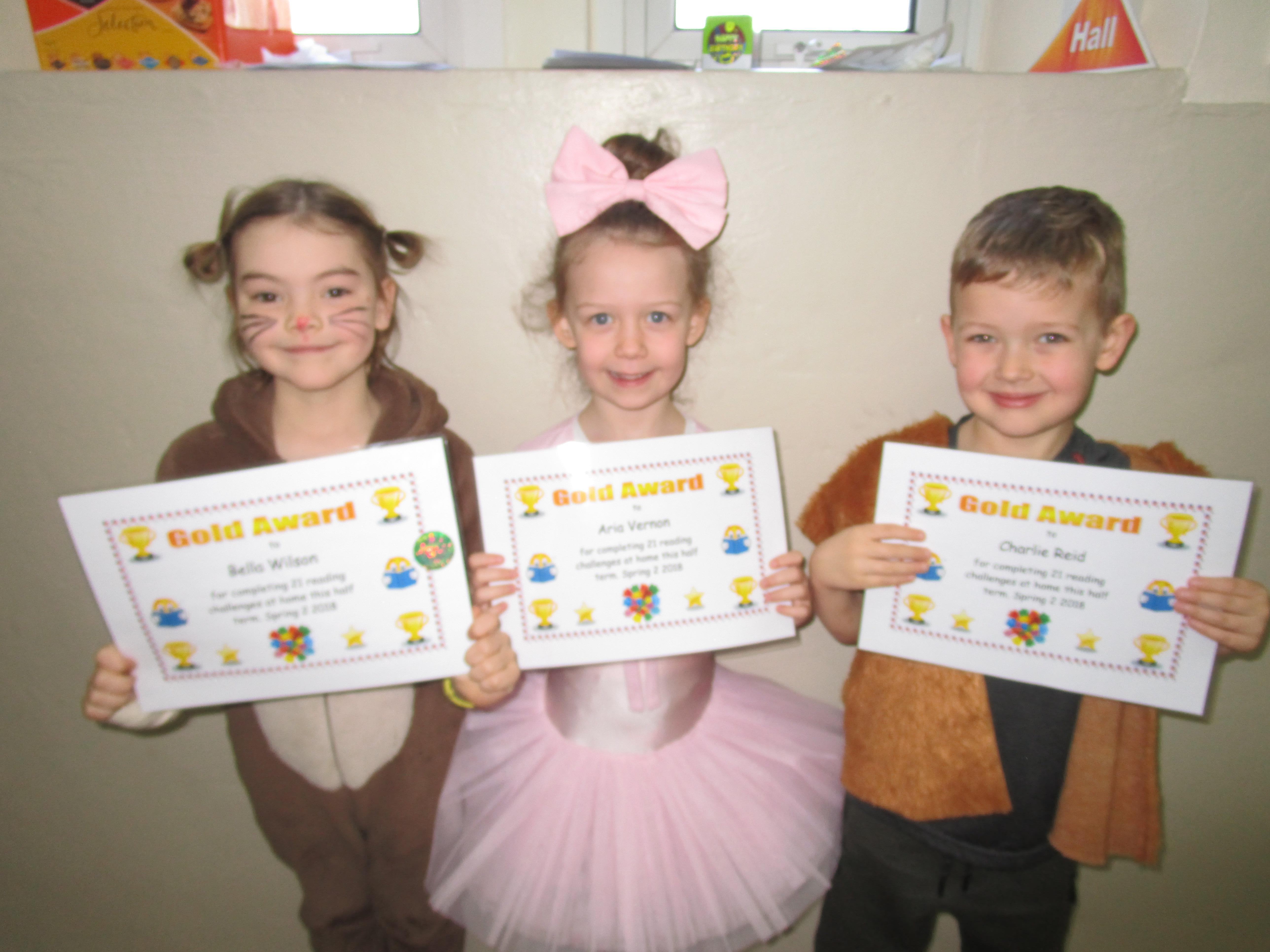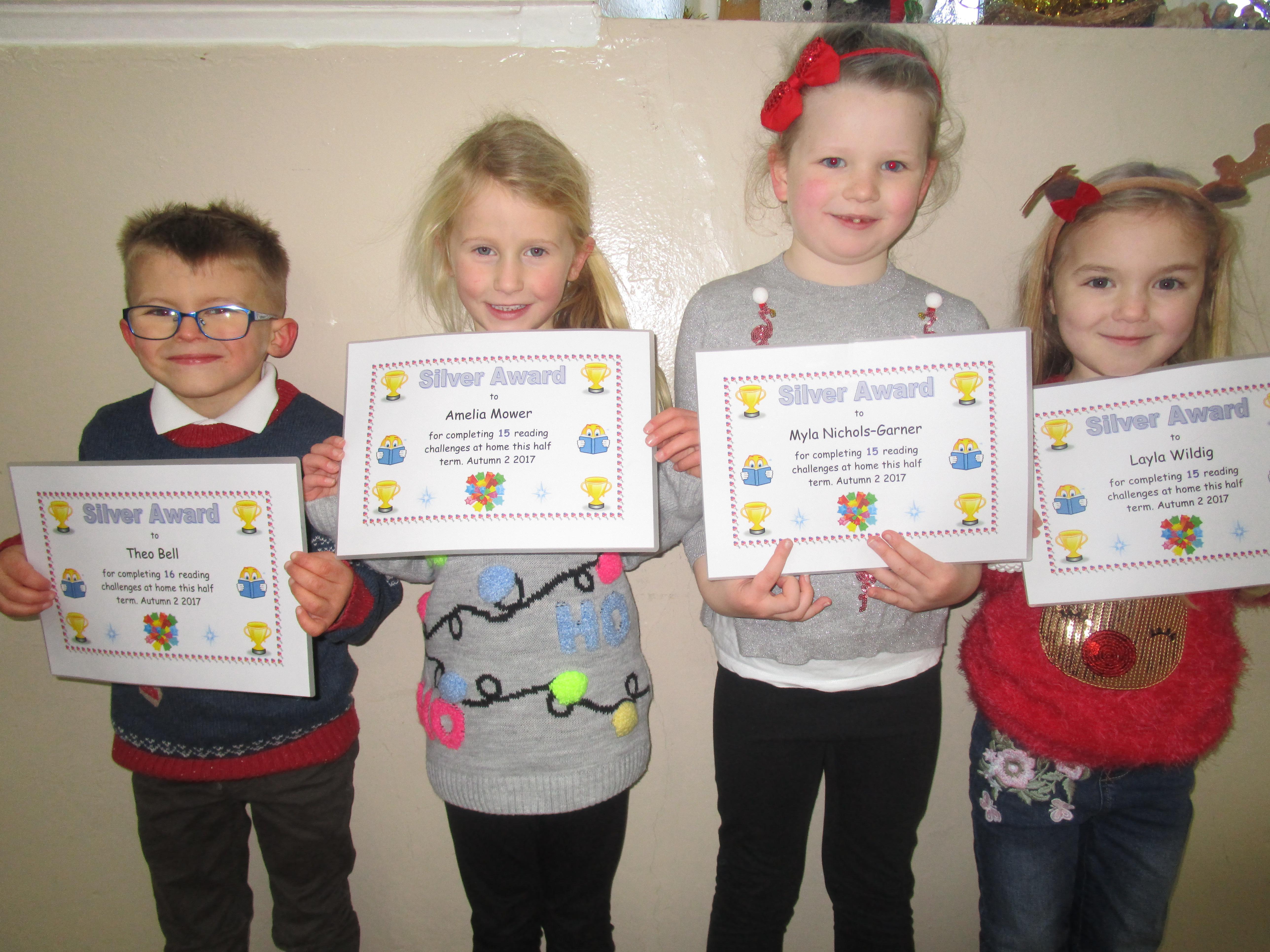 Each half-term Year 1 are set extra reading challenges to complete at home. Here are this half-term's Bronze, Silver and Gold certificate winners.