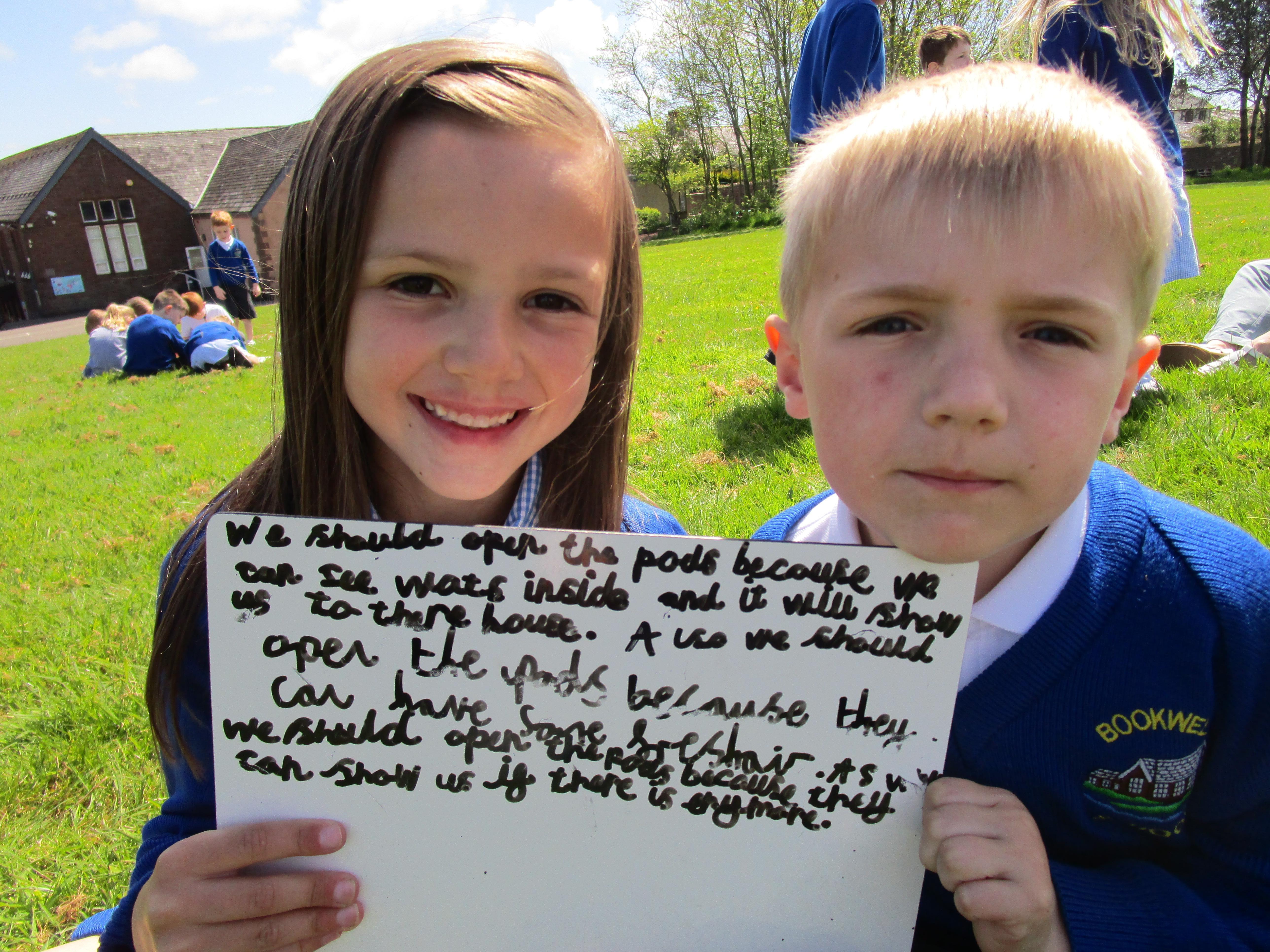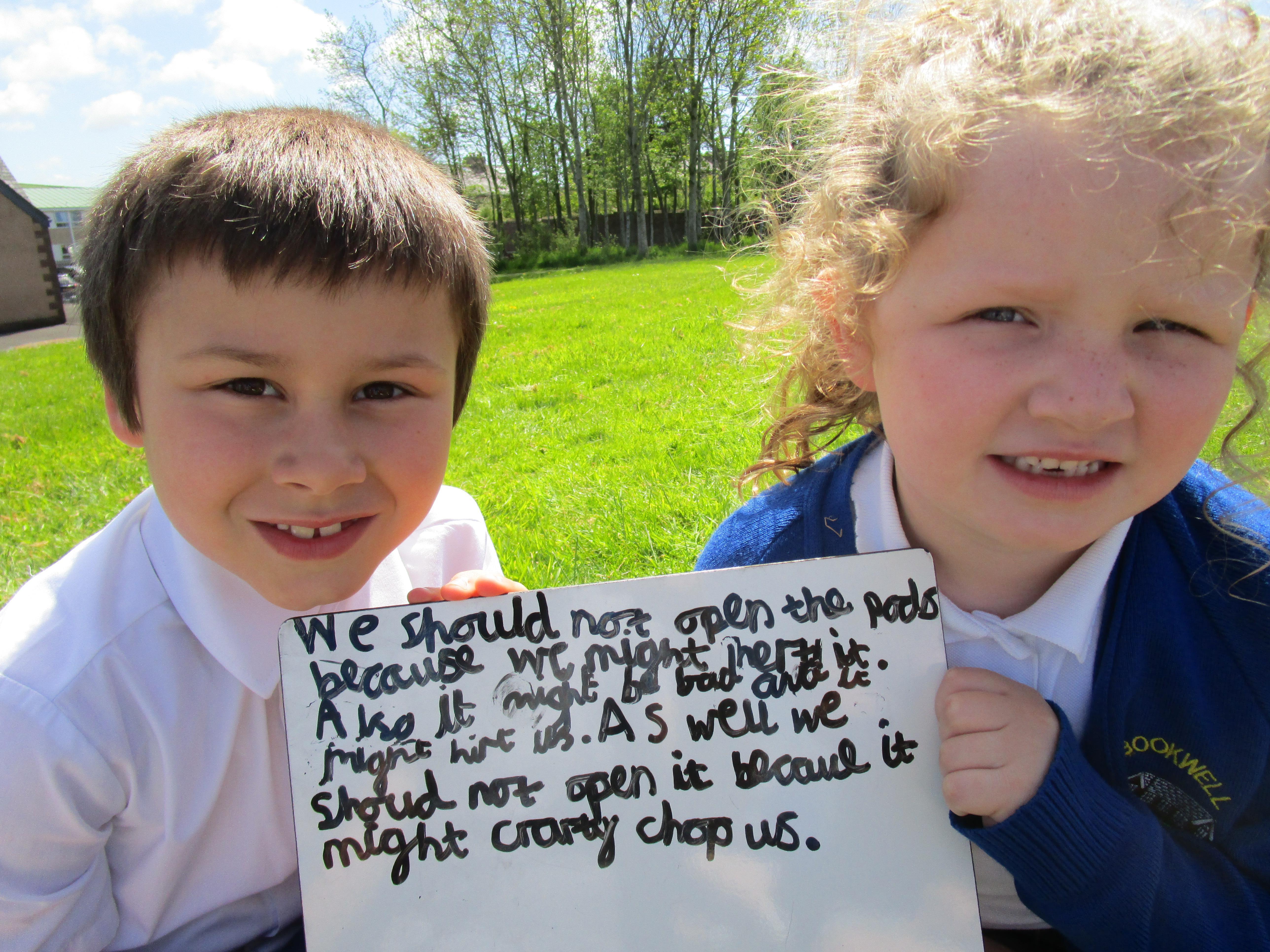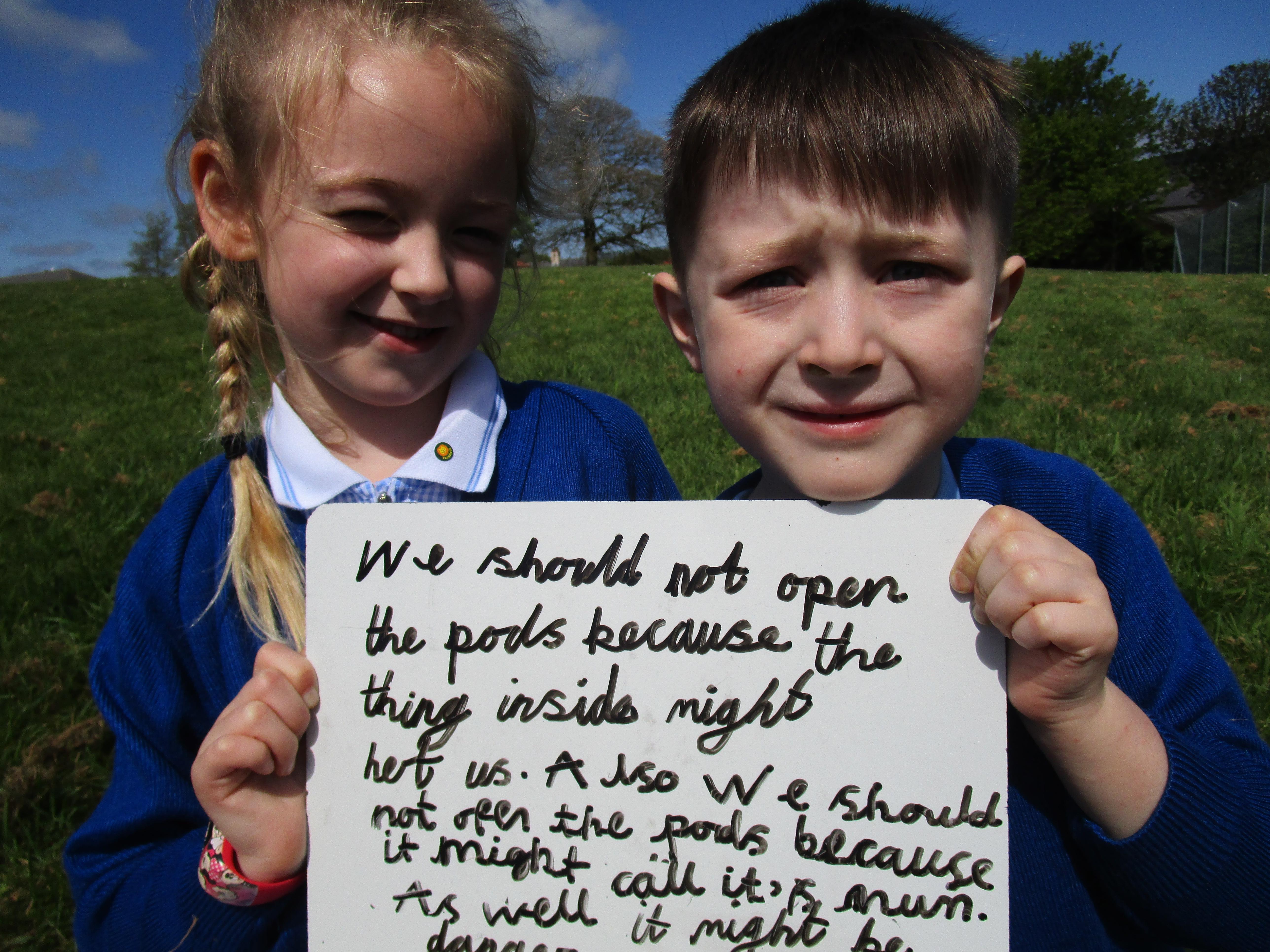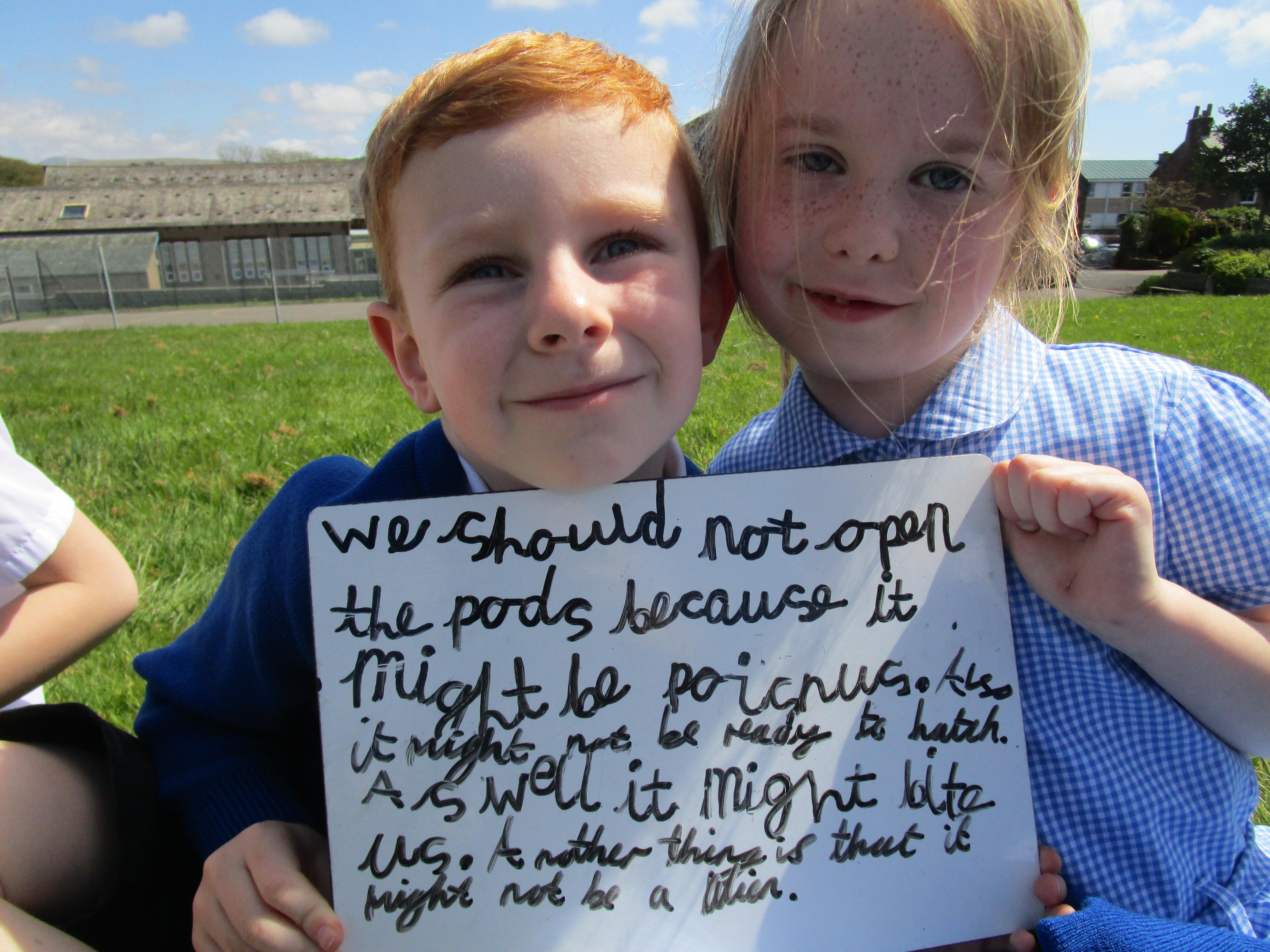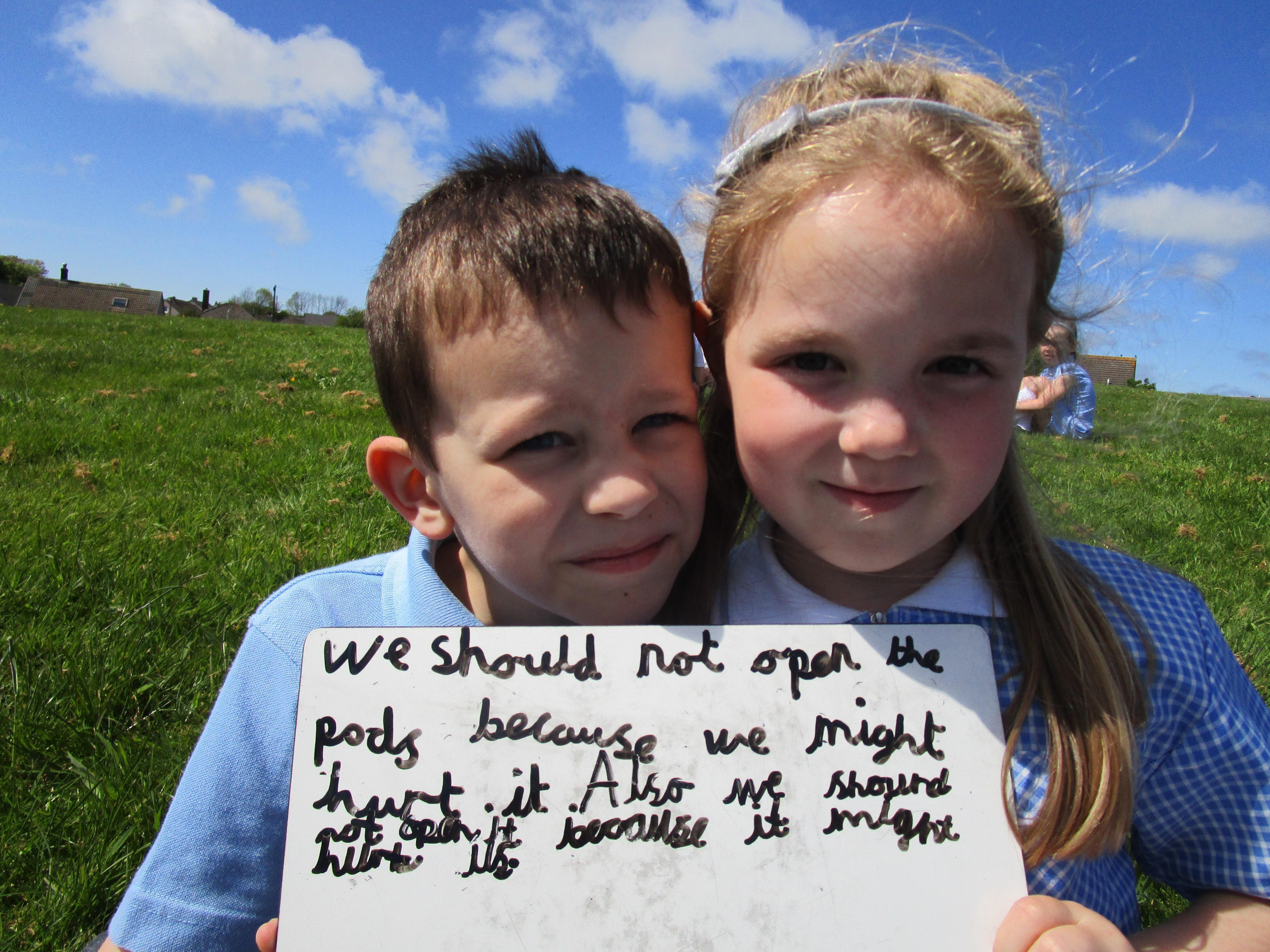 Today the children found some podberries in our school forest. This was unusual as we have just been reading about them in our class story, 'Bob and the Moontree'. The children had to decide whether we should open them or not and in the end it was decided that we should just leave them as they might be poisonous.