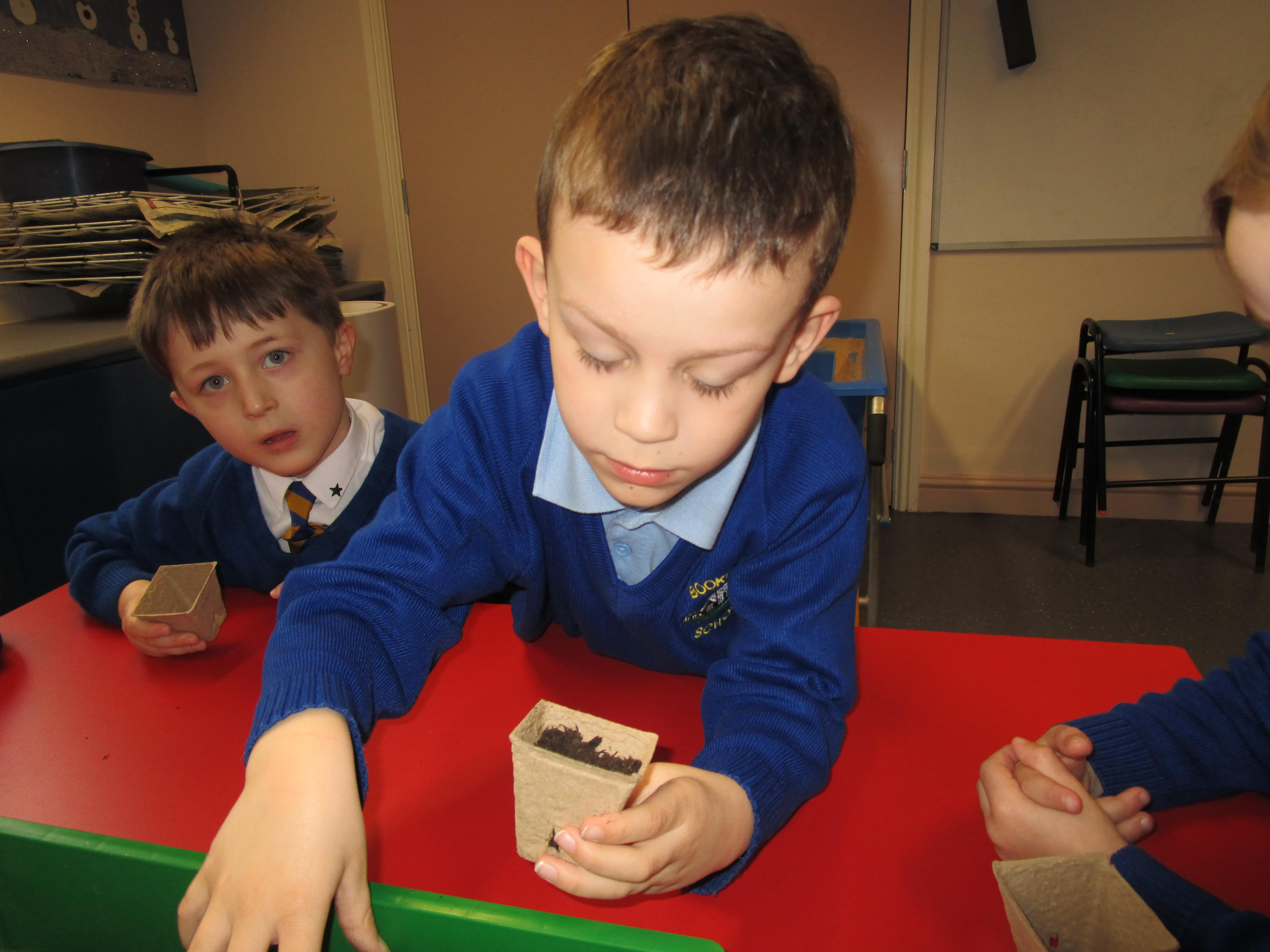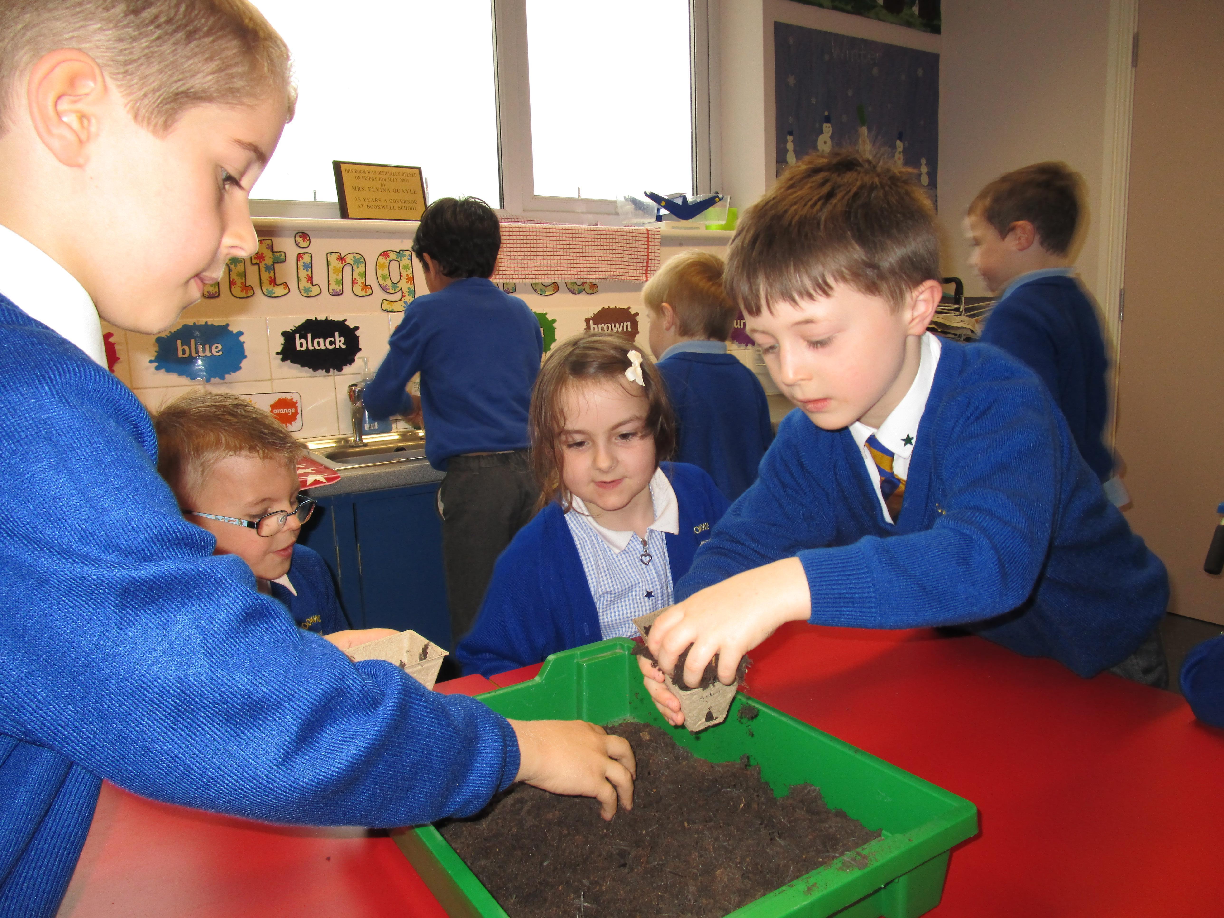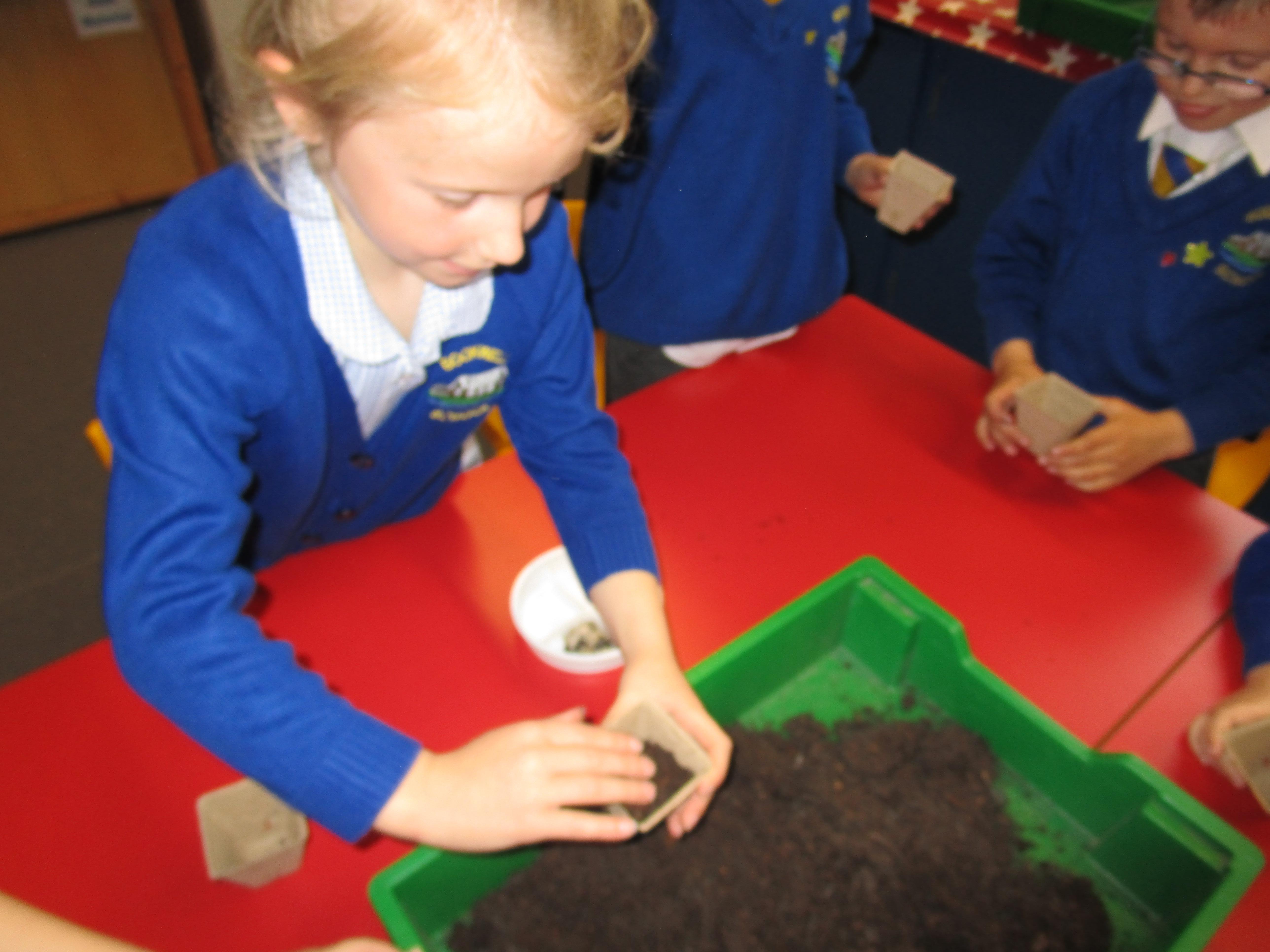Today the children have been planting sunflower seeds and we are going to watch them grow over the next few weeks. Also we will be conducting an experiment to see how the amount of sunlight received effects the growth of three different seeds.