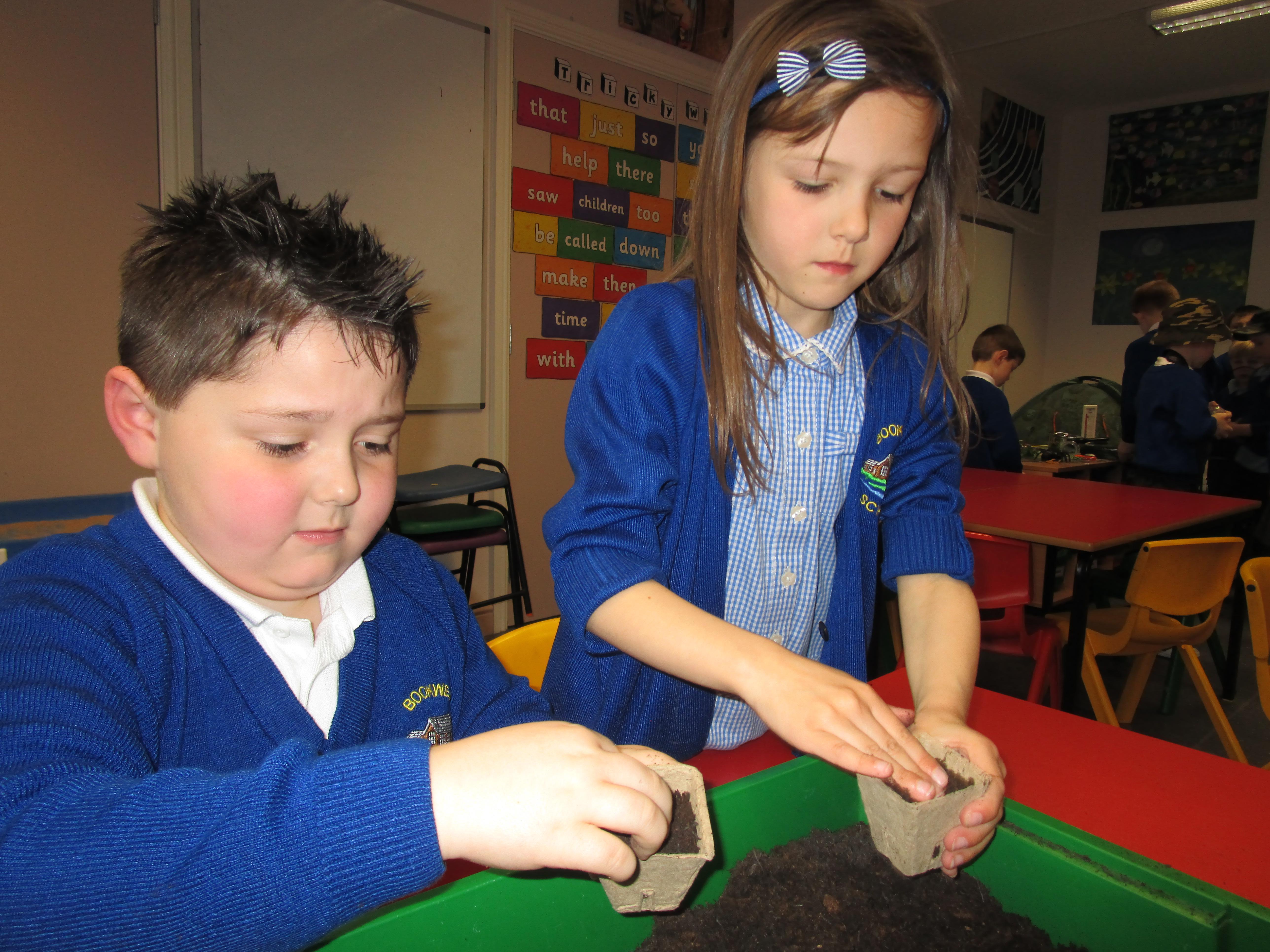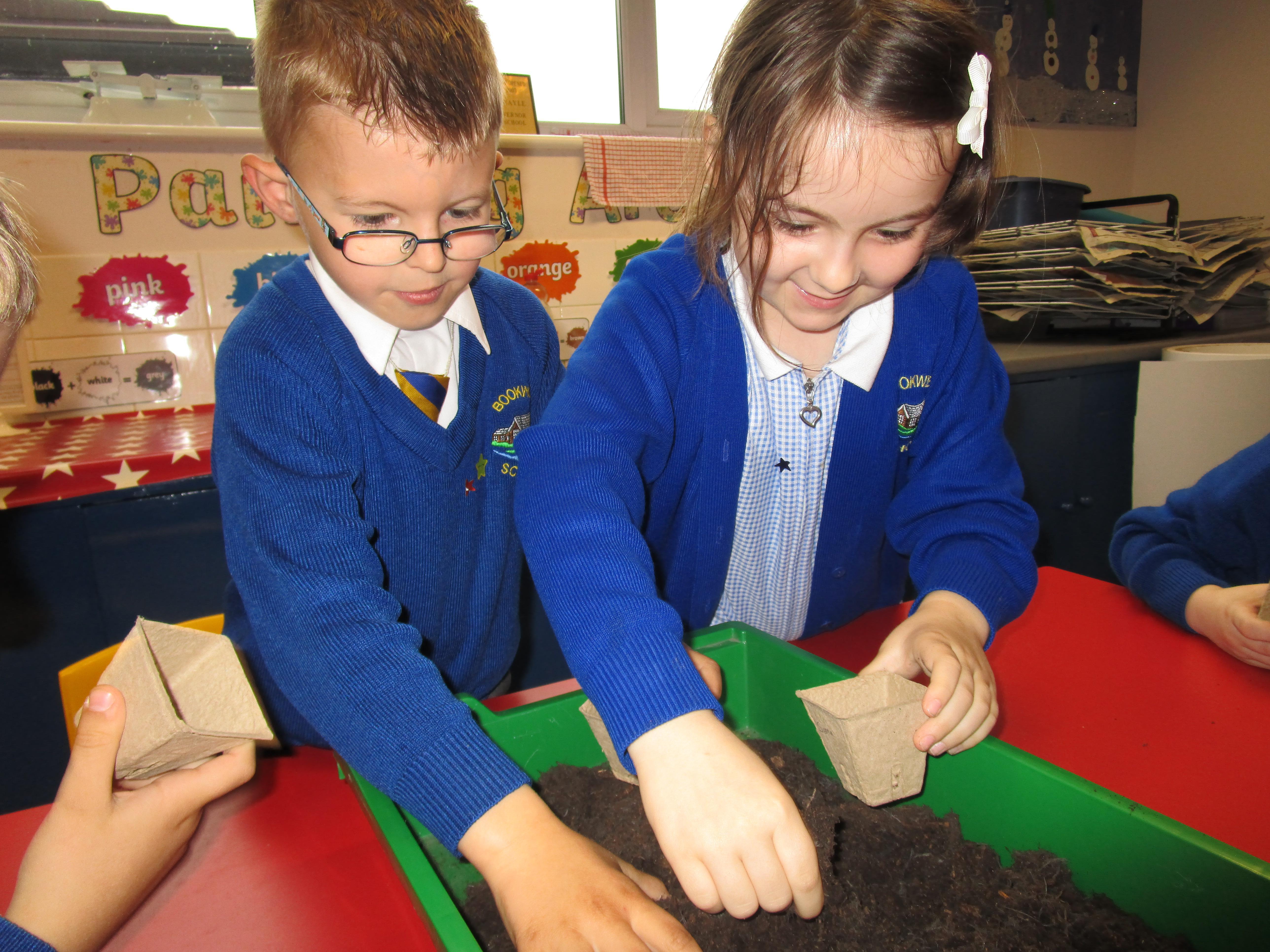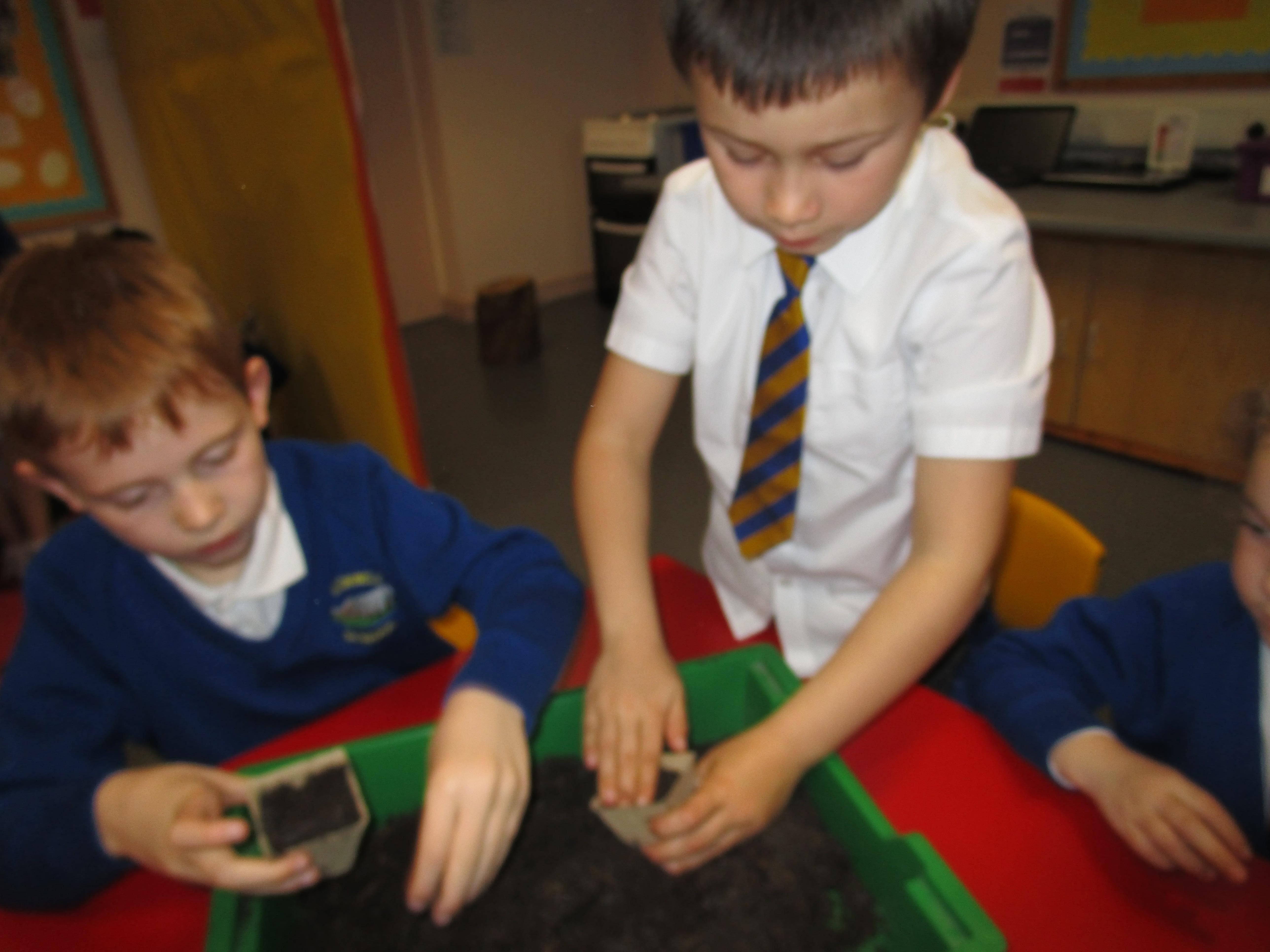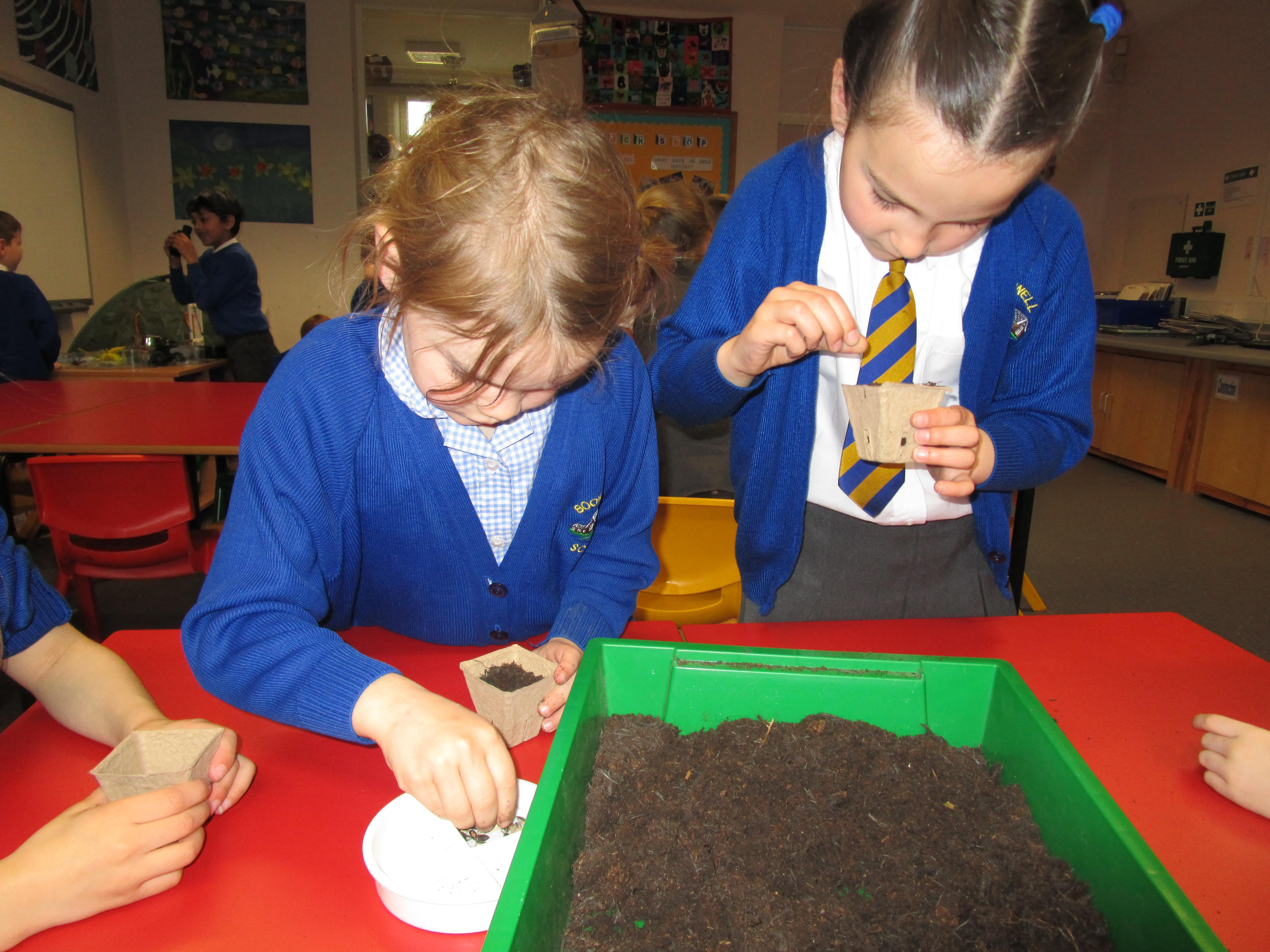 Today the children have been planting sunflower seeds and we are going to watch them grow over the next few weeks. Also we will be conducting an experiment to see how the amount of sunlight received effects the growth of three different seeds.