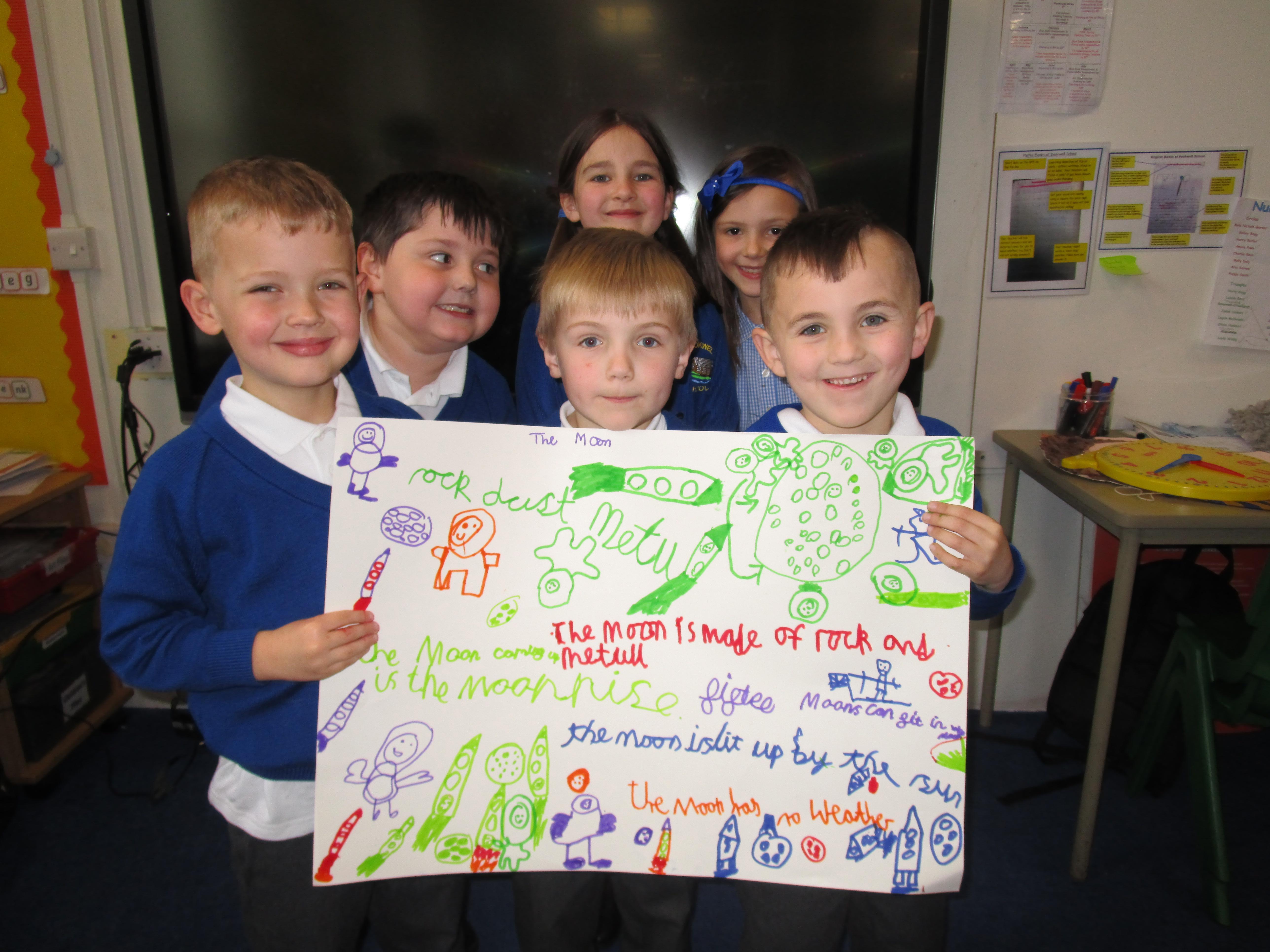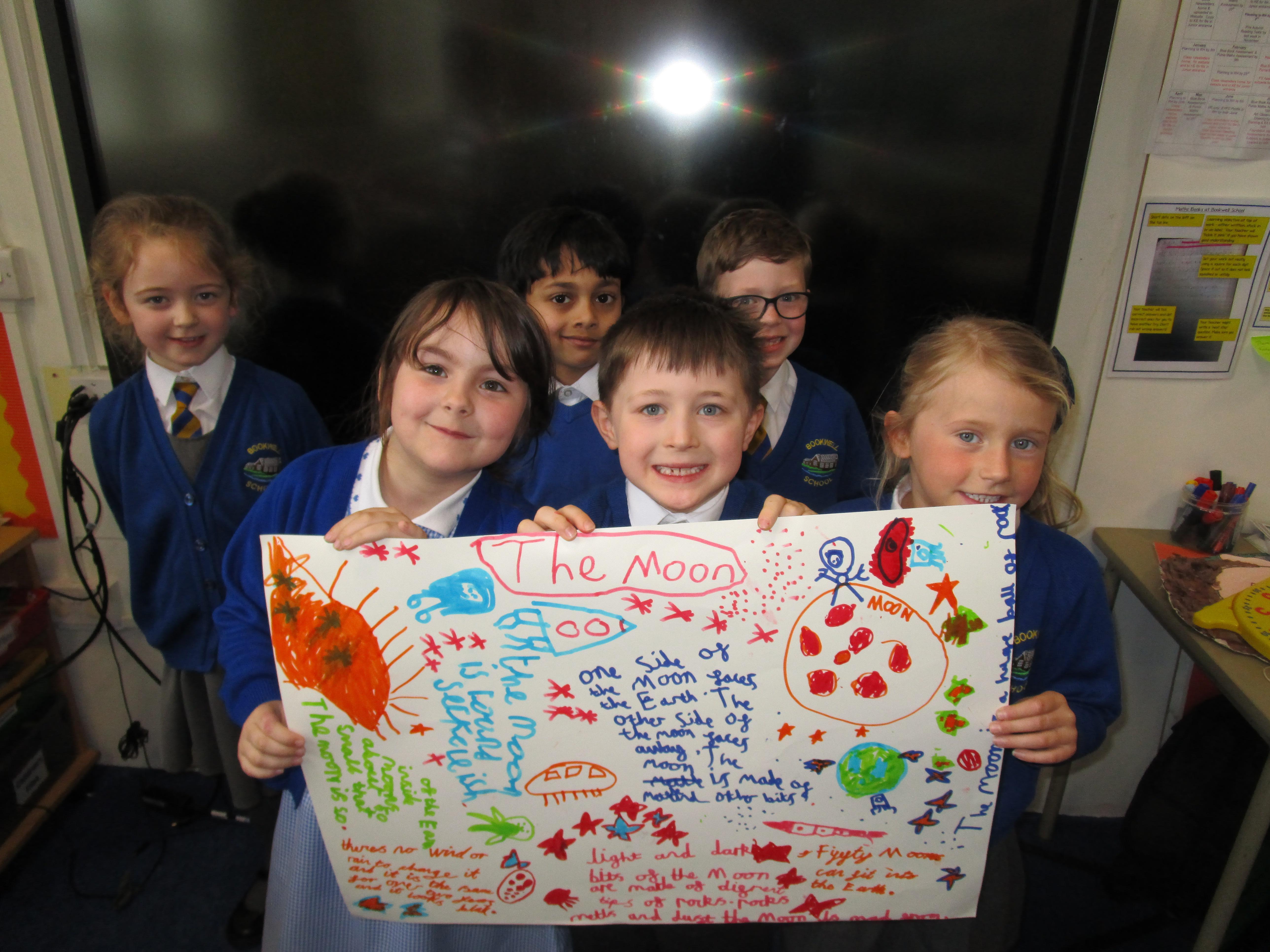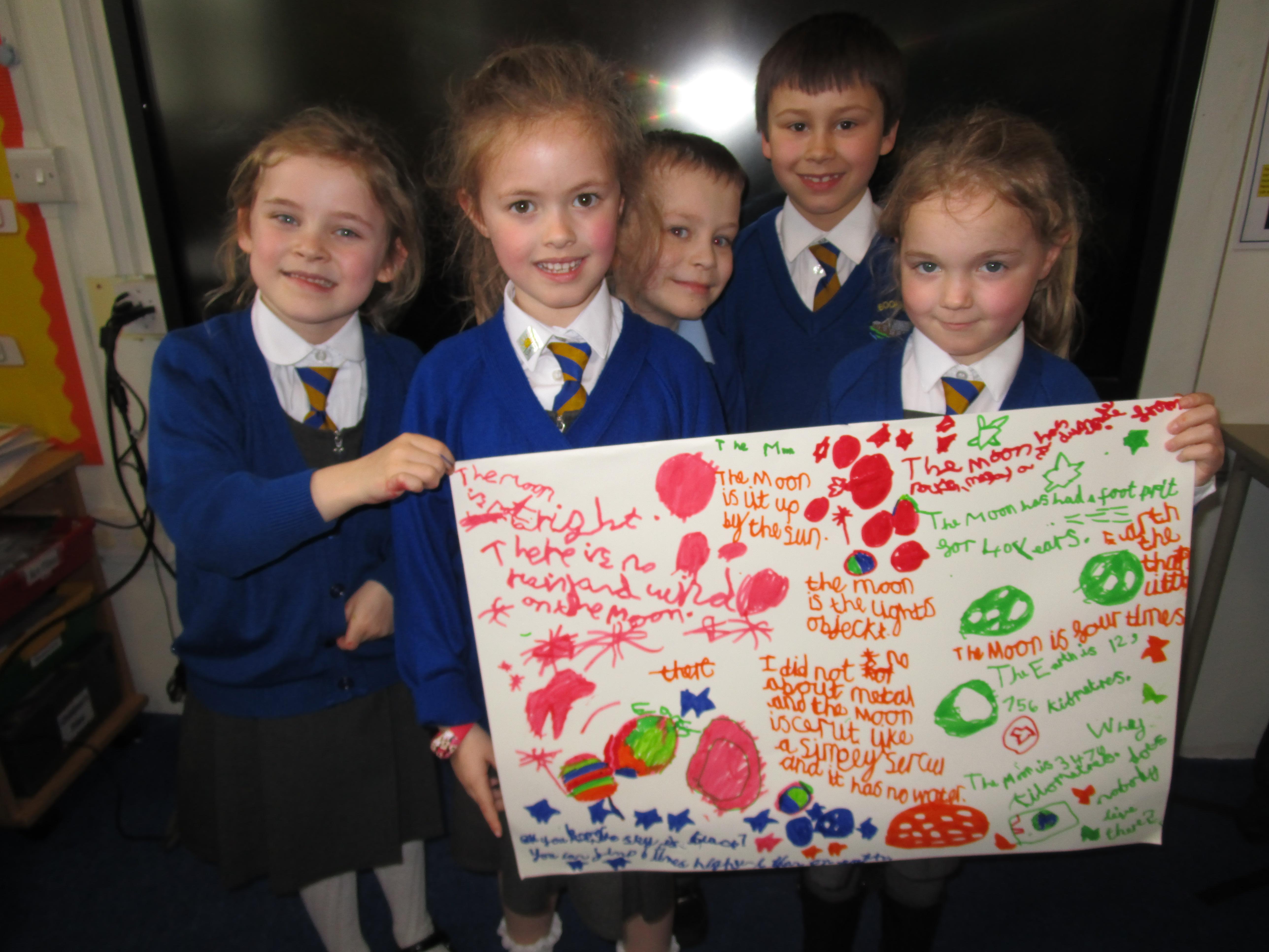 Today the children have been doing a jigsaw activity to learn new facts about the Moon. First they had to research the facts on research tables and then when they returned to their home table they had to share what they had learned with others in their group. Then the children had to design a poster sharing what they had learnt and they had to present their poster to the rest of the class.