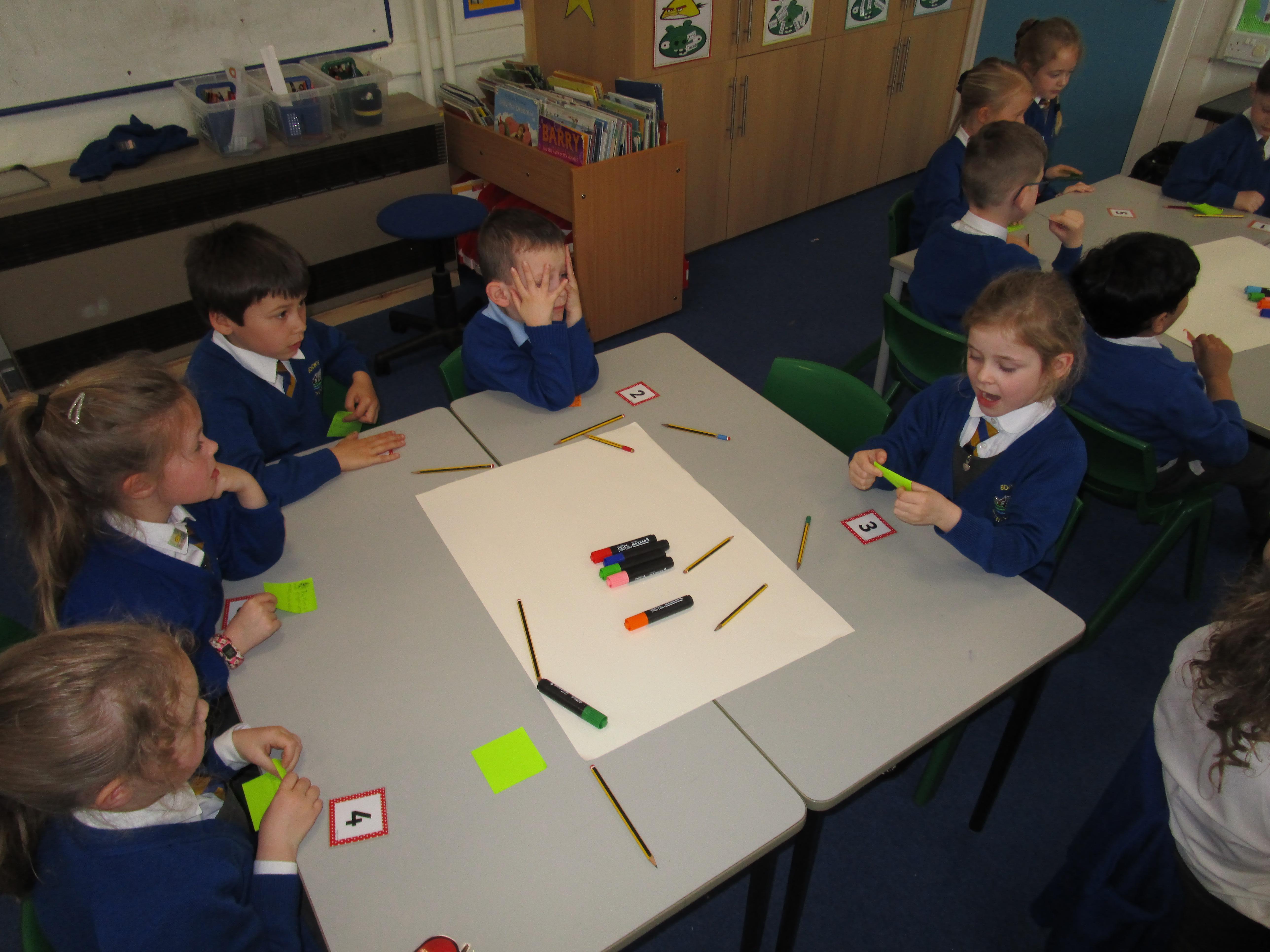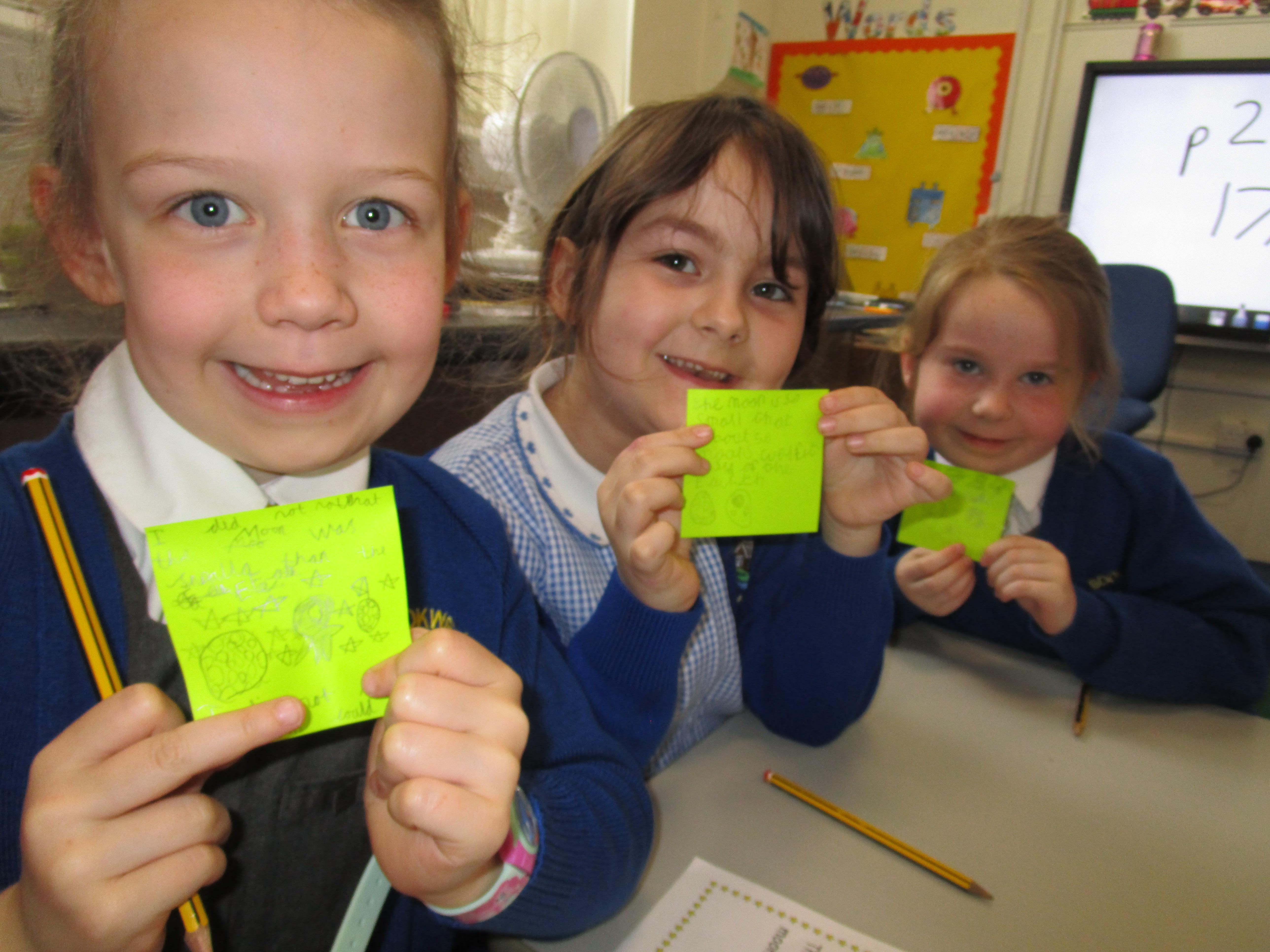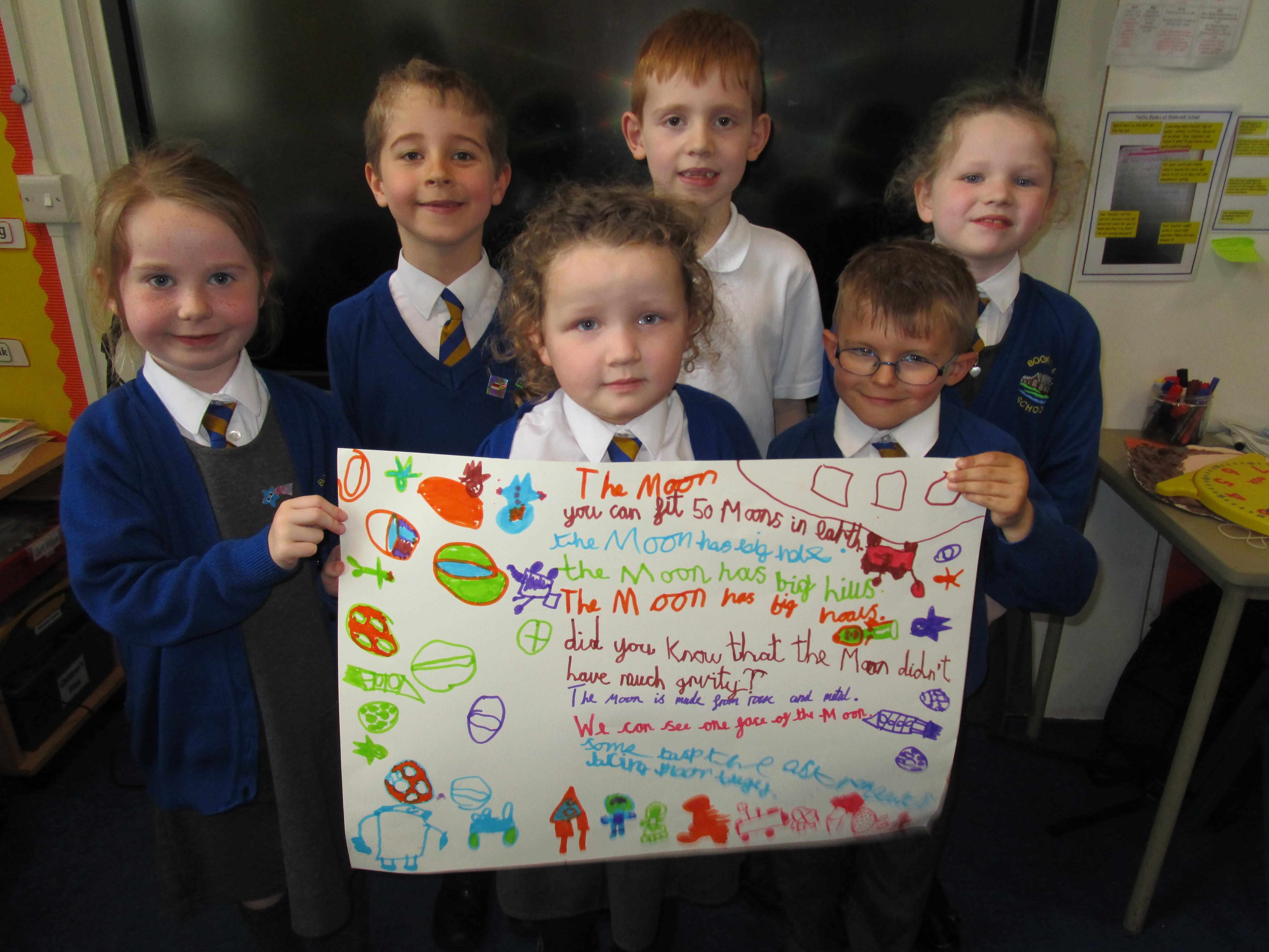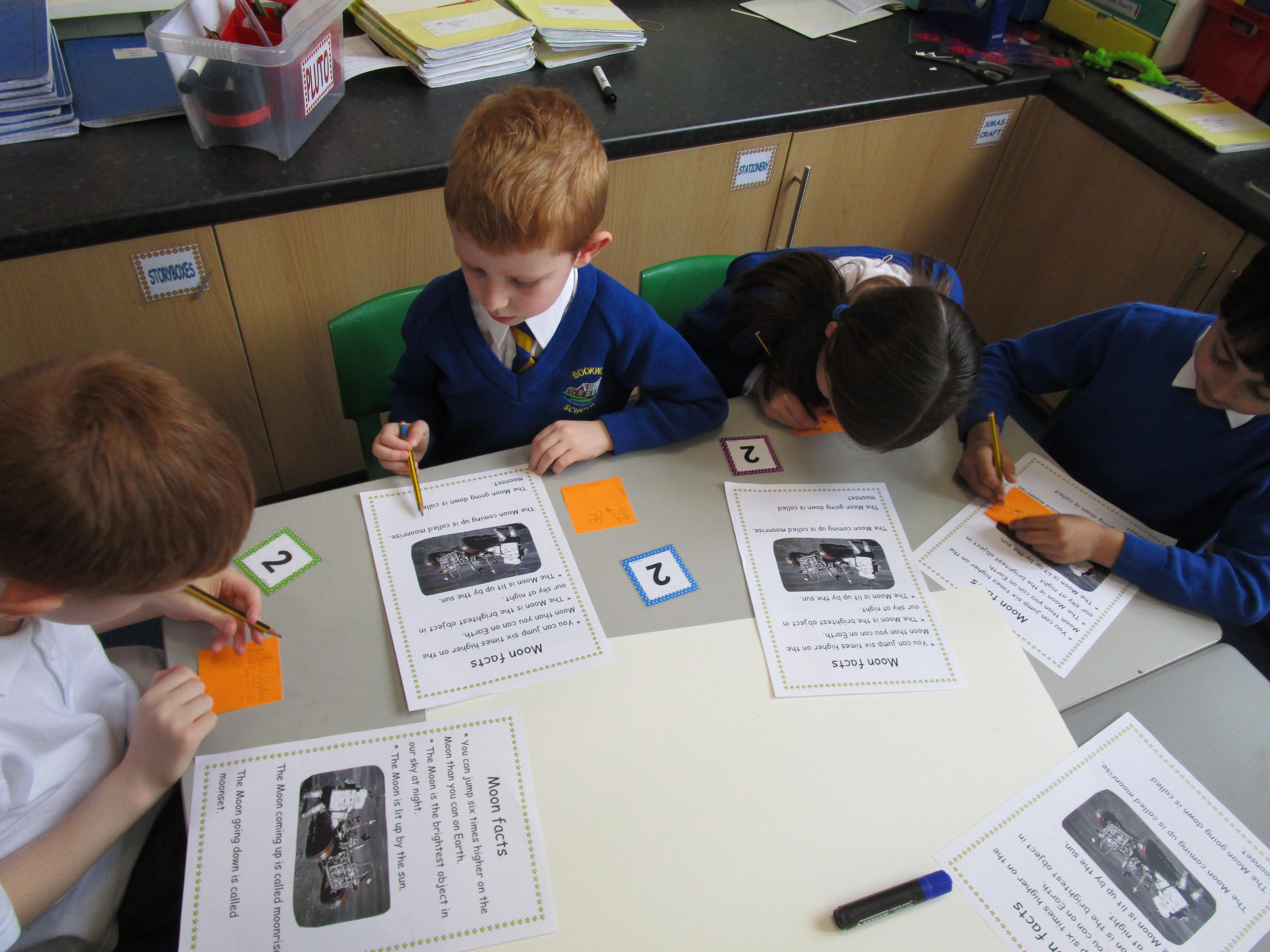 Today the children have been doing a jigsaw activity to learn new facts about the Moon. First they had to research the facts on research tables and then when they returned to their home table they had to share what they had learned with others in their group. Then the children had to design a poster sharing what they had learnt and they had to present their poster to the rest of the class.