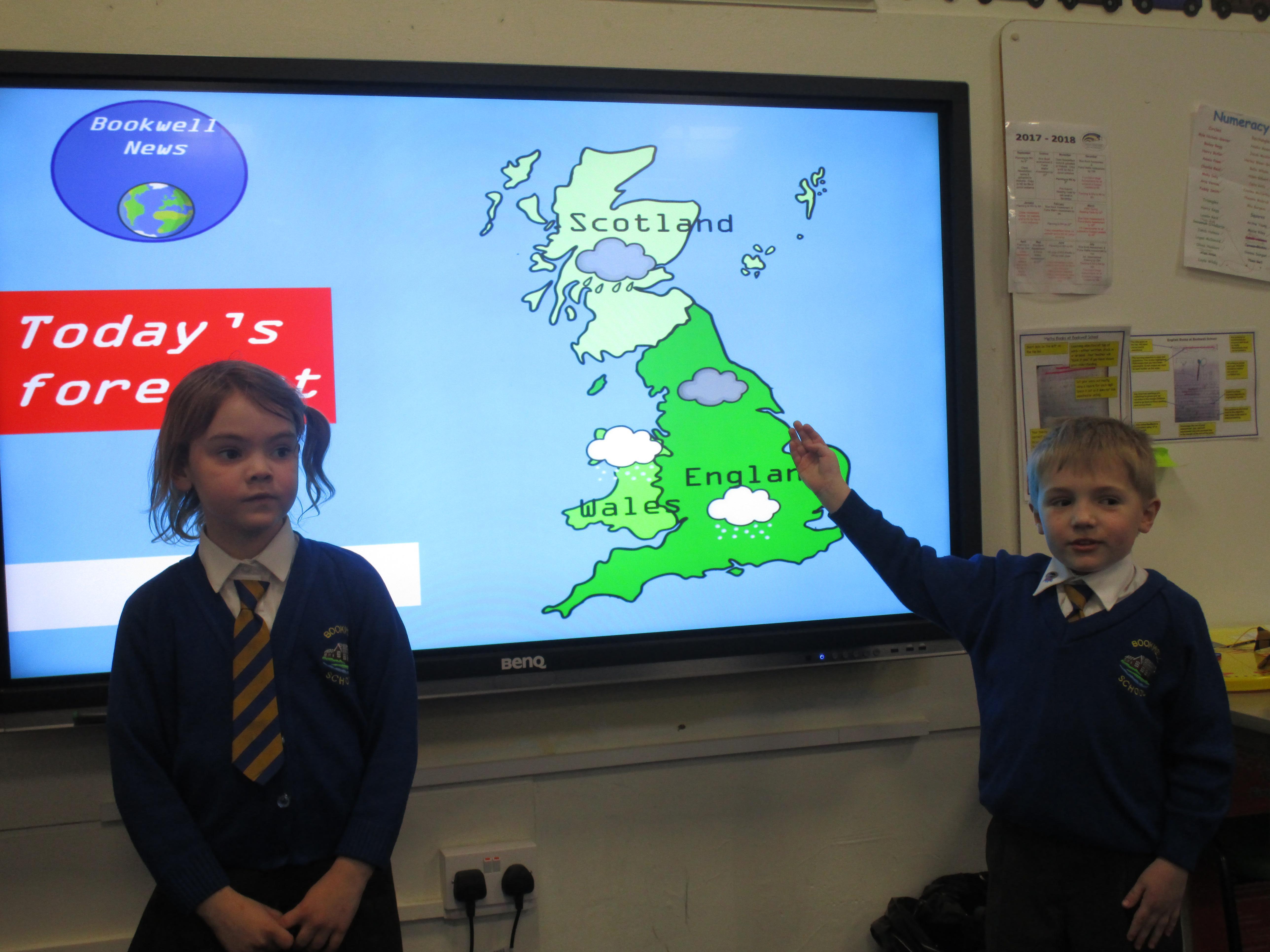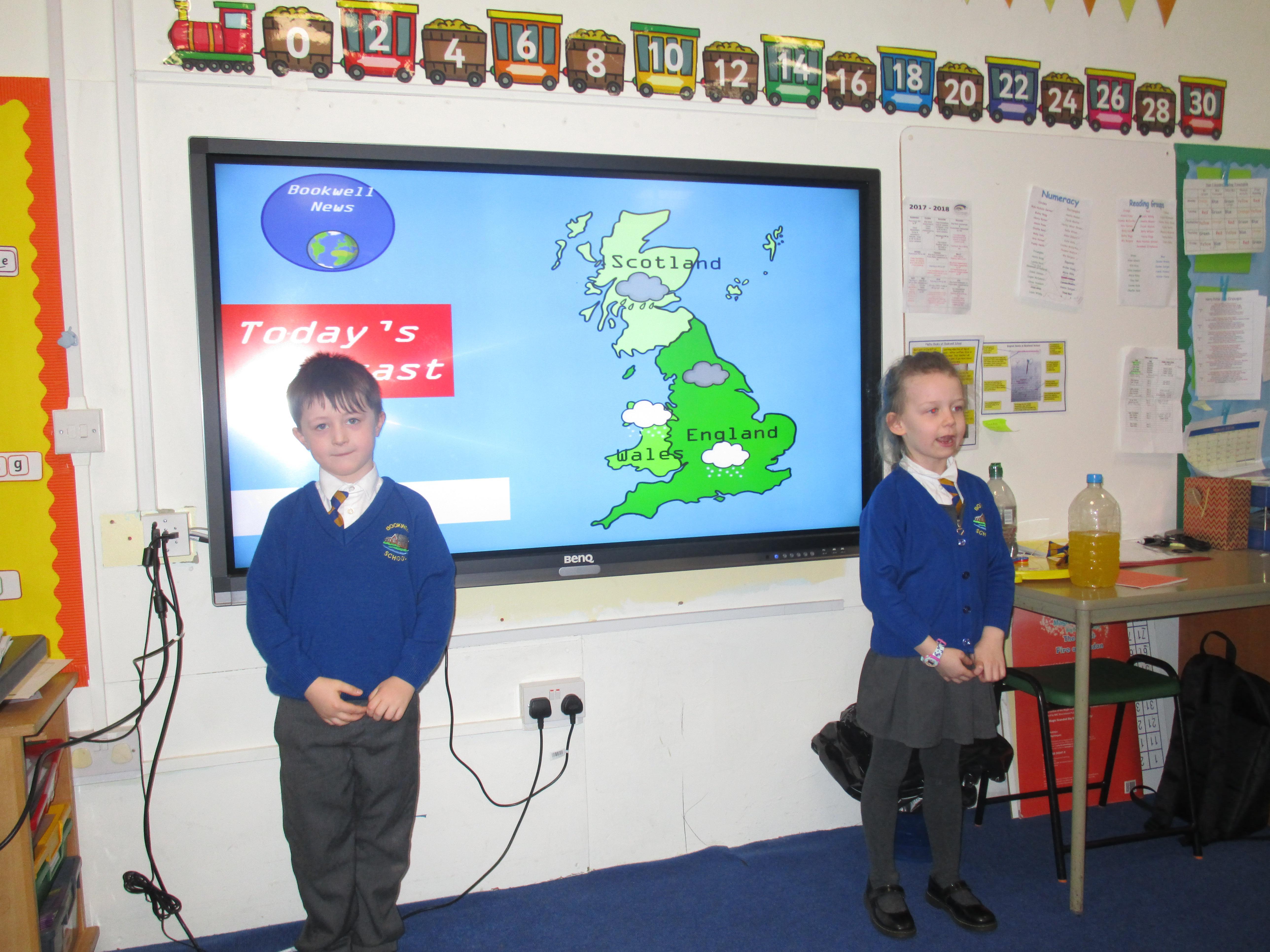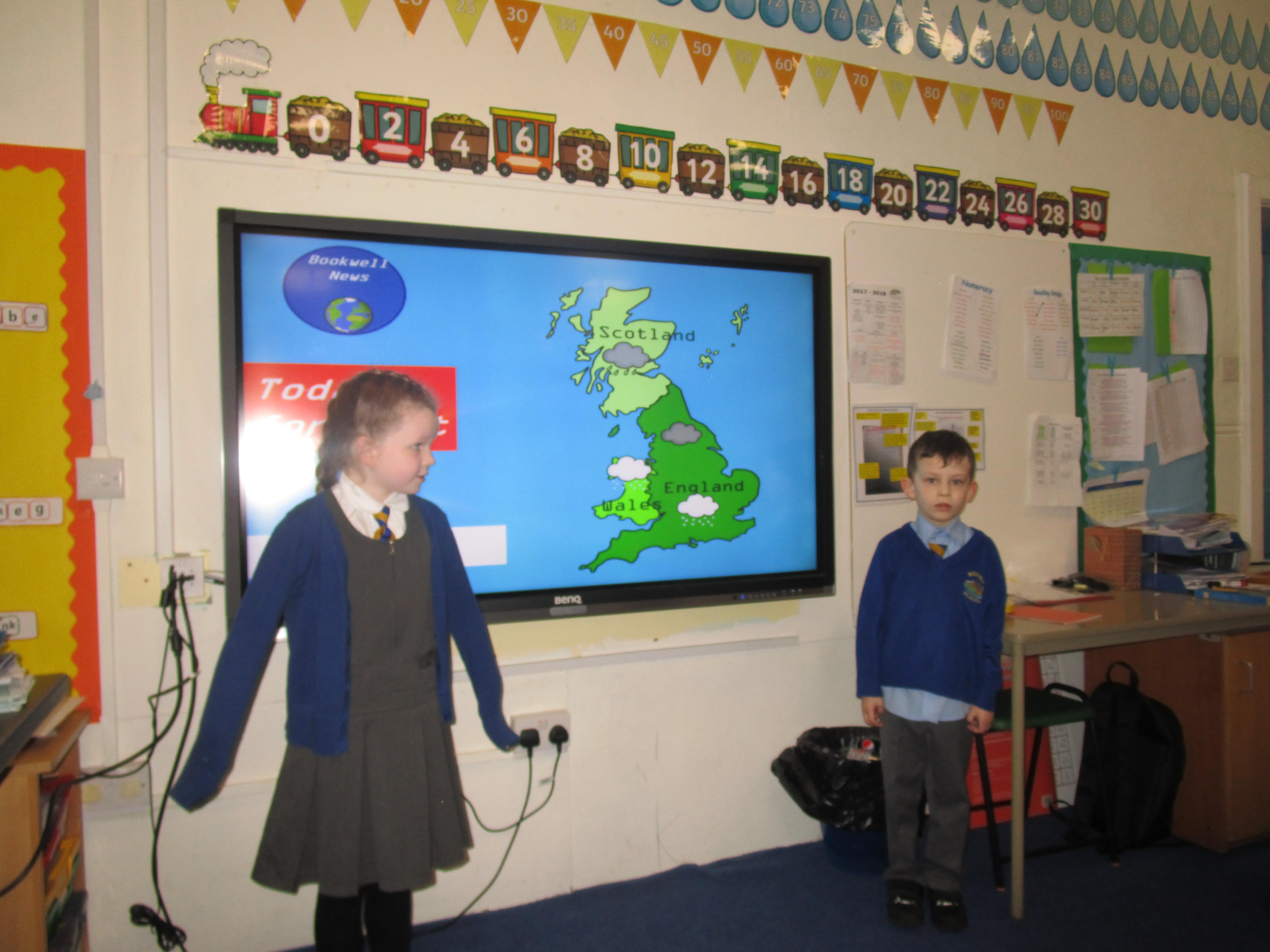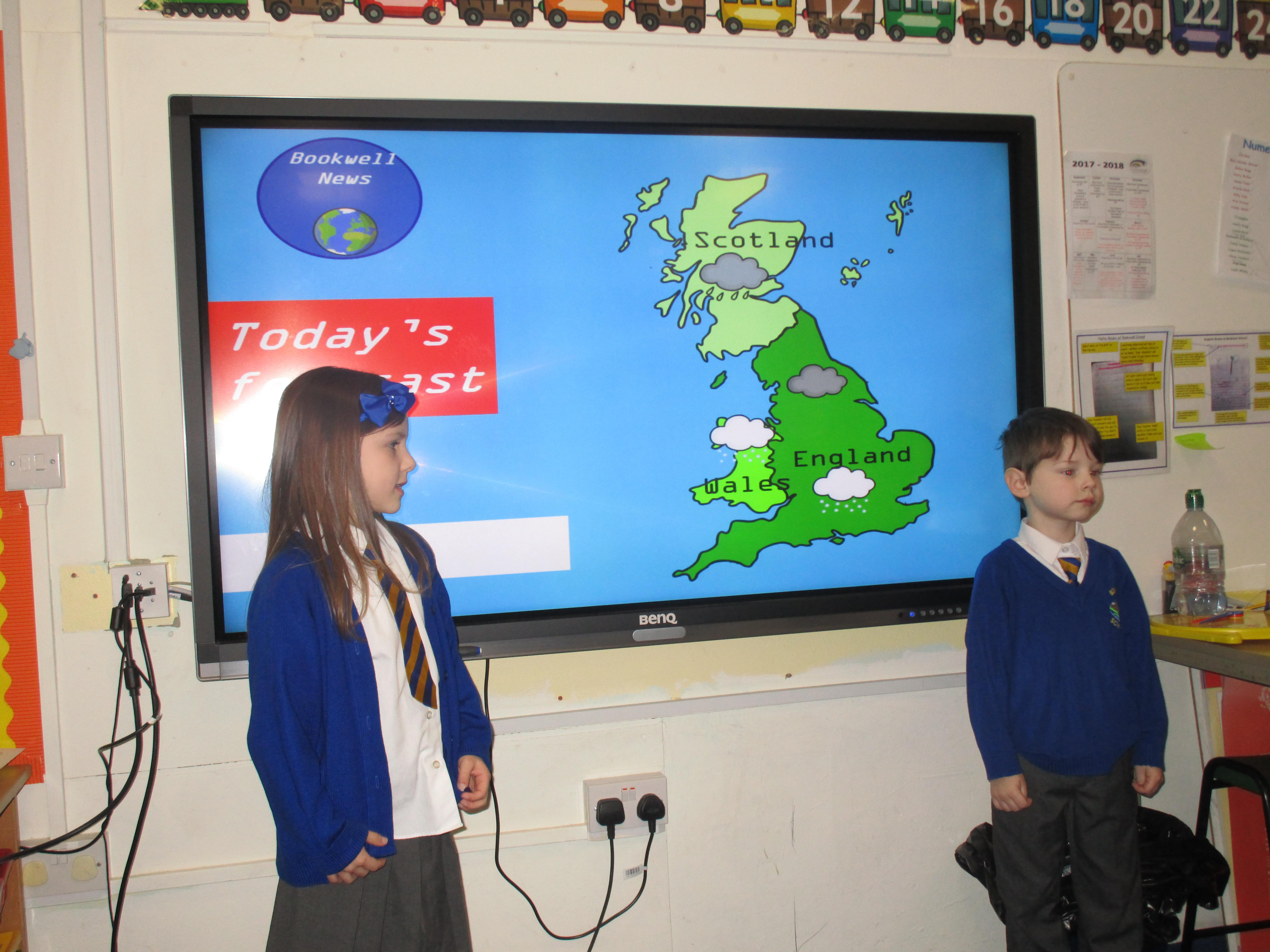 Today the children have been presenting the weather! First they had to pretend that they worked for Bookwell News and had to practice with their partners, before presenting the weather to the whole class. They also had to think carefully about how the weather would change what people would wear and include this in their presentation. They had a great time and showed a great level of confidence!