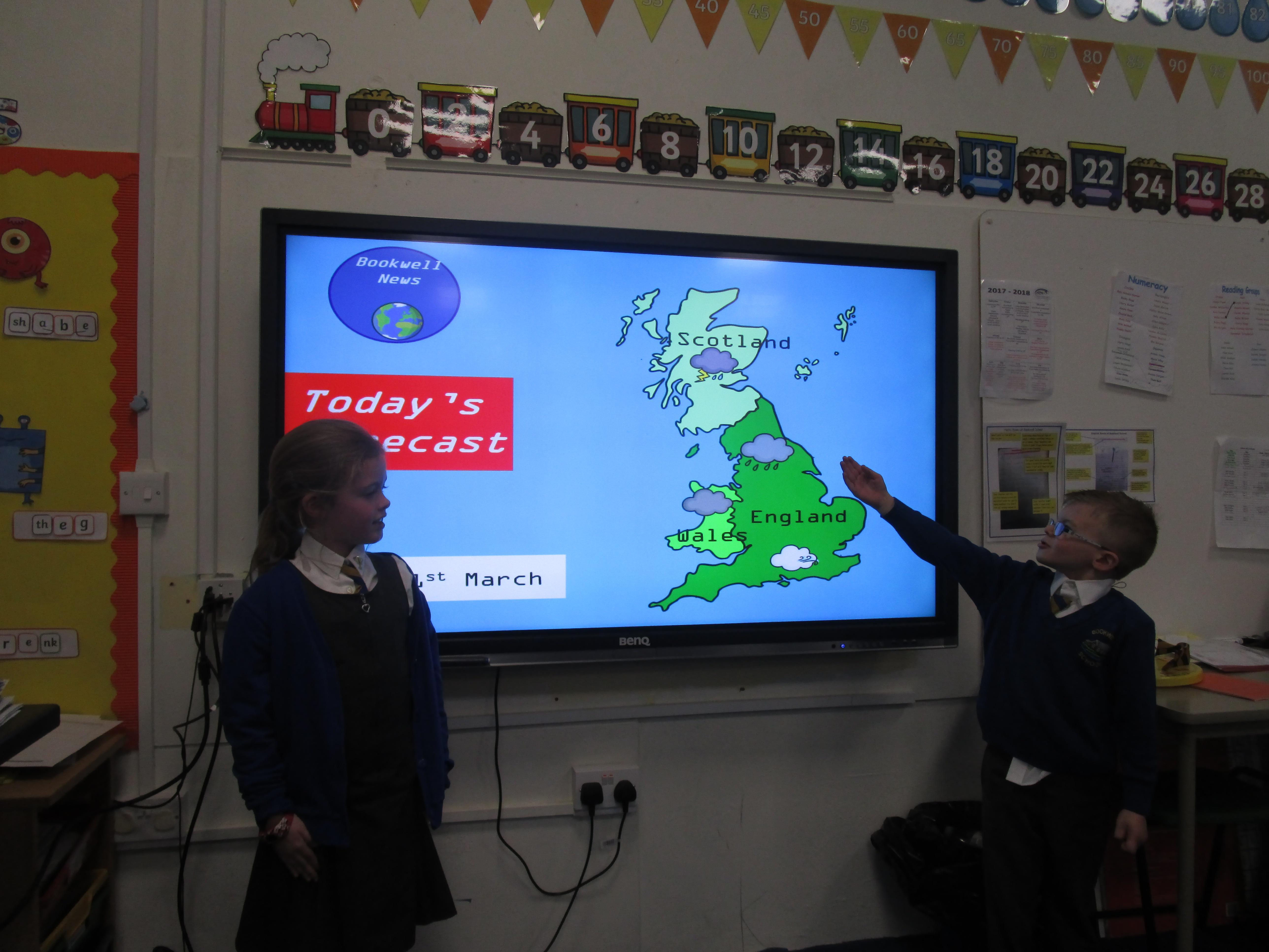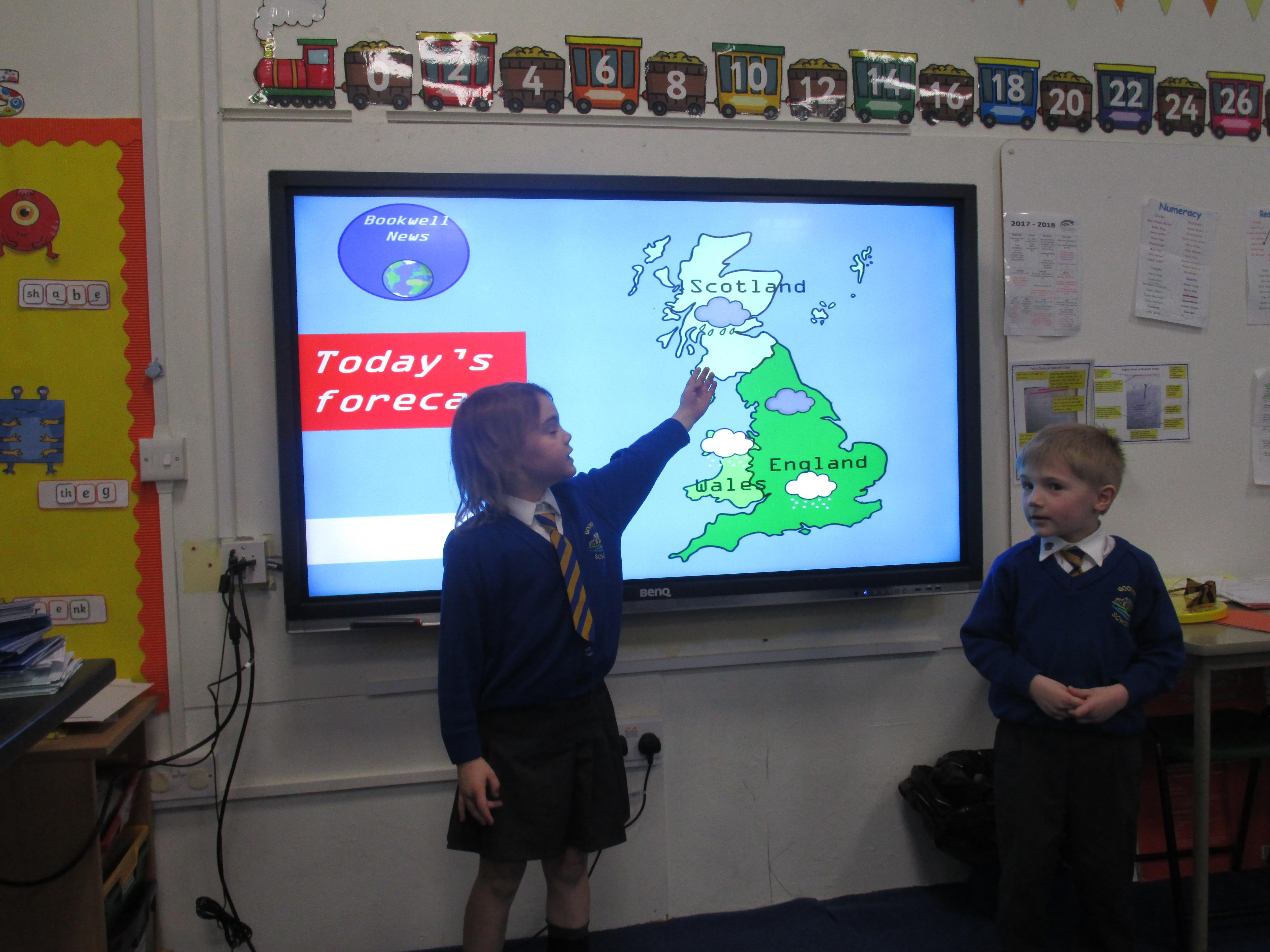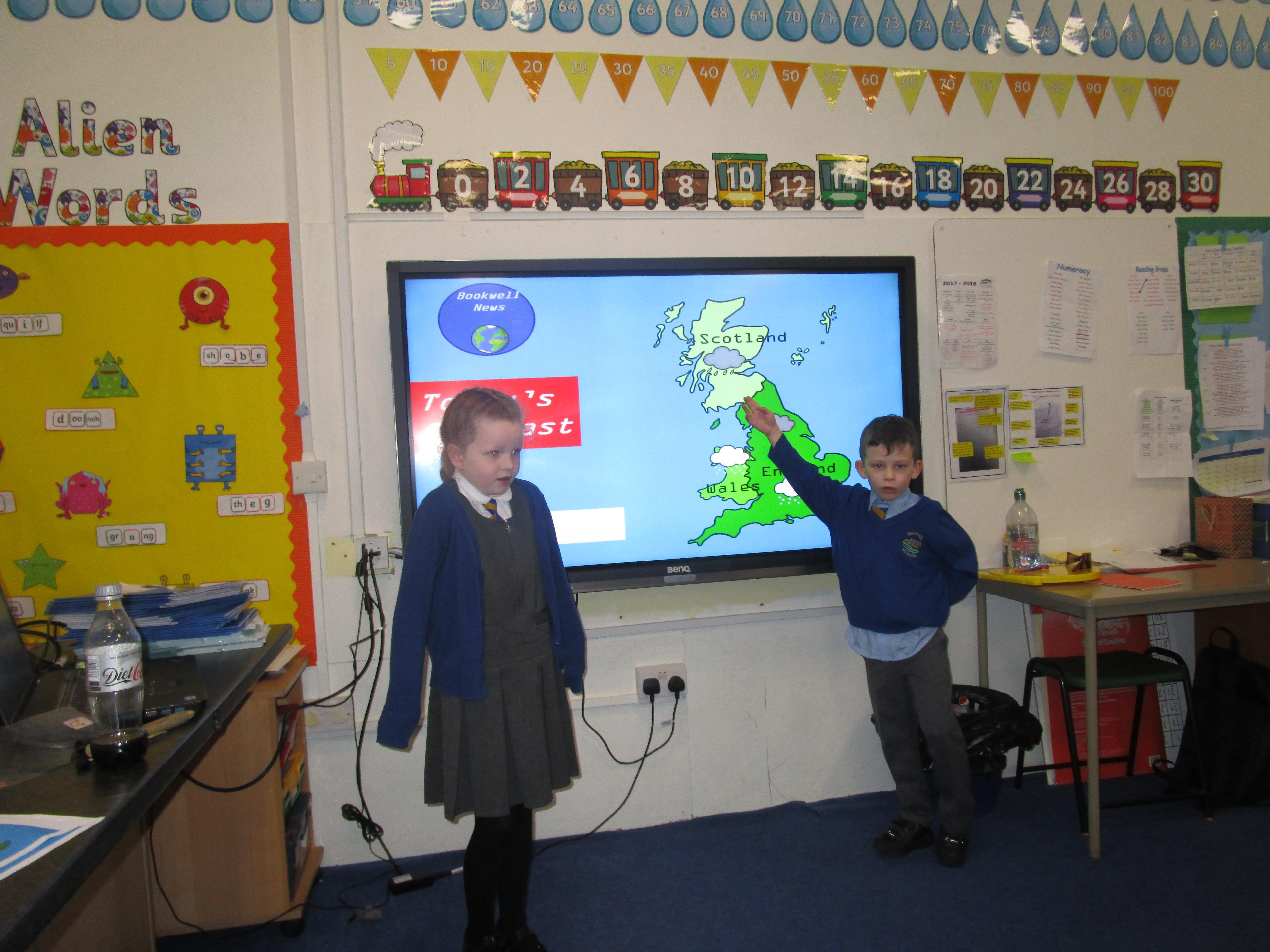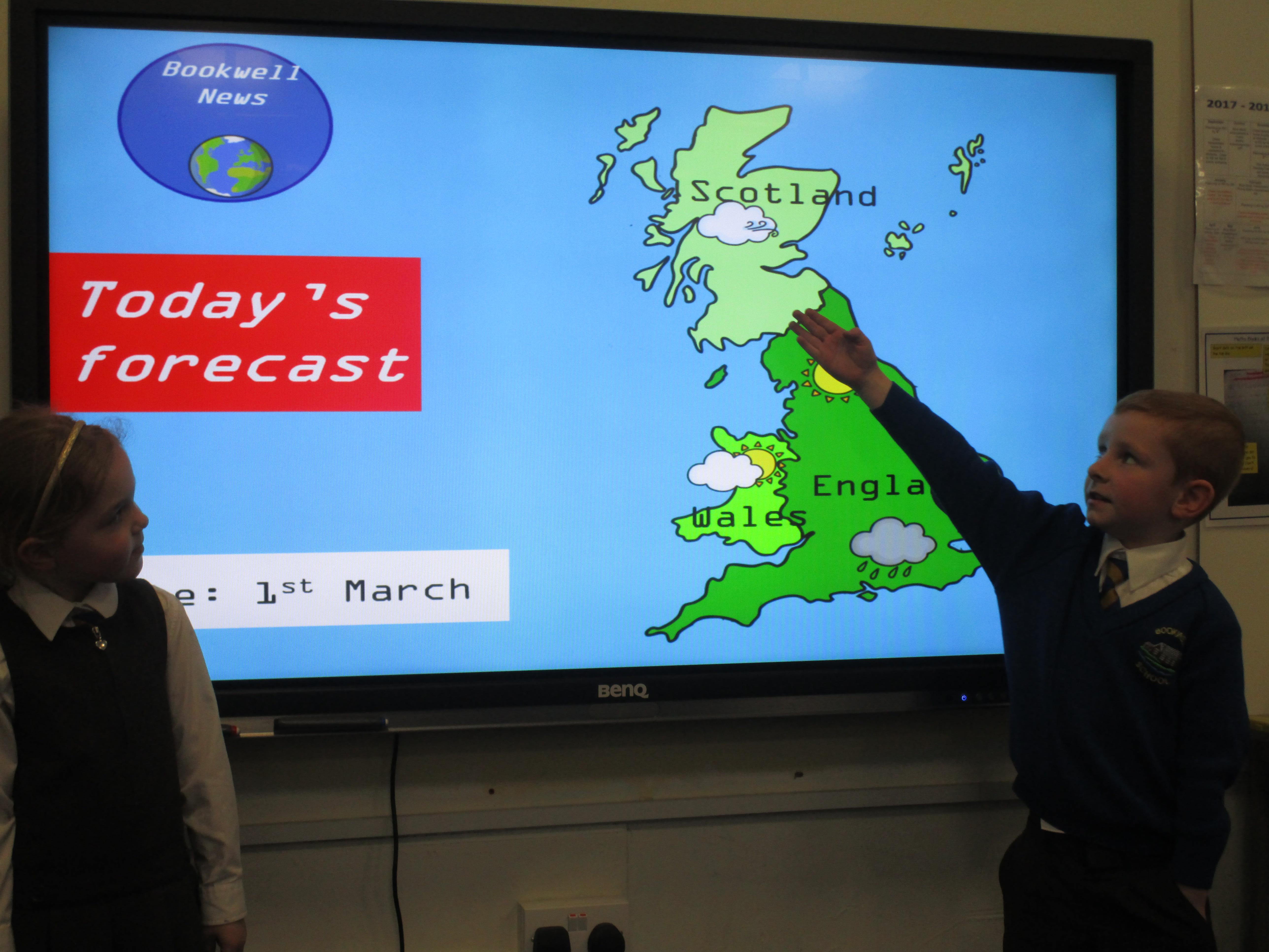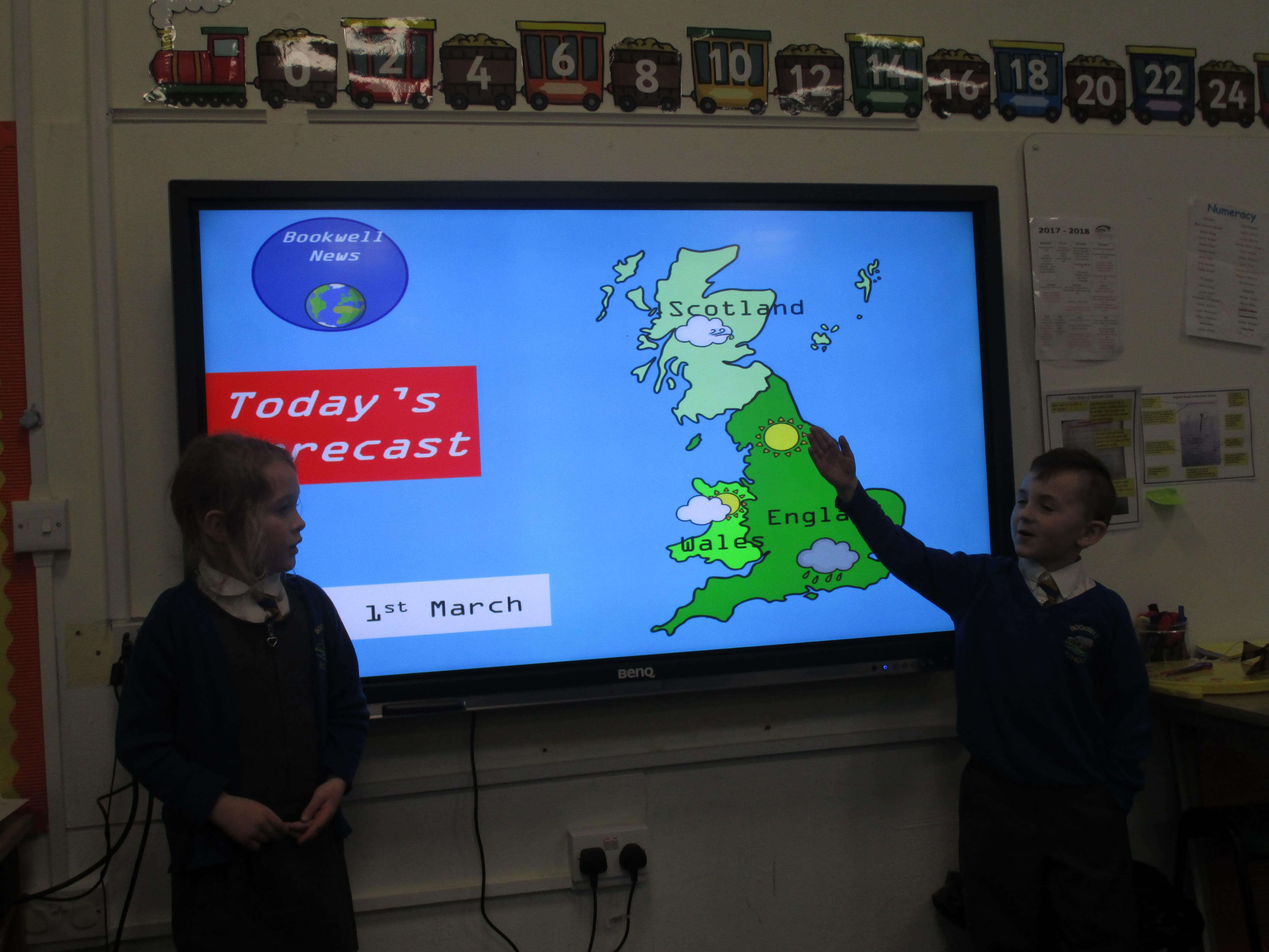Today the children have been presenting the weather! First they had to pretend that they worked for Bookwell News and had to practice with their partners, before presenting the weather to the whole class. They also had to think carefully about how the weather would change what people would wear and include this in their presentation. They had a great time and showed a great level of confidence!