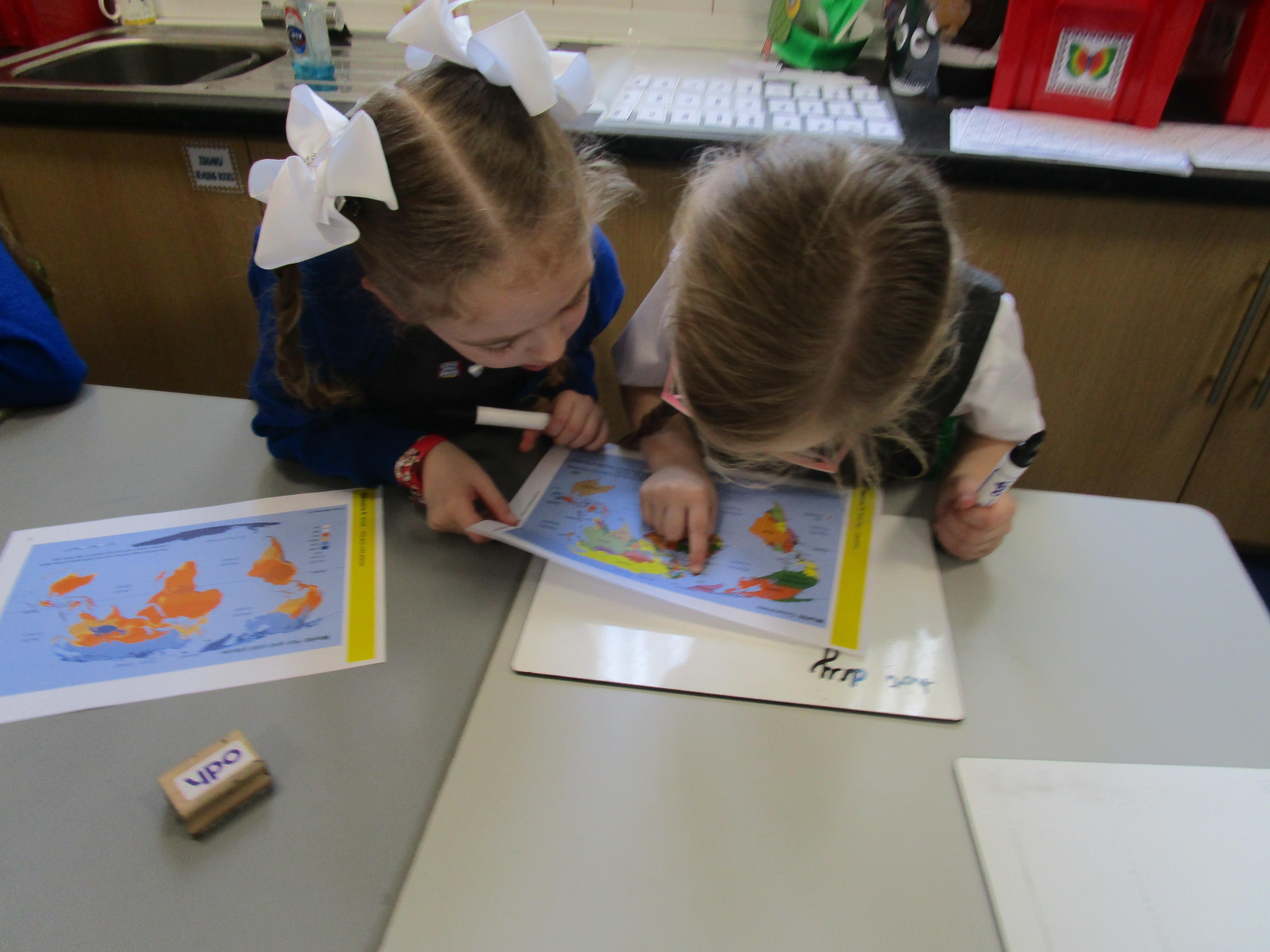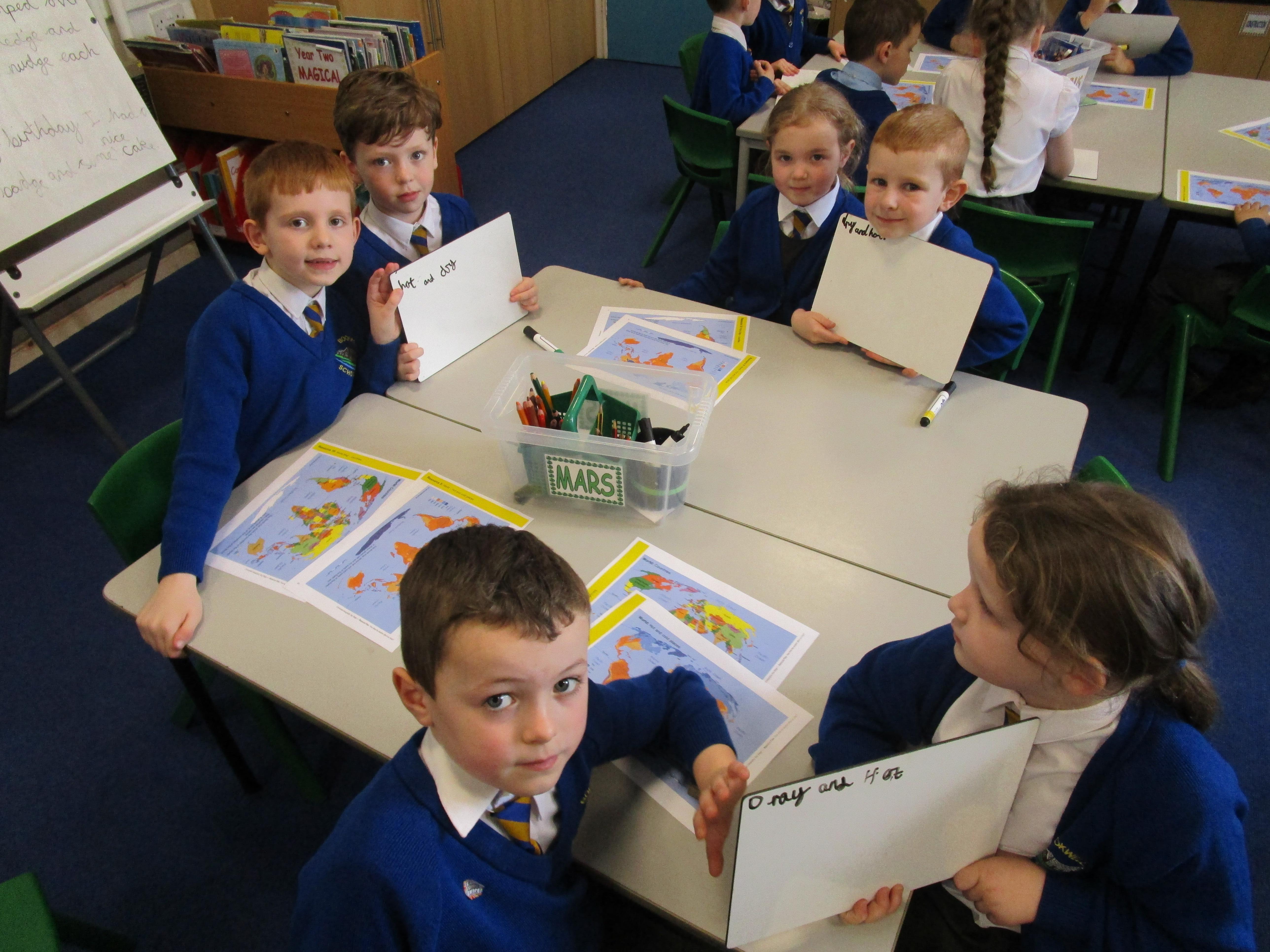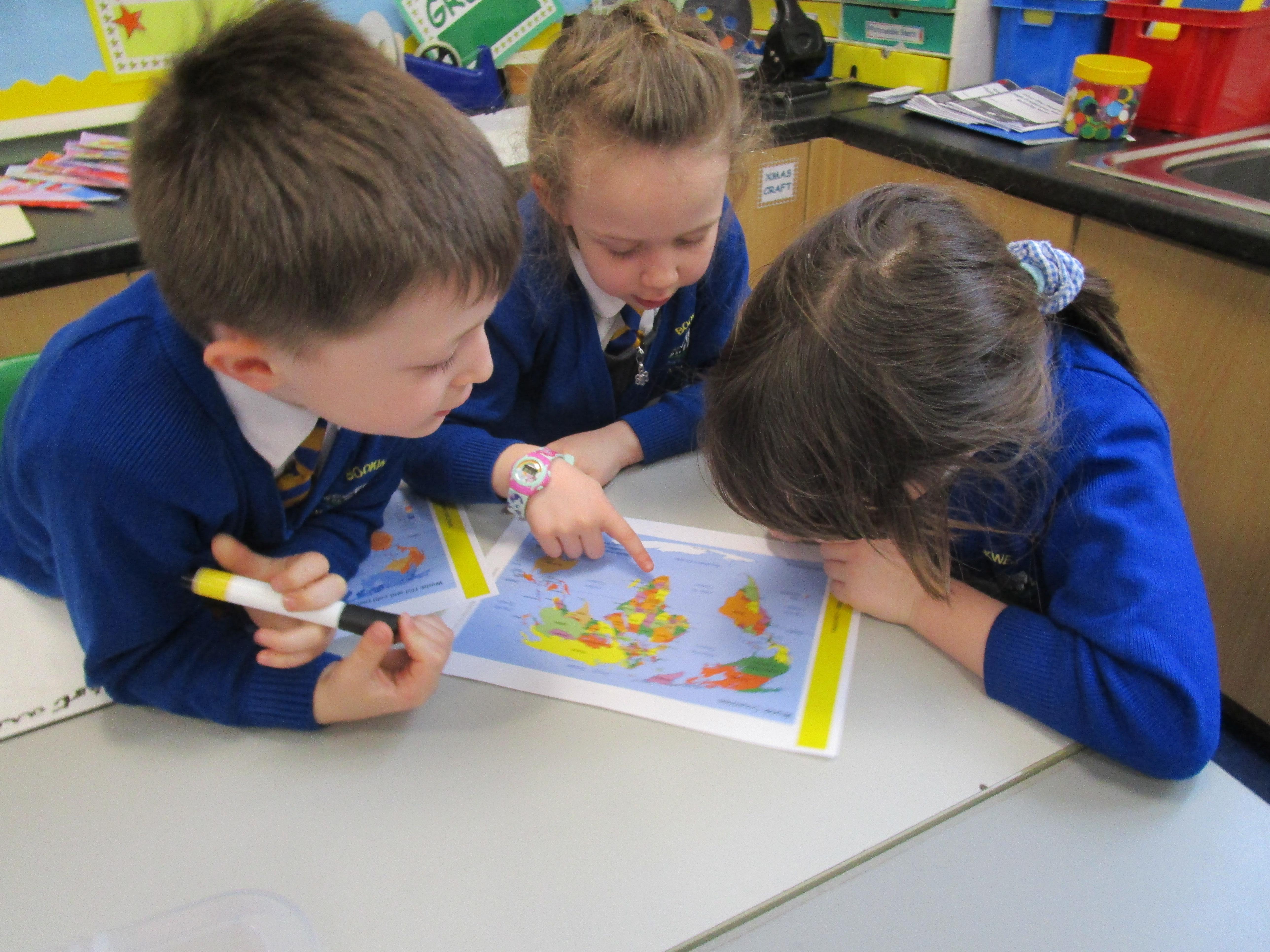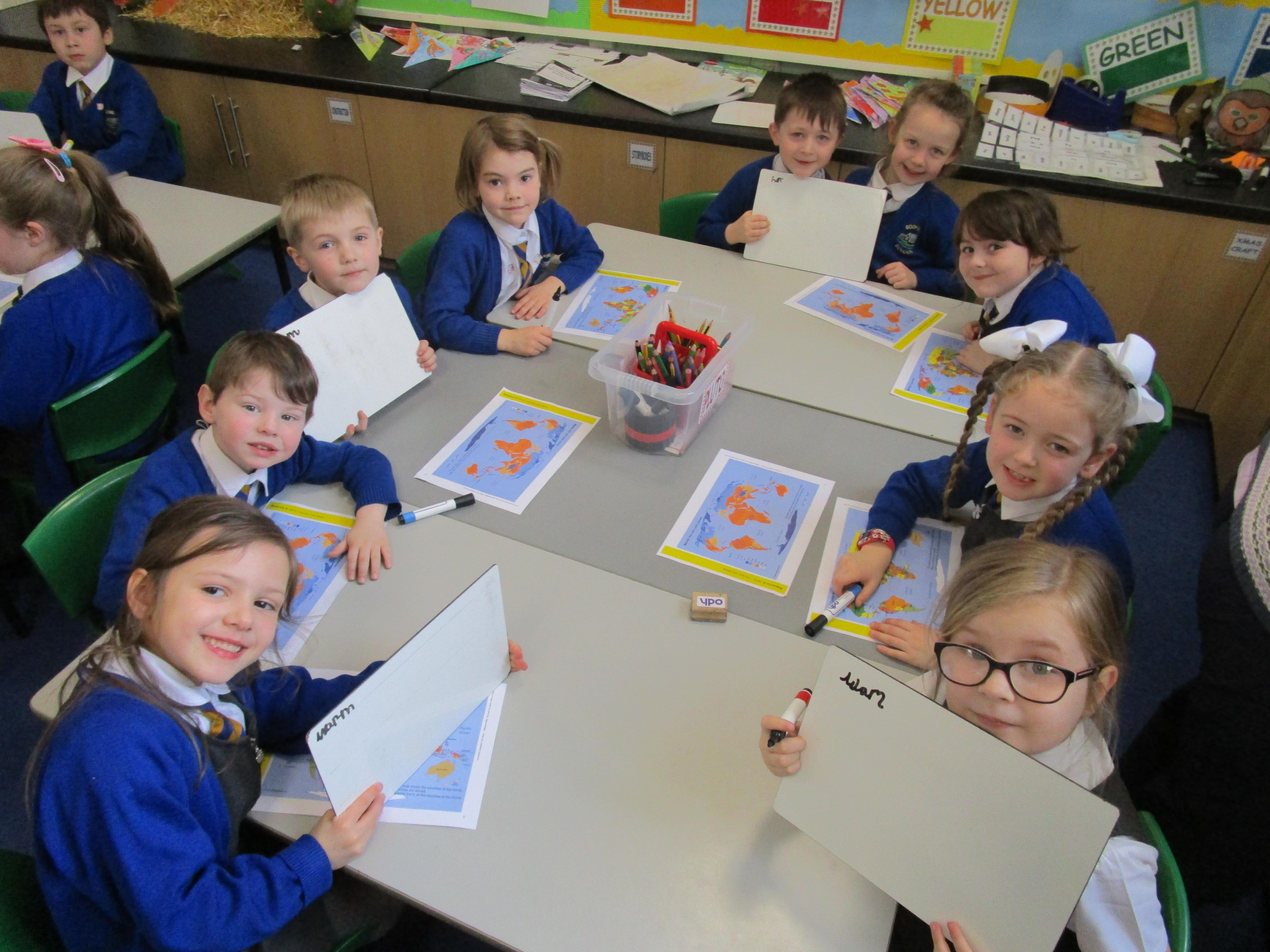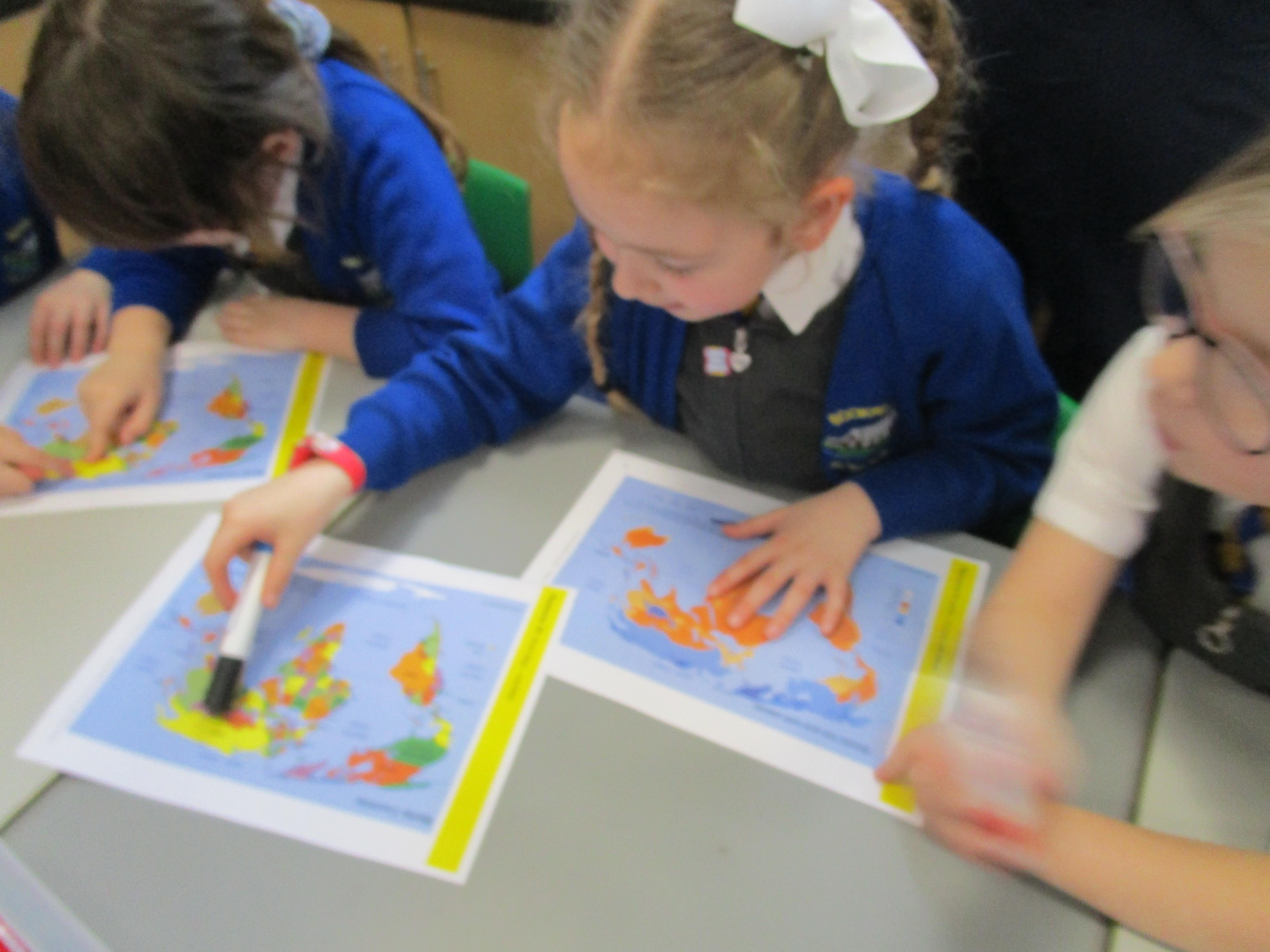 Today the children have been learning about the equator and that the countries that are closest to it are generally warmer and those that are further away are colder. The children had to find the countries on the map and then read the key on another map to work out its weather conditions.