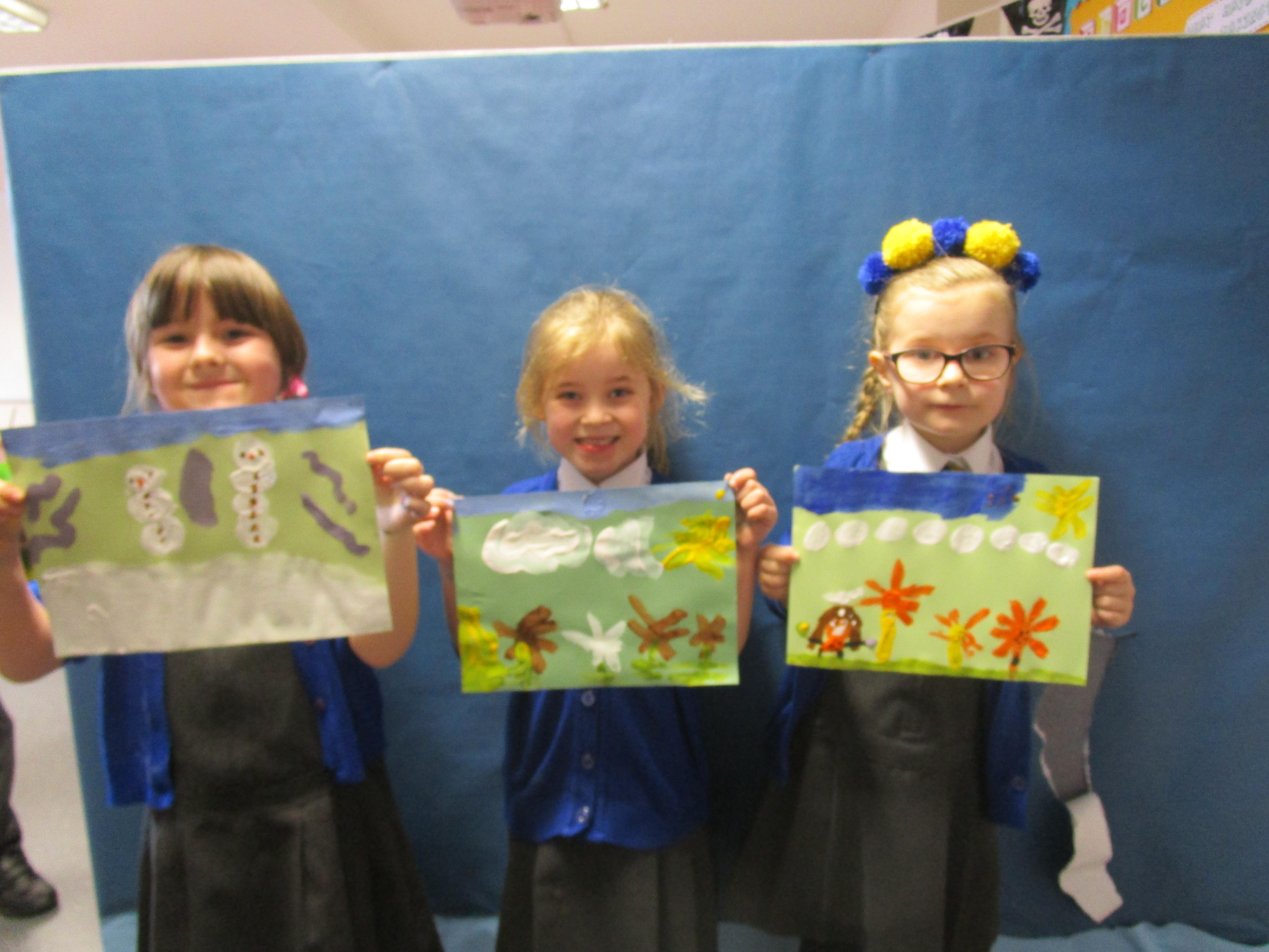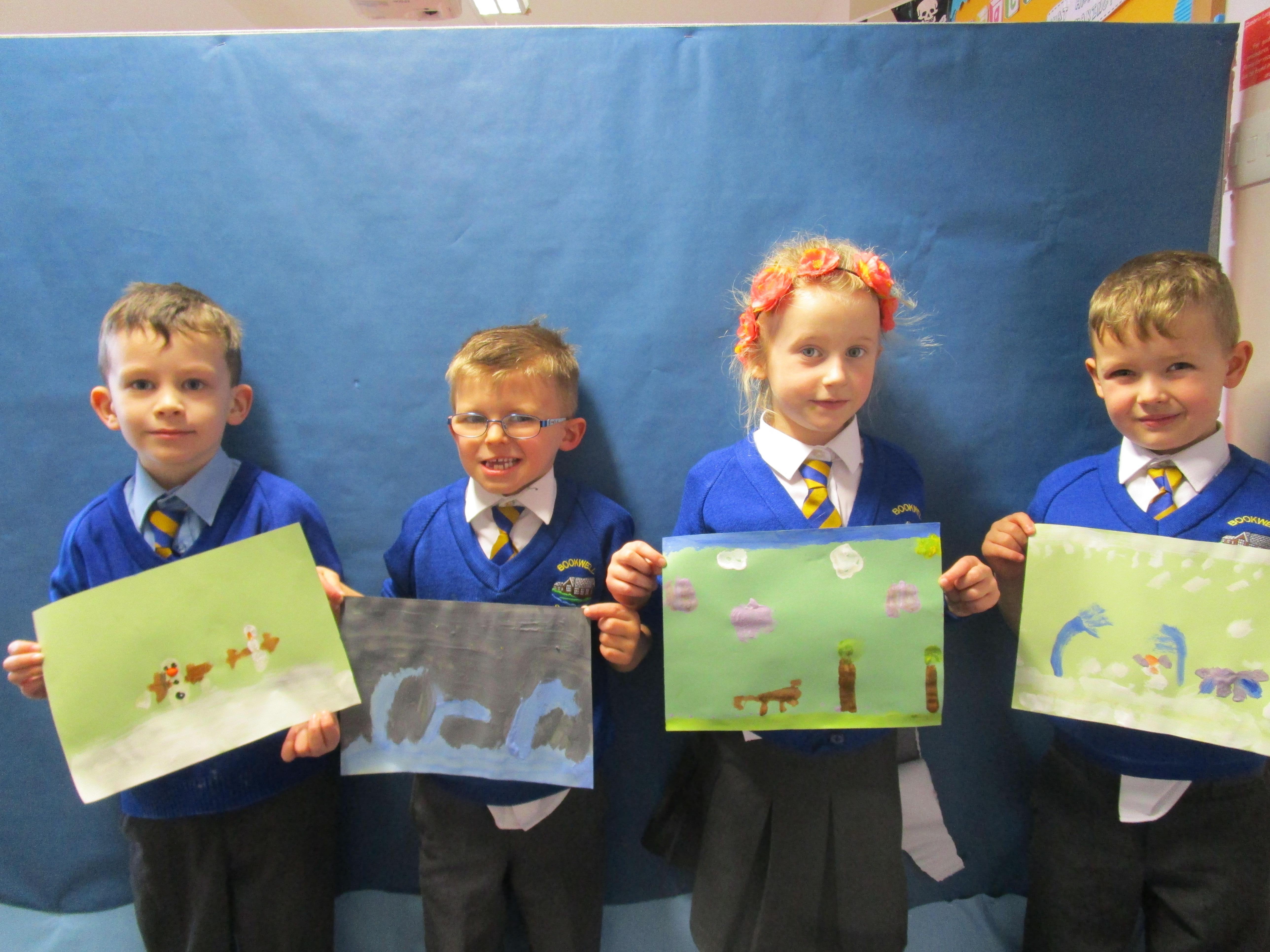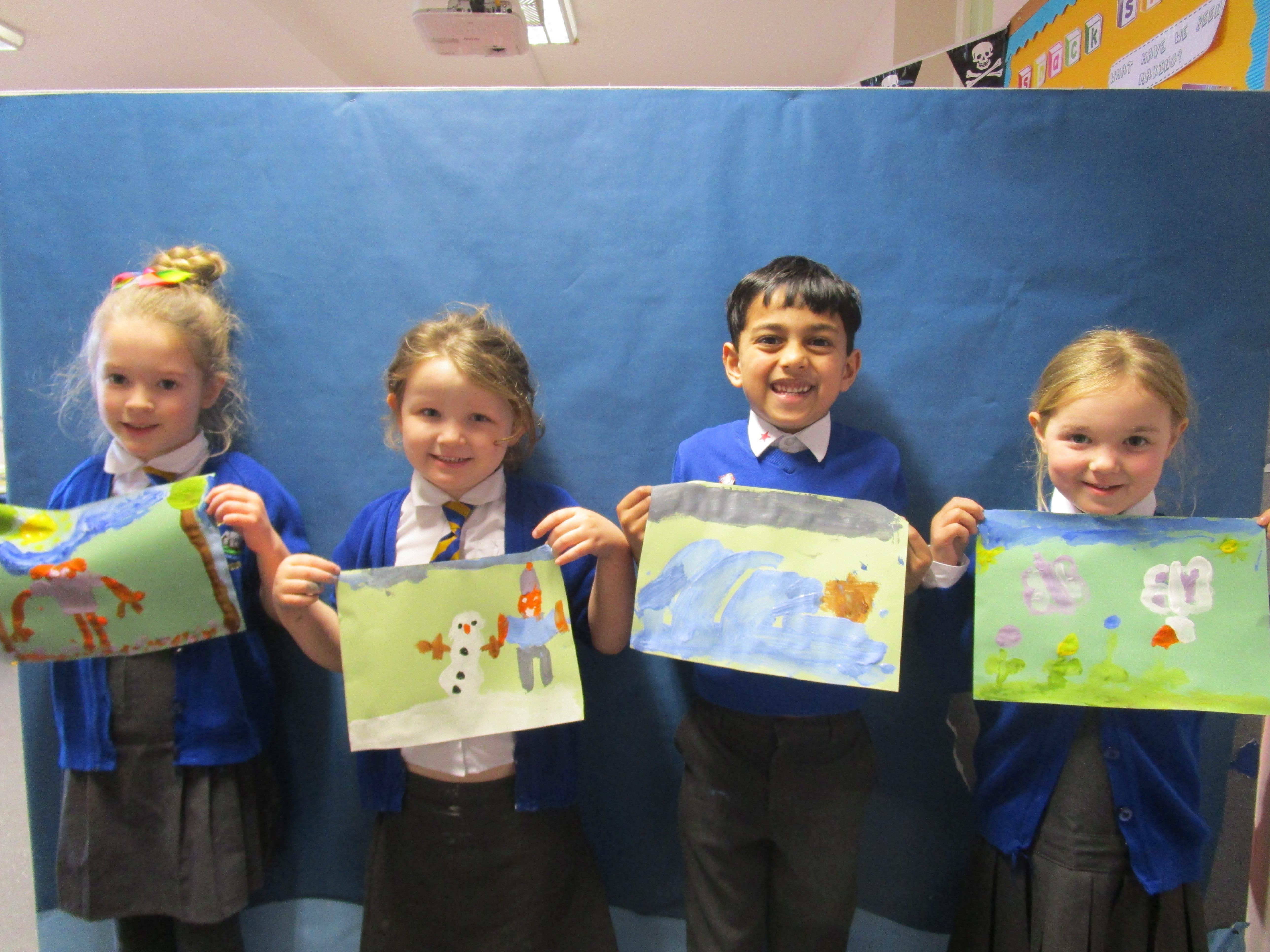 Today the children have been exploring how many of the great artists painted the weather - choice of colour, texture and brush strokes used. The all the children got the opportunity to go into the Rainbow Room and paint their very own picture of the weather.