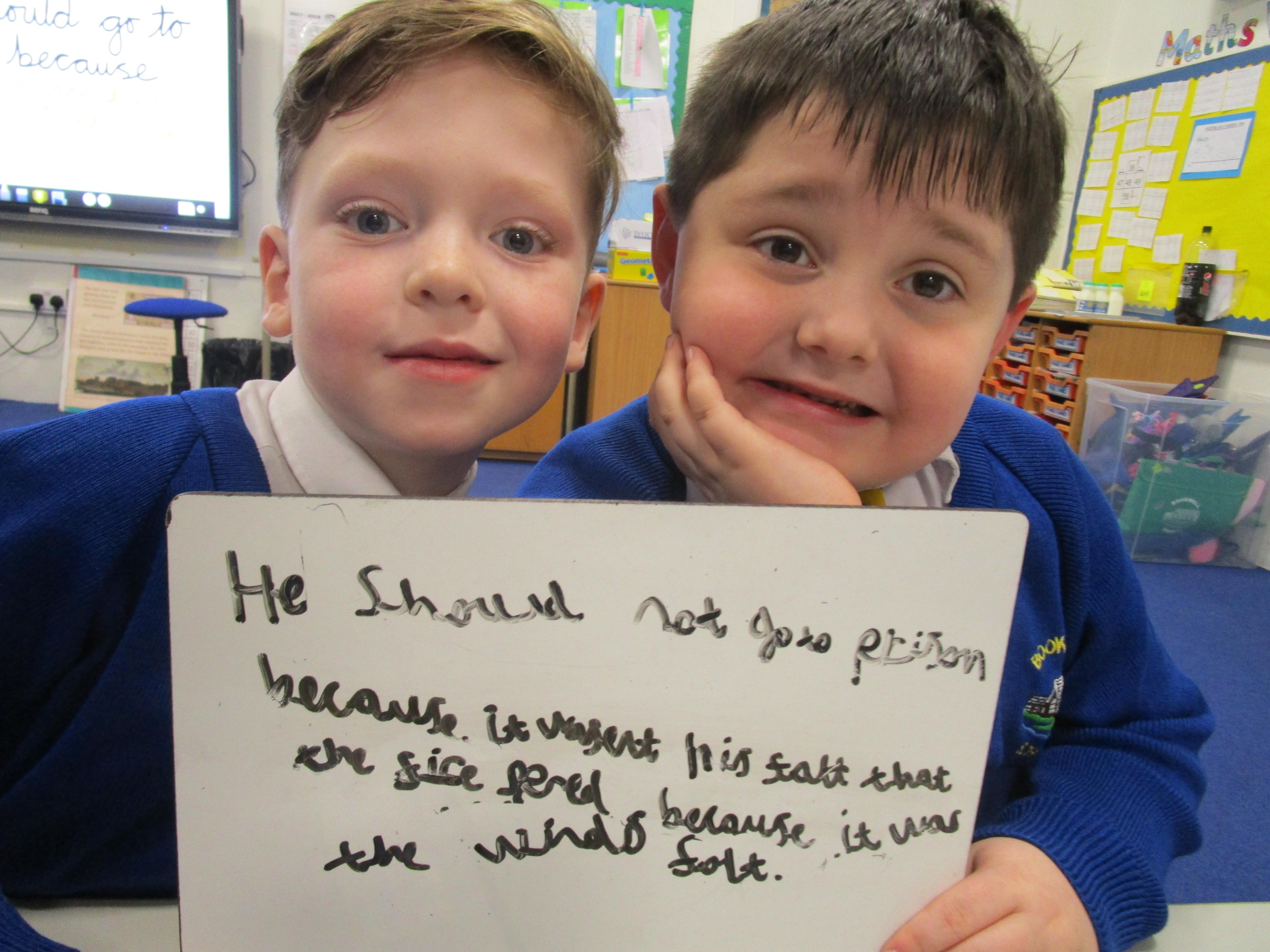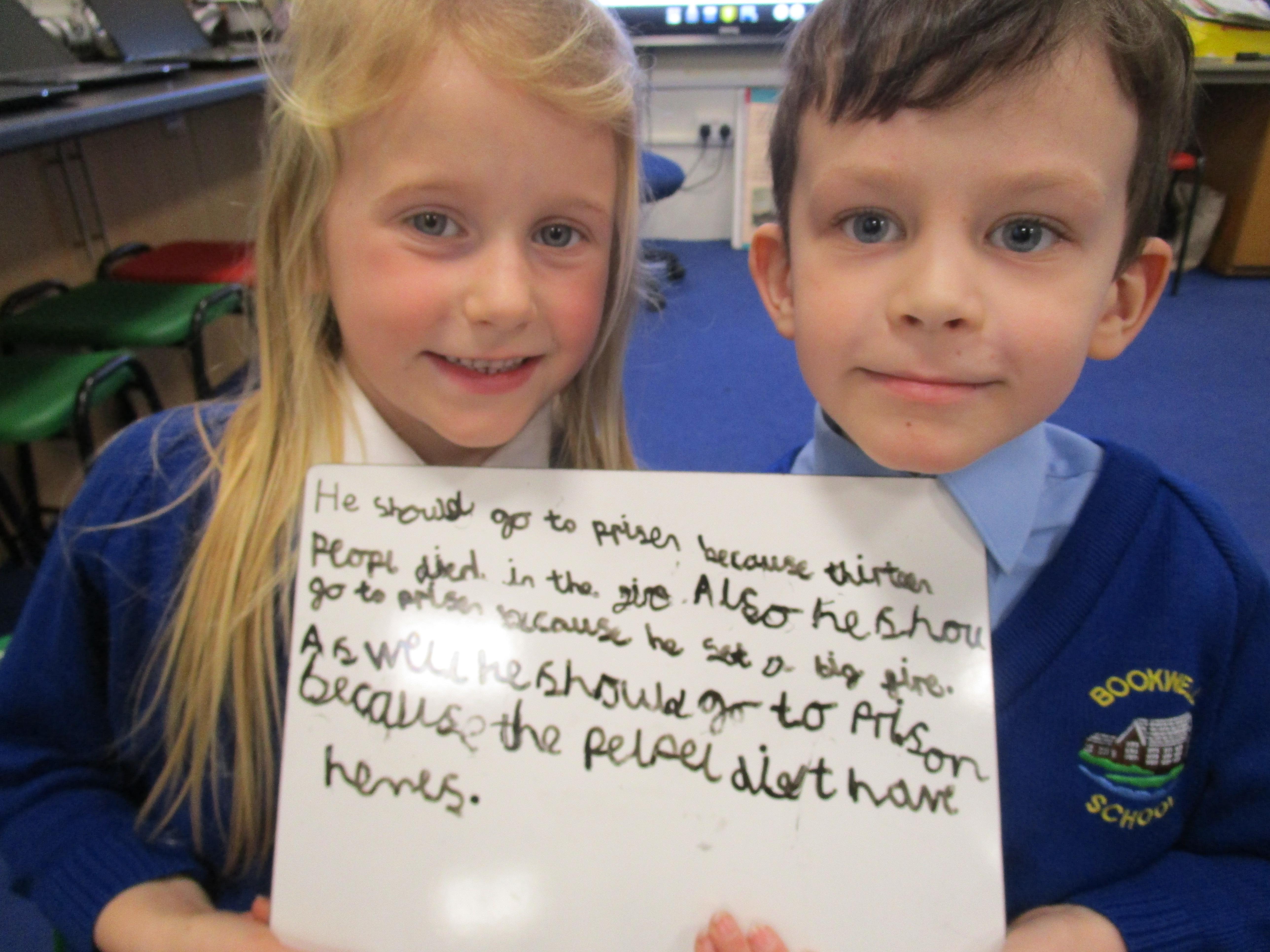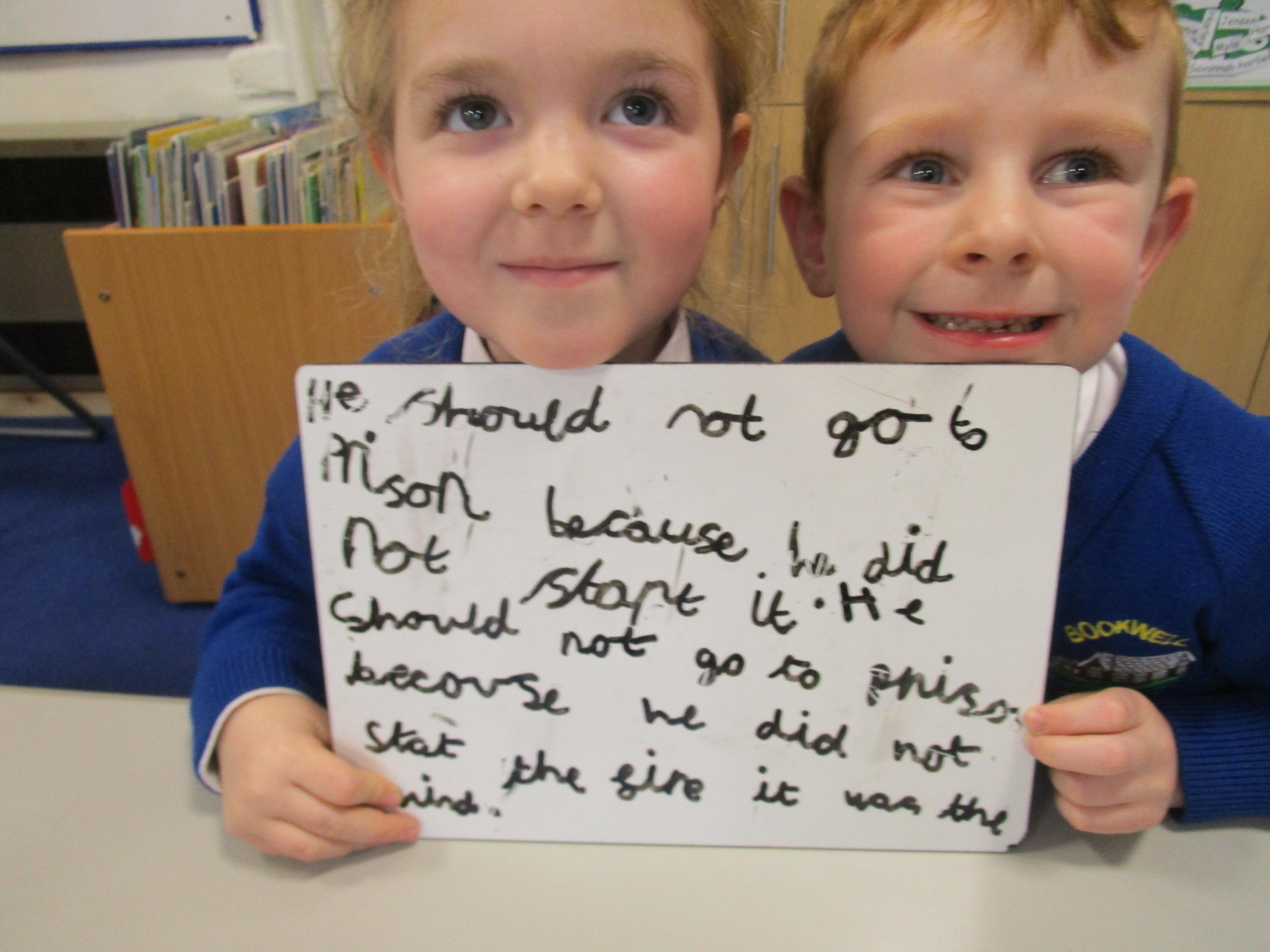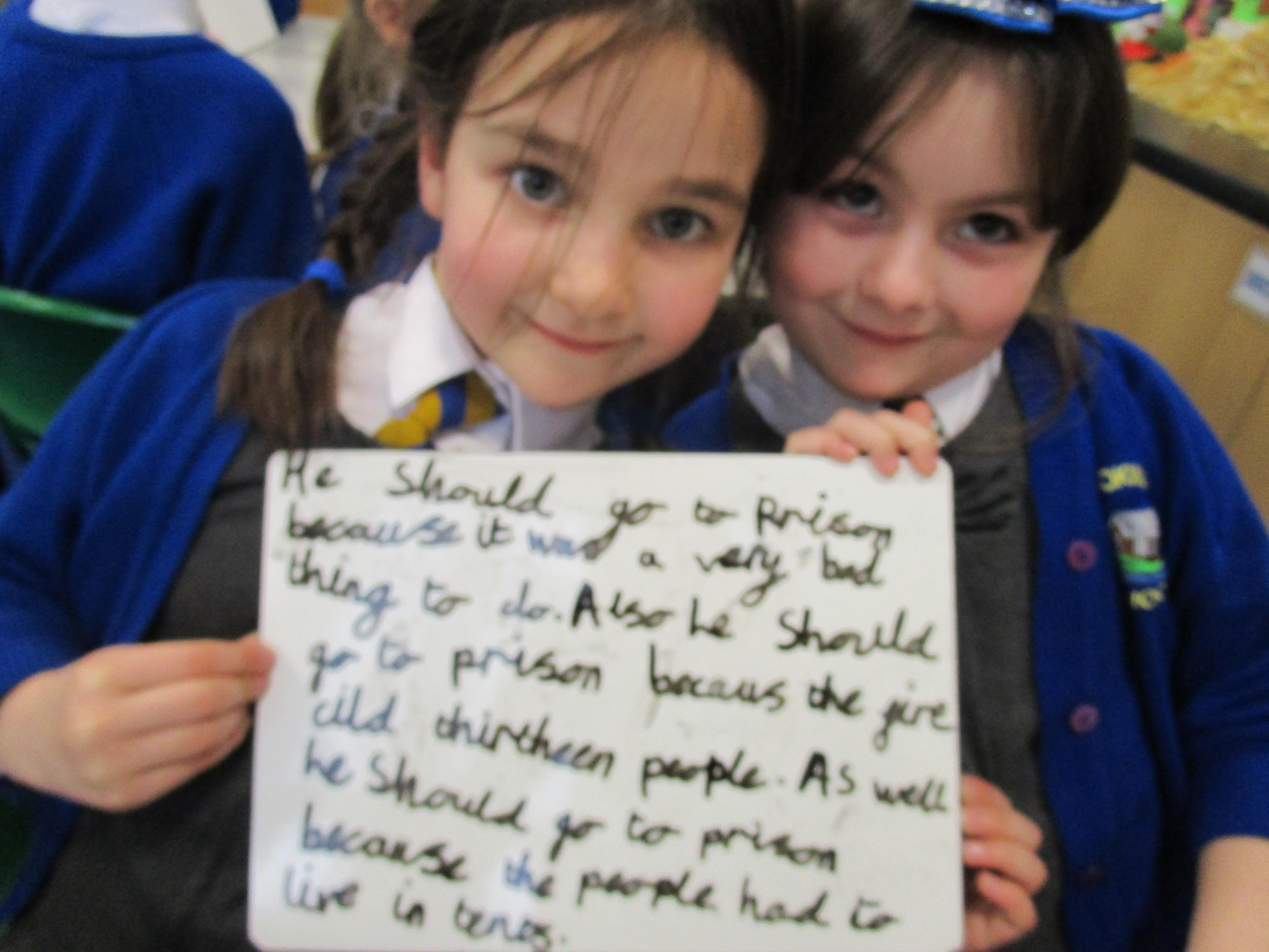 Today in class we completed our Great Fire of London topic. First the children had to think of questions to ask Thomas Farriner and then they had to write opposing arguments for why he should or should not have gone to prison. The children decided that he should go to prison because he started the fire and he did not help his maid escape to safety.