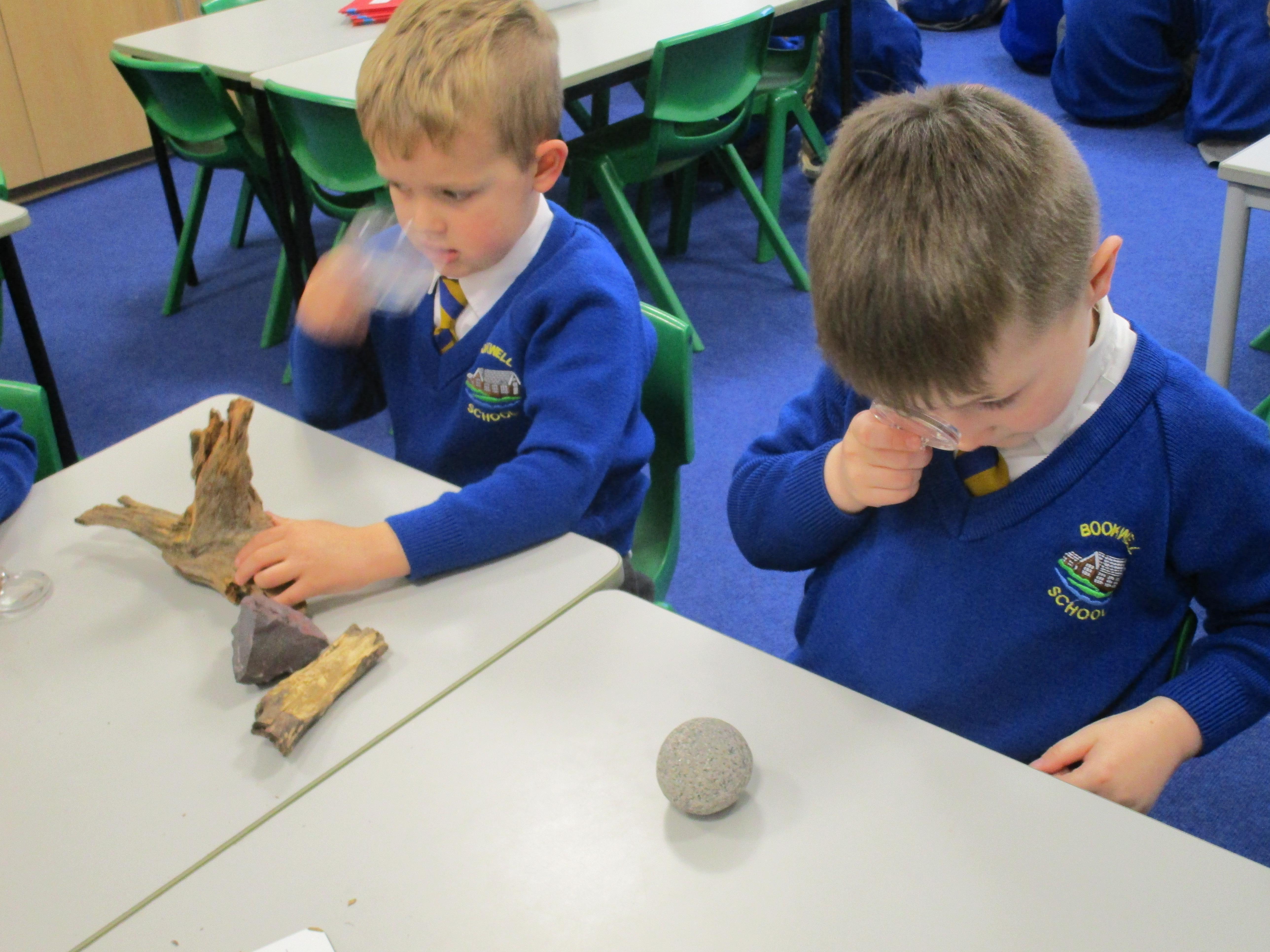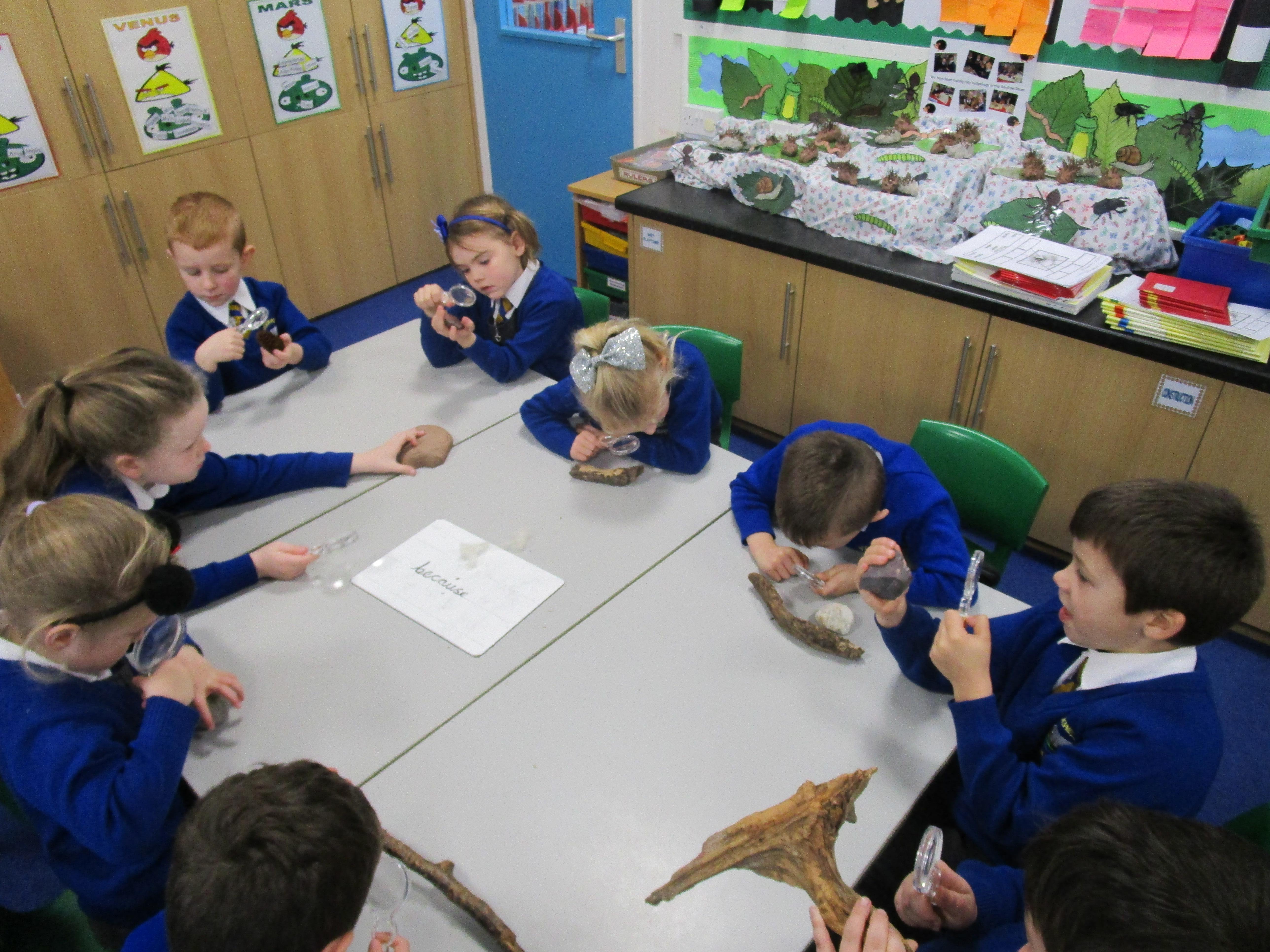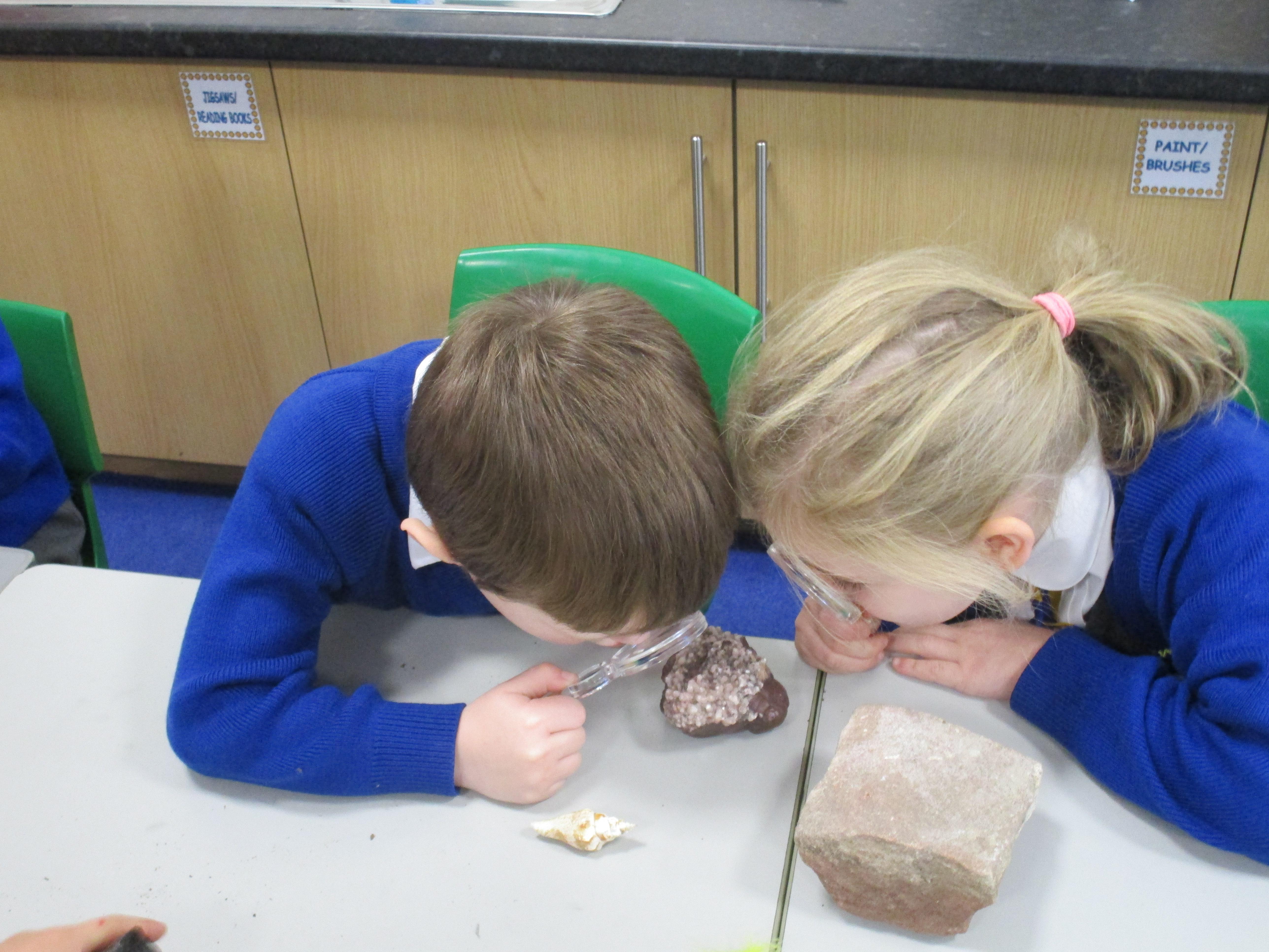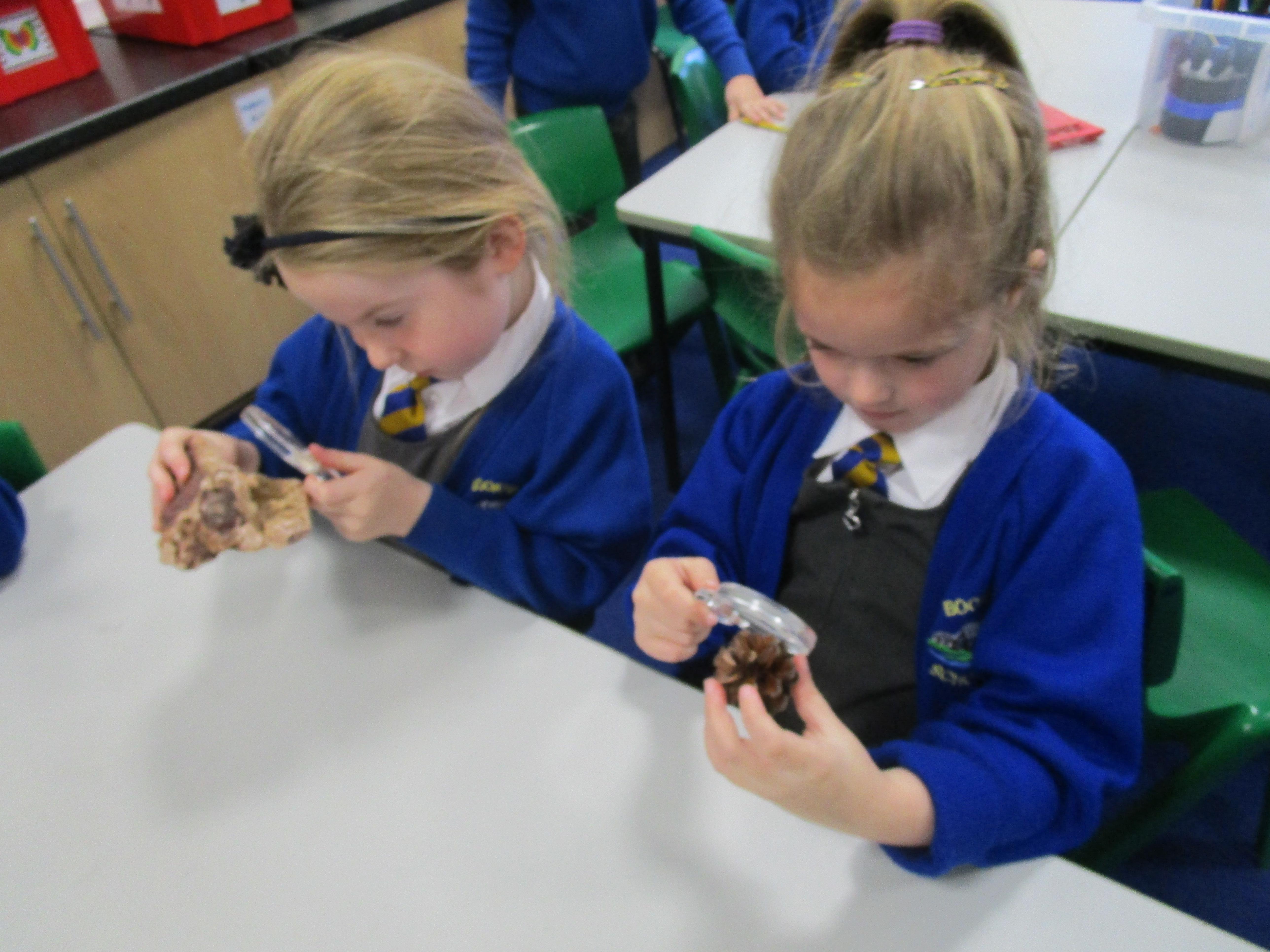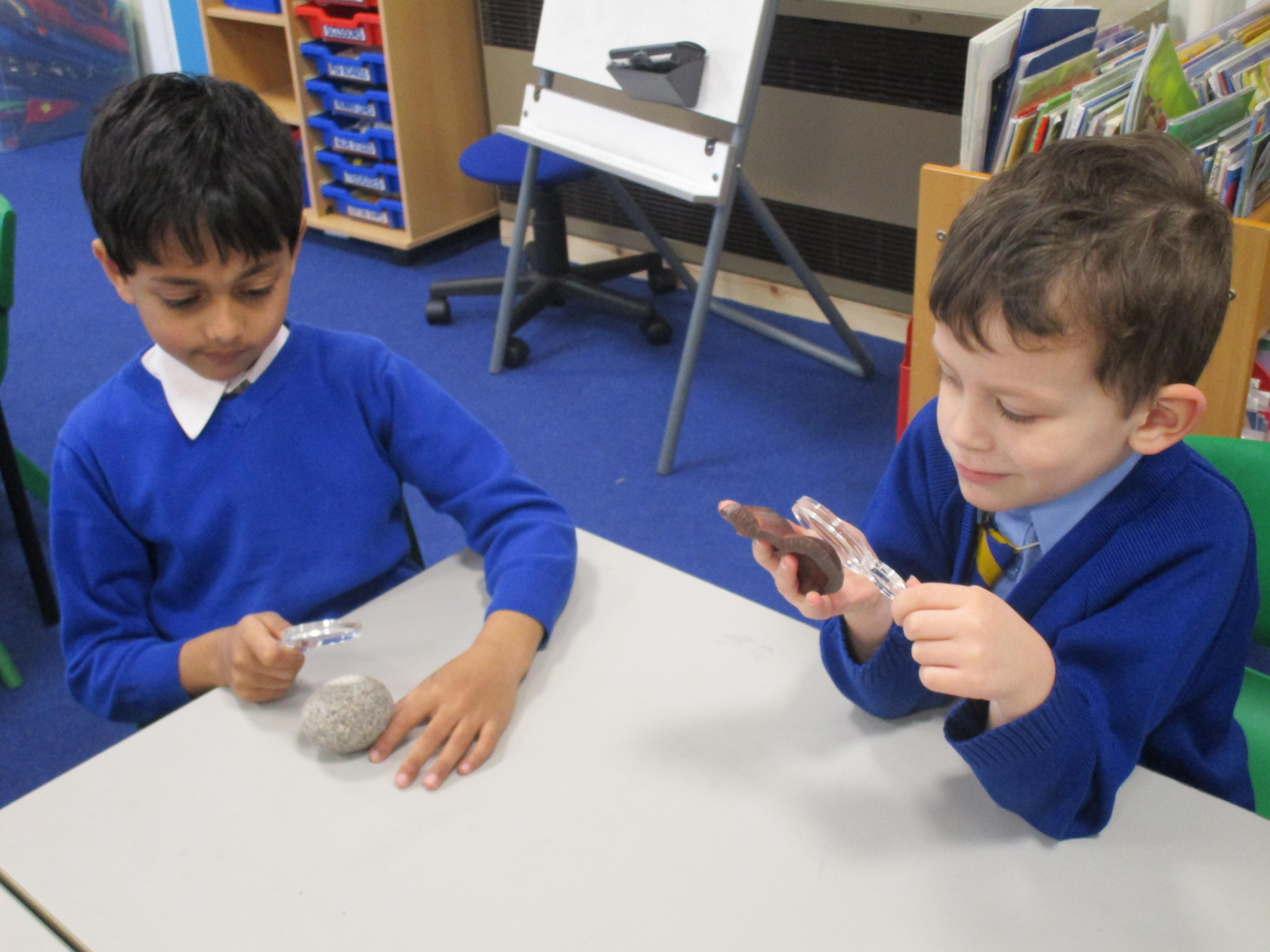 The children have been investigating how magnifying glasses can affect how well they can see things.