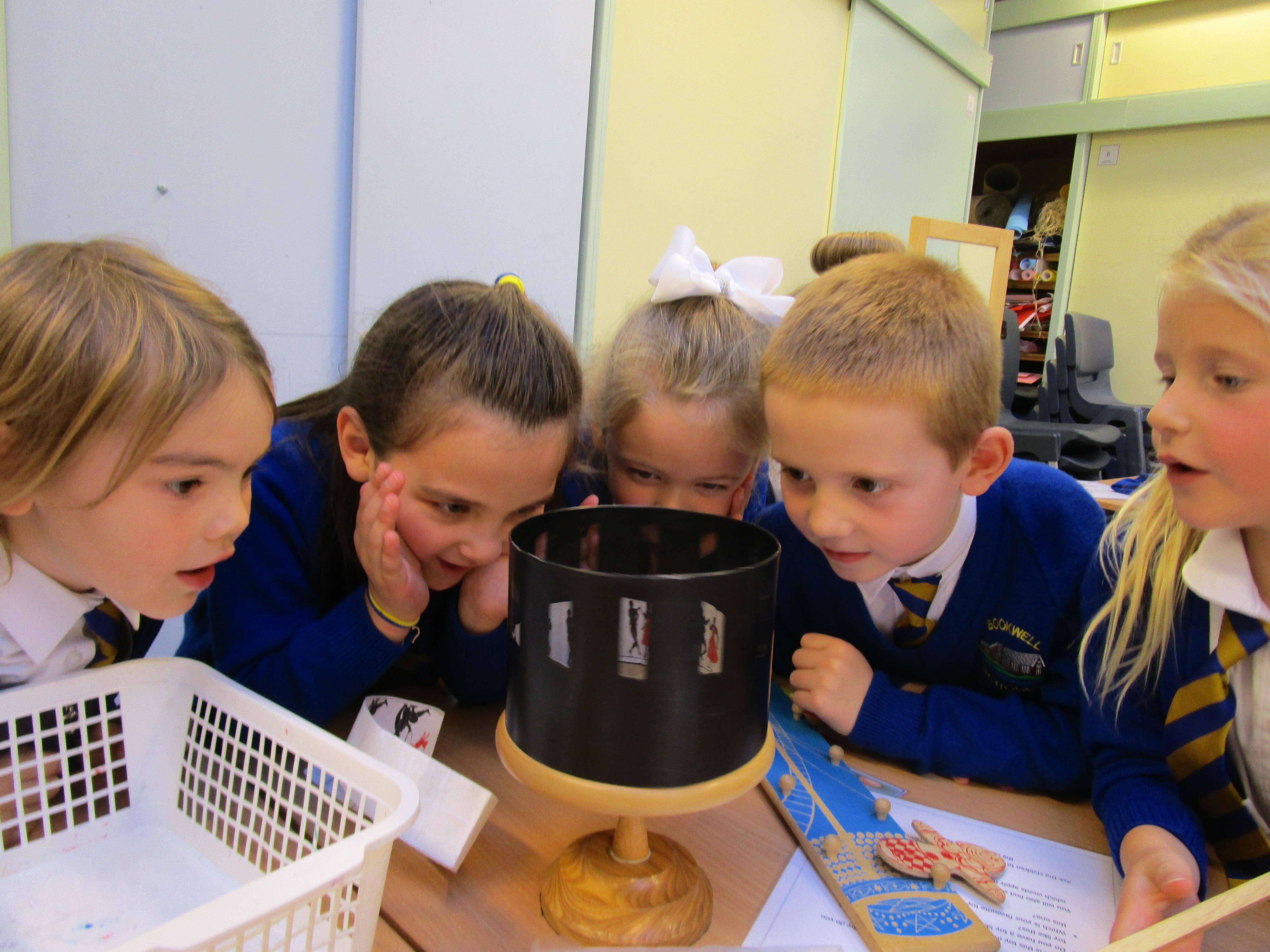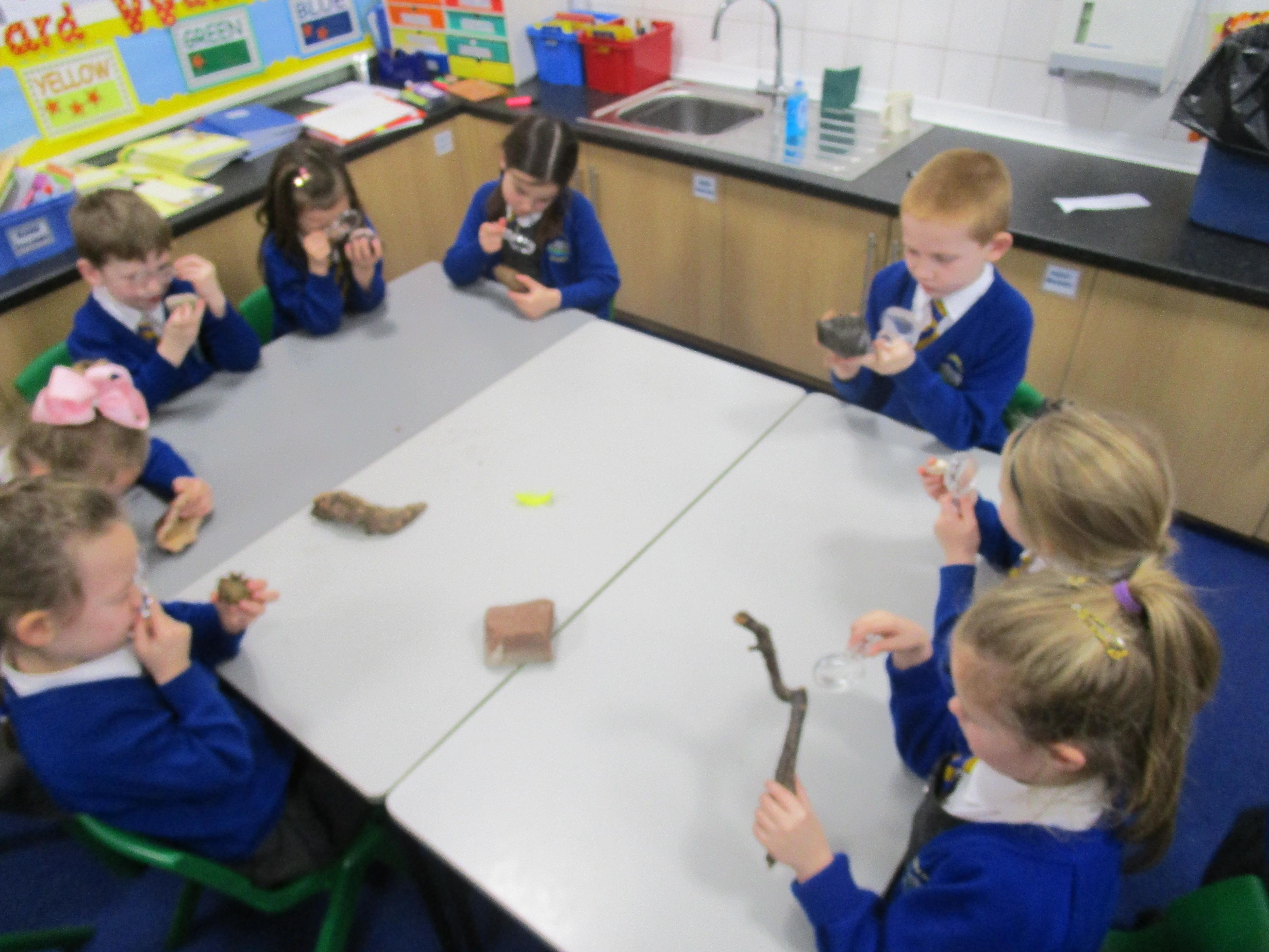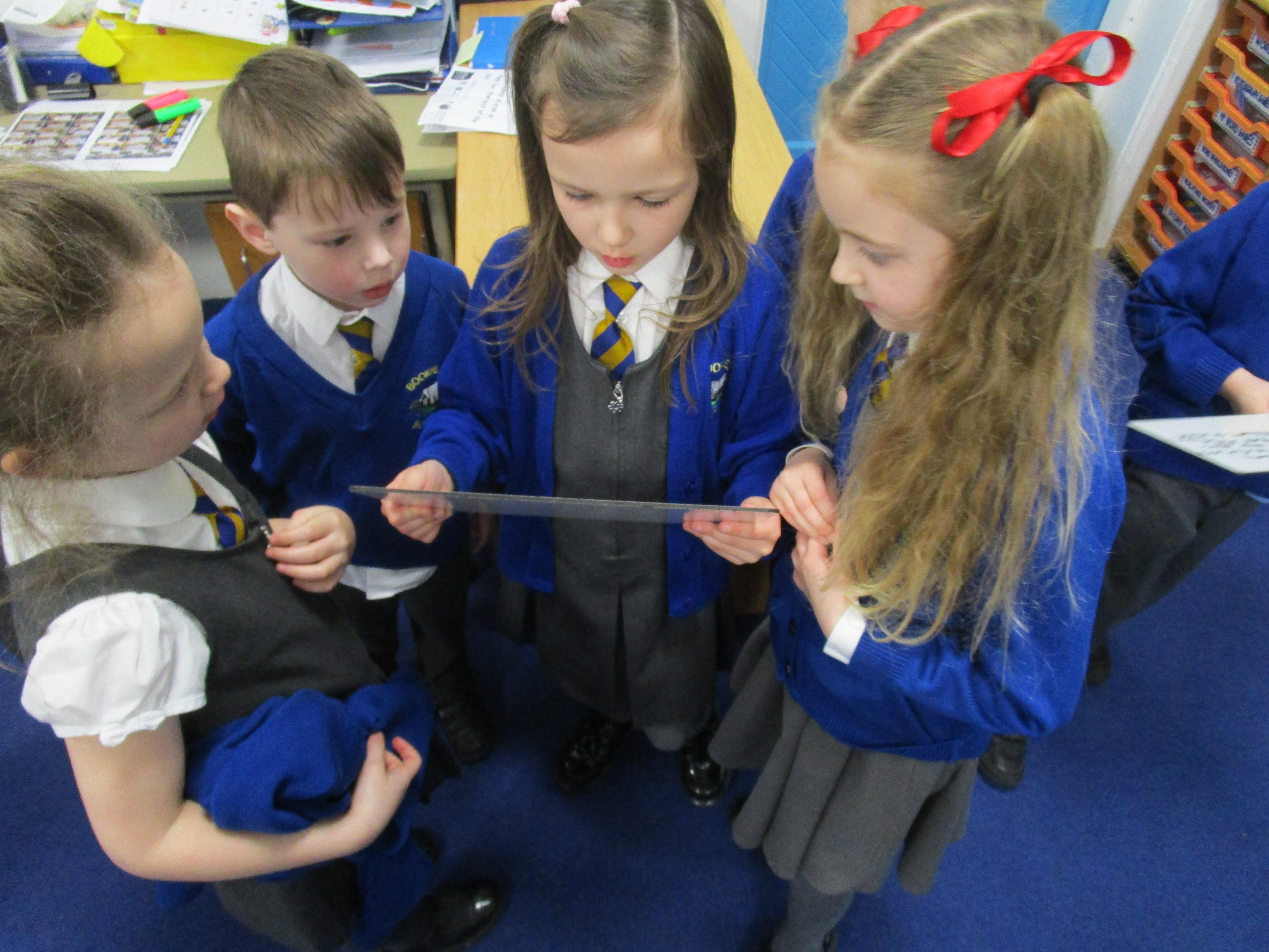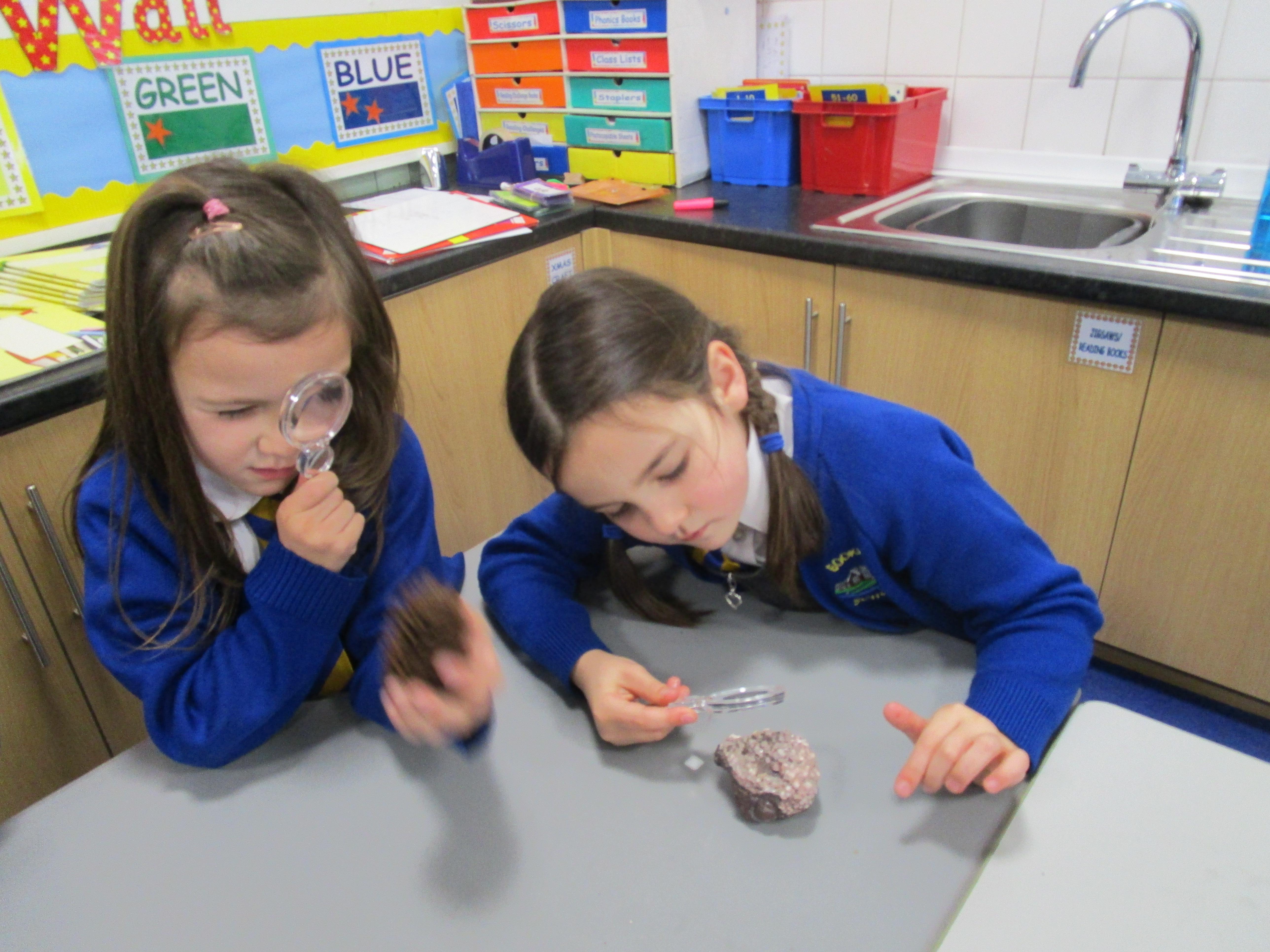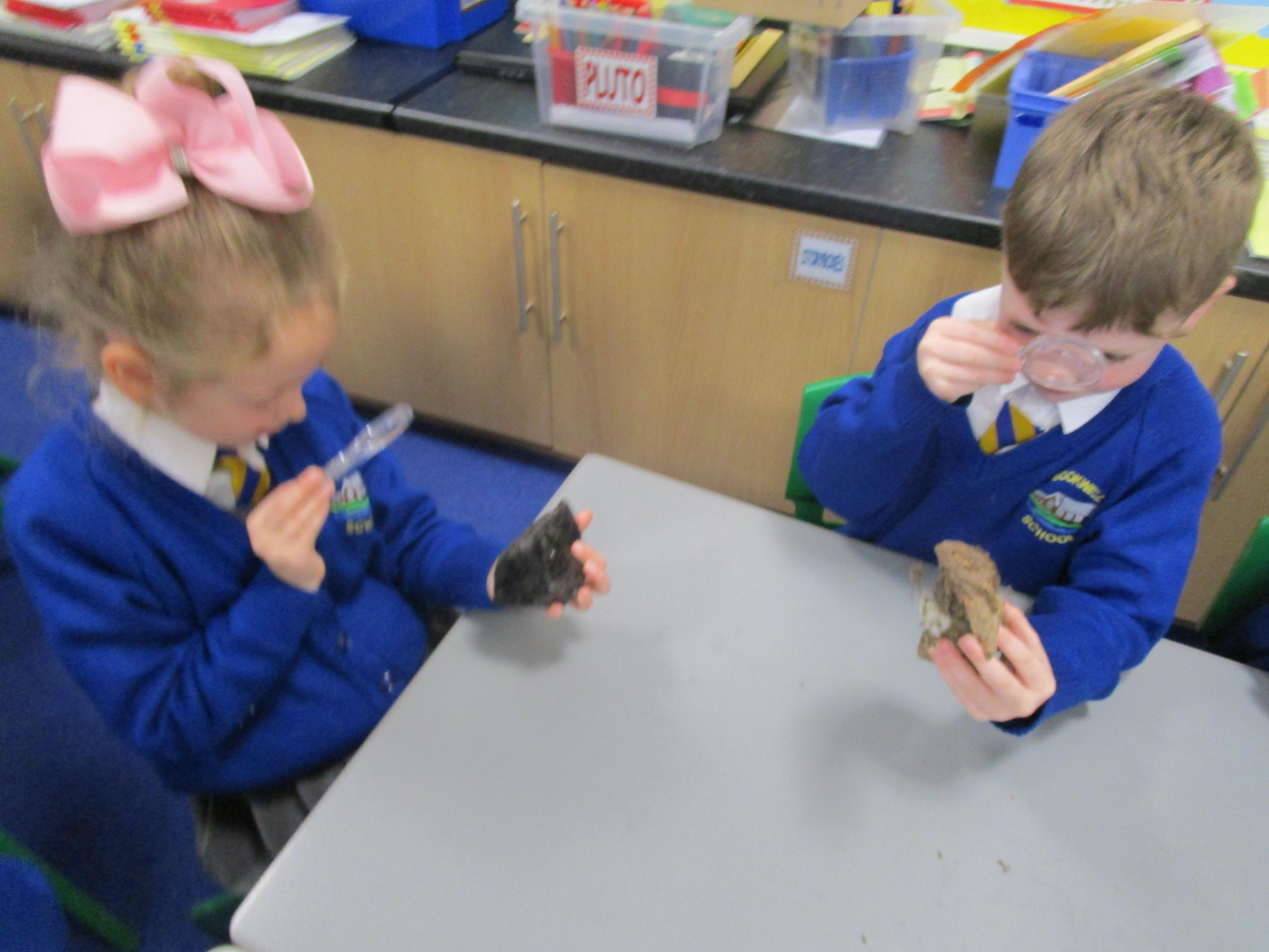 The children have been investigating how magnifying glasses can affect how well they can see things.