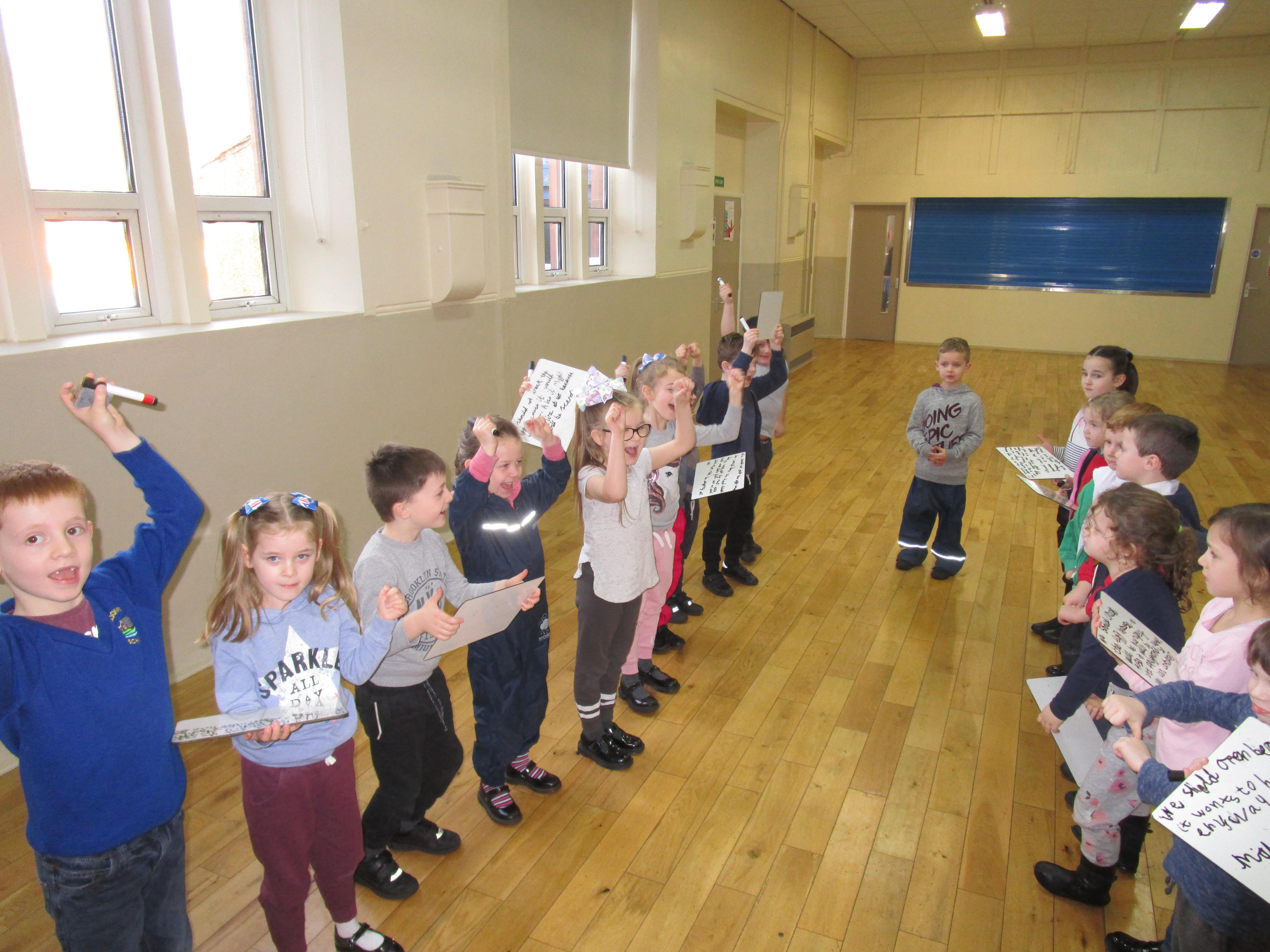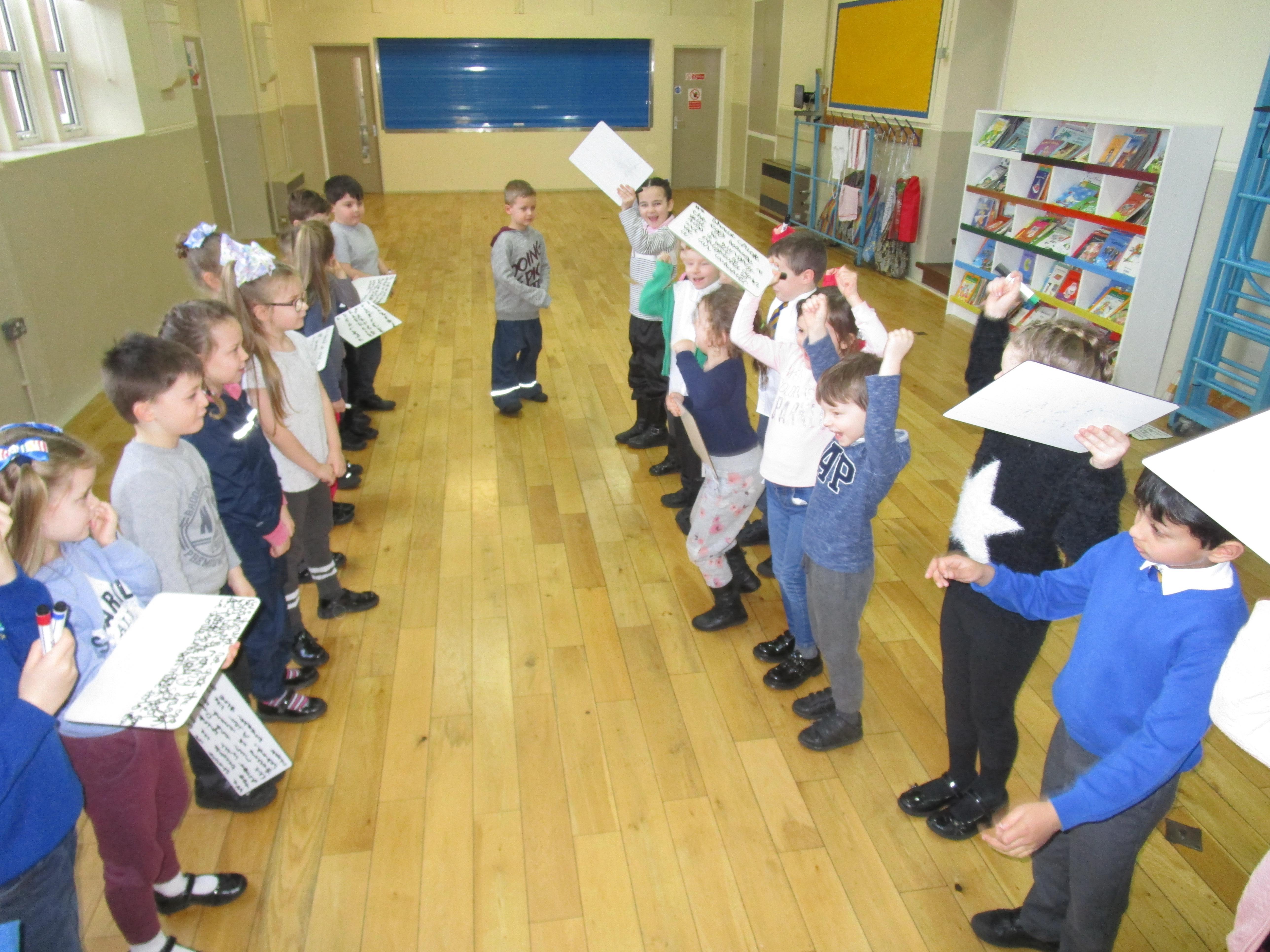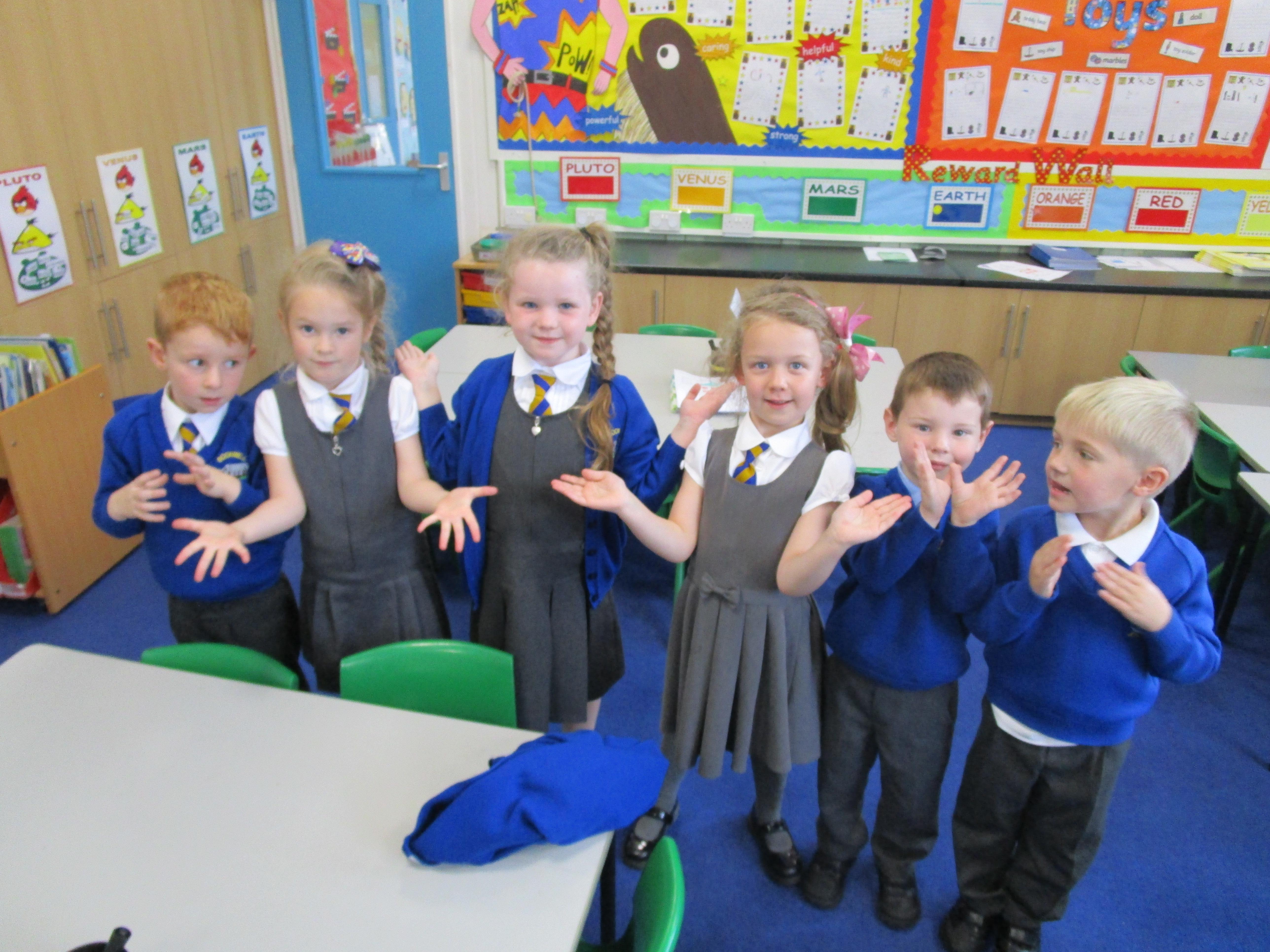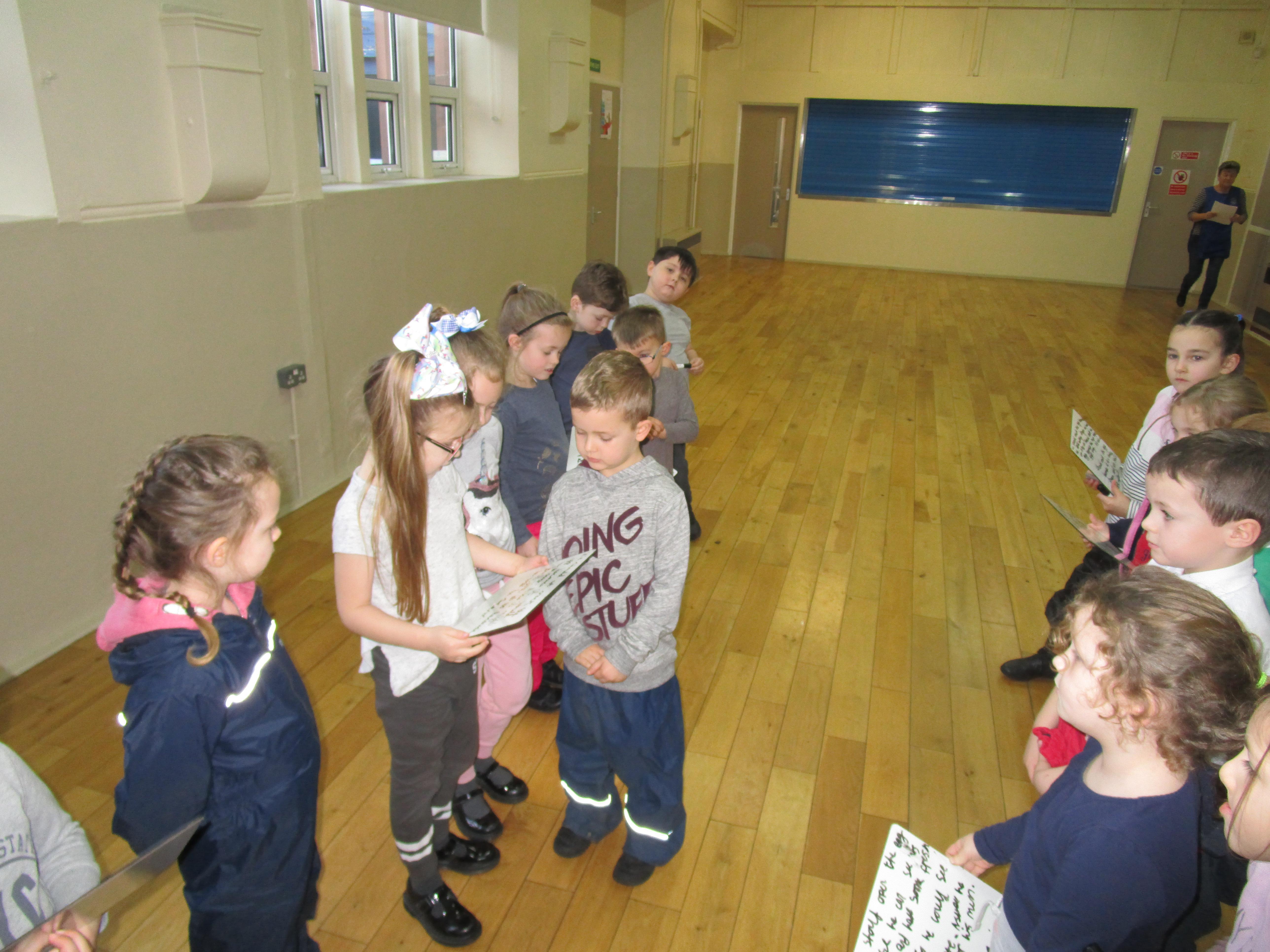 In music this week the class have been learning a new song that has lots of different actions in it. They wanted to show you how well they can sing! Each group sang a different part of the song.