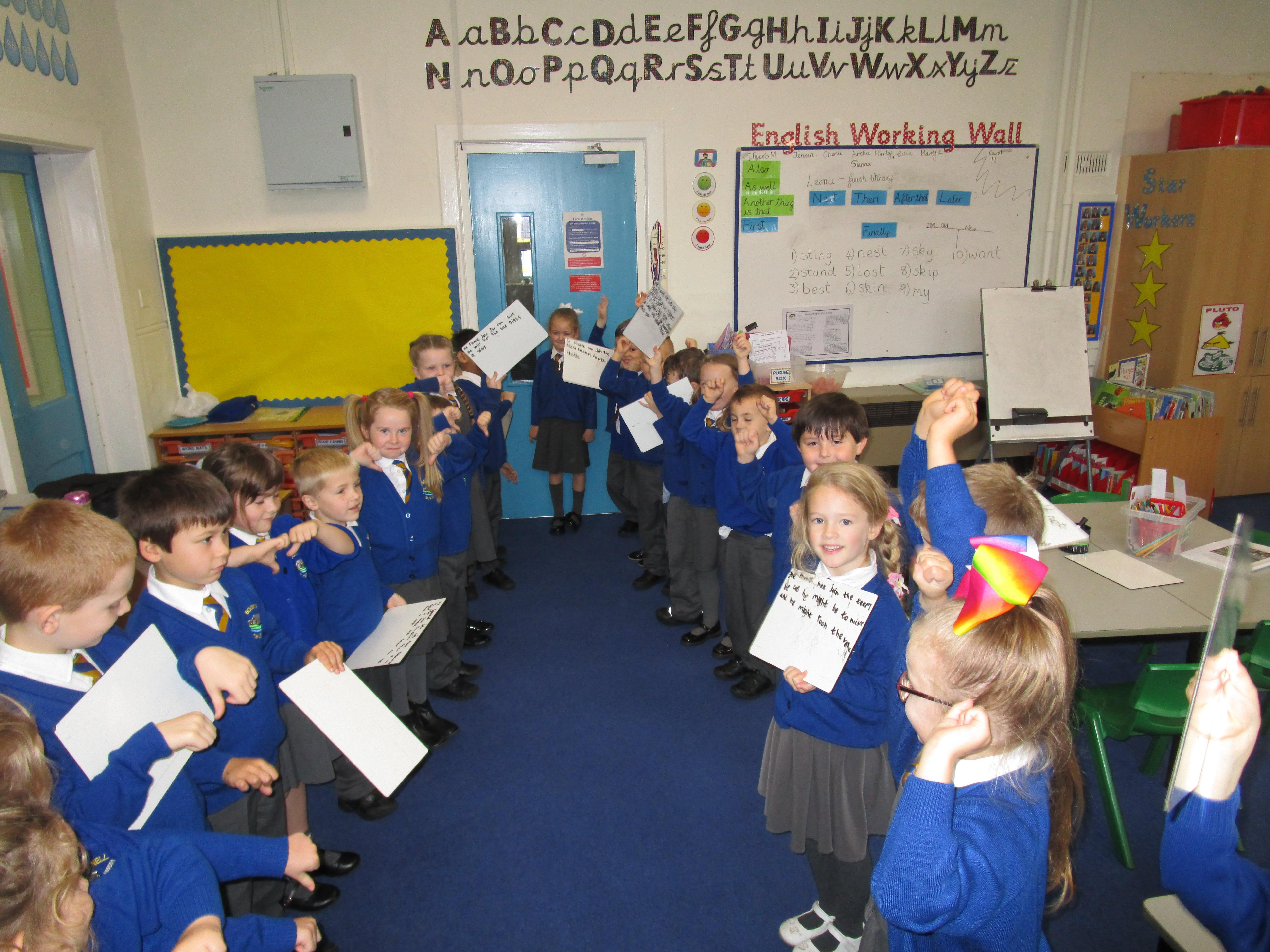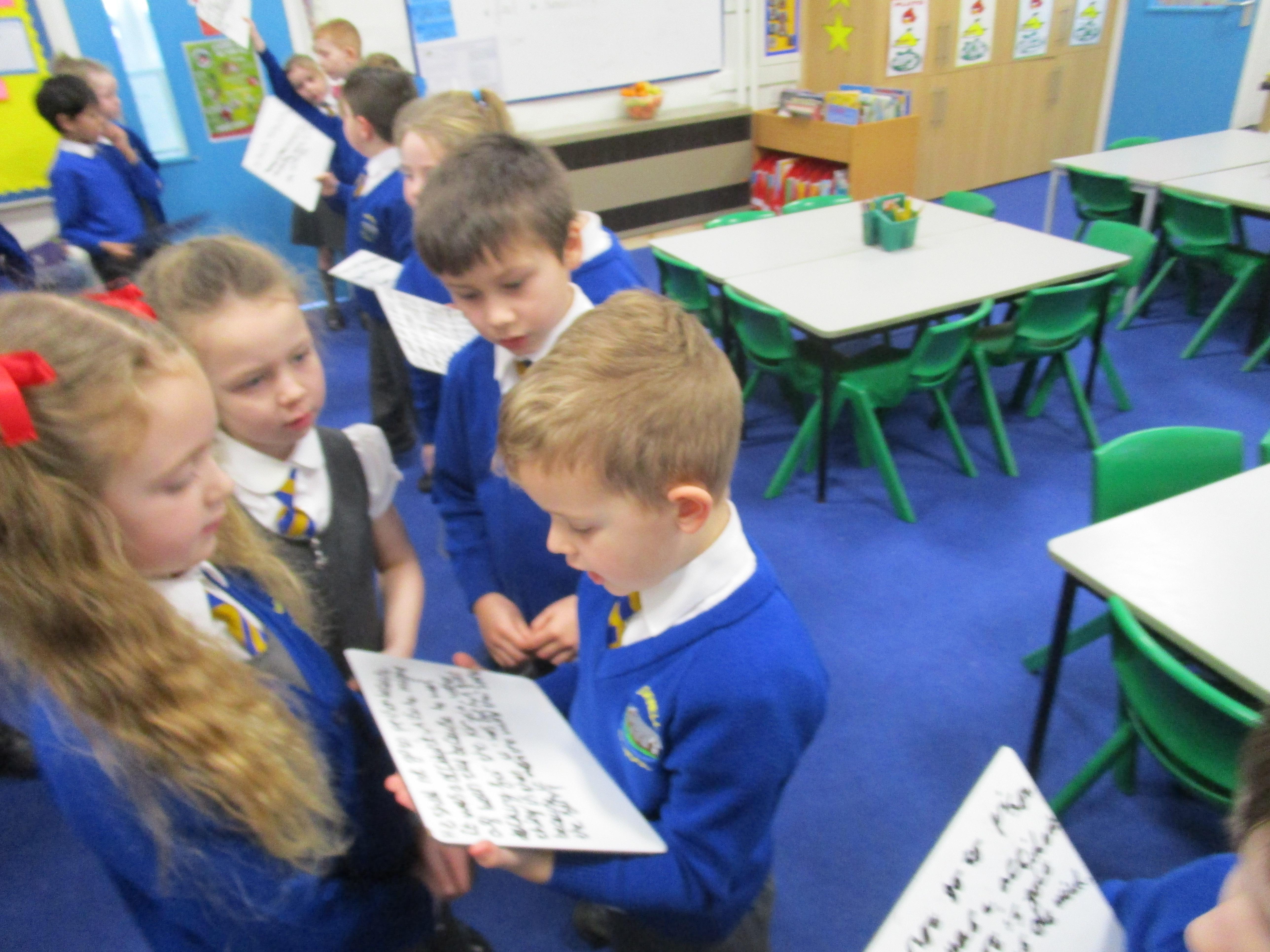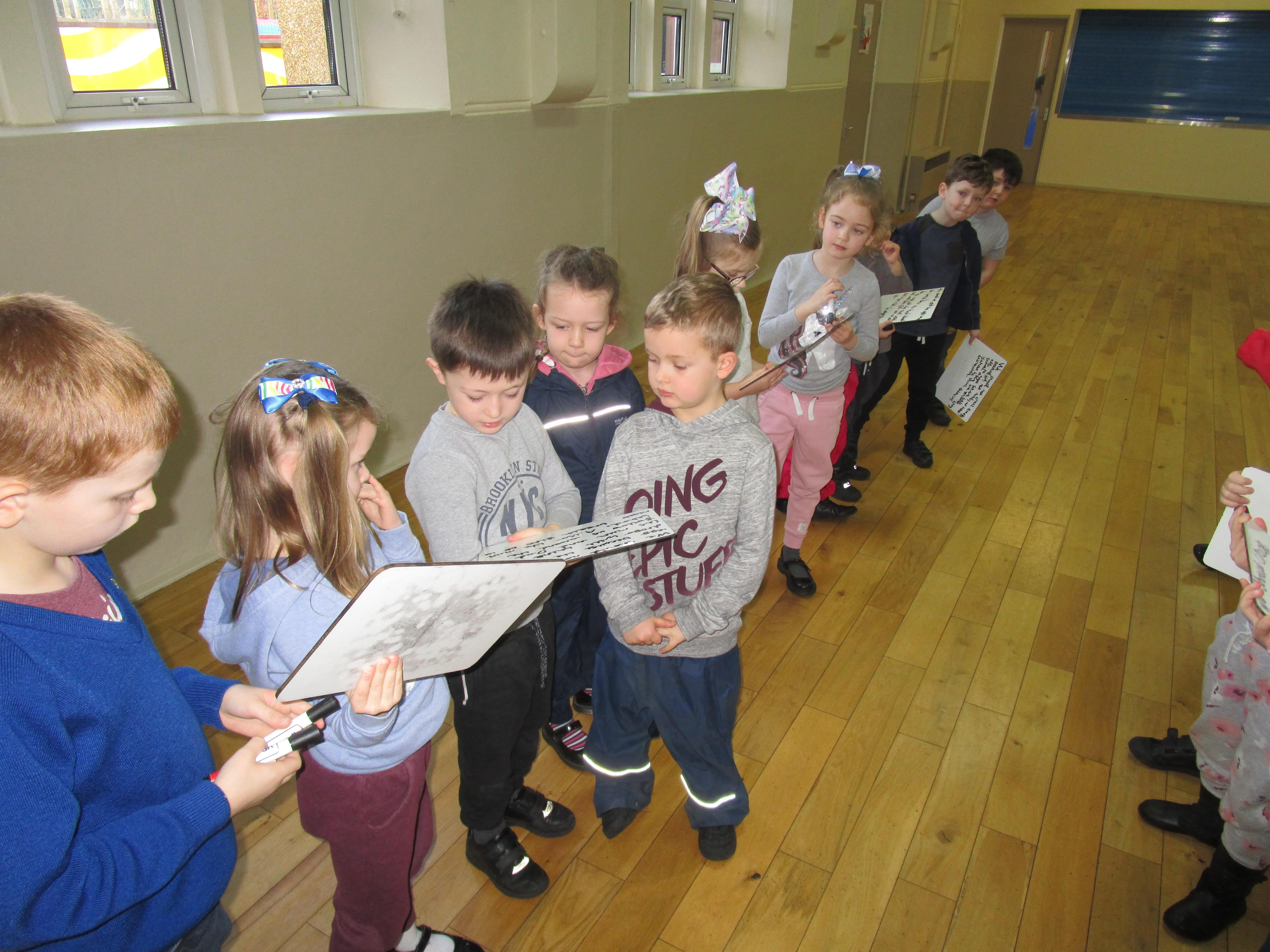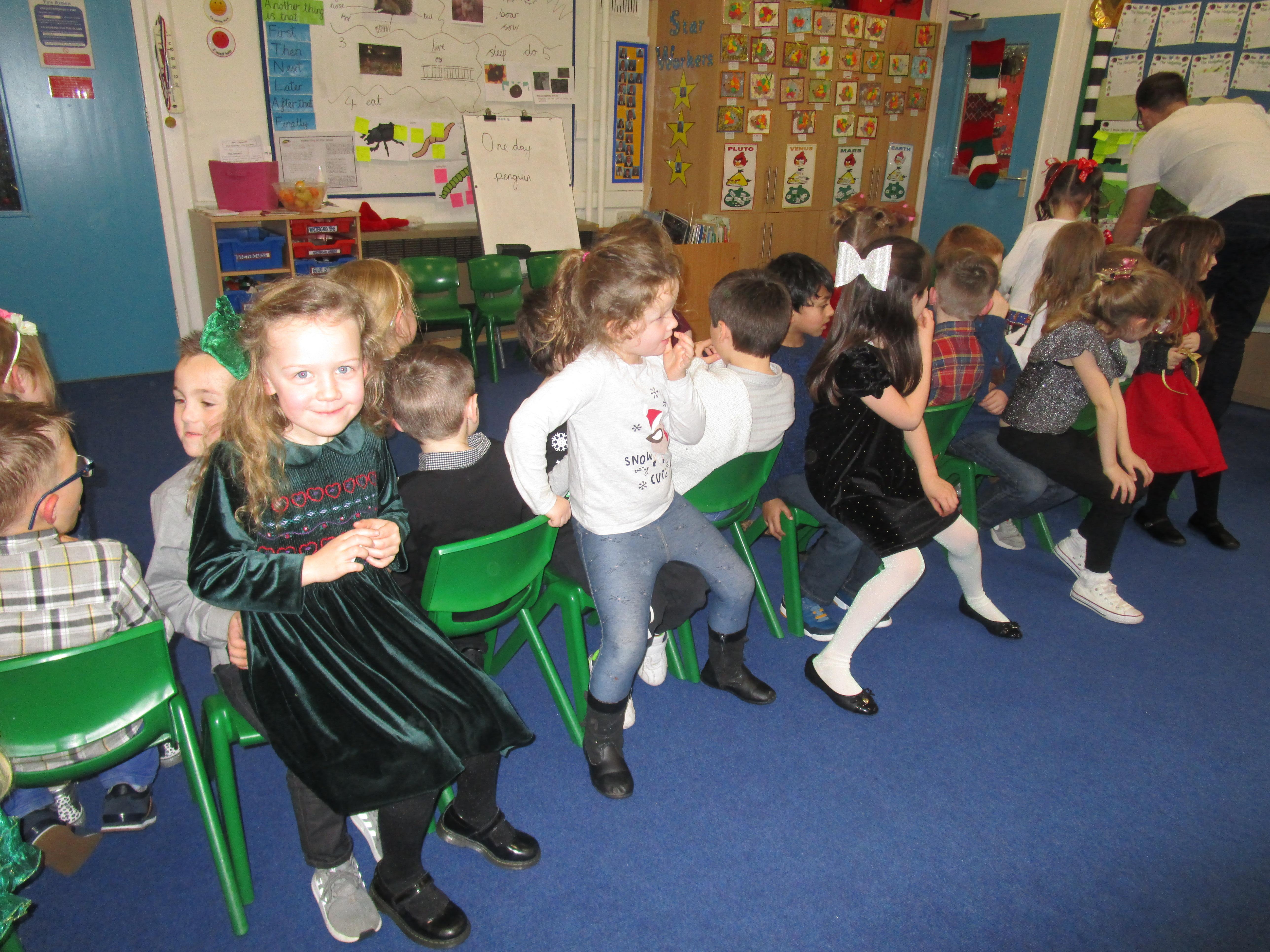 In music this week the class have been learning a new song that has lots of different actions in it. They wanted to show you how well they can sing! Each group sang a different part of the song.
