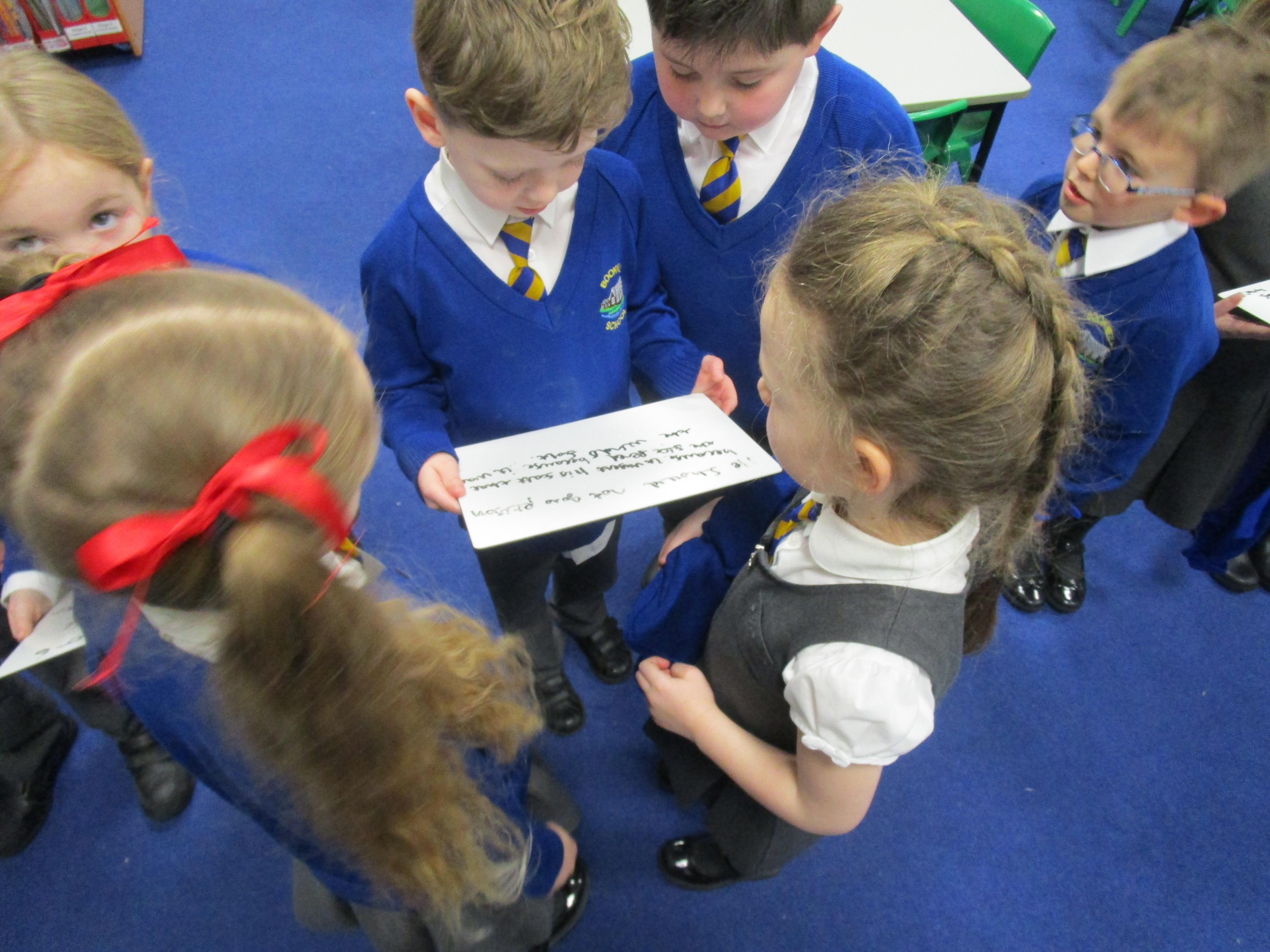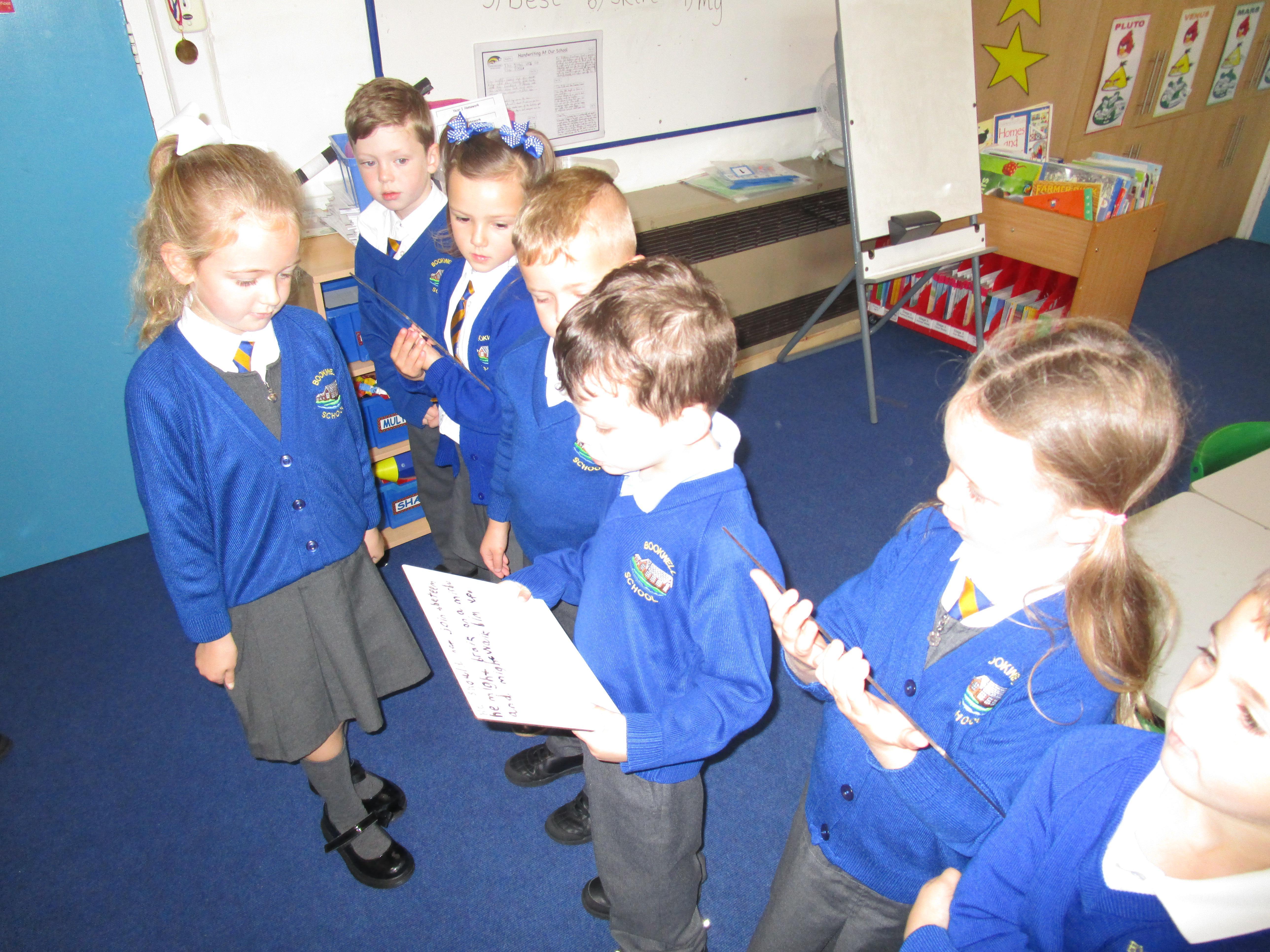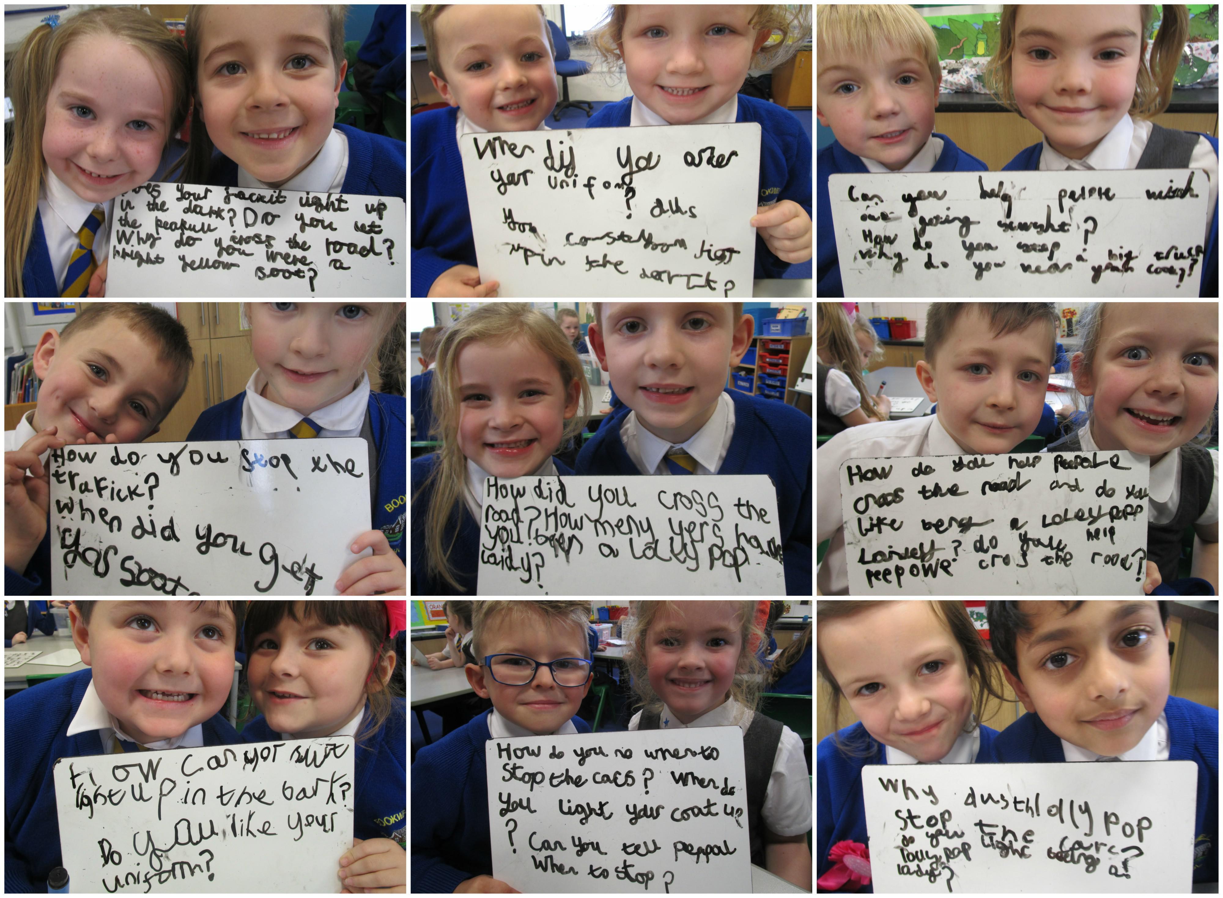 Today the children have been asking questions to our school lollipop lady. They had to work in pairs to write down the questions that they wanted to ask her, making sure they started their sentence with a capital letter and ended it with a question mark. At the end some of the children even got the chance to pretend that they worked as a lollipop traffic controller.