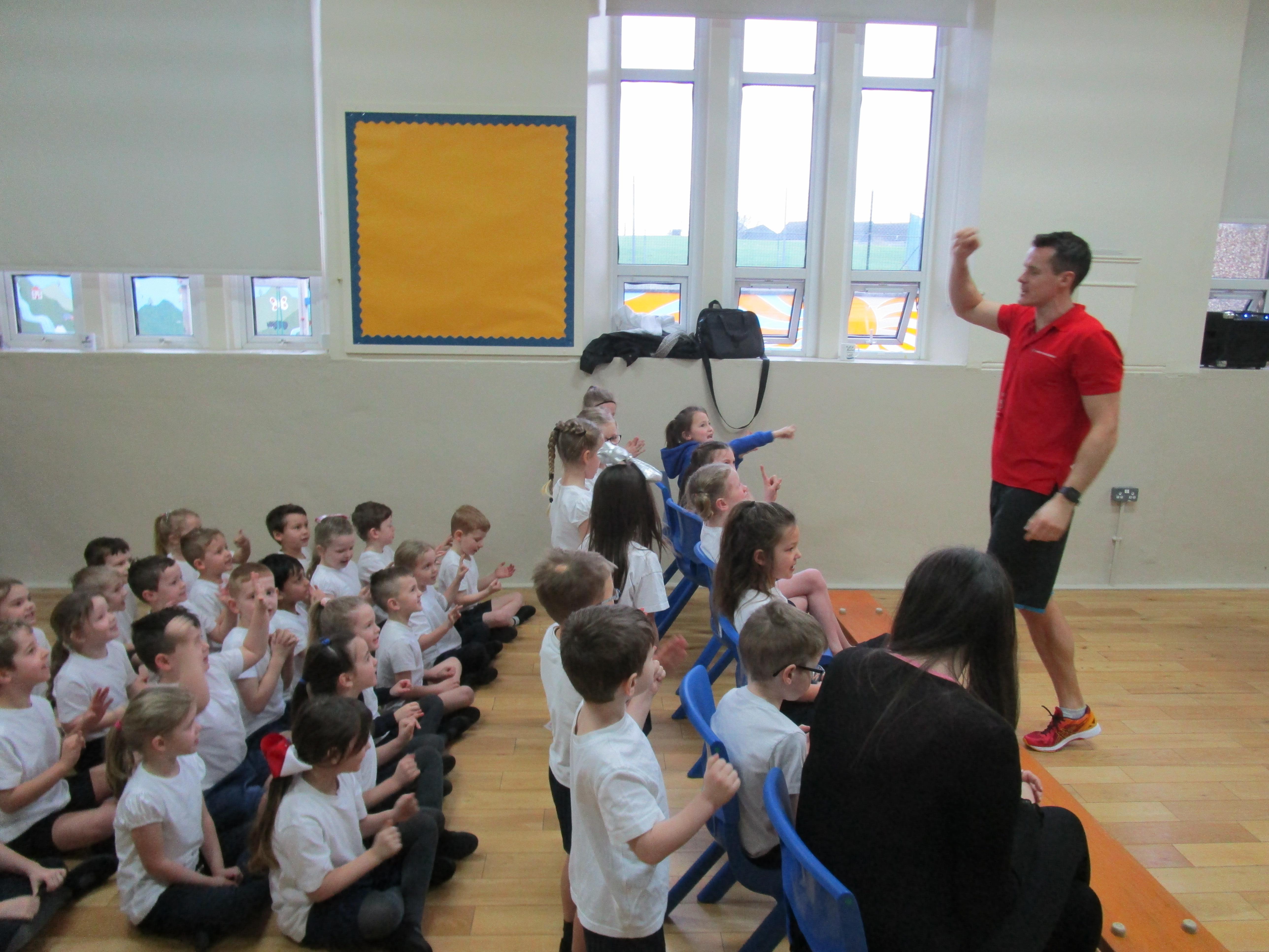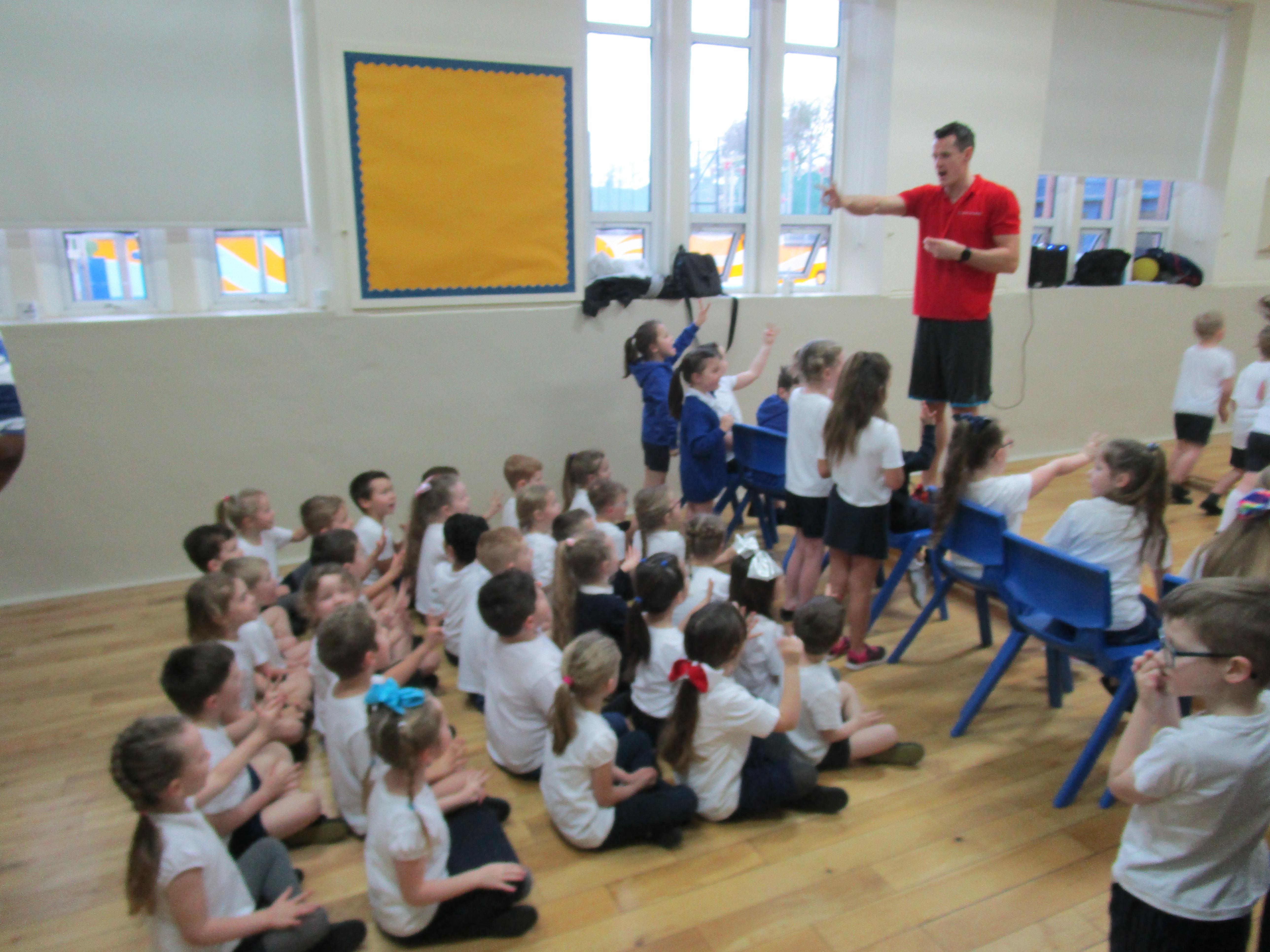 Today in school we welcomed Peter Bakare, an olympic athlete who competed in the 2012 Summer Olympics. First he got the children to complete an exercise circuit and then later on in the day he spoke to the whole school about his career and what motivated him to become an olympic athlete. The children even got the opportunity to ask him some questions.