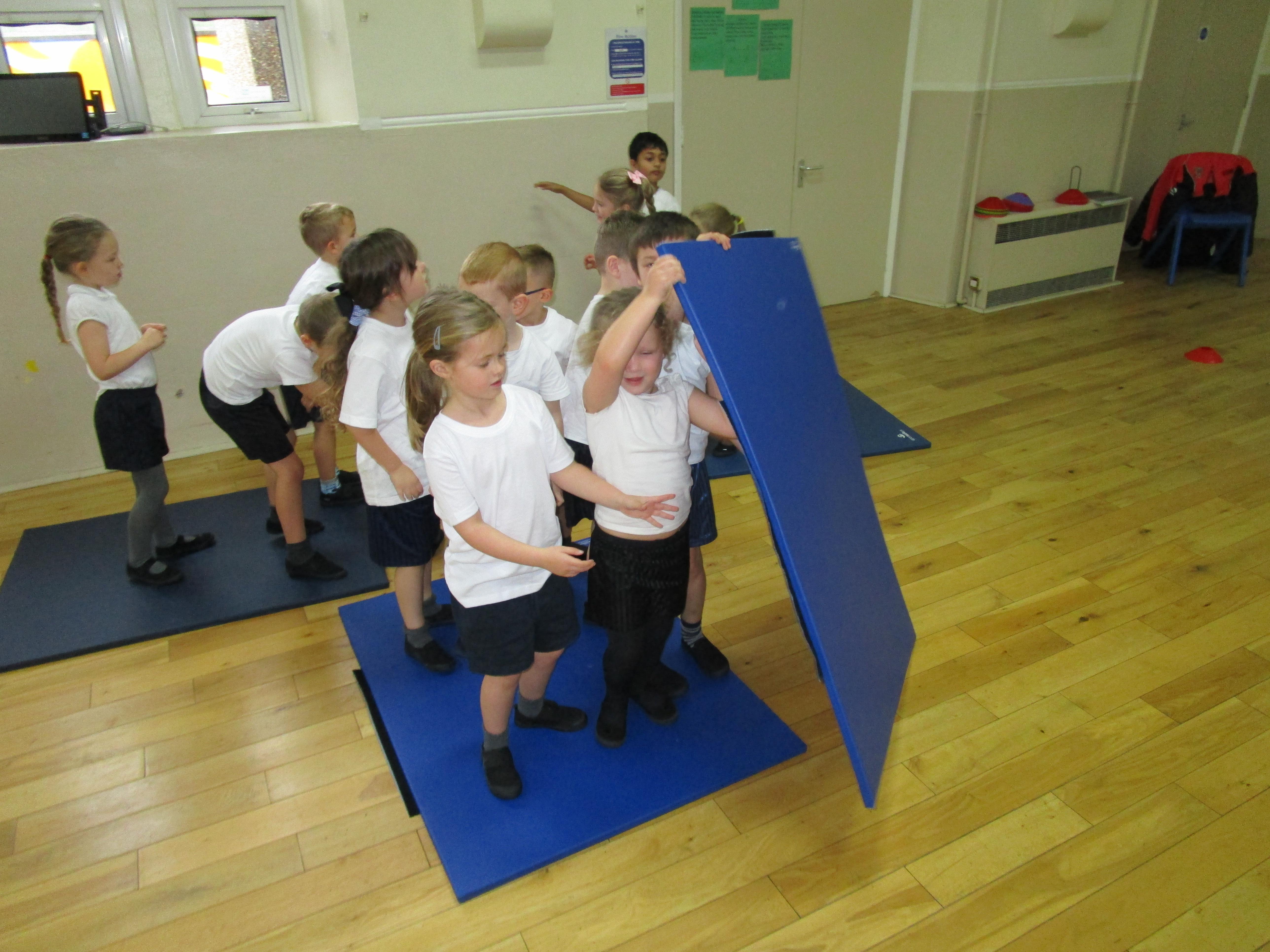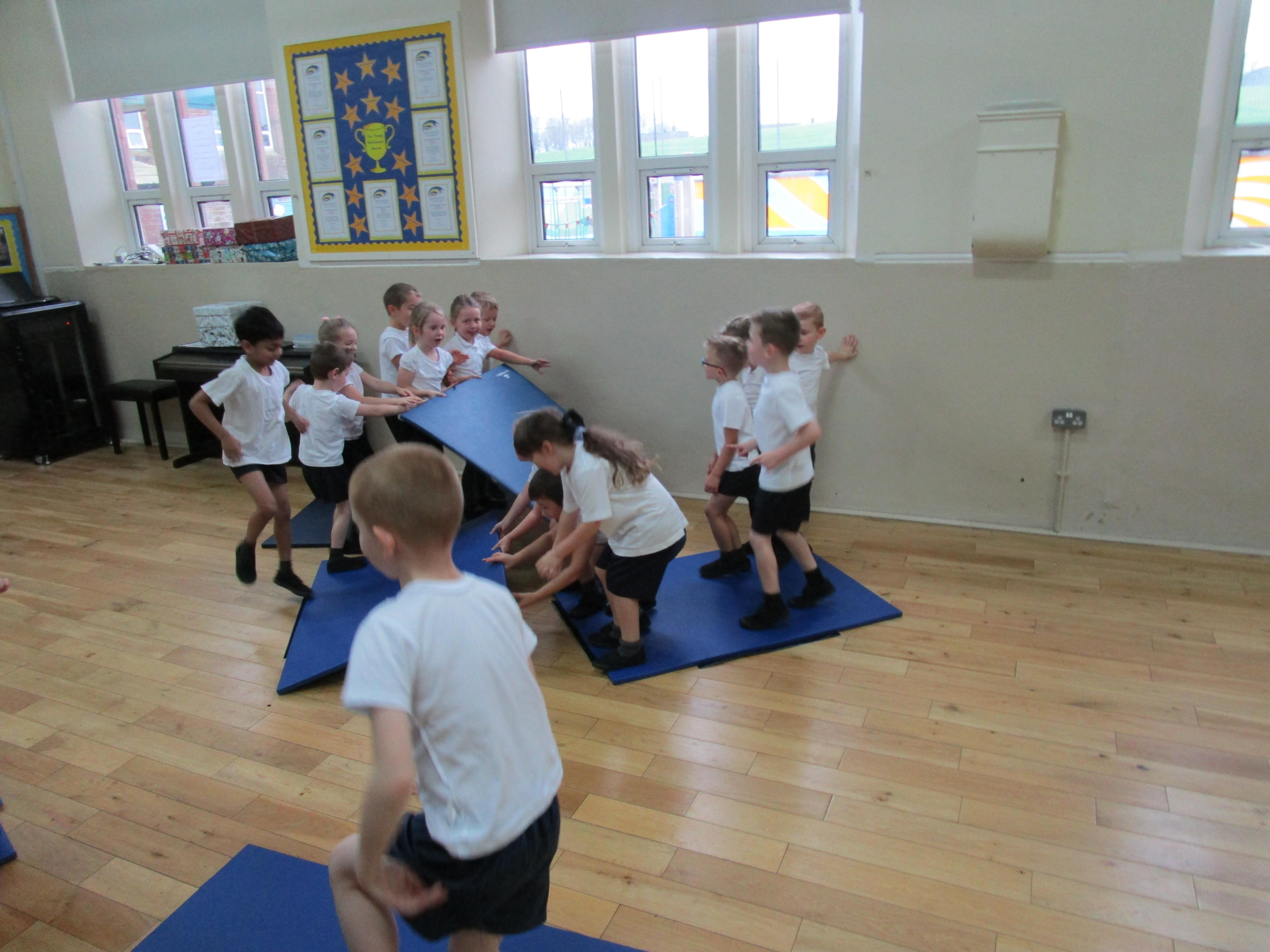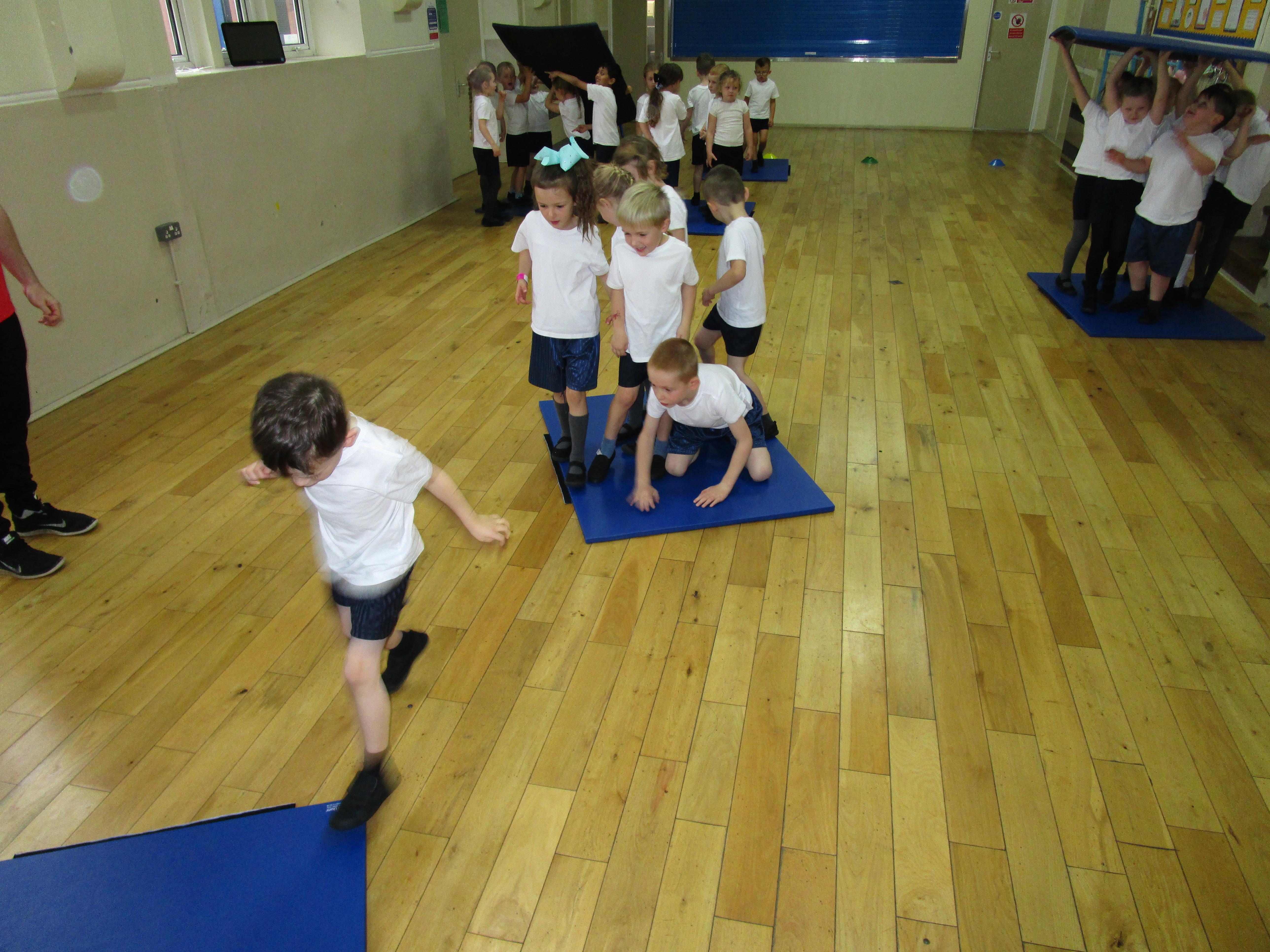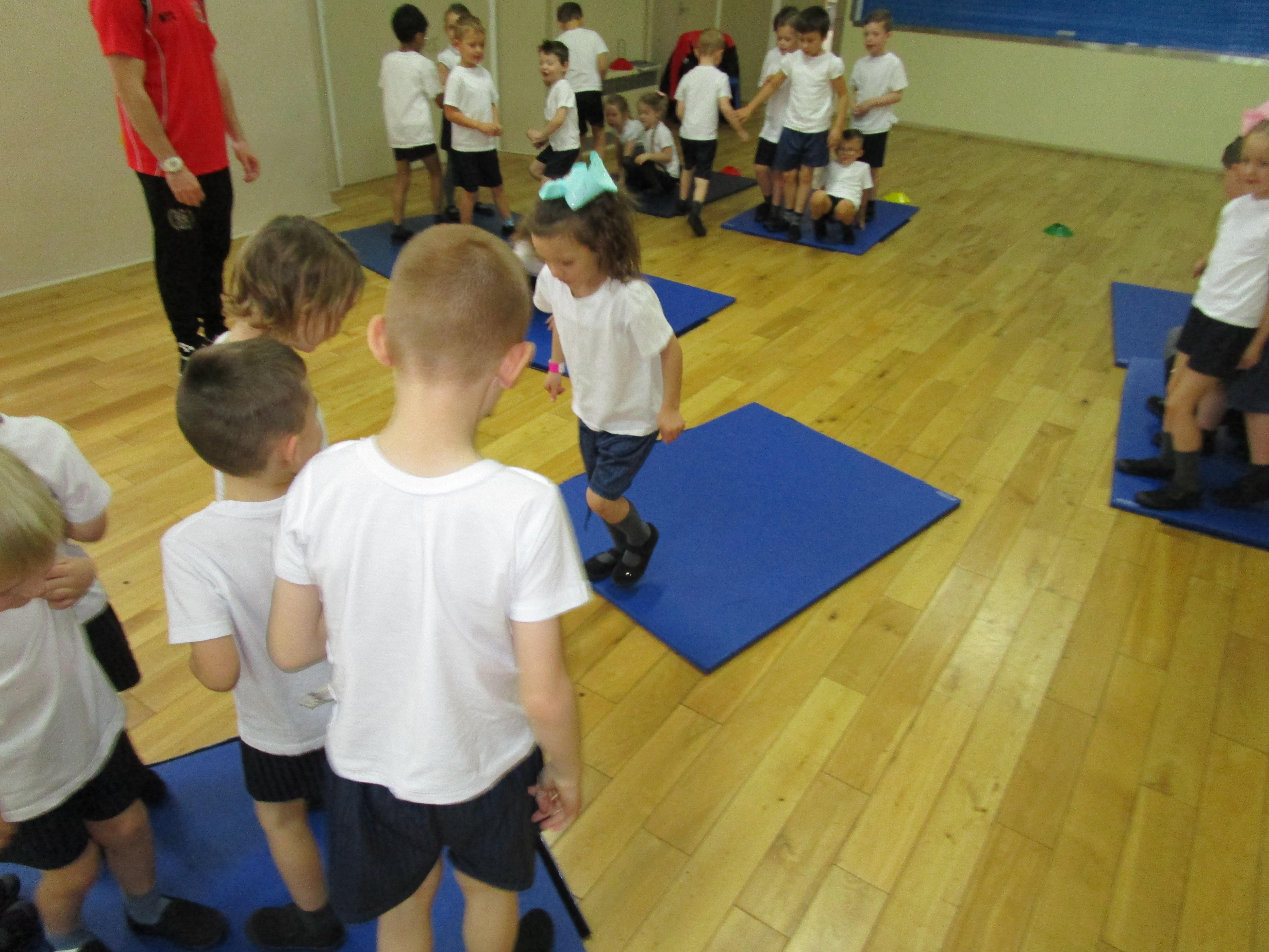 The children have been working with their coach Dan on team games. They had to work as a team to get two mats from one side of the hall to another. It was a lot more difficult than it sounded and required the children to work as a team and listen to each others ideas.