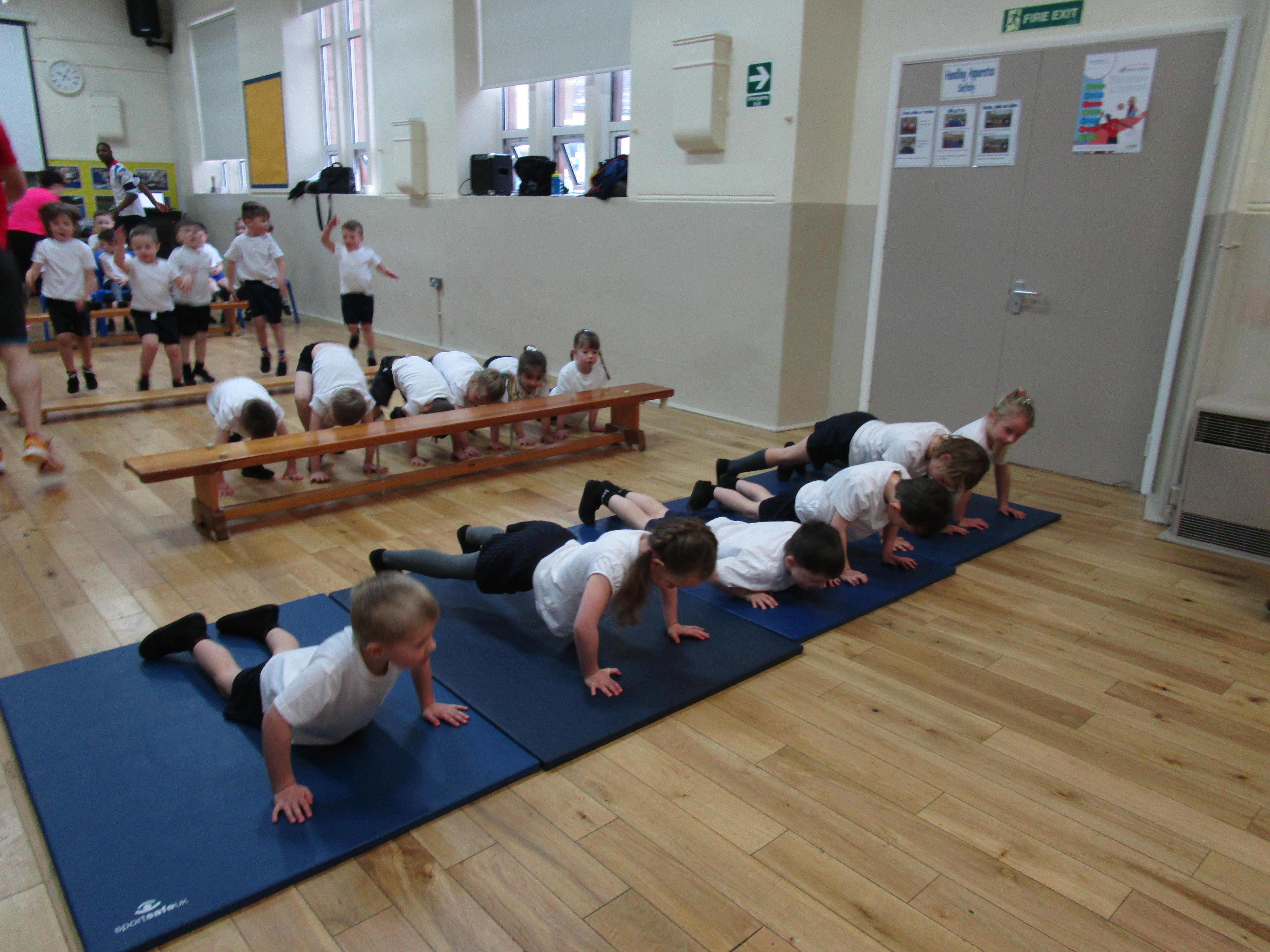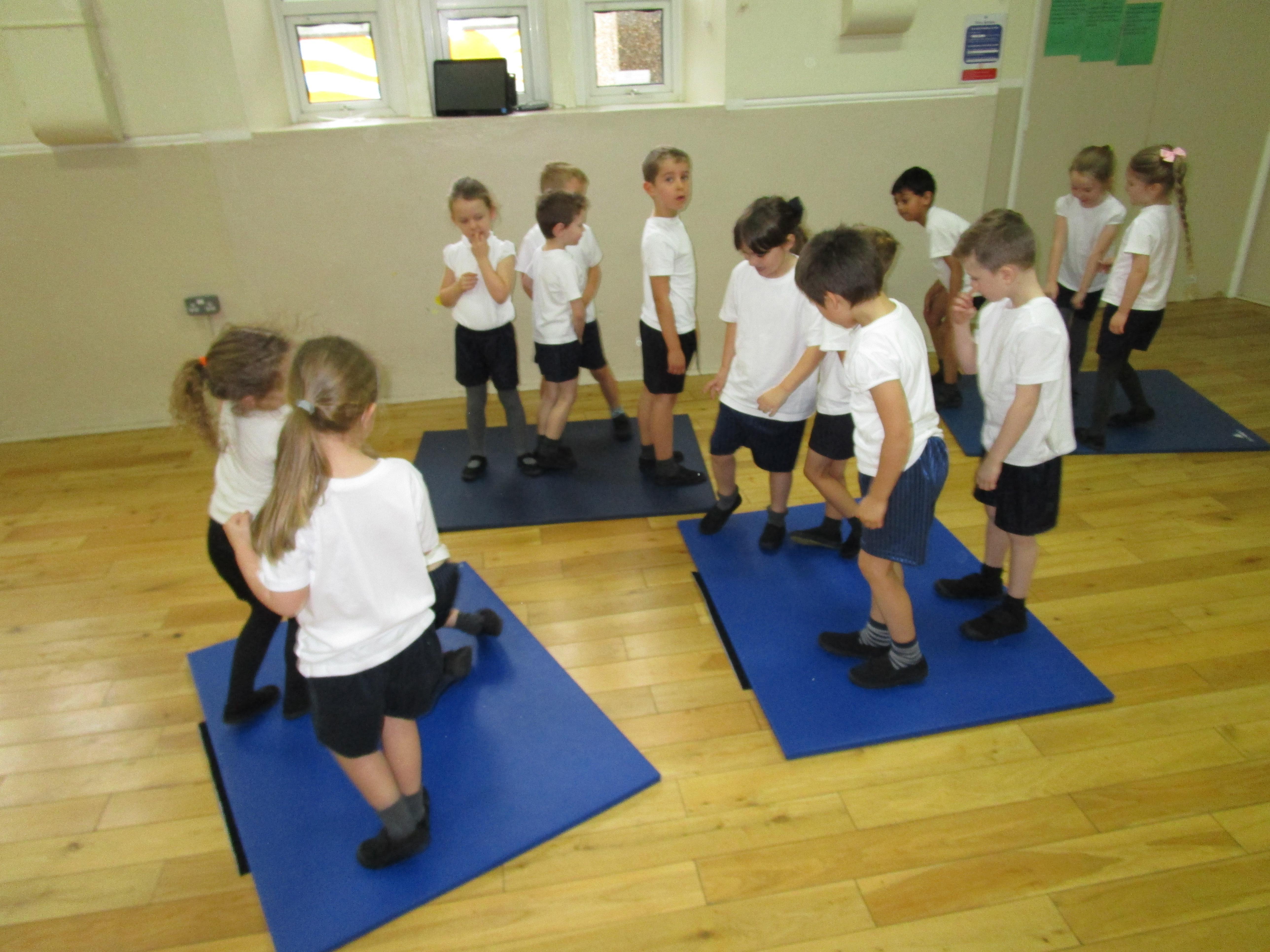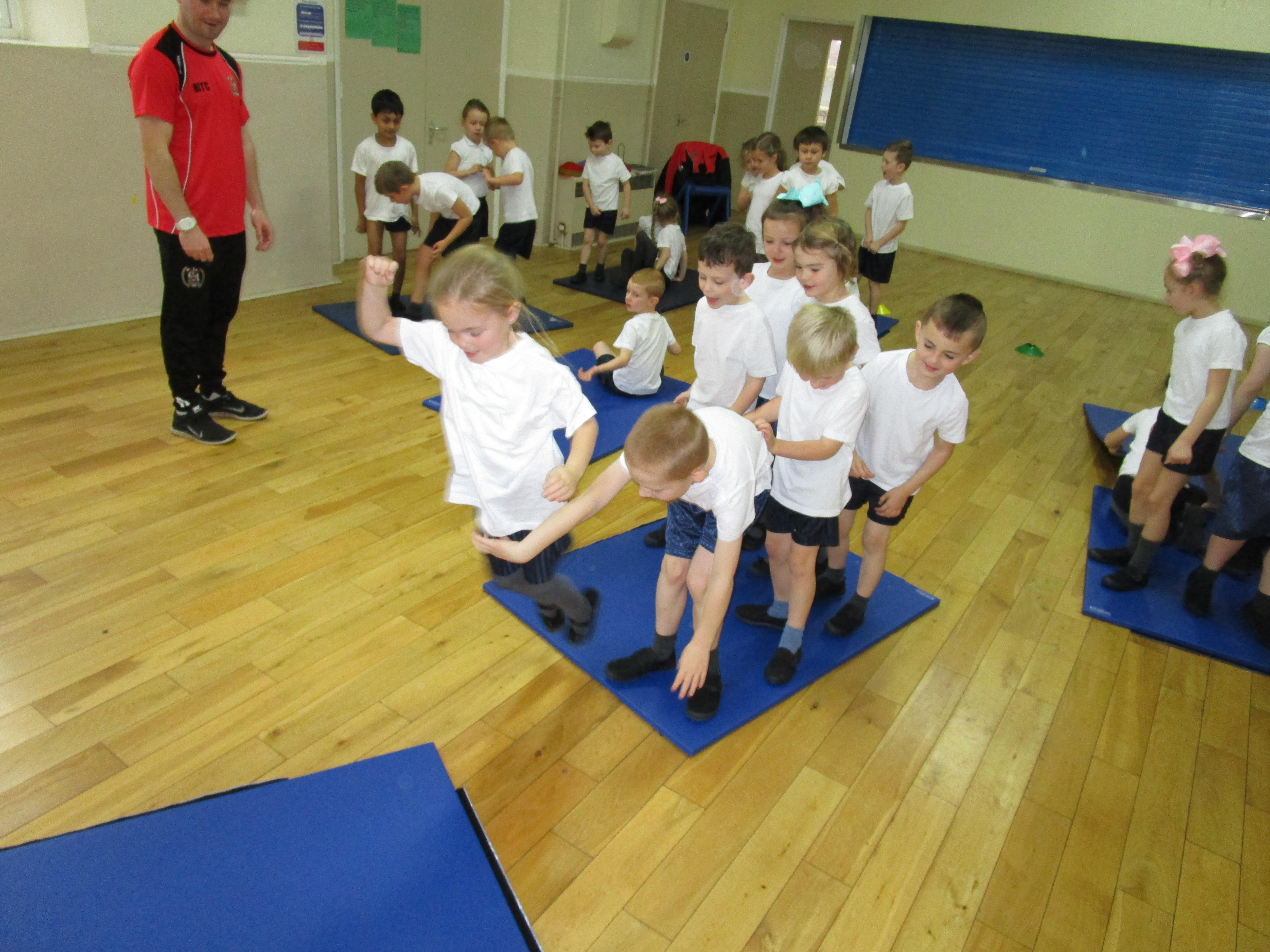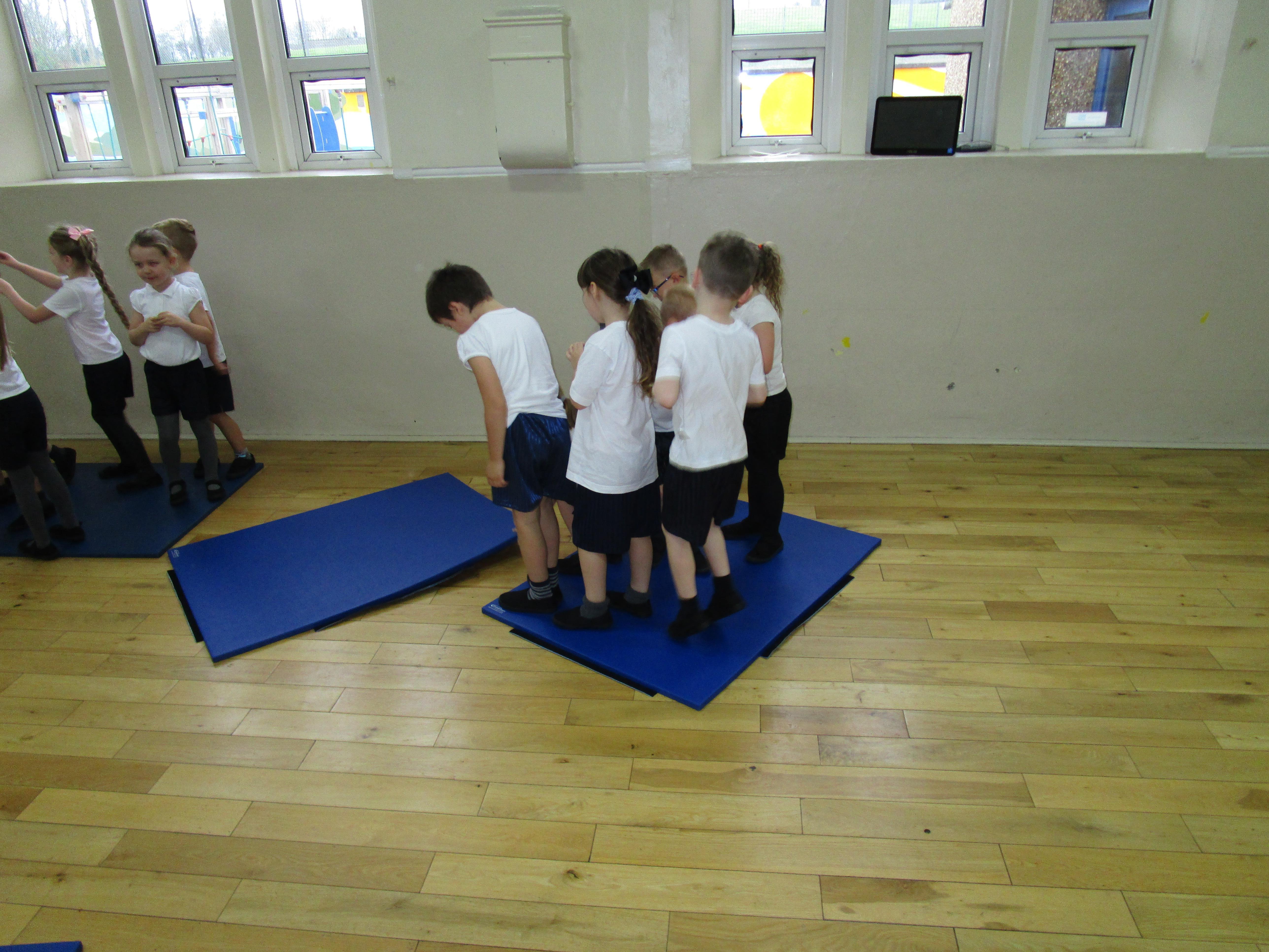 The children have been working with their coach Dan on team games. They had to work as a team to get two mats from one side of the hall to another. It was a lot more difficult than it sounded and required the children to work as a team and listen to each others ideas.