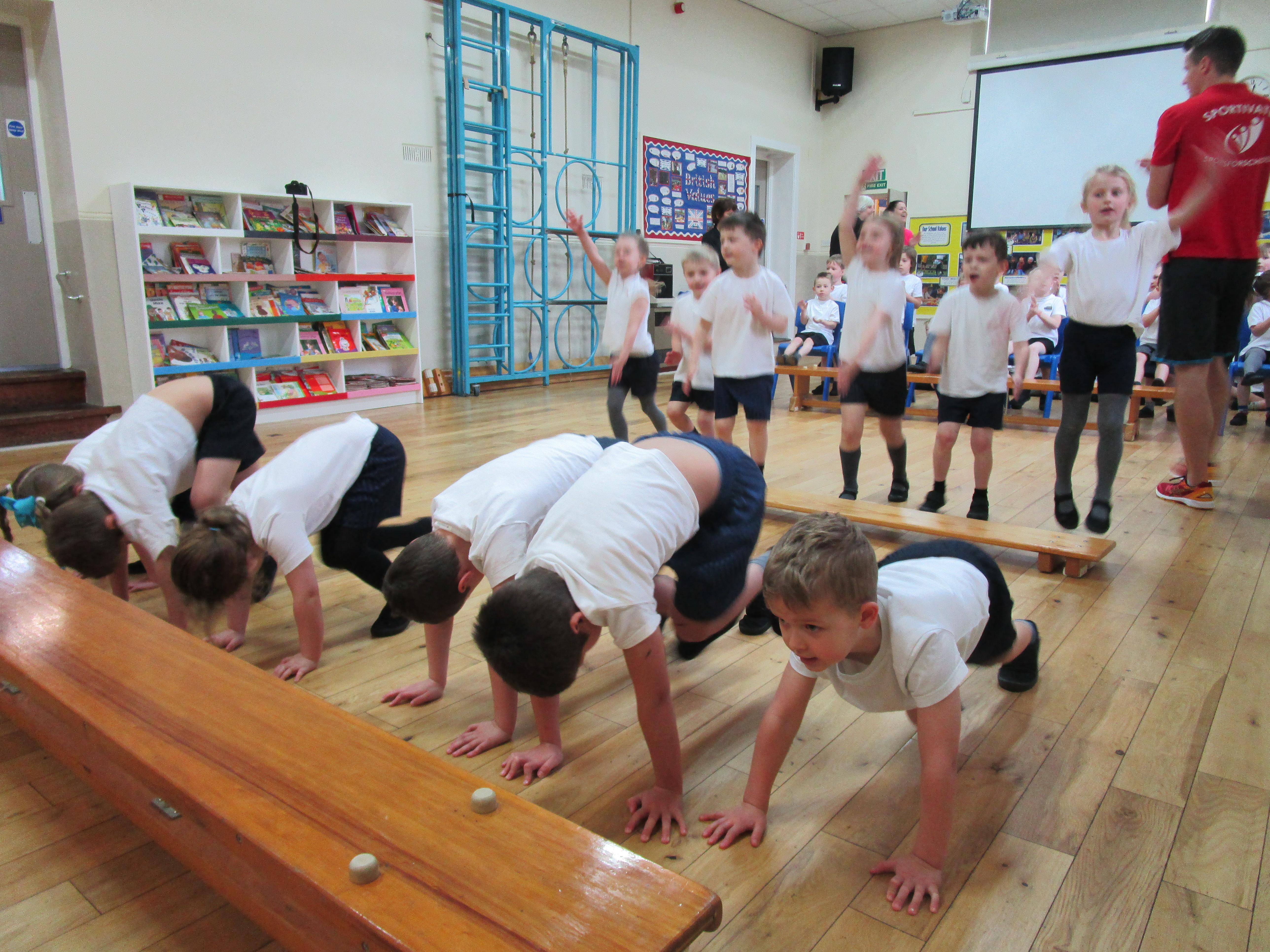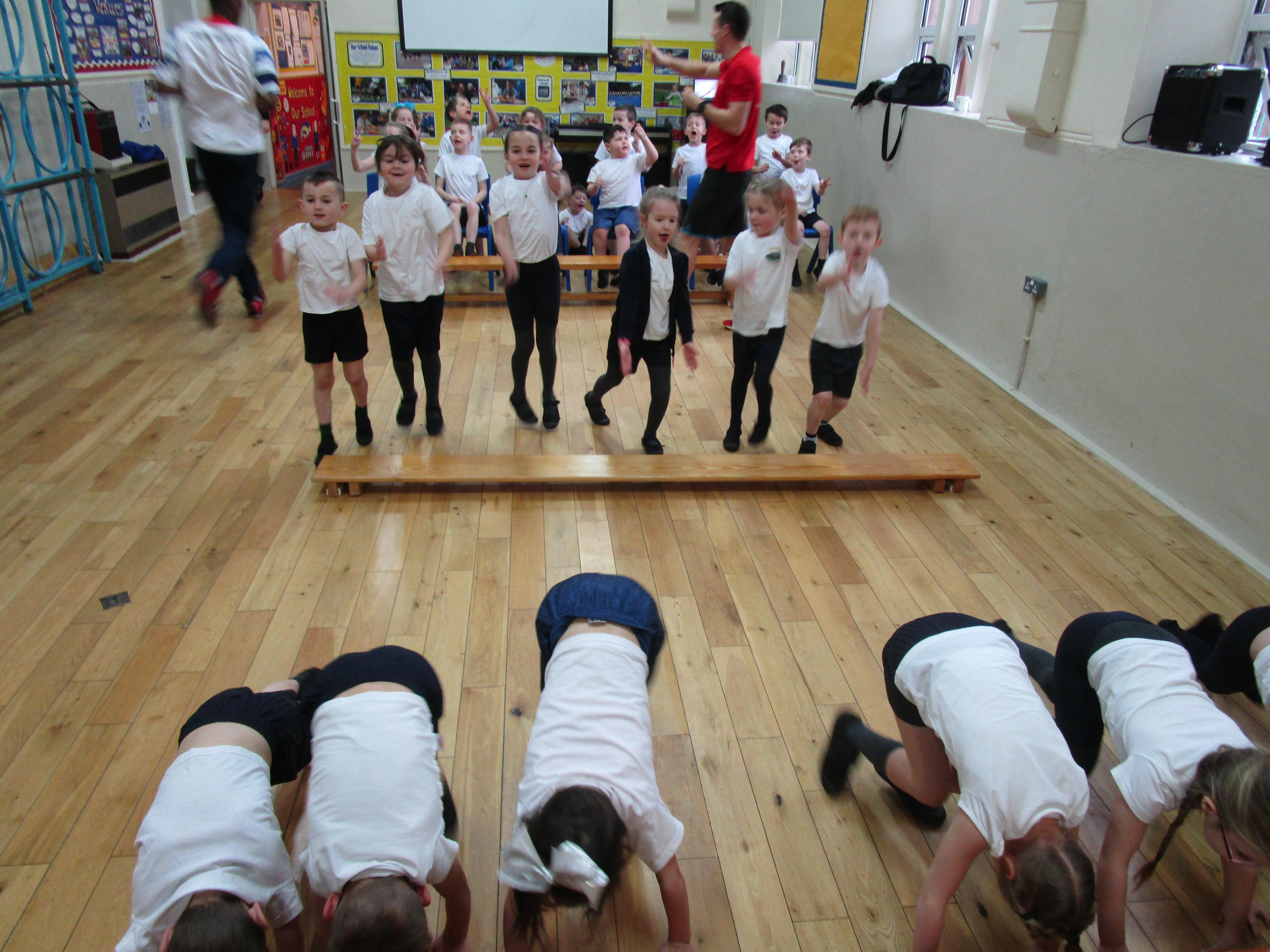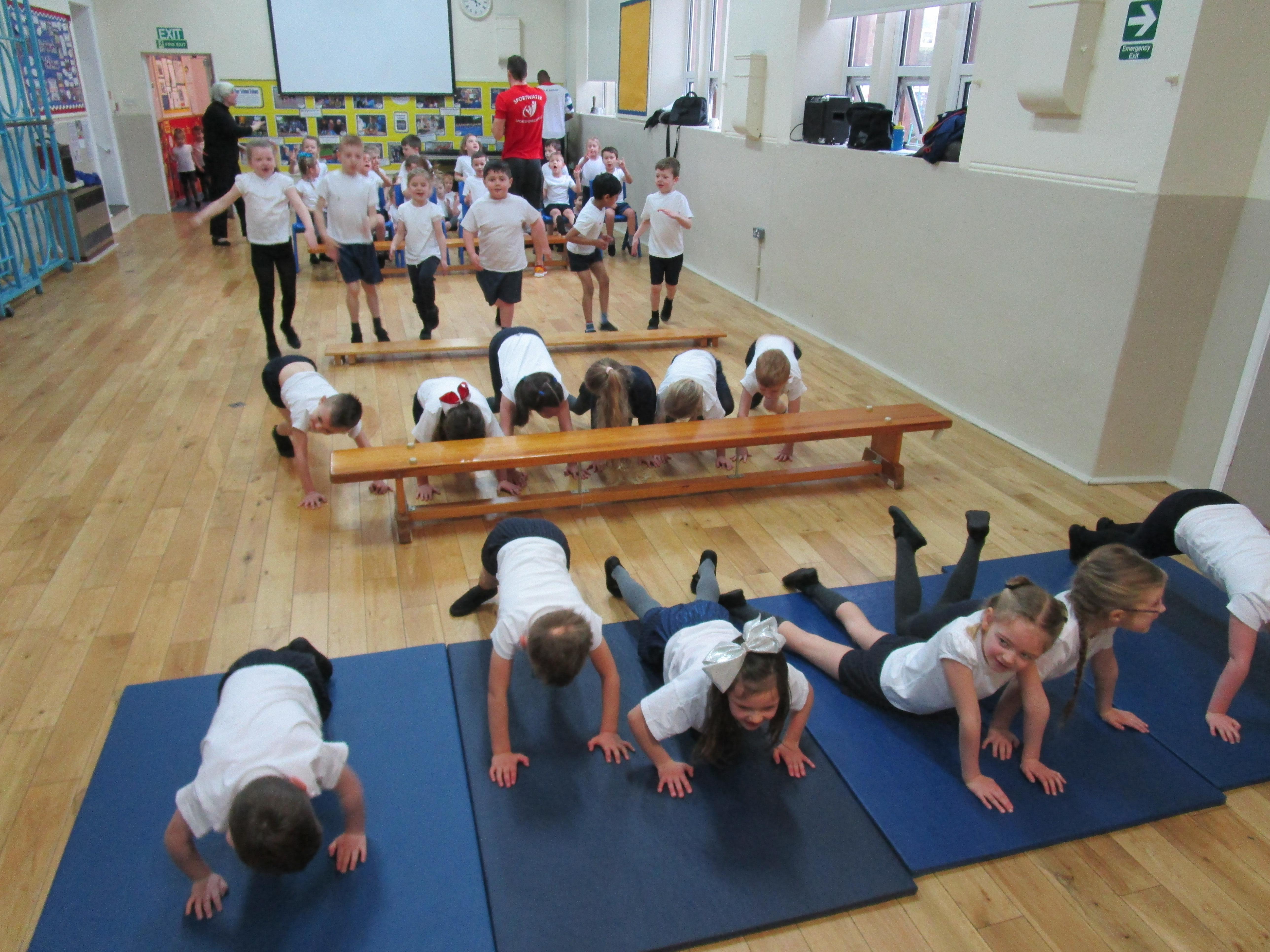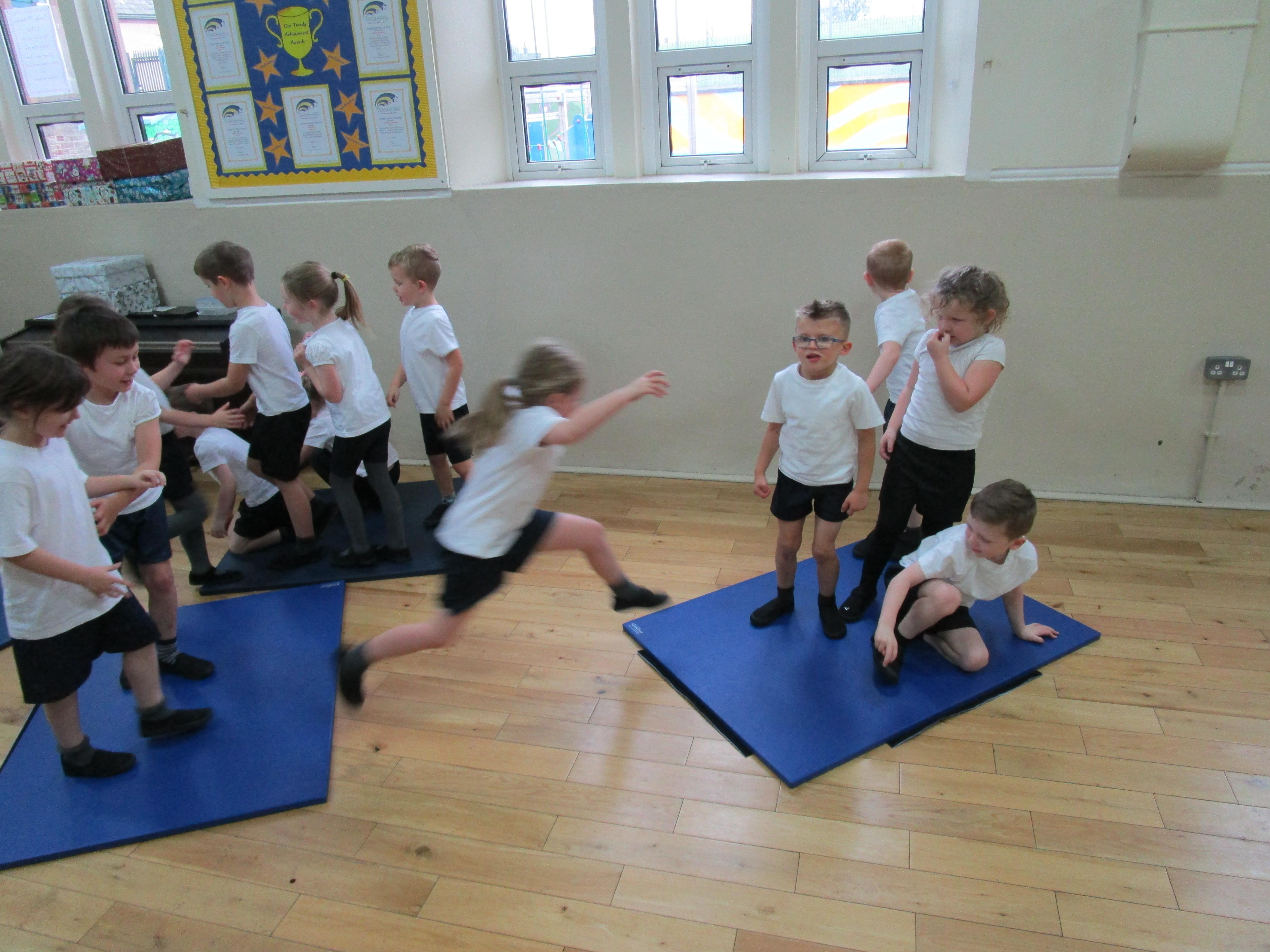 The children have been working with their coach Dan on team games. They had to work as a team to get two mats from one side of the hall to another. It was a lot more difficult than it sounded and required the children to work as a team and listen to each others ideas.
