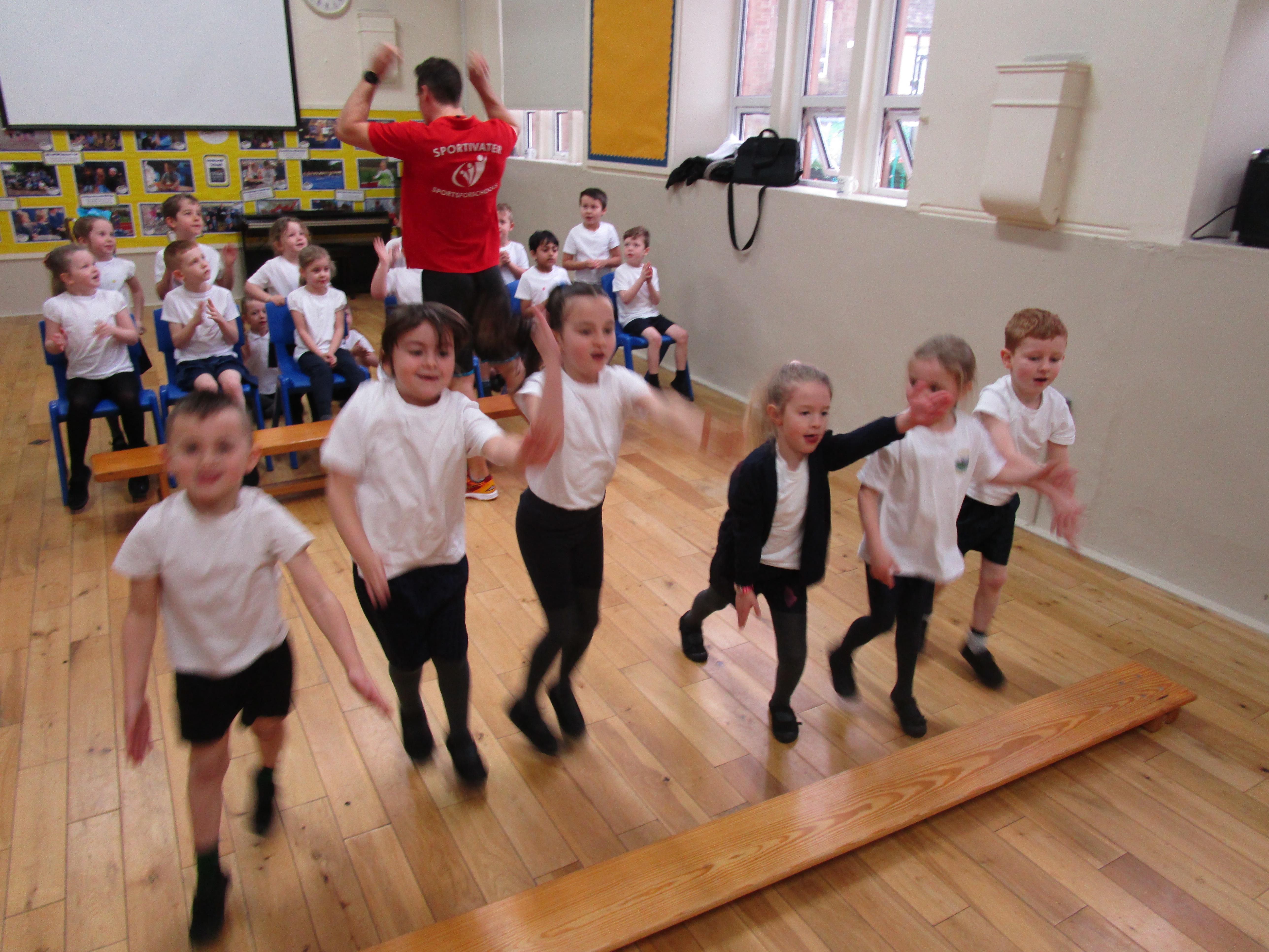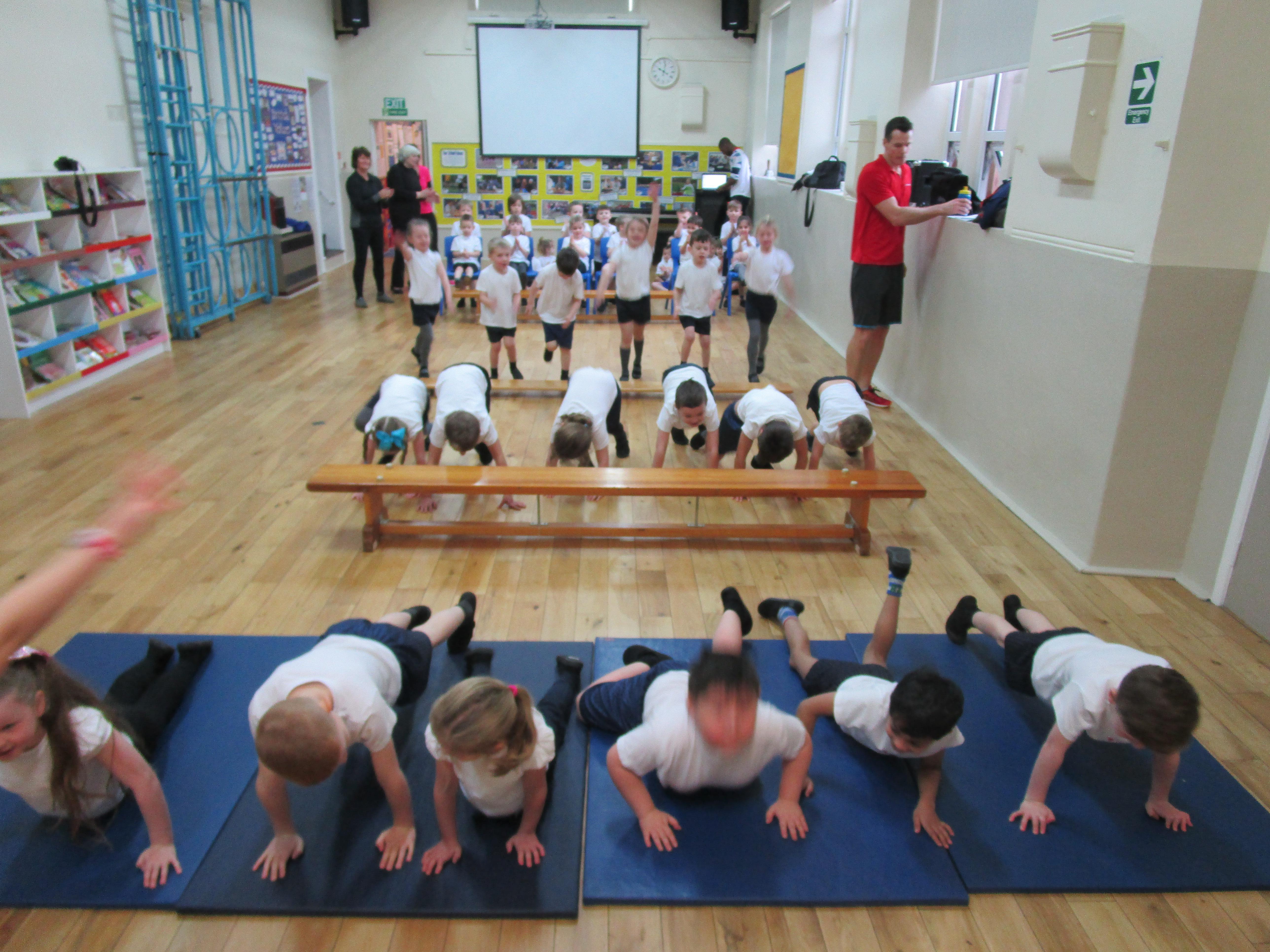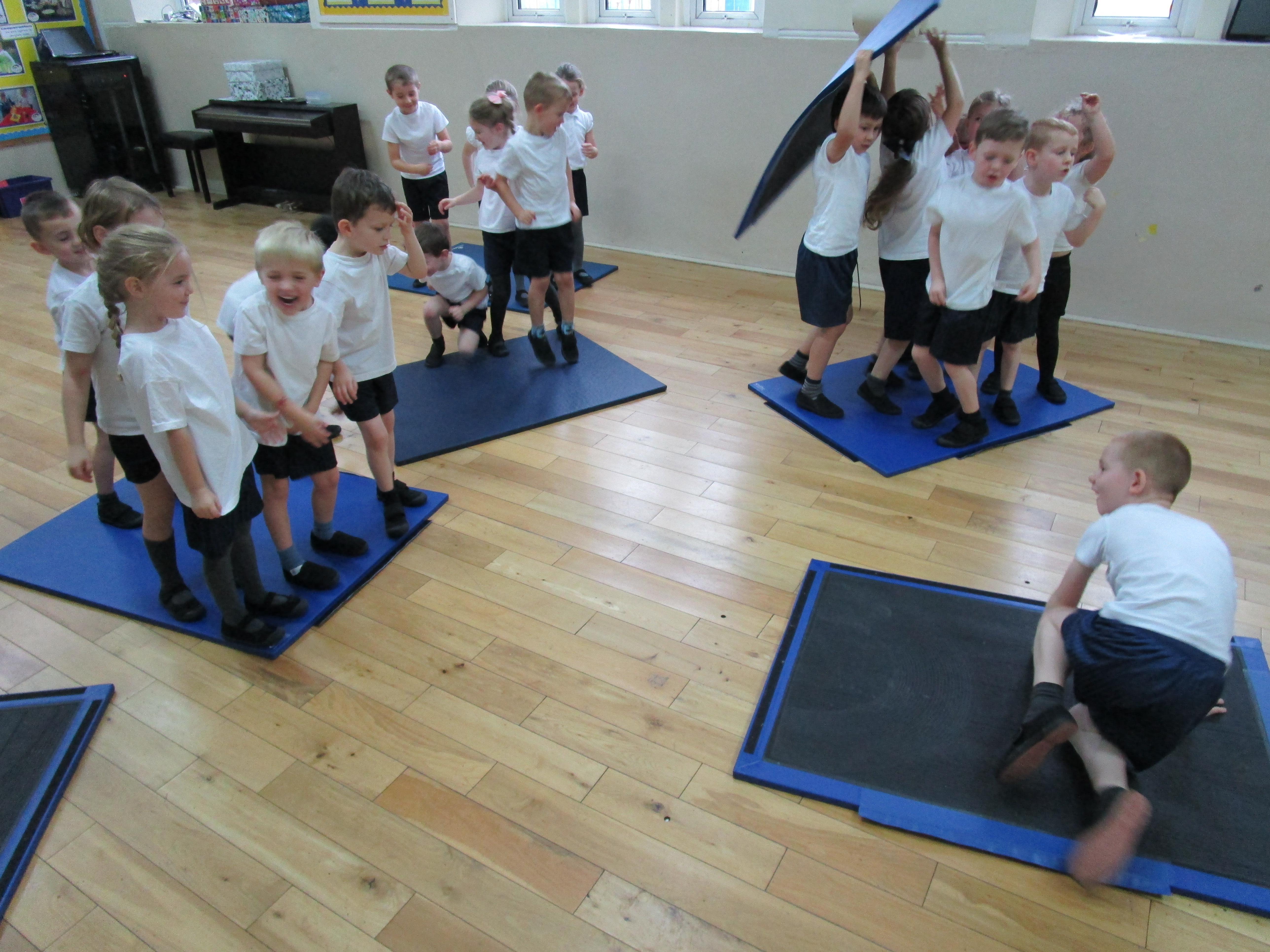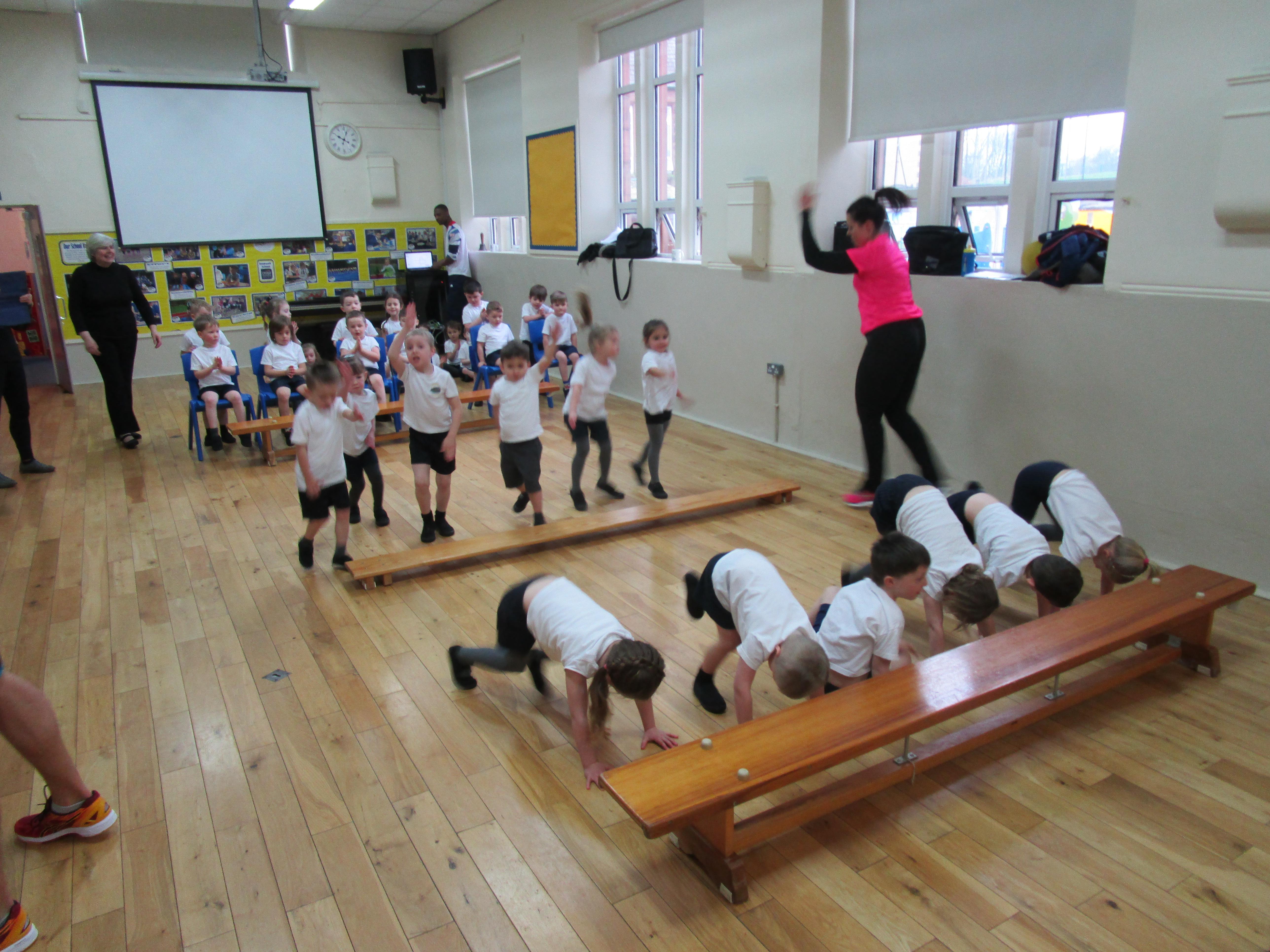 The children have been working with their coach Dan on team games. They had to work as a team to get two mats from one side of the hall to another. It was a lot more difficult than it sounded and required the children to work as a team and listen to each others ideas.