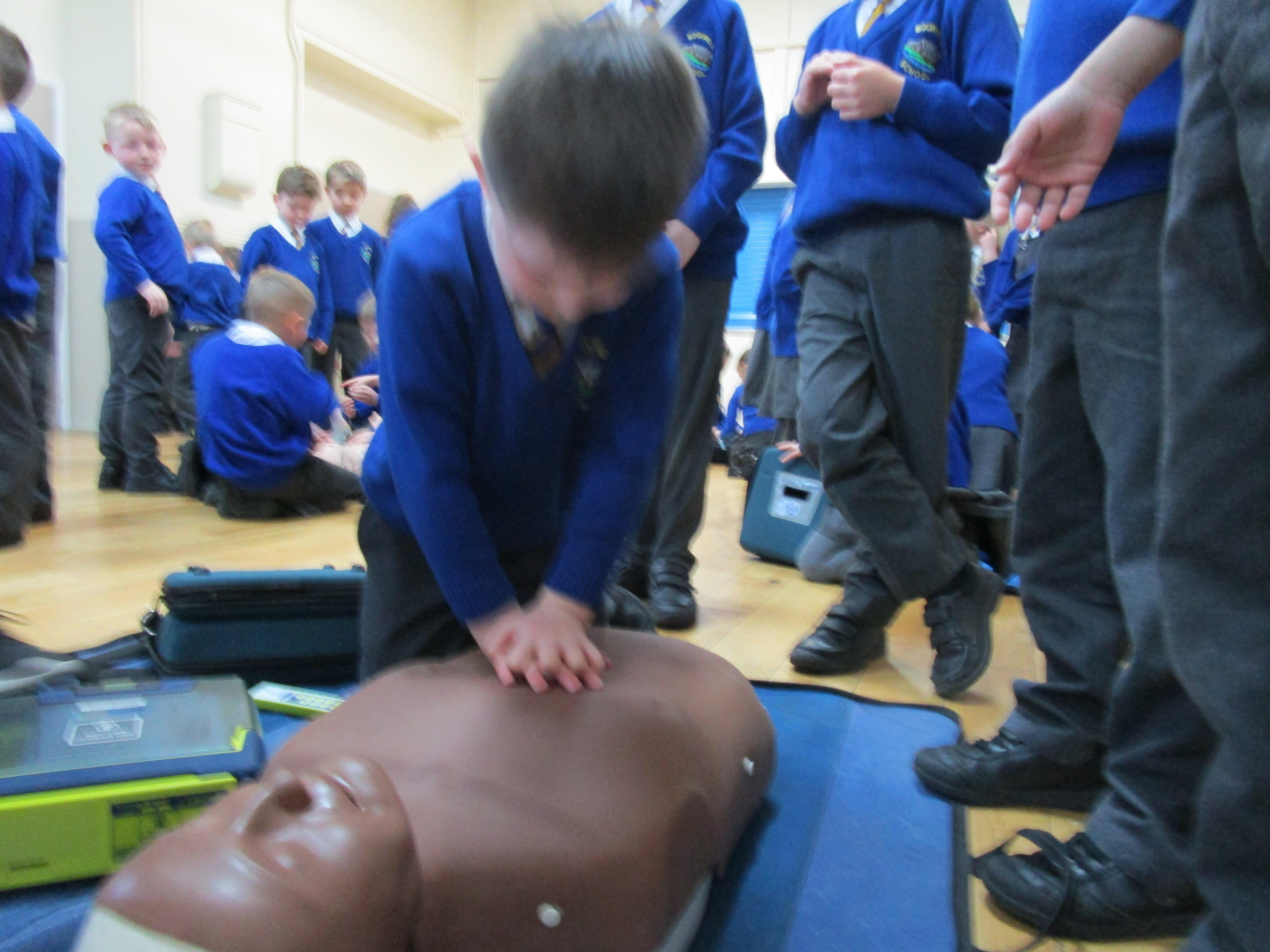 Today the children took part in some First Aid Training. First they had to watch videos of different scenarios and then they had to work out the best way to treat the casualty and how they should respond in each emergency situation. Then the children had a go at doing CPR and and using a defibrillator.
