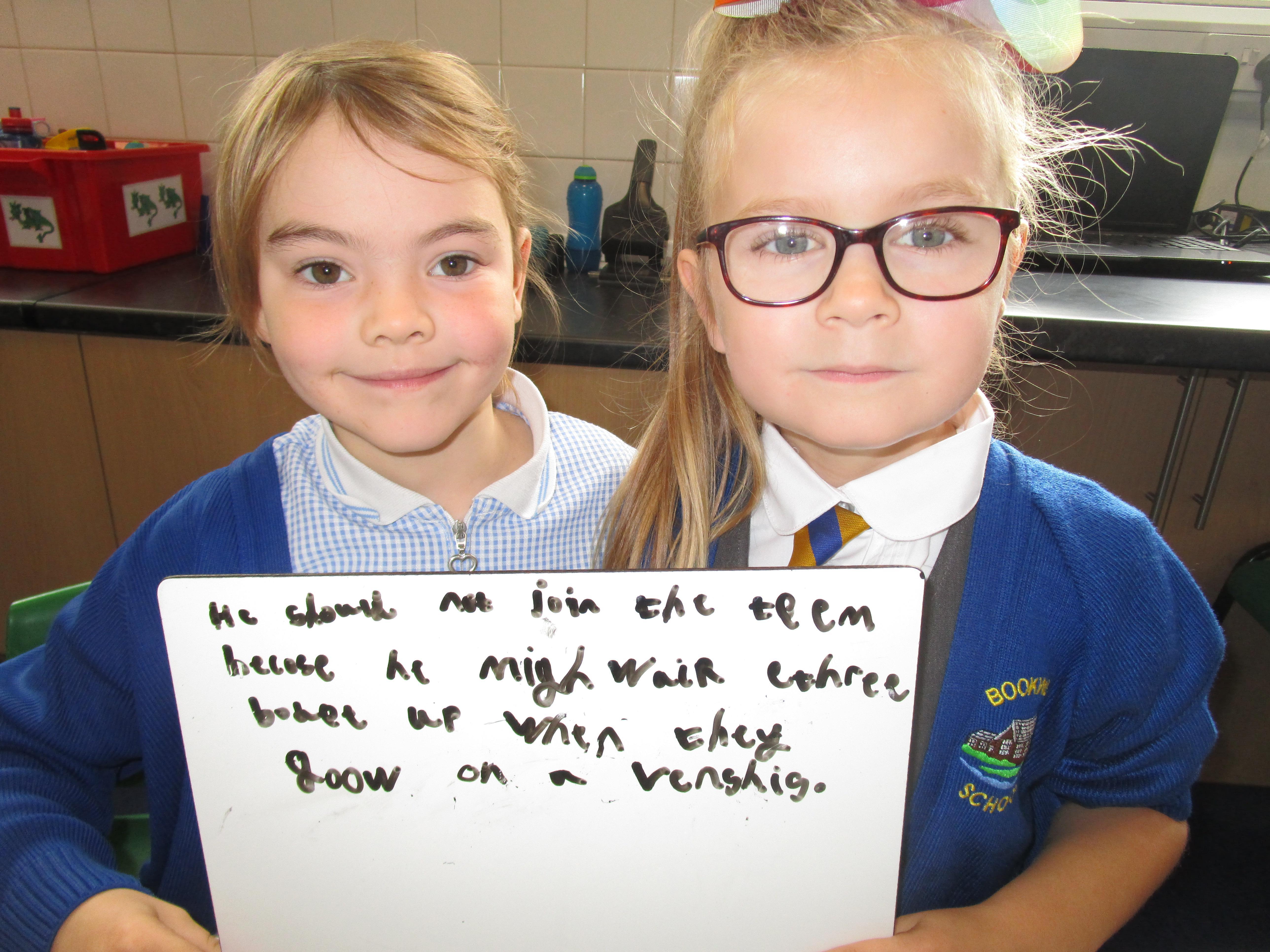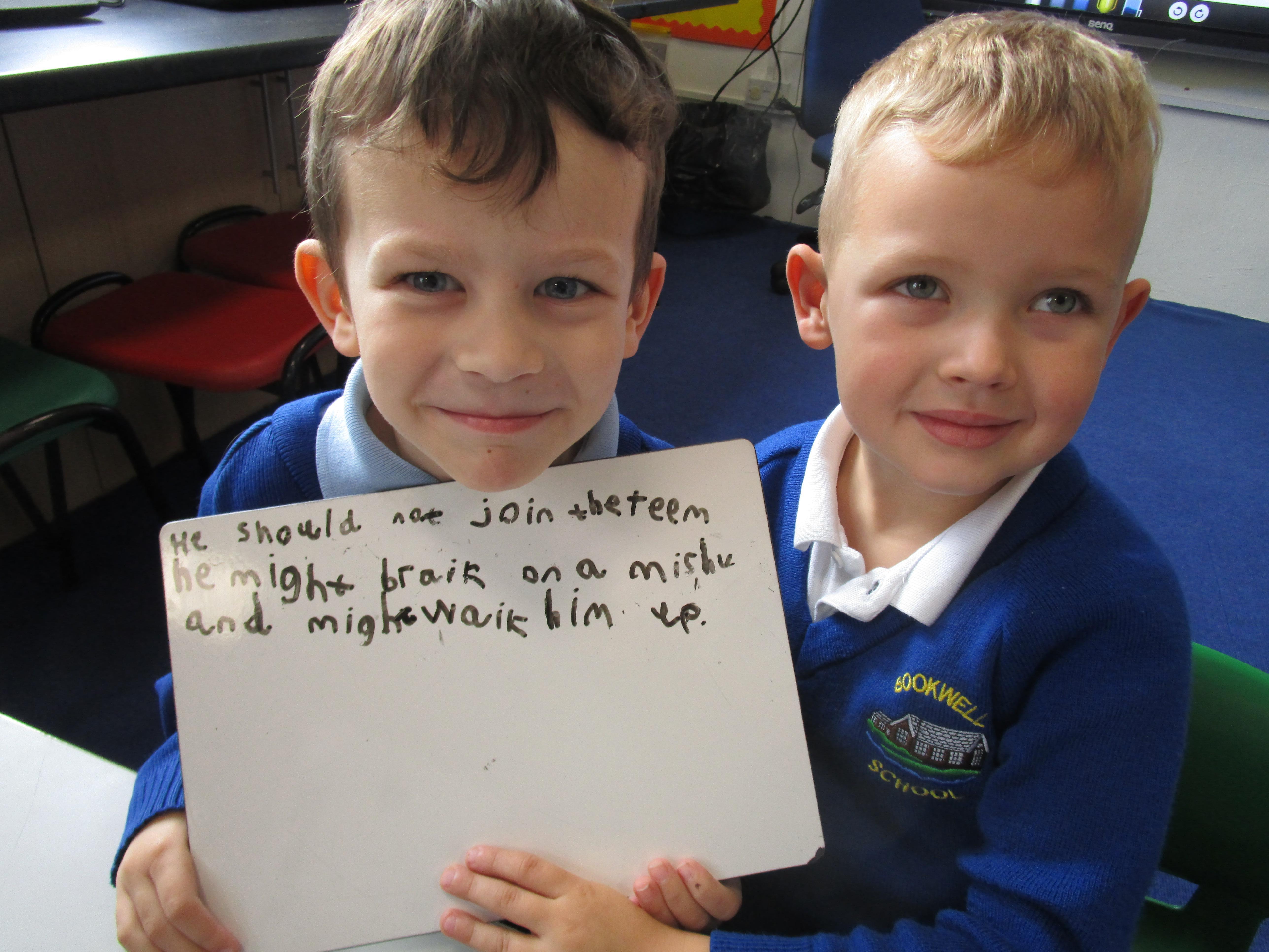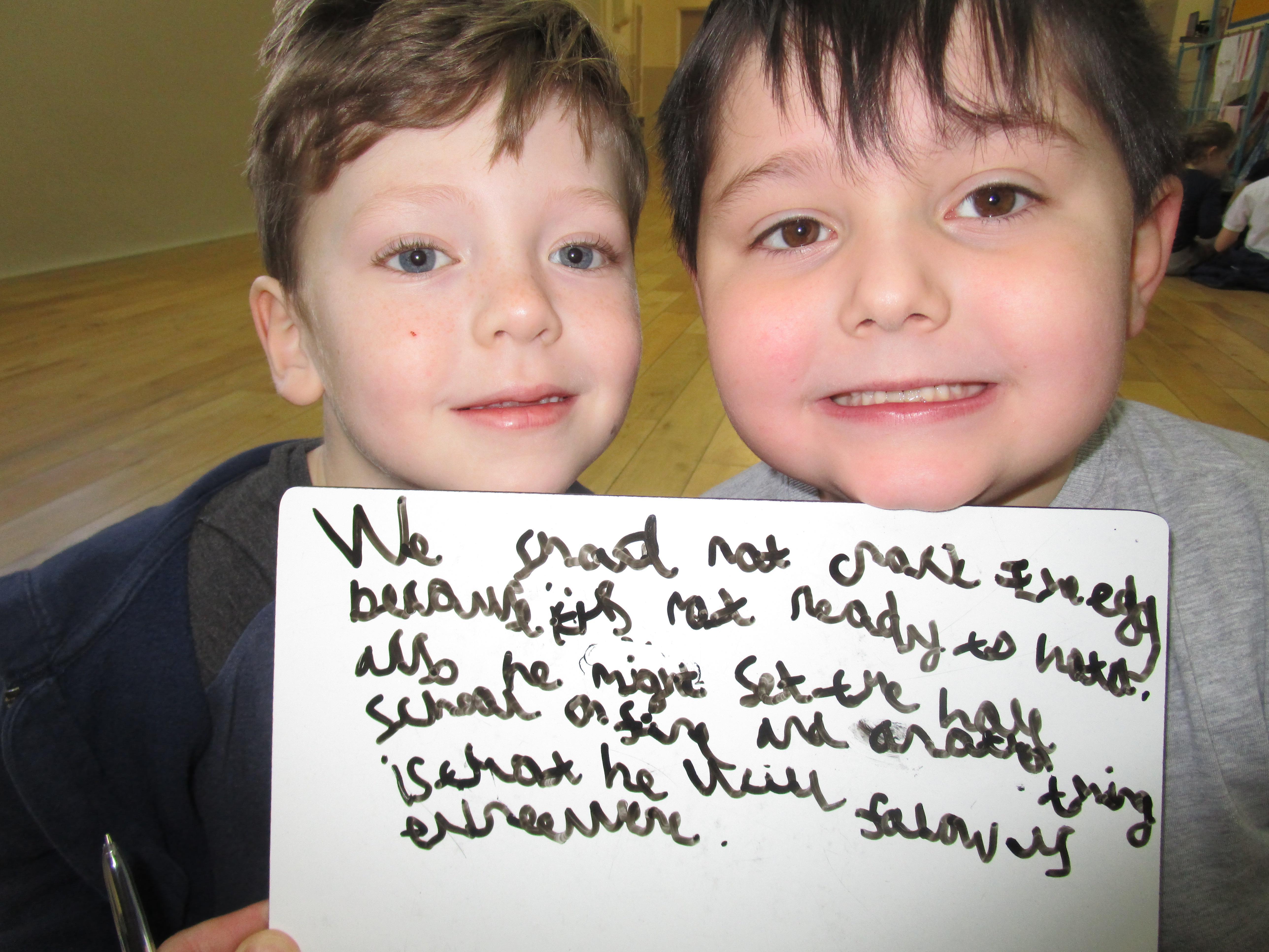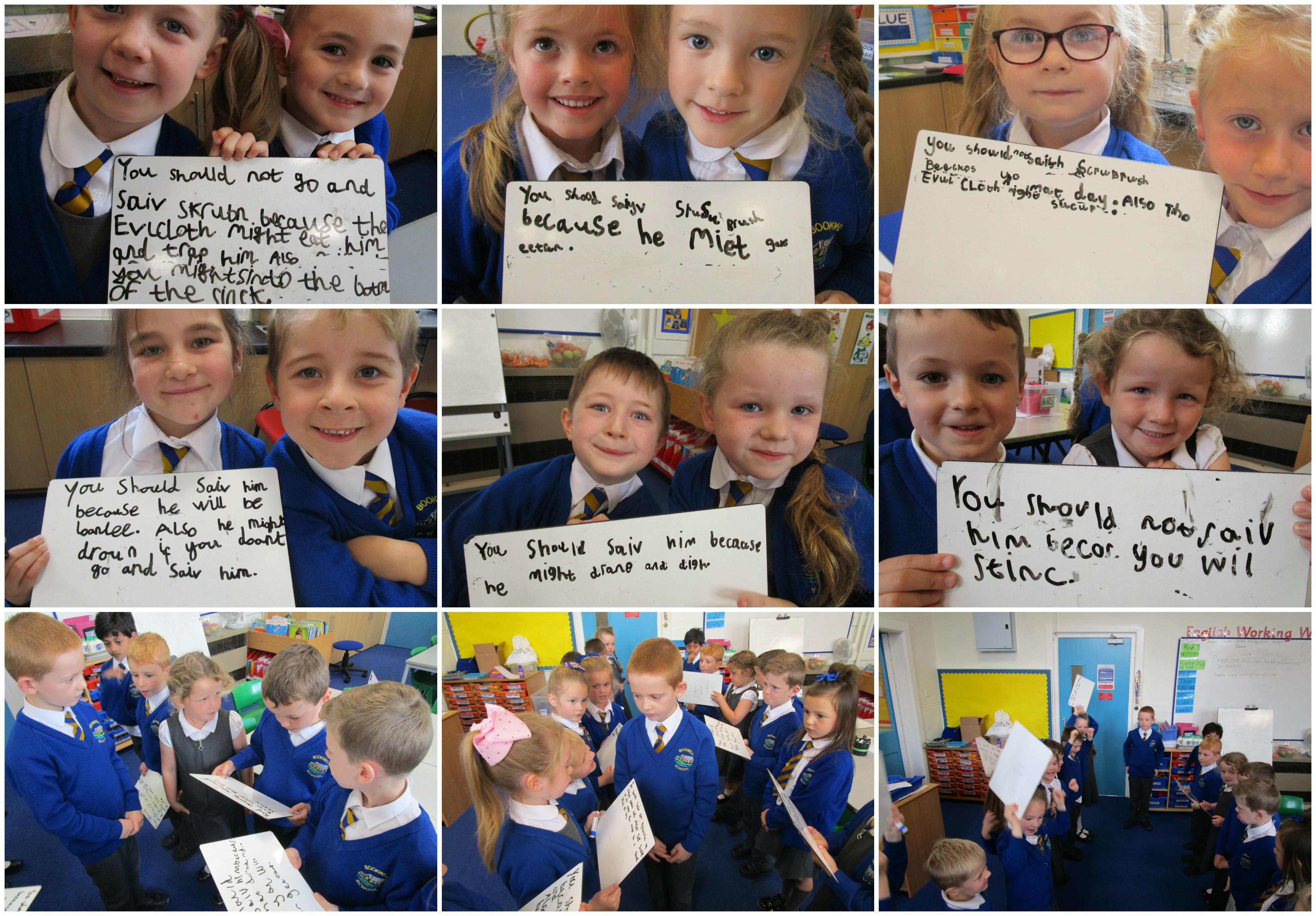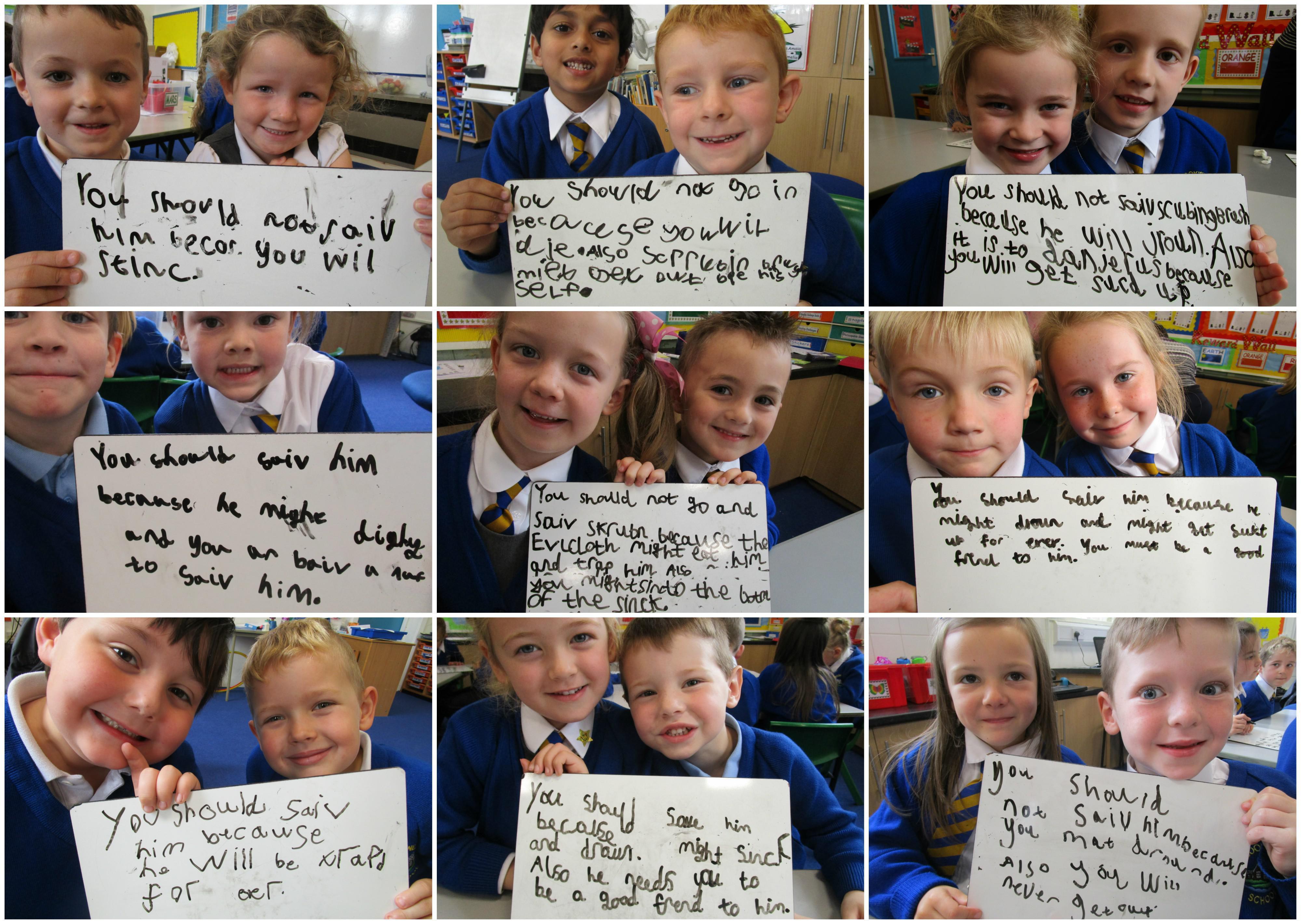 Today in class we have started reading, 'Traction Man is Here' and then the children took part in a conscience alley activity. They had to work in pairs to think of reasons for and against Traction Man going into the sink to rescue his friend Scrubbing Brush from Evil Cloth, using the word 'because' to support their ideas. In the end 'Traction Man' decided to rescue Scrubbing Brush because he wanted to save his friend.