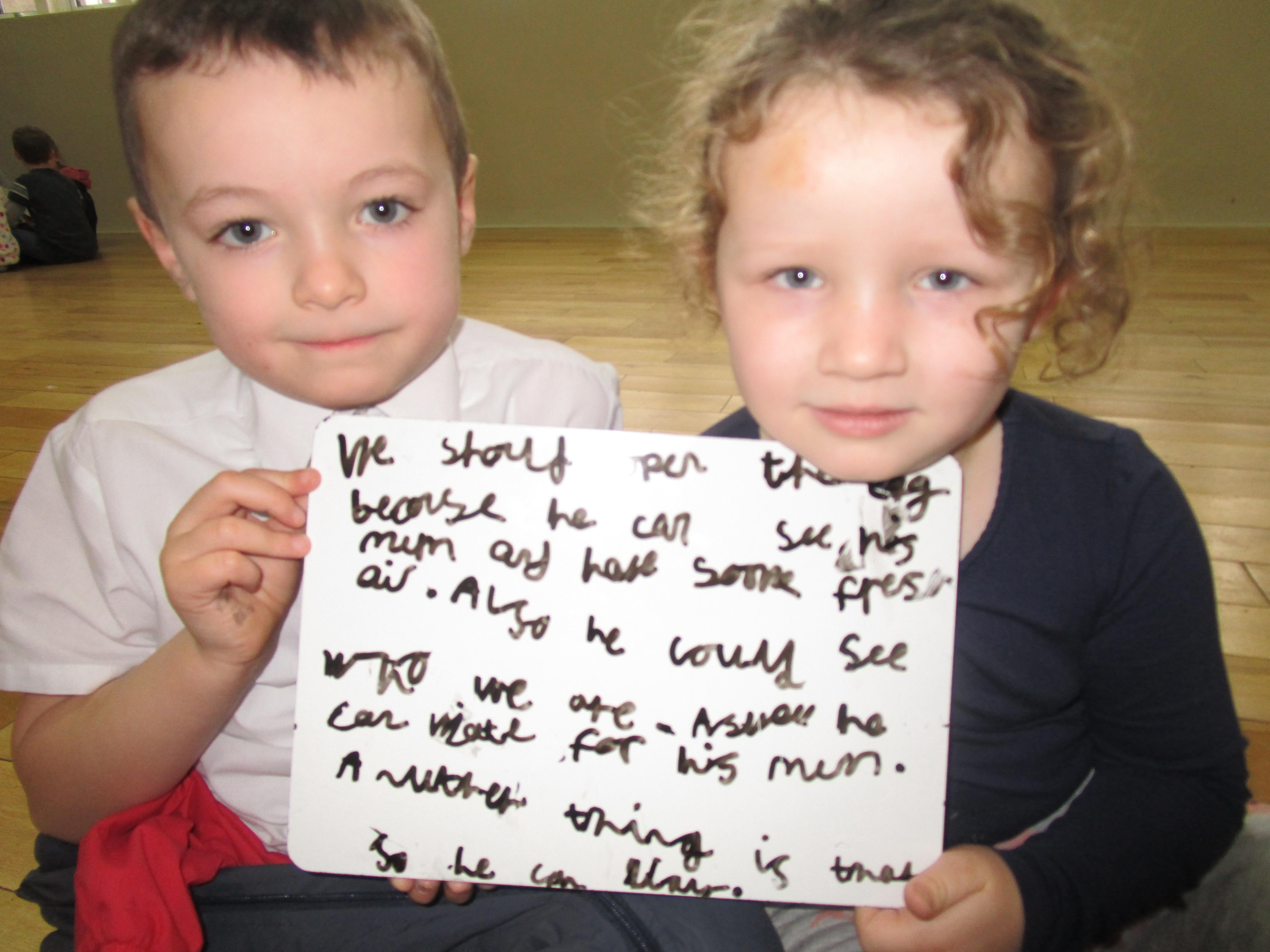 To start our RE topic we learned about the word creation and what it means. The children were each given a piece of paper and were given 10 minutes to create something with it. Some created beautiful pictures, whilst others ripped the paper to create animal shapes. After this the children were asked how they would want their creation to be treated and how they would feel if it was damaged.