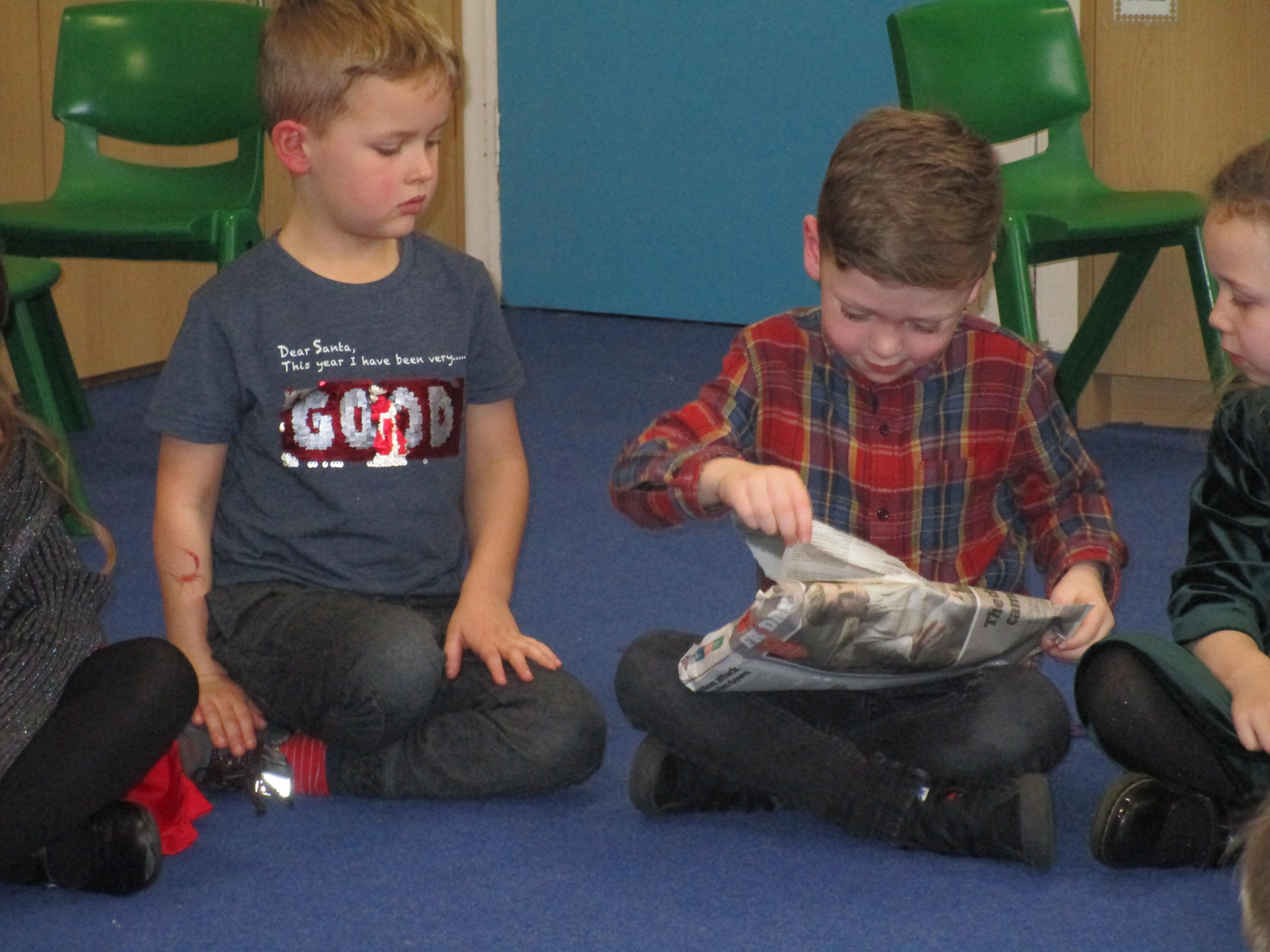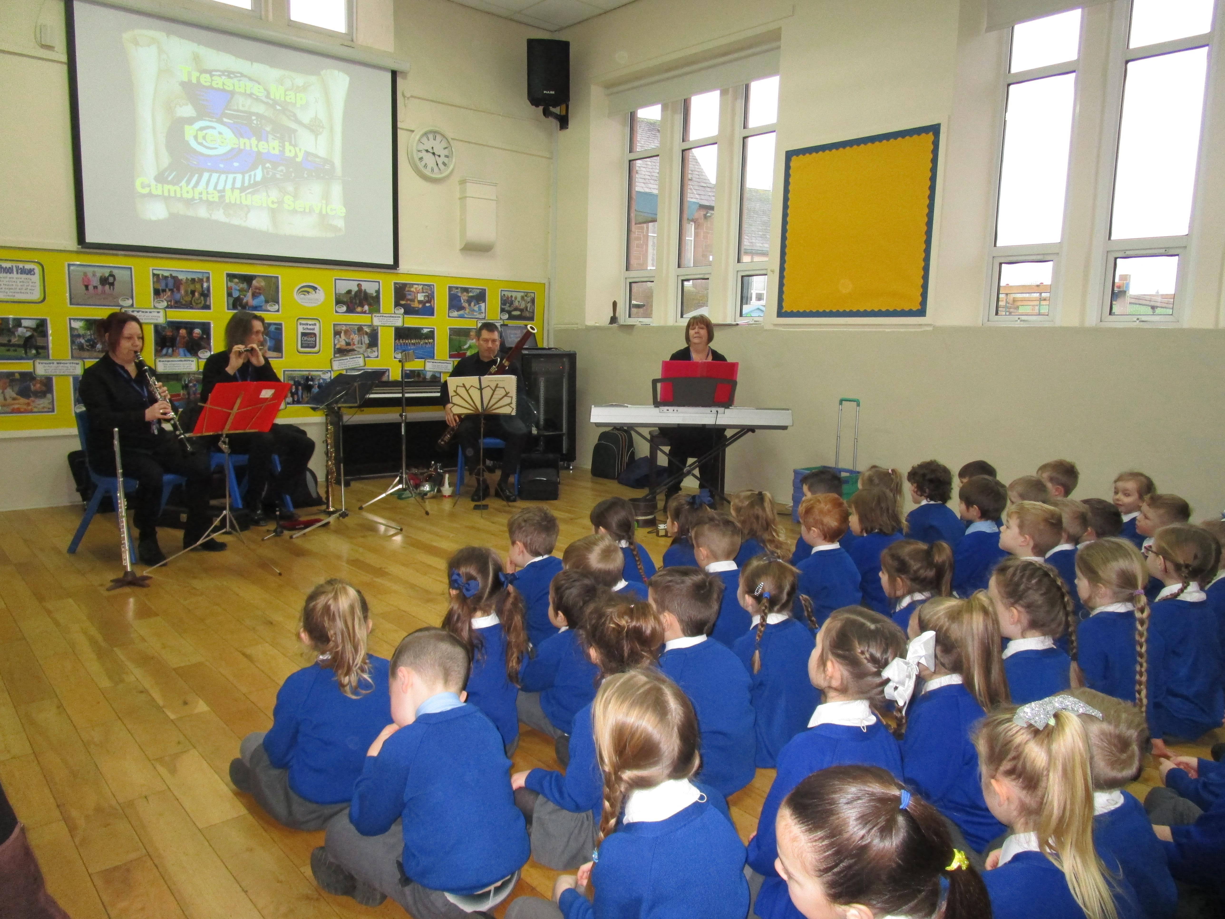 We were really lucky to have a visit from Cumbria Music Service today. The children had to sing along to different songs and join in with their actions as they worked their way around a treasure map. It was lots of fun and the children really enjoyed themselves!