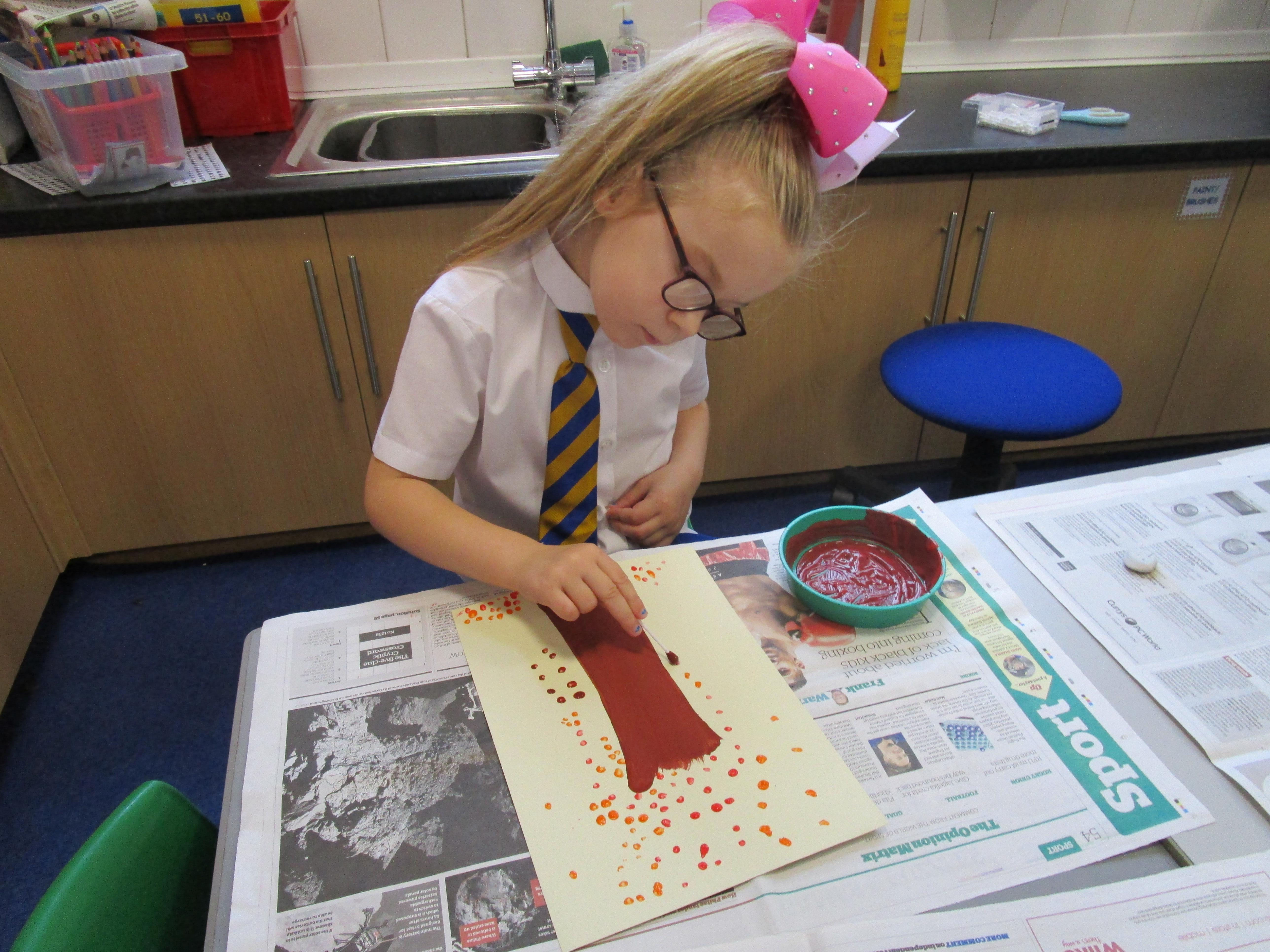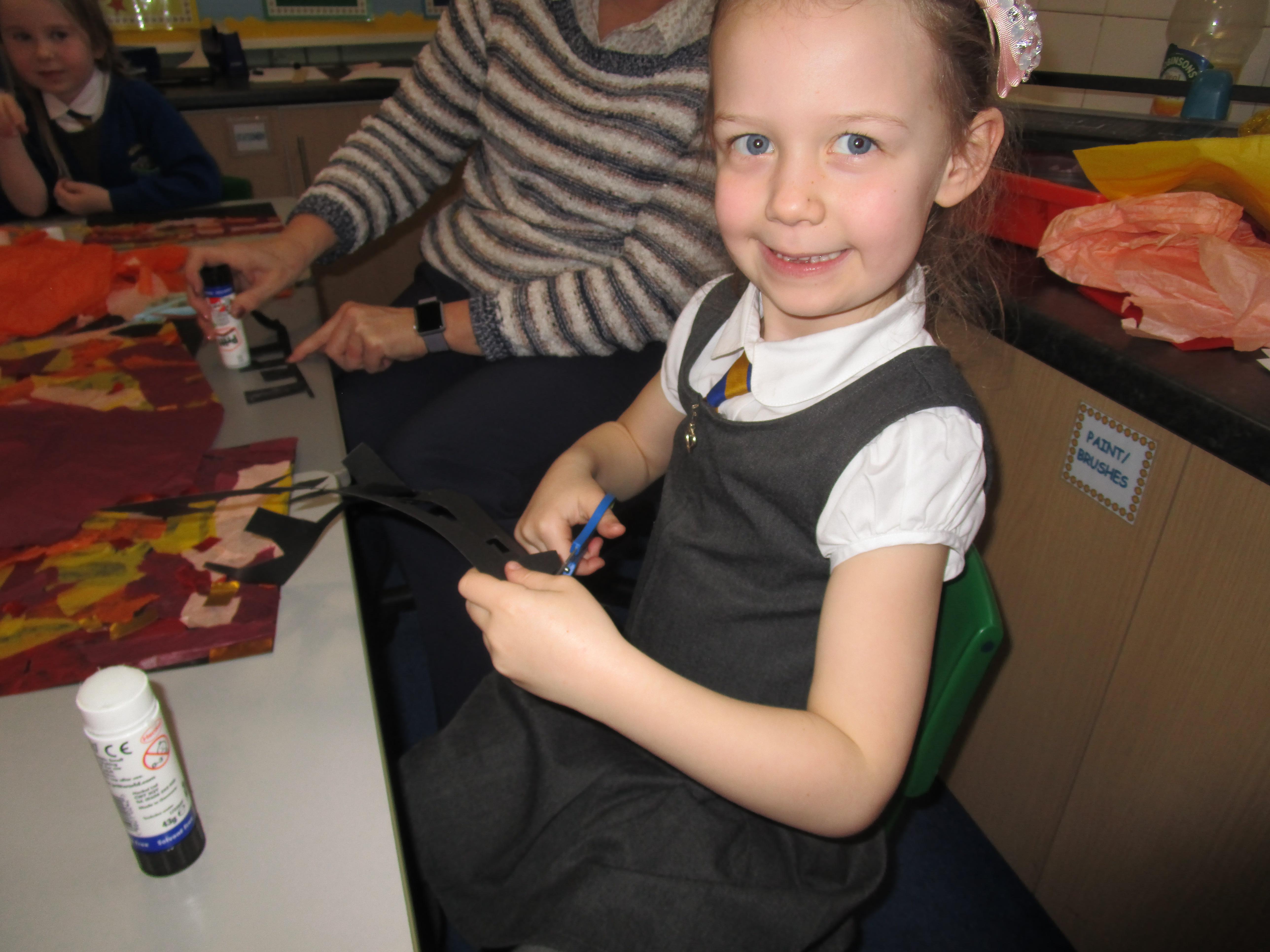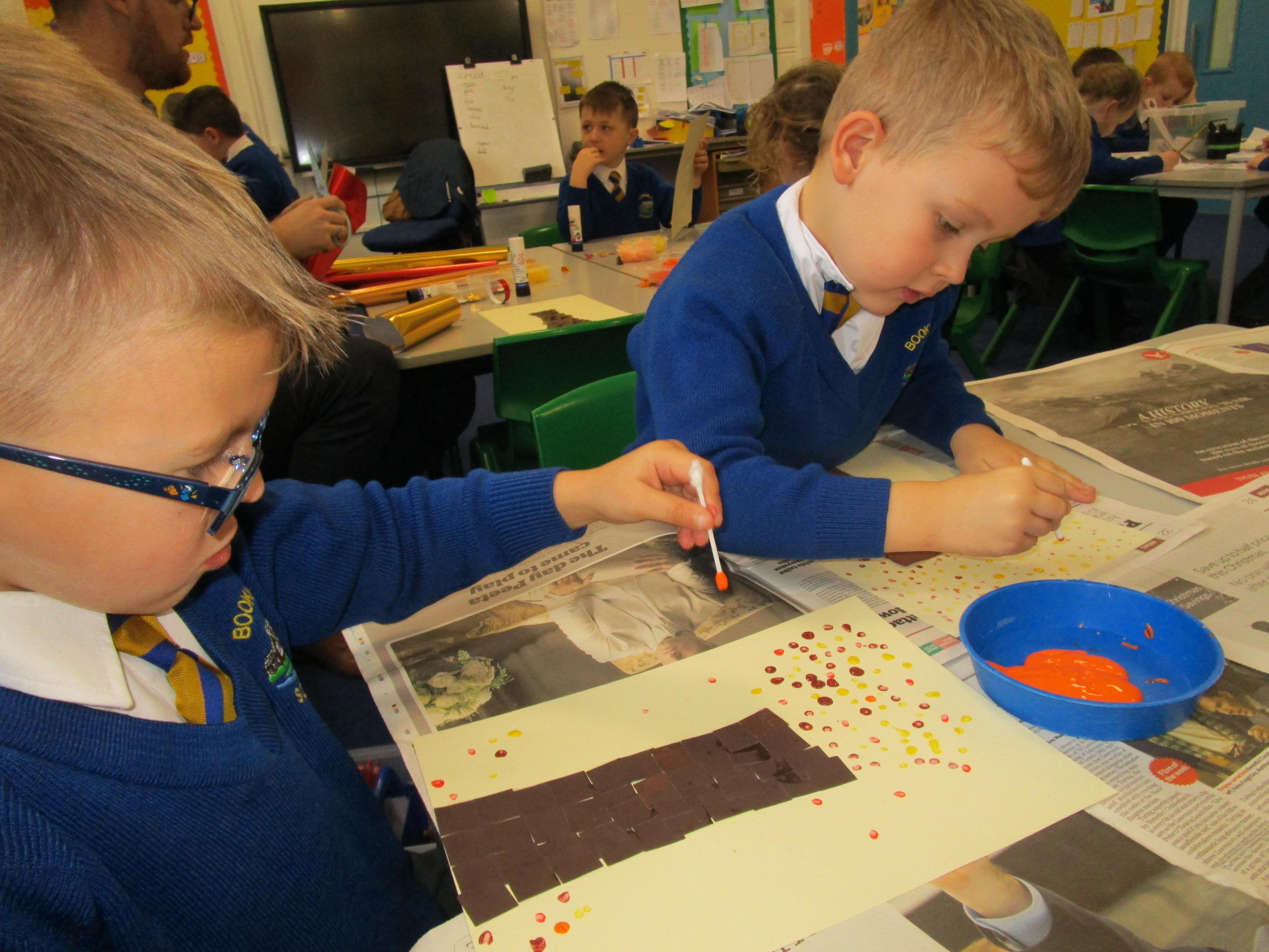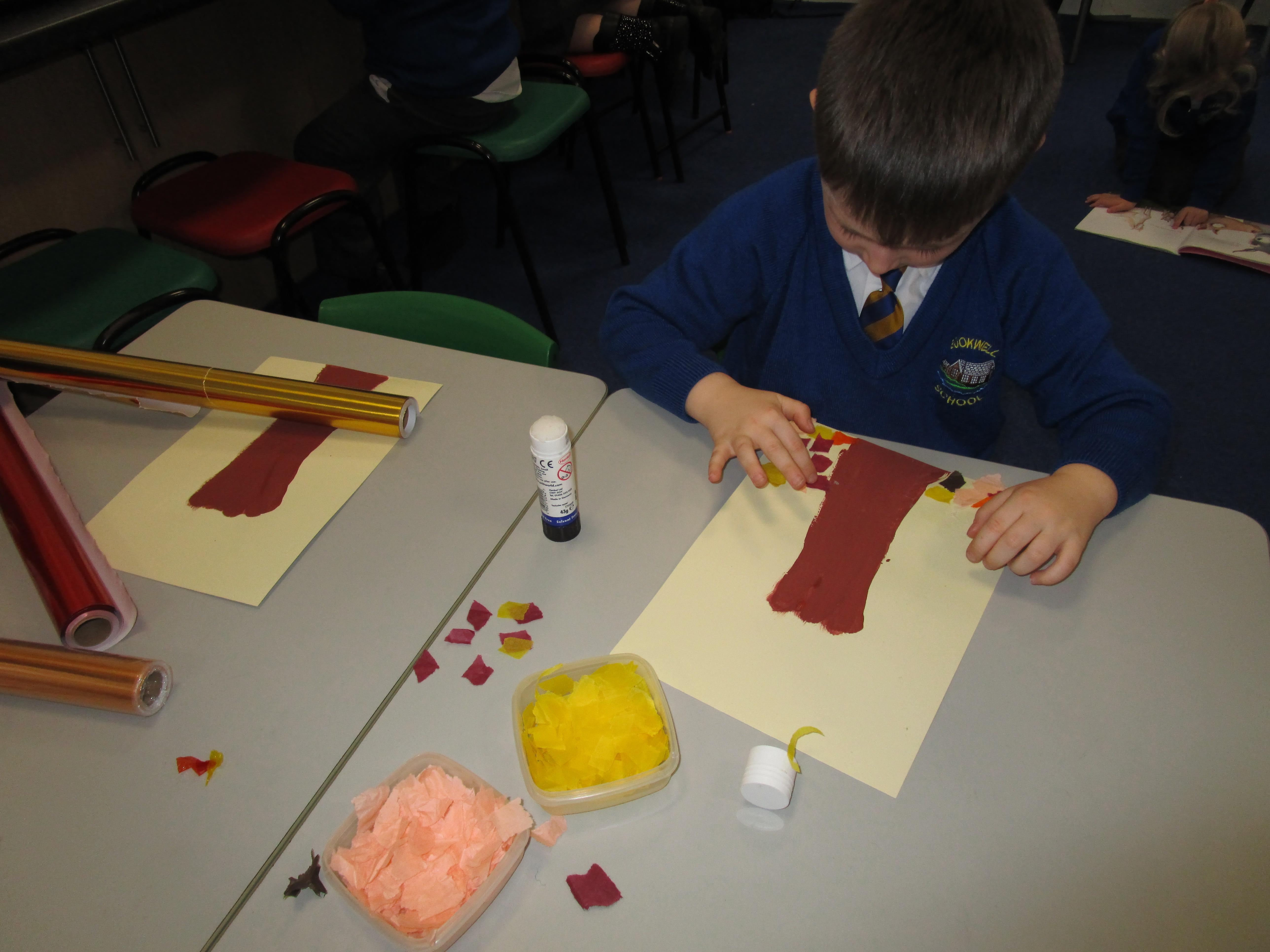 The children have created some lovely art work this week! Some children made The Great Fire of London collages with tissue paper whilst others created dragon eggs with chalk.