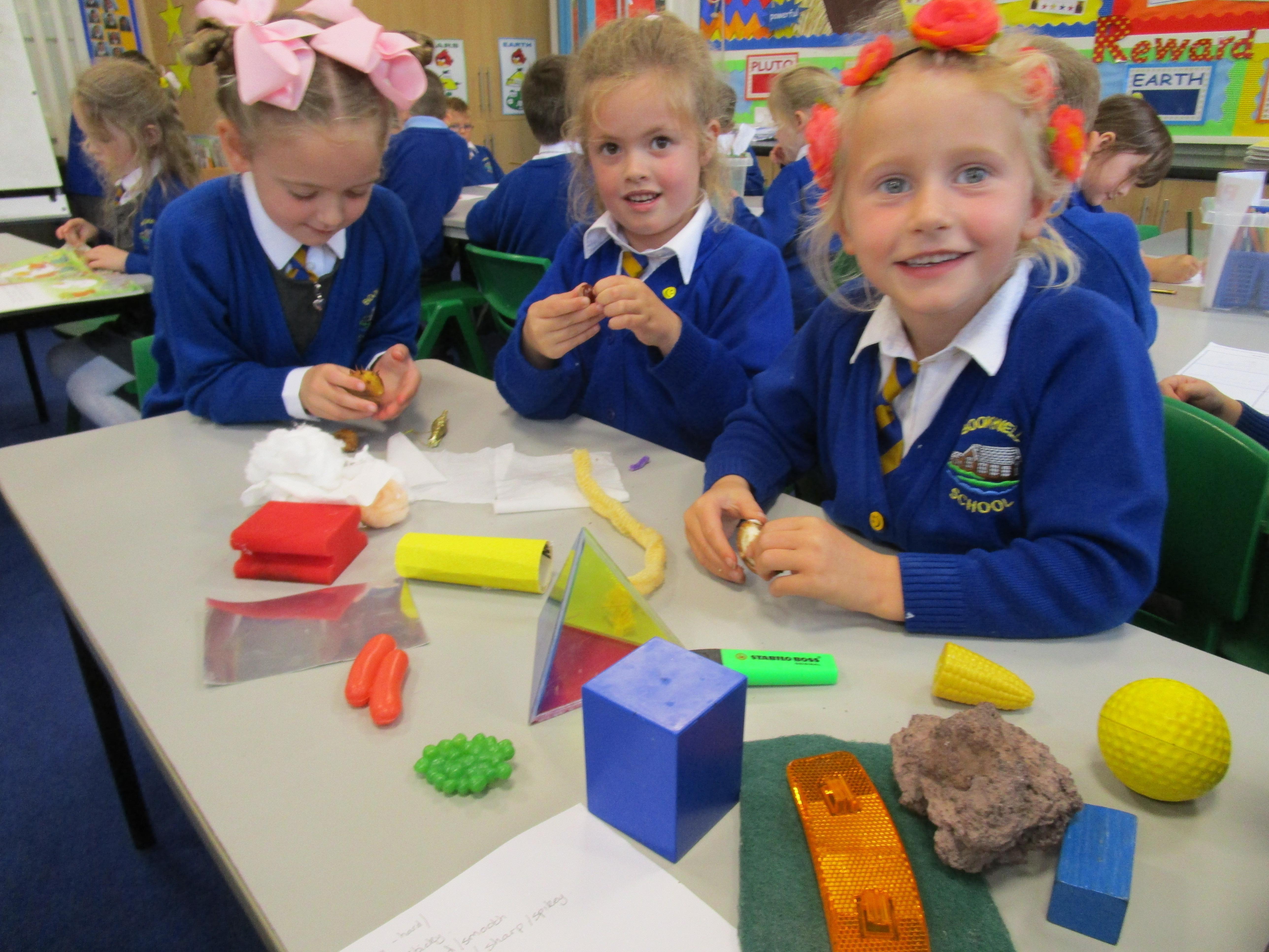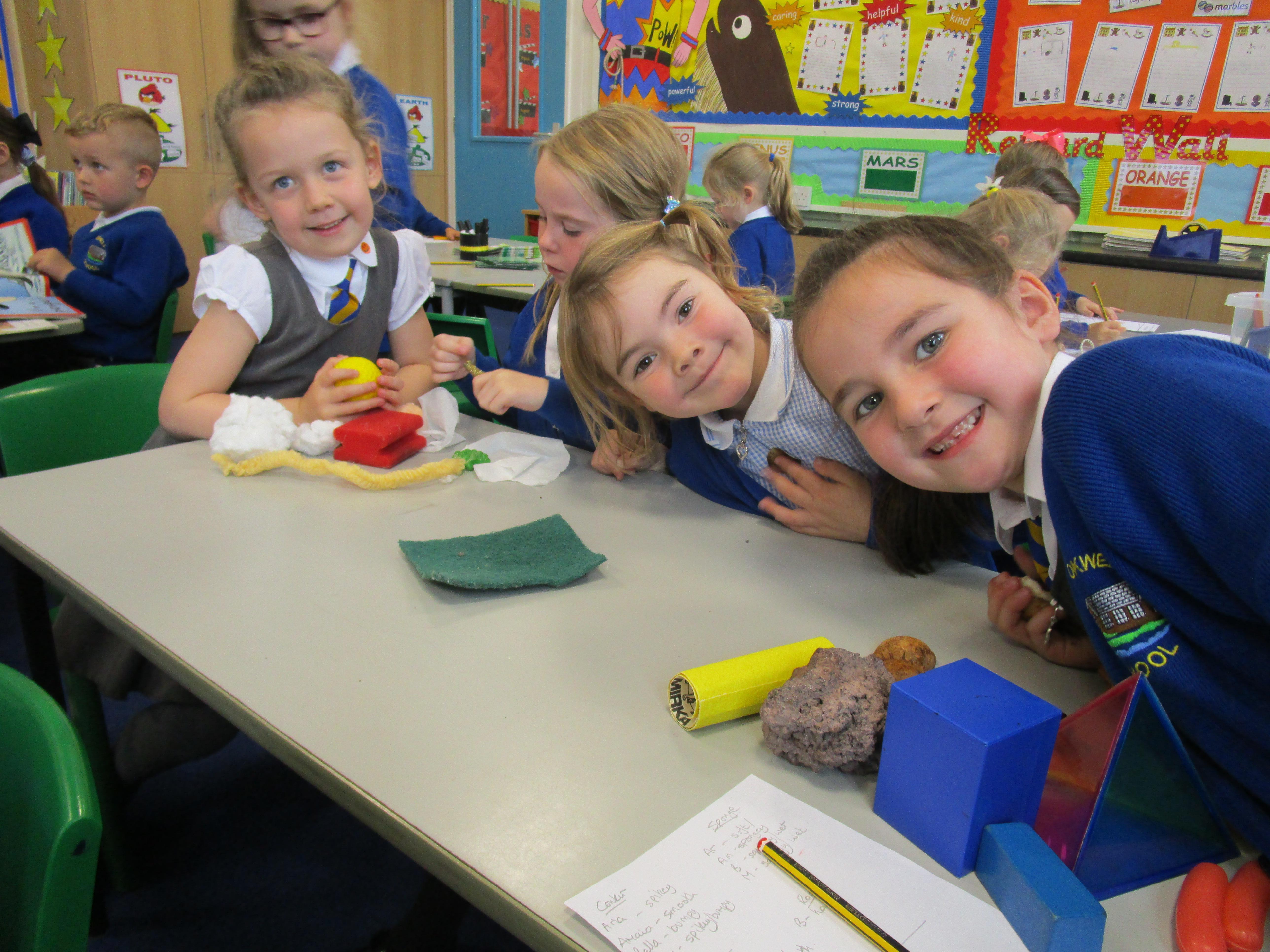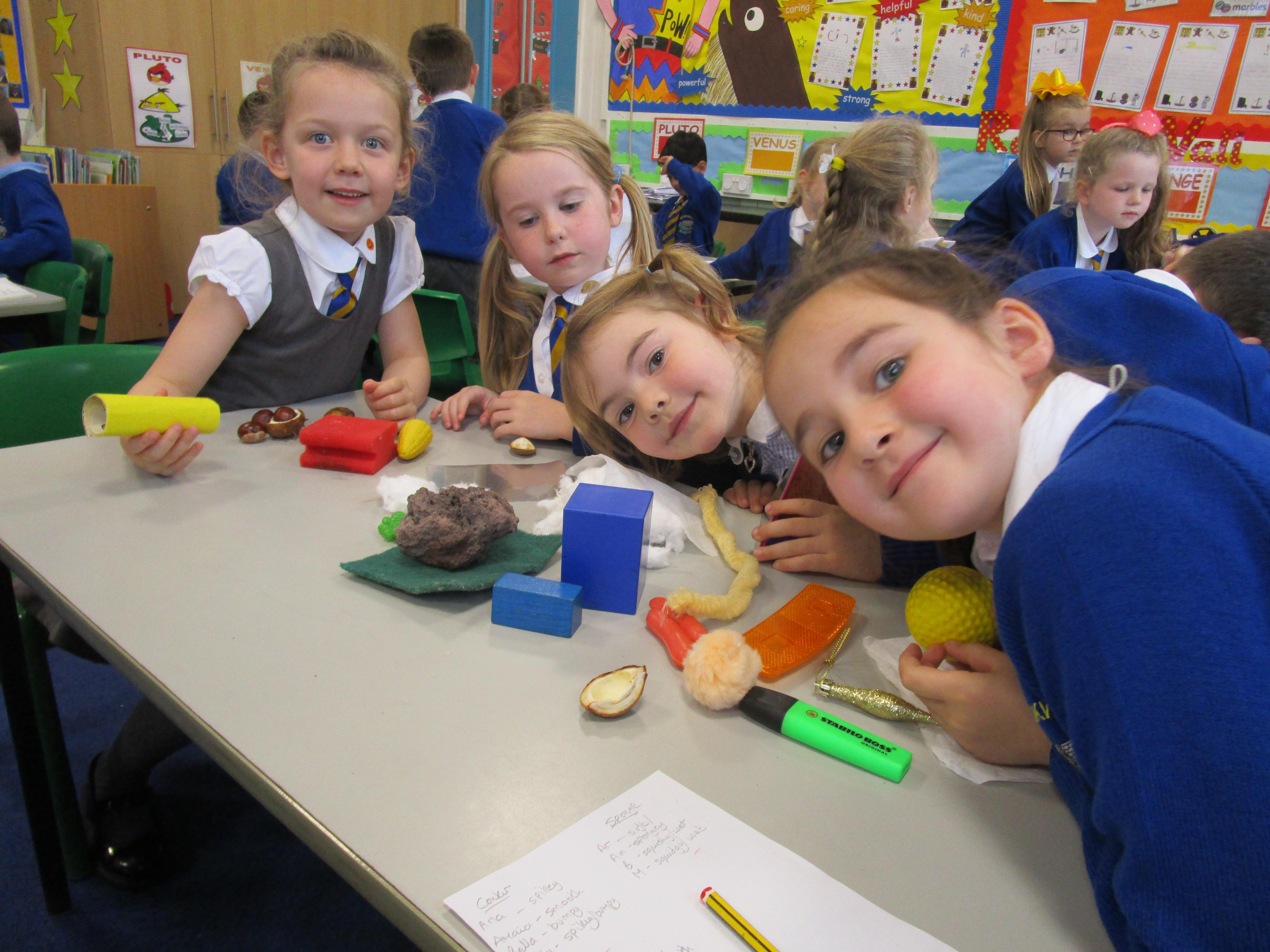 The children have been working hard sorting and grouping different materials according to their properties. The properties the groups listed were that the materials were either: hard, soft, rough, smooth, squidgy, prickly, woolly and furry.