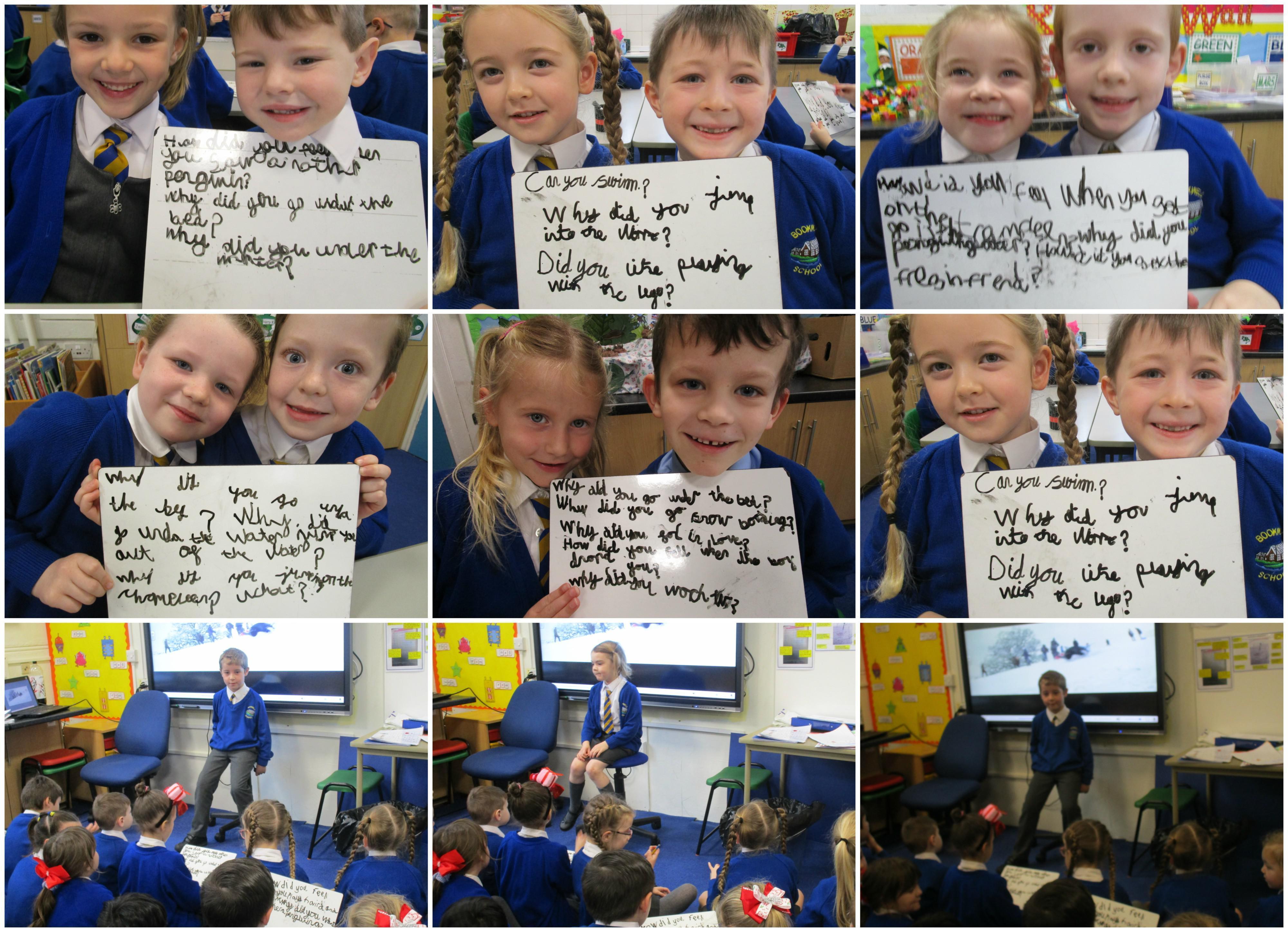 Today in class the children watched the short advert, ‘Monty the Penguin’ and afterwards they had to write questions that they wanted to ask him. Then some of the children sat in the hot seat and answered the questions in role as Monty.