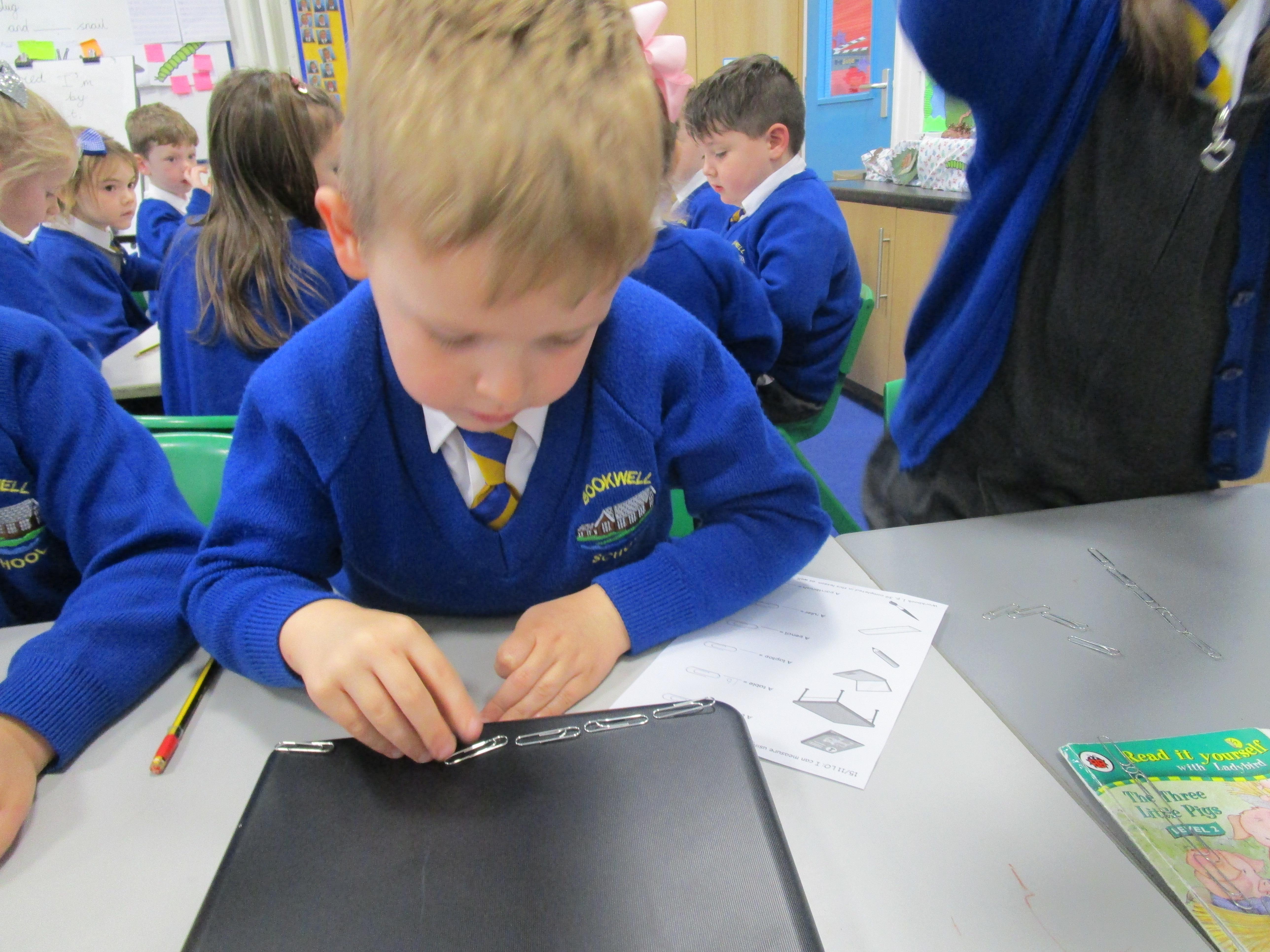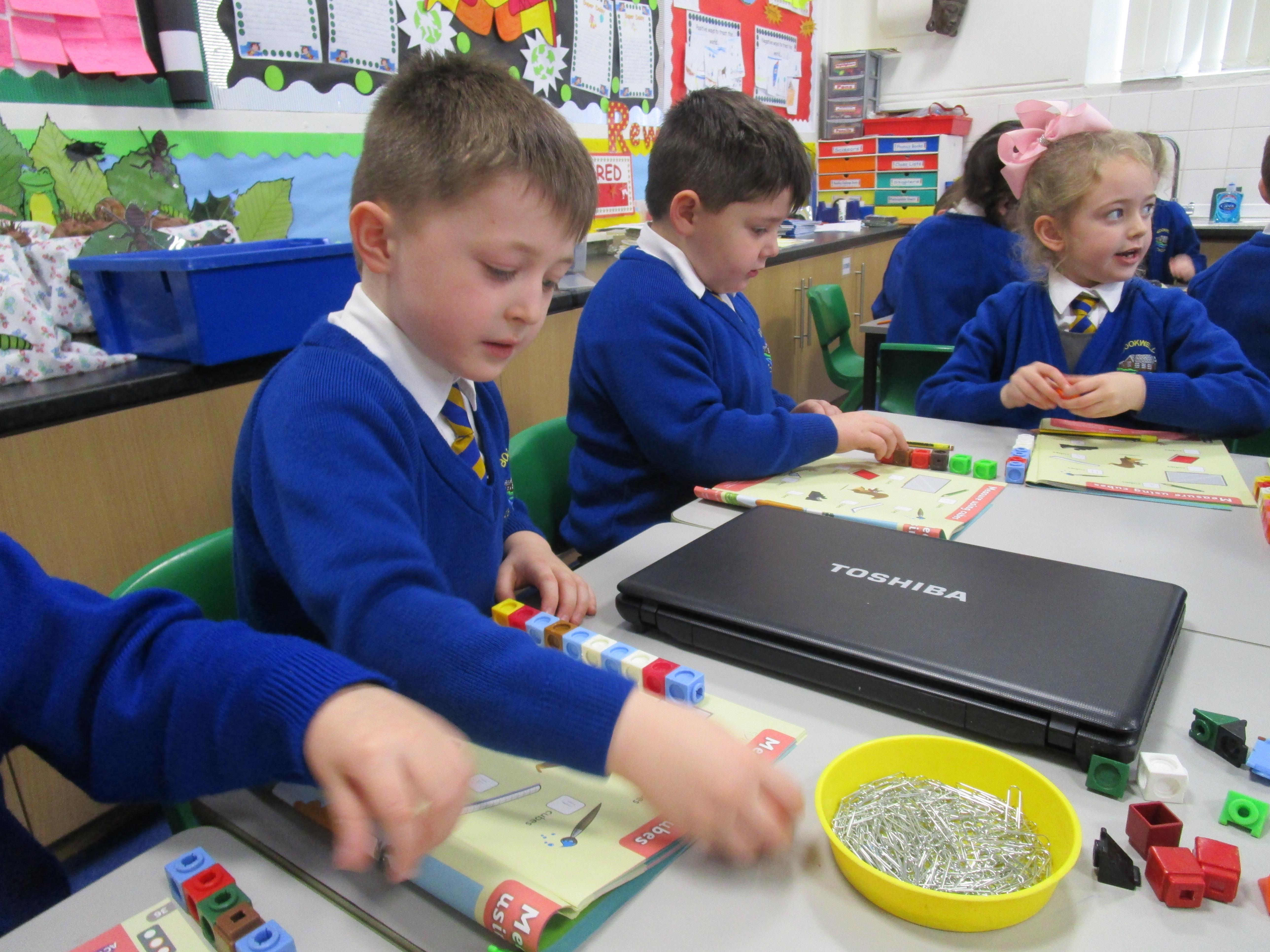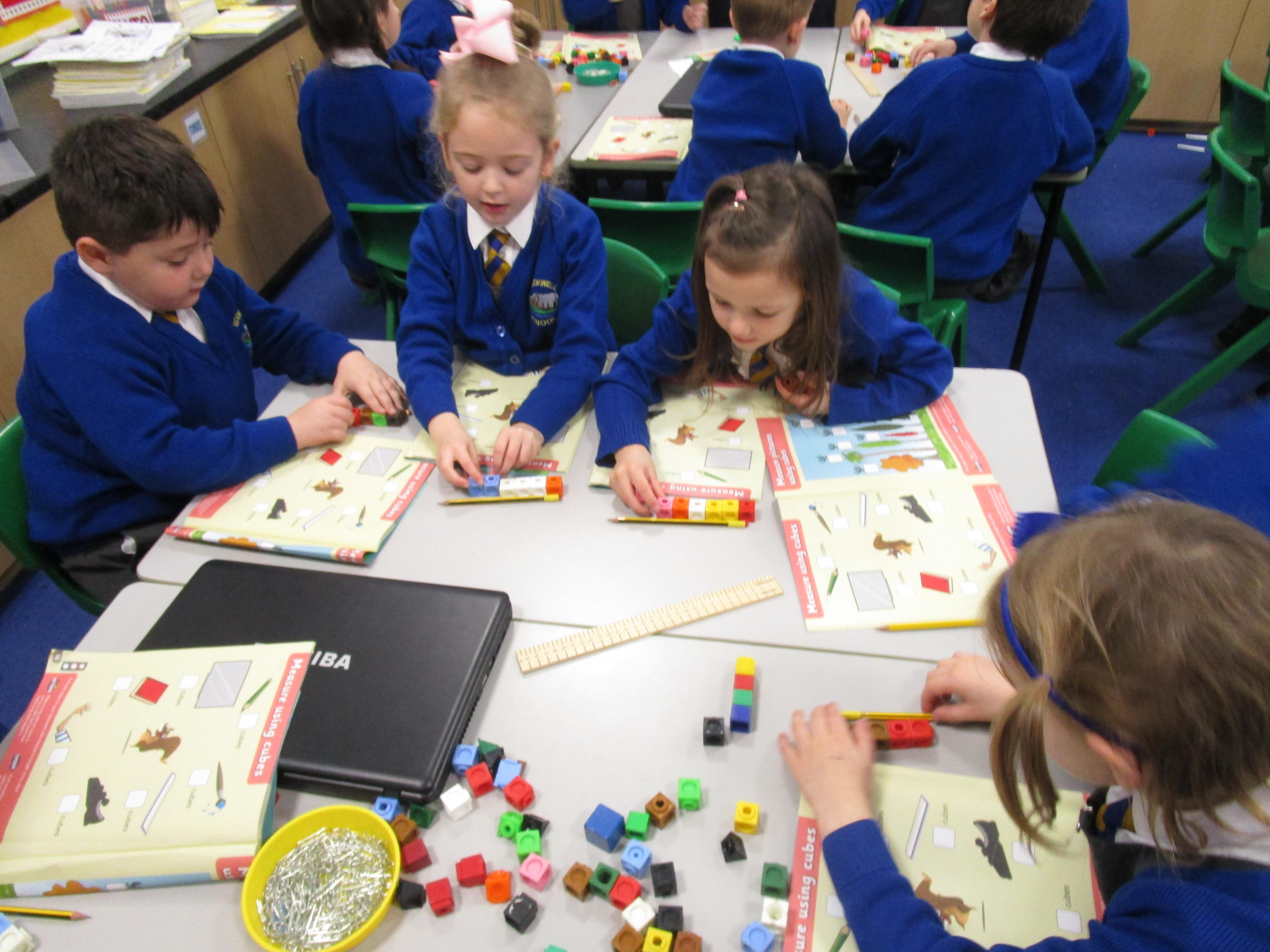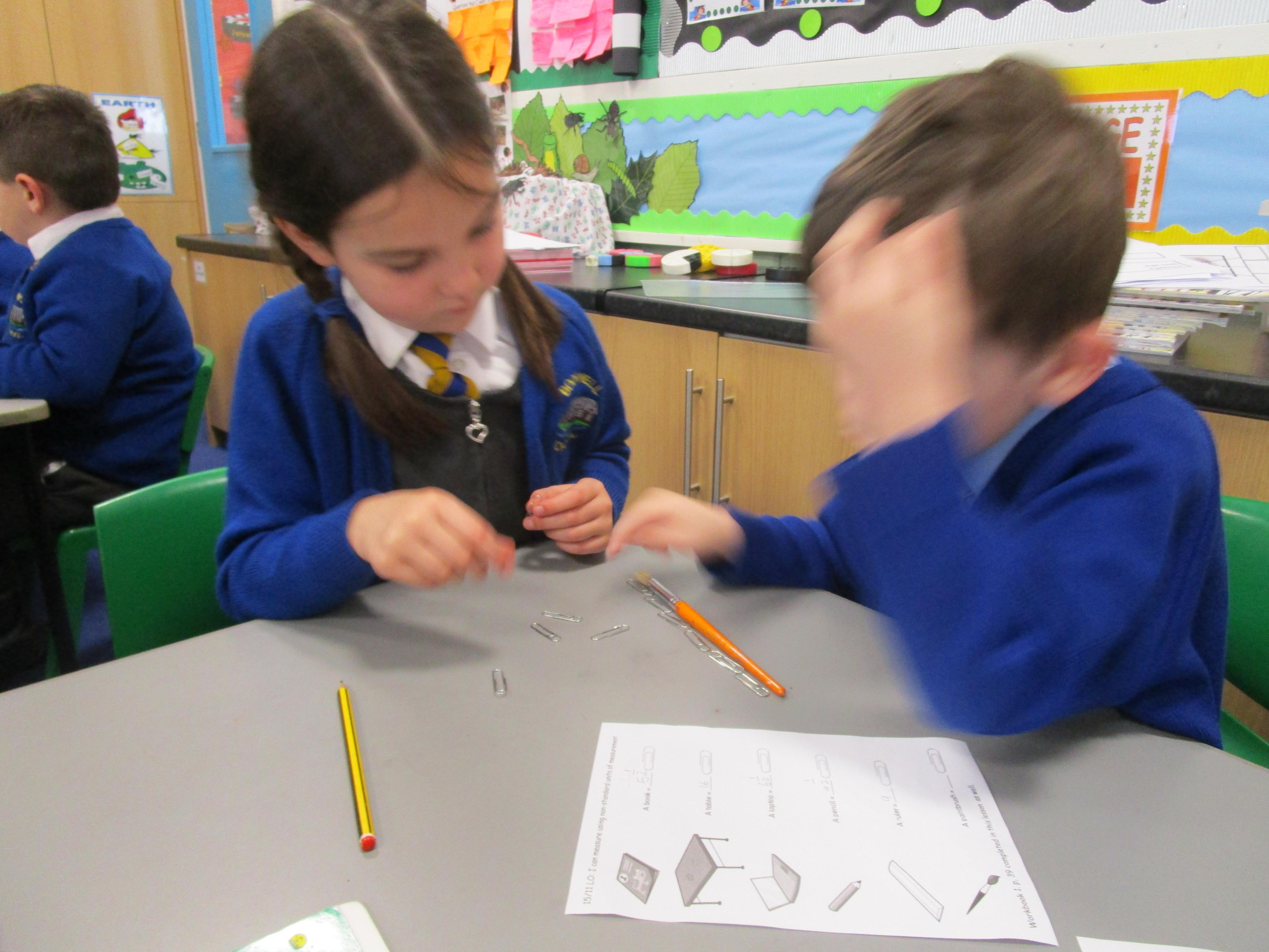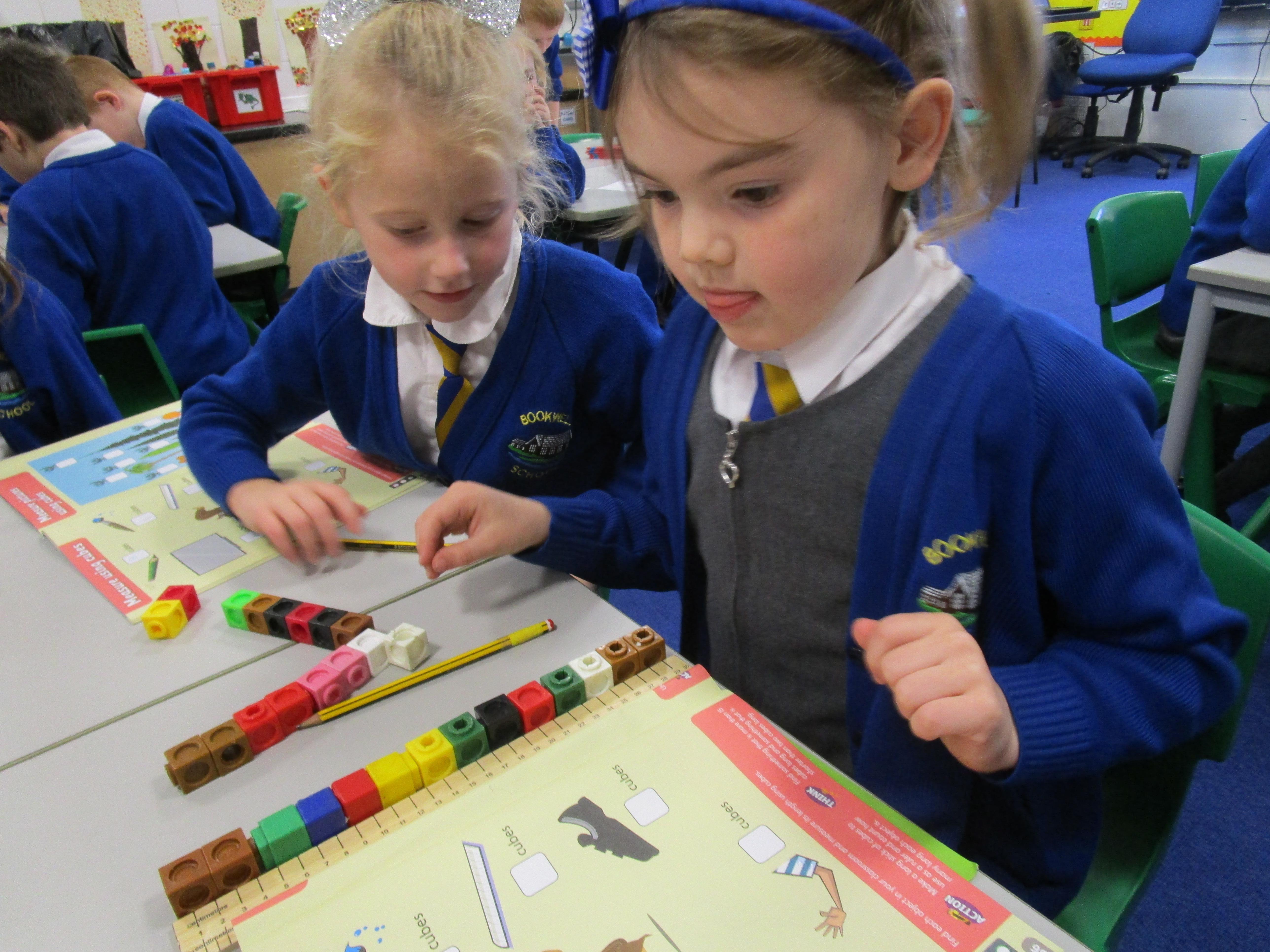 Today the children have been practicing measuring and have used non-standard units of measurement.