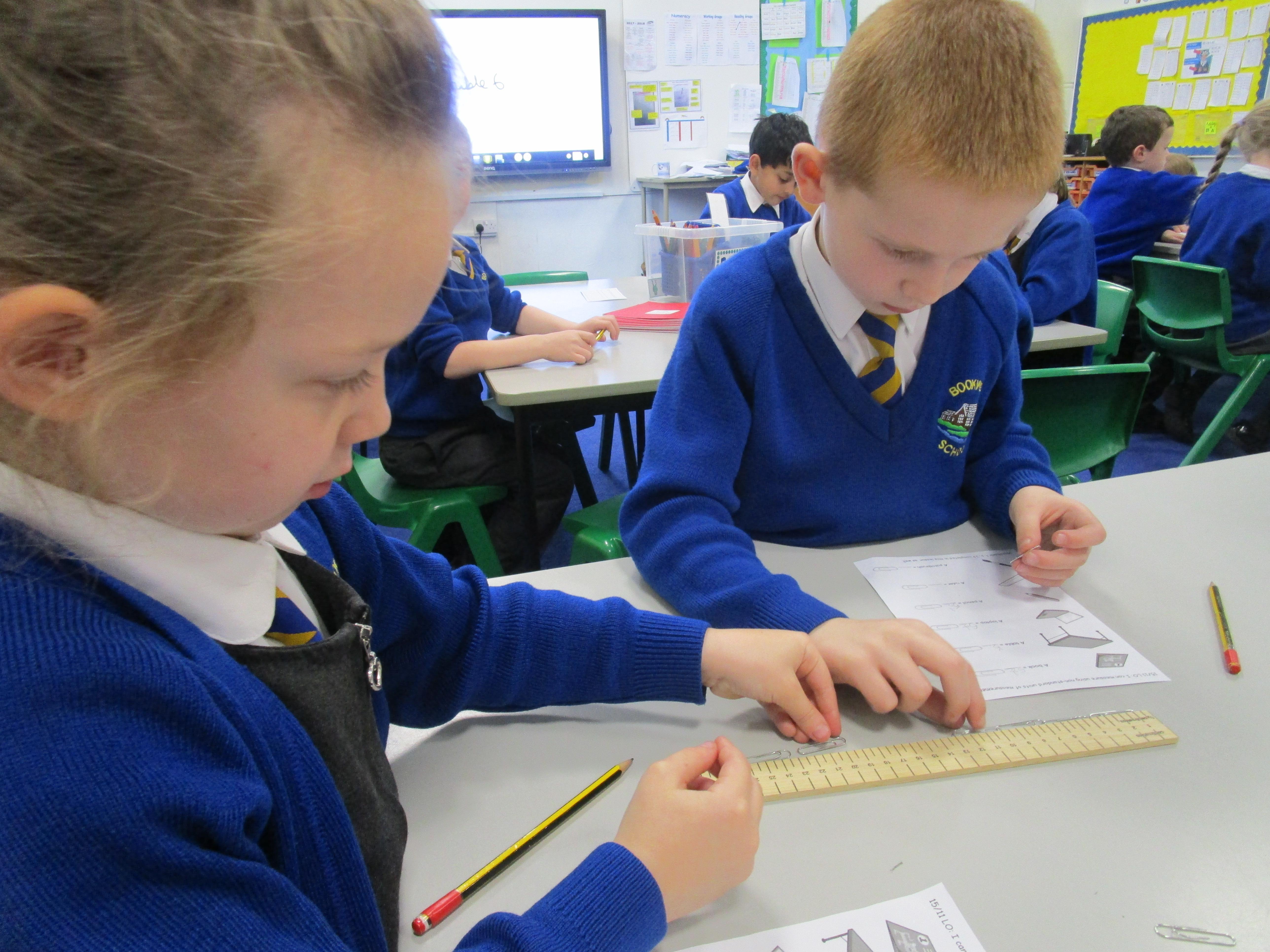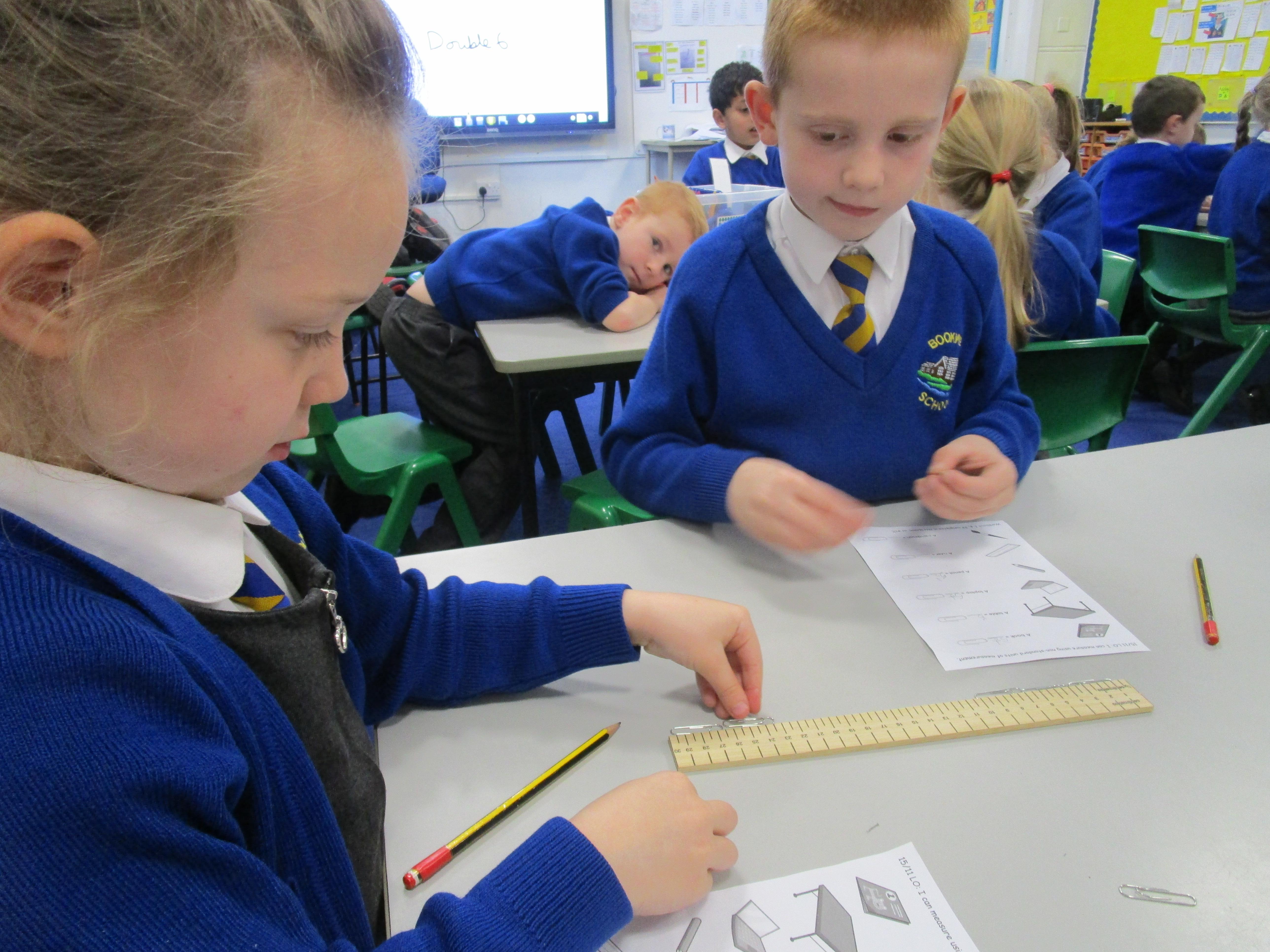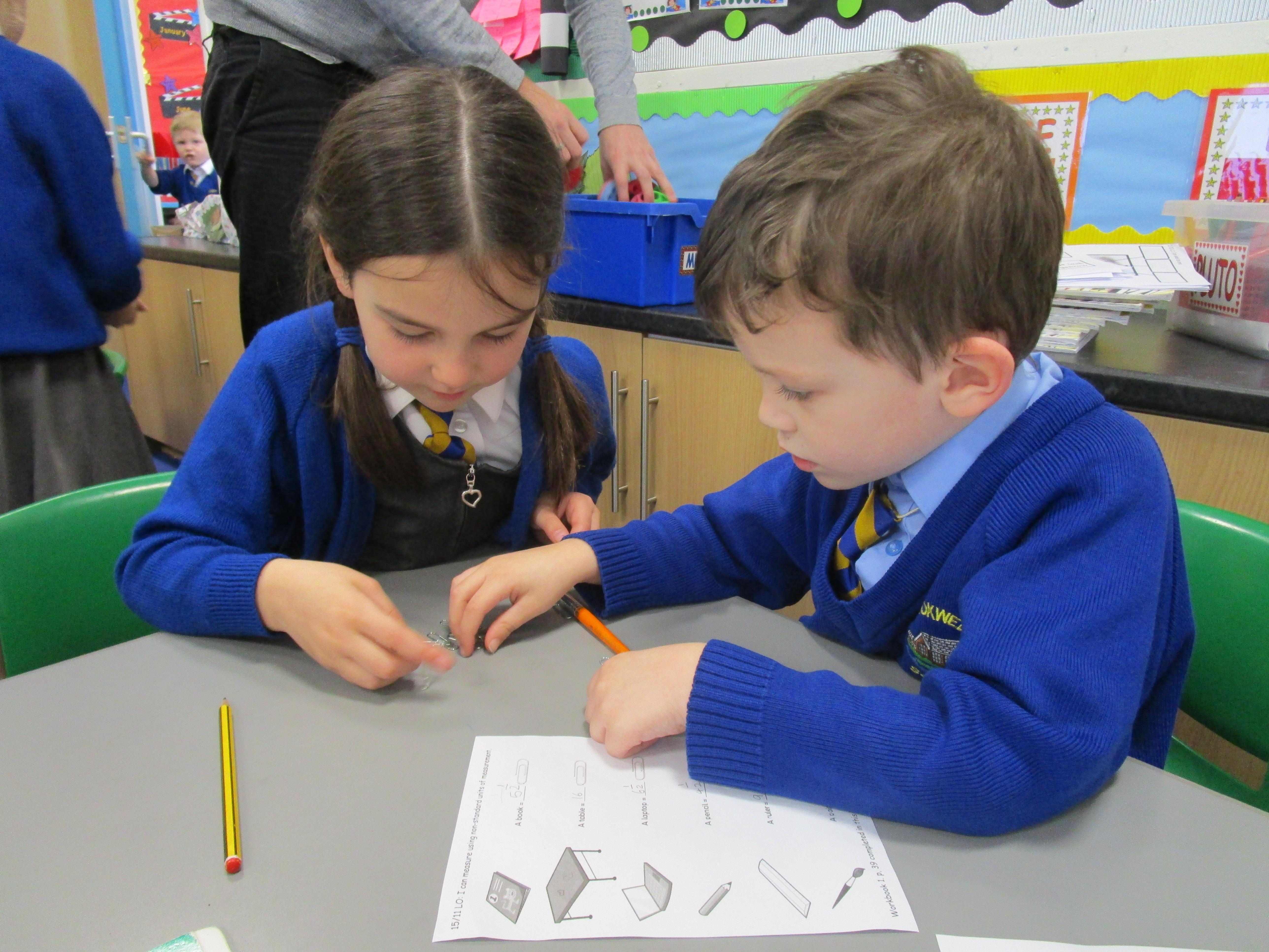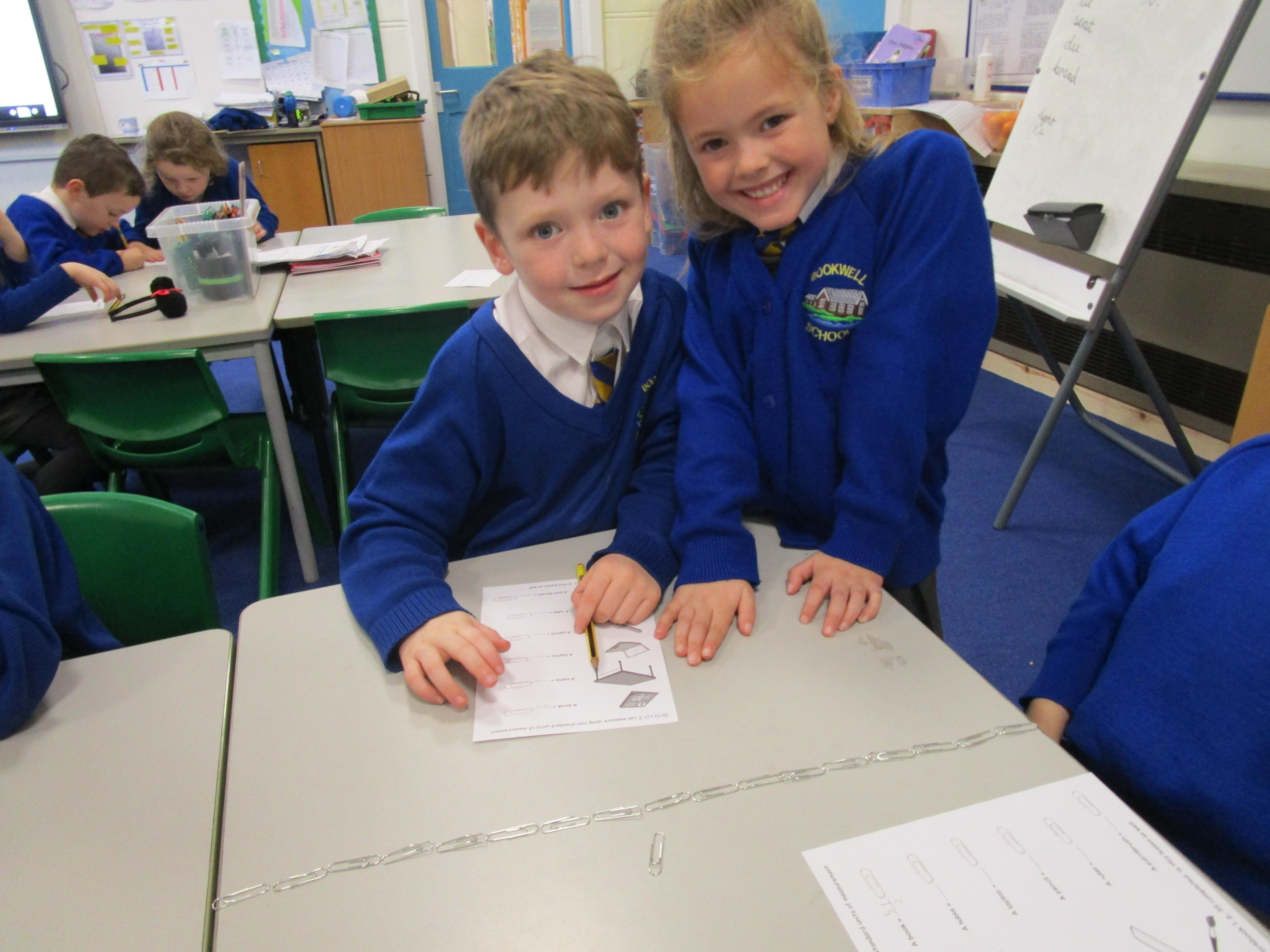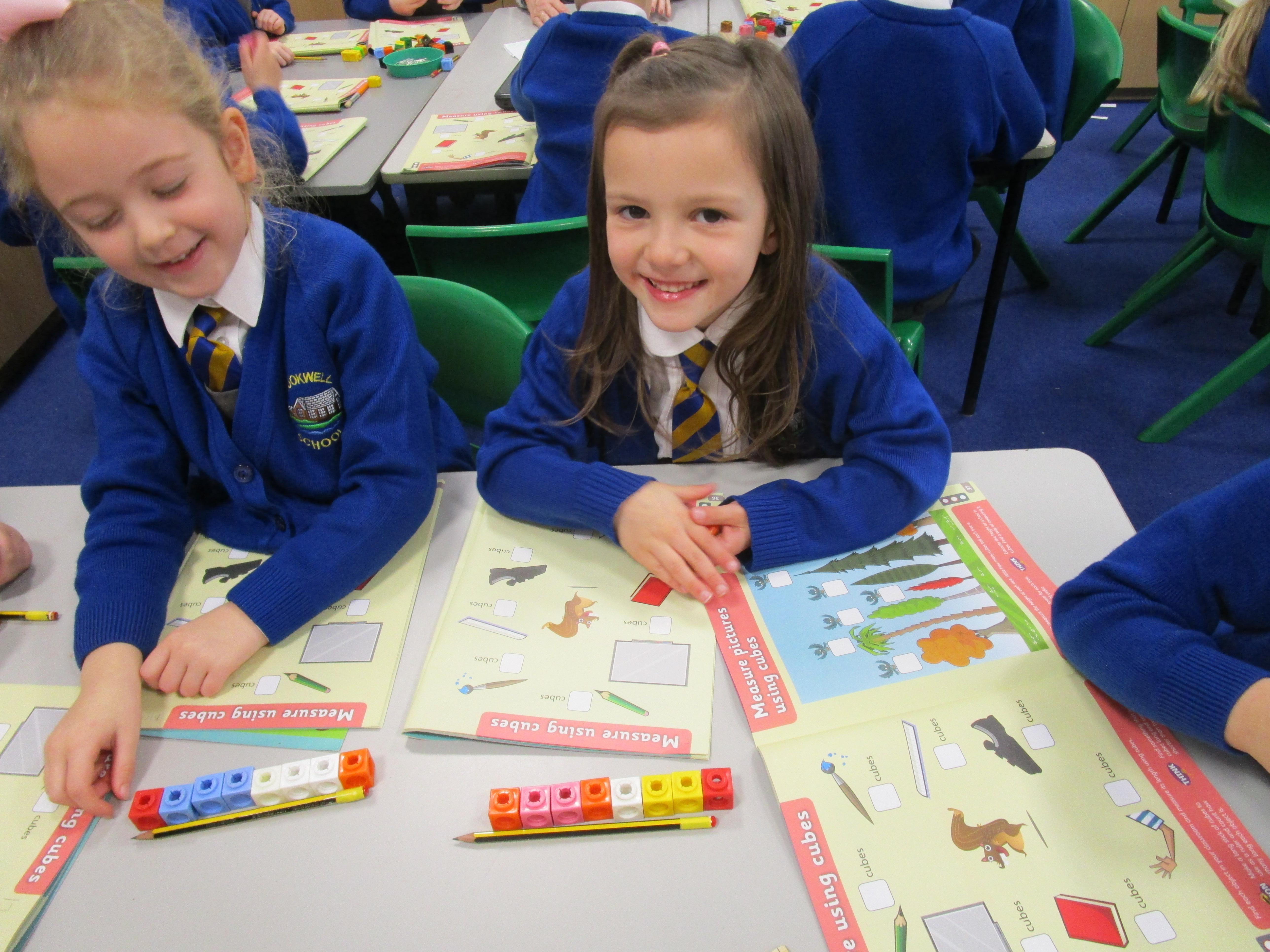 Today the children have been practicing measuring and have used non-standard units of measurement.