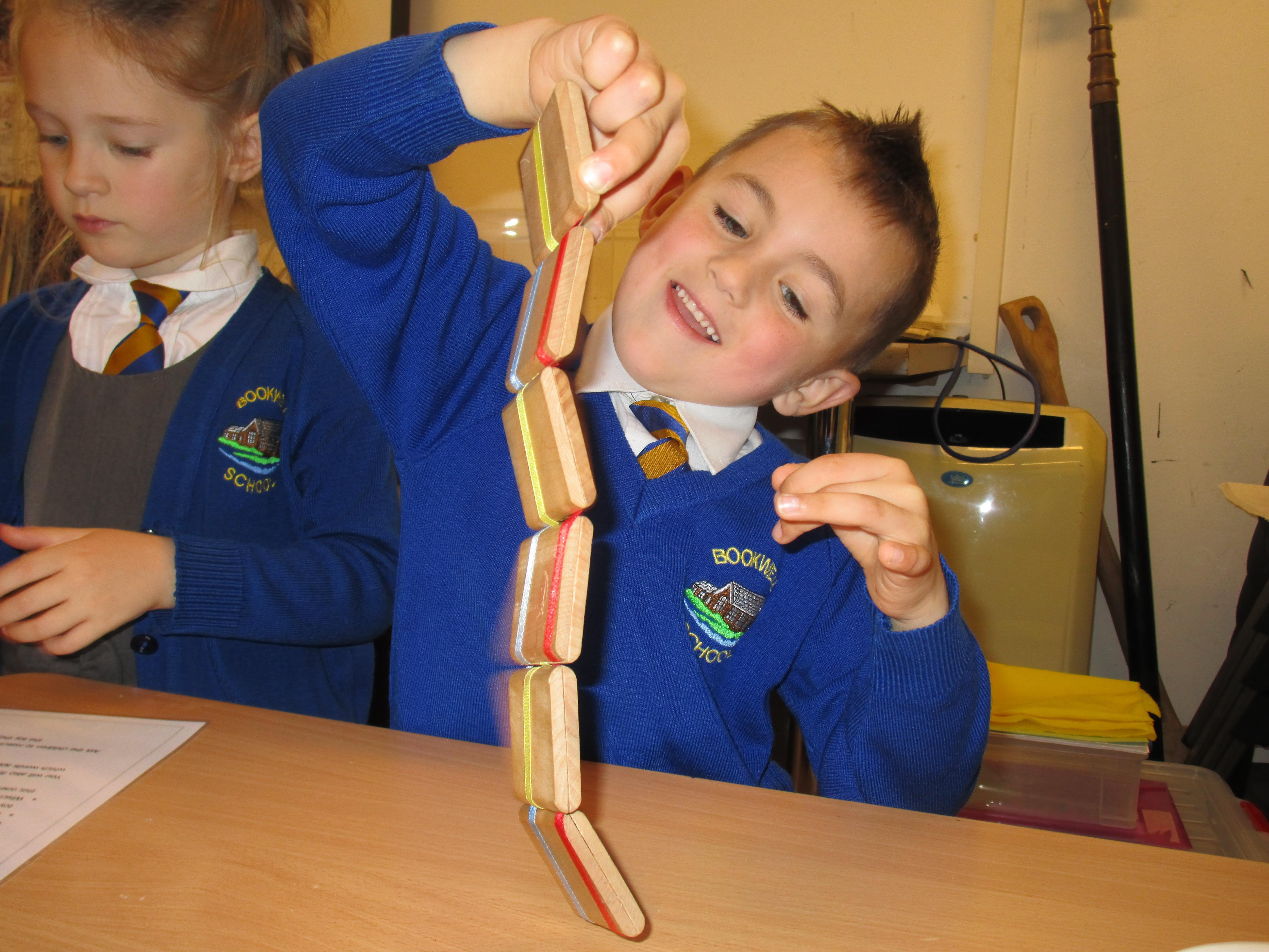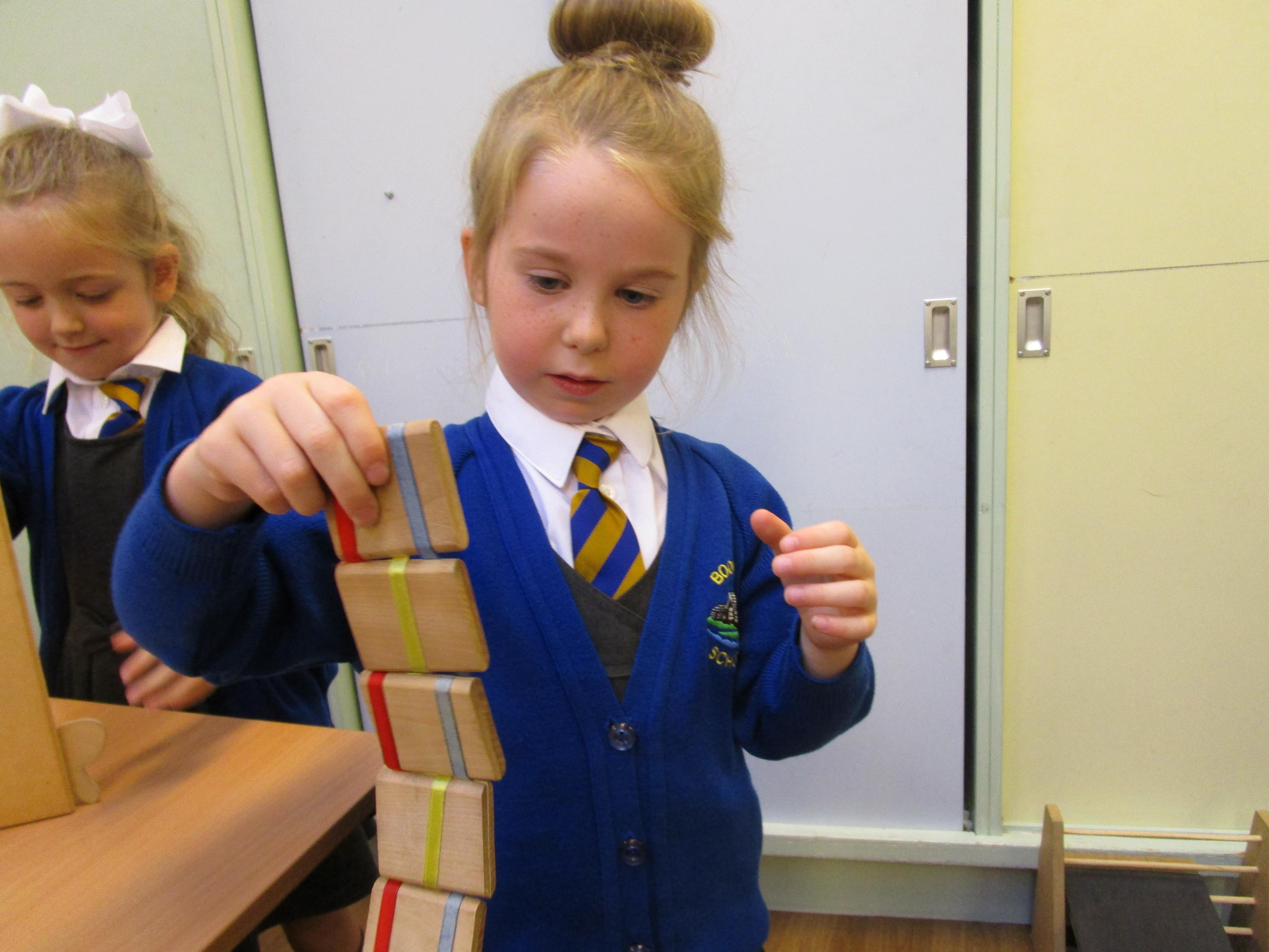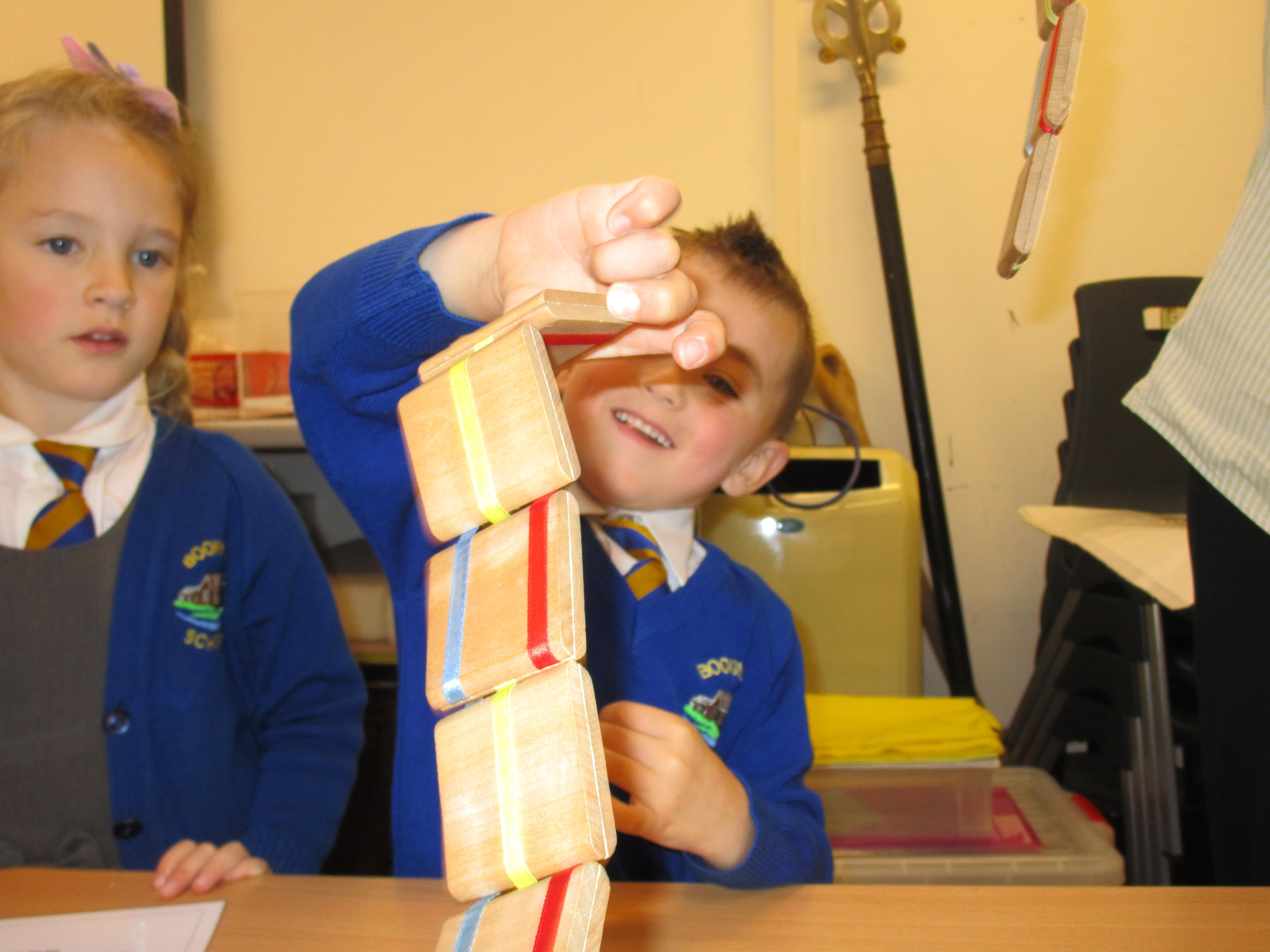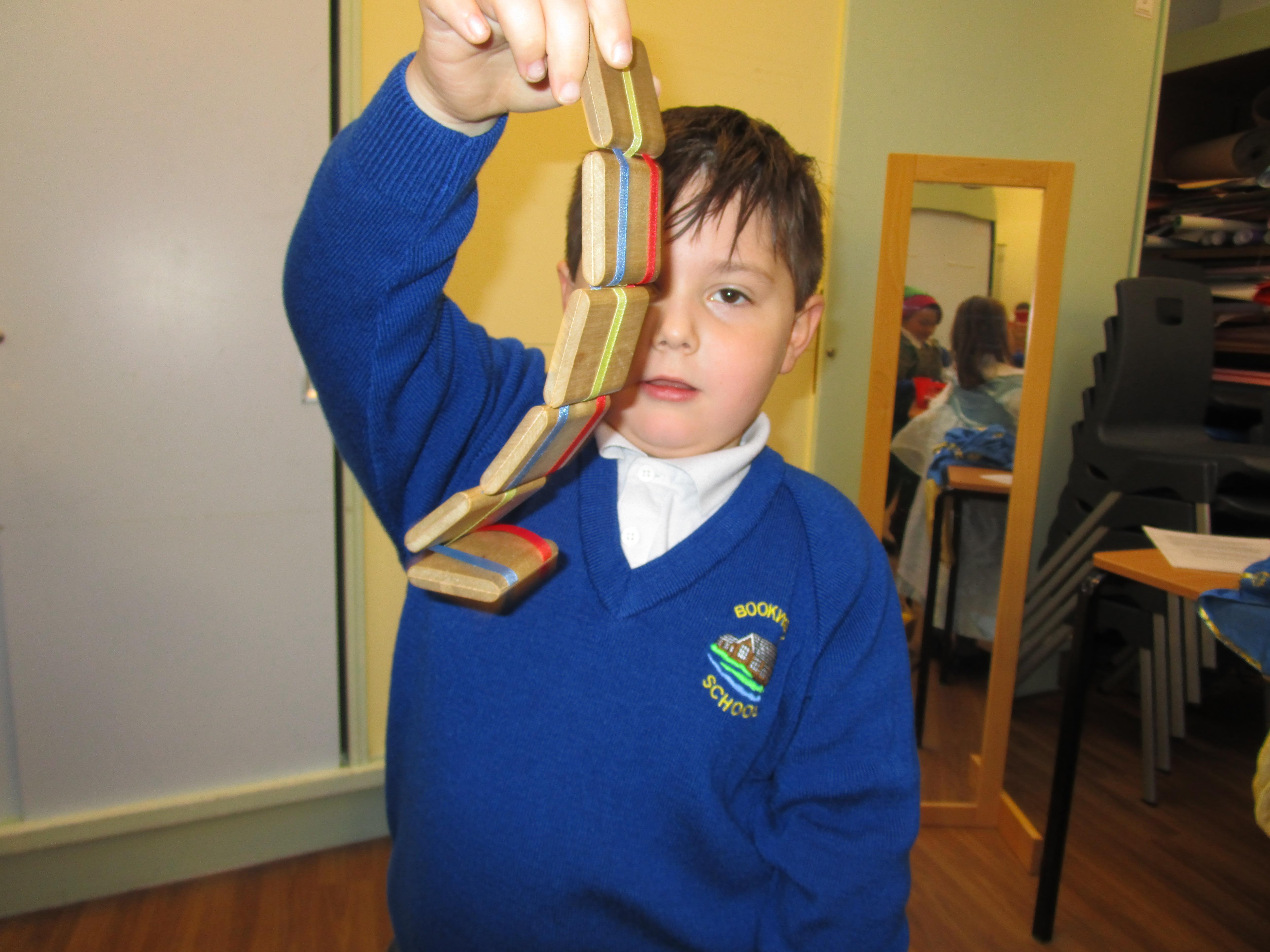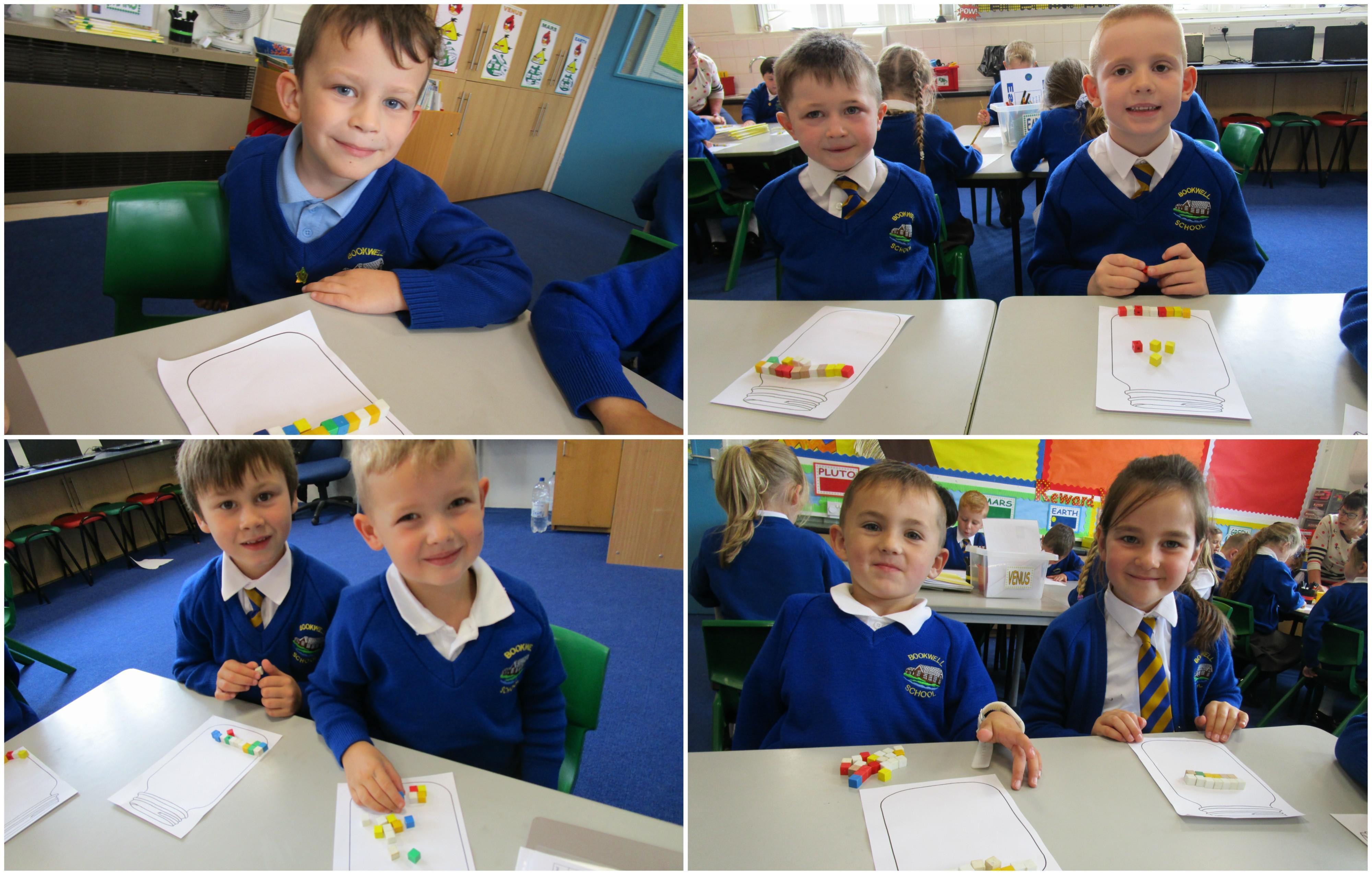 Today the children have been practicing measuring and have used non-standard units of measurement.