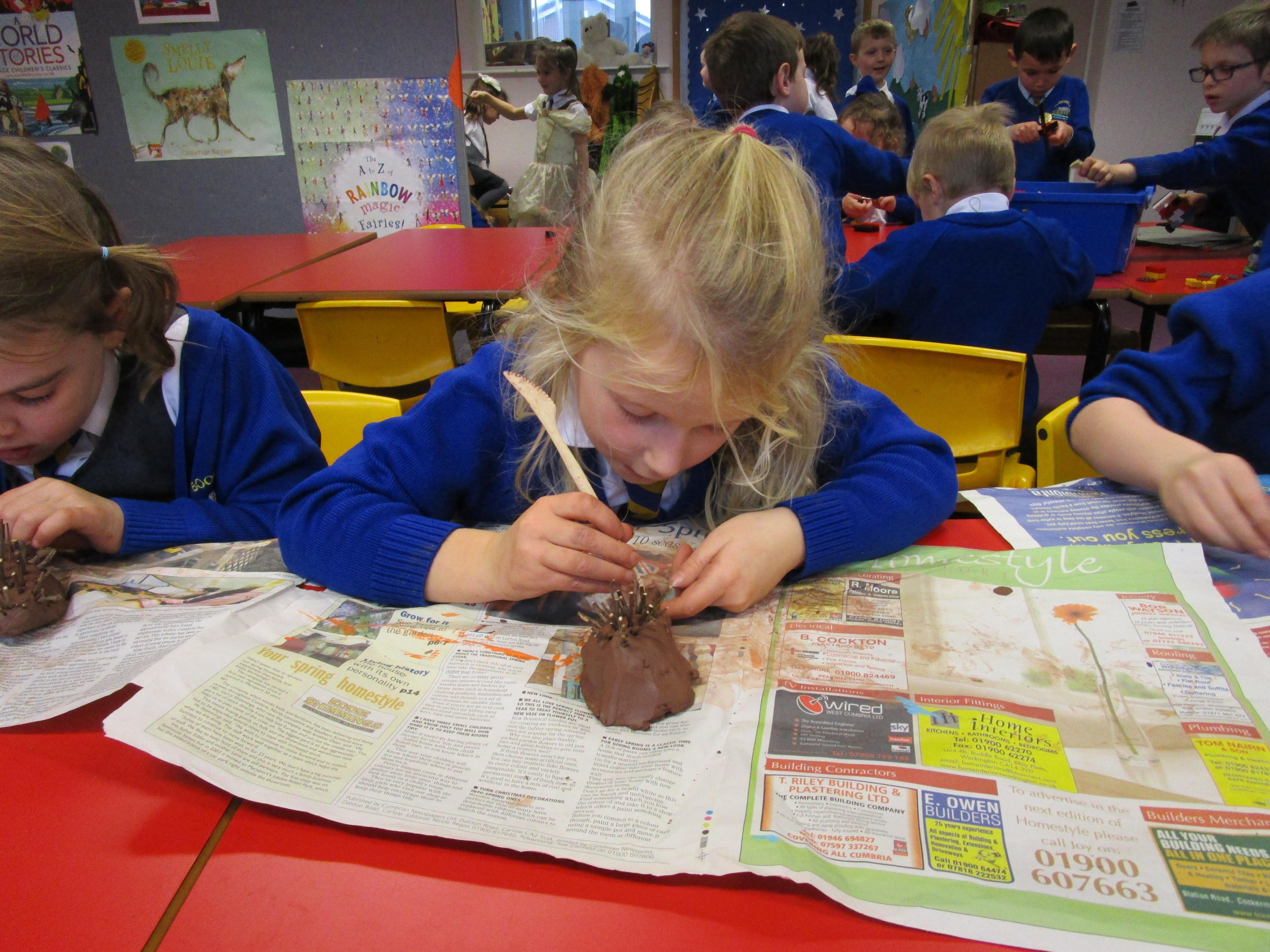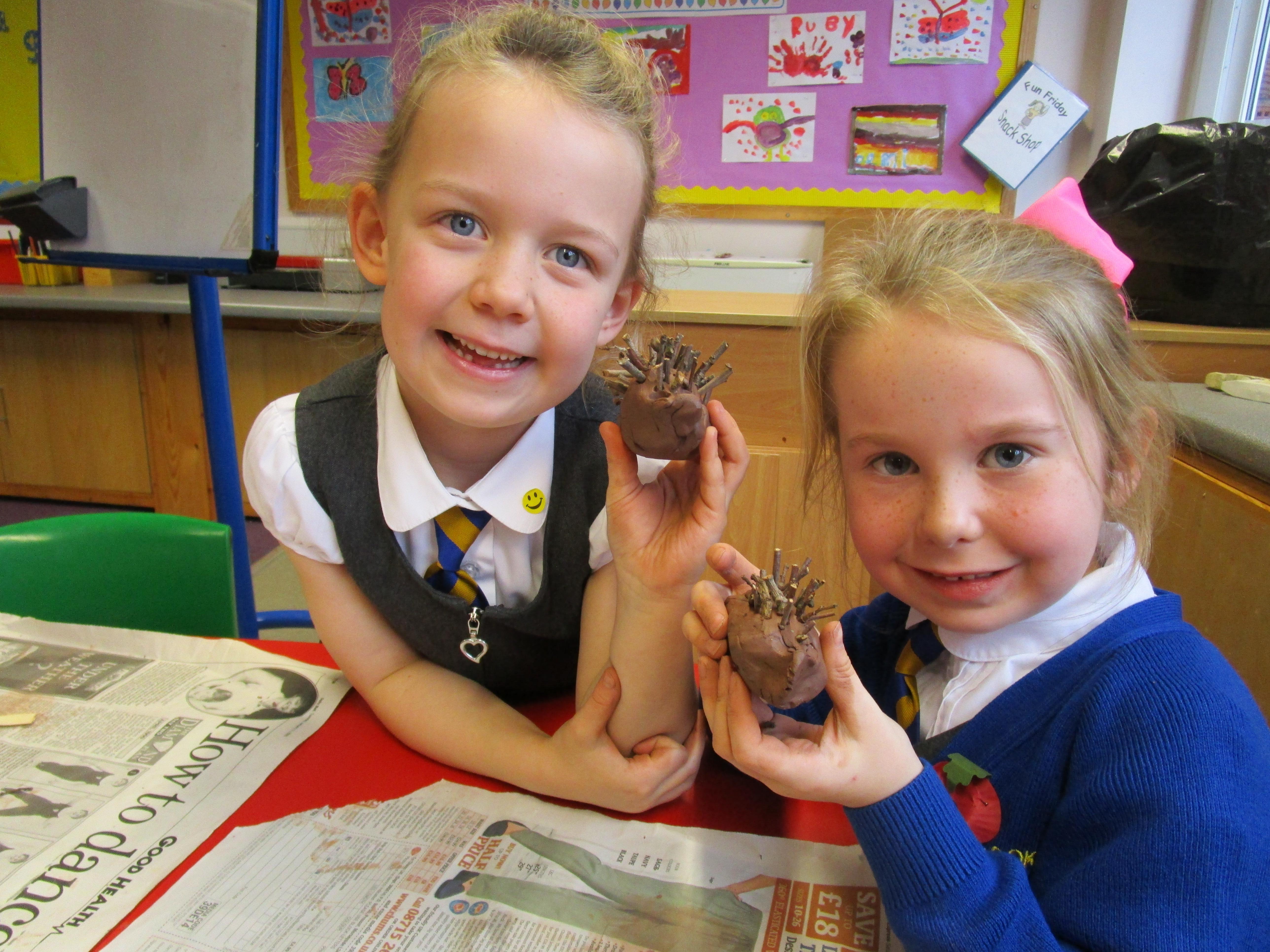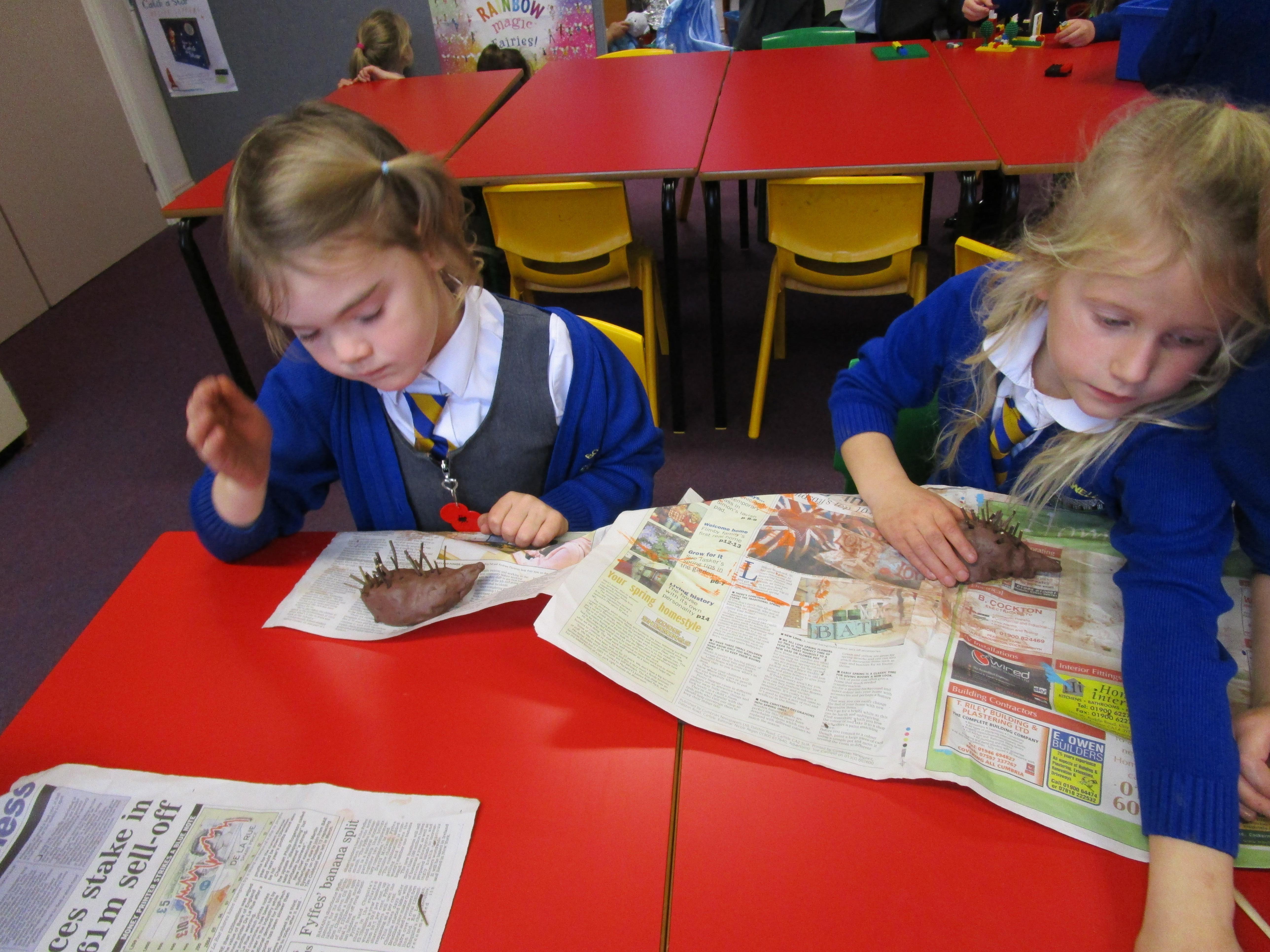 The children have been very busy creating clay hedgehogs to tie in with the book we have been reading in class, 'The Hodgeheg'. They have also been creating autumn collages.