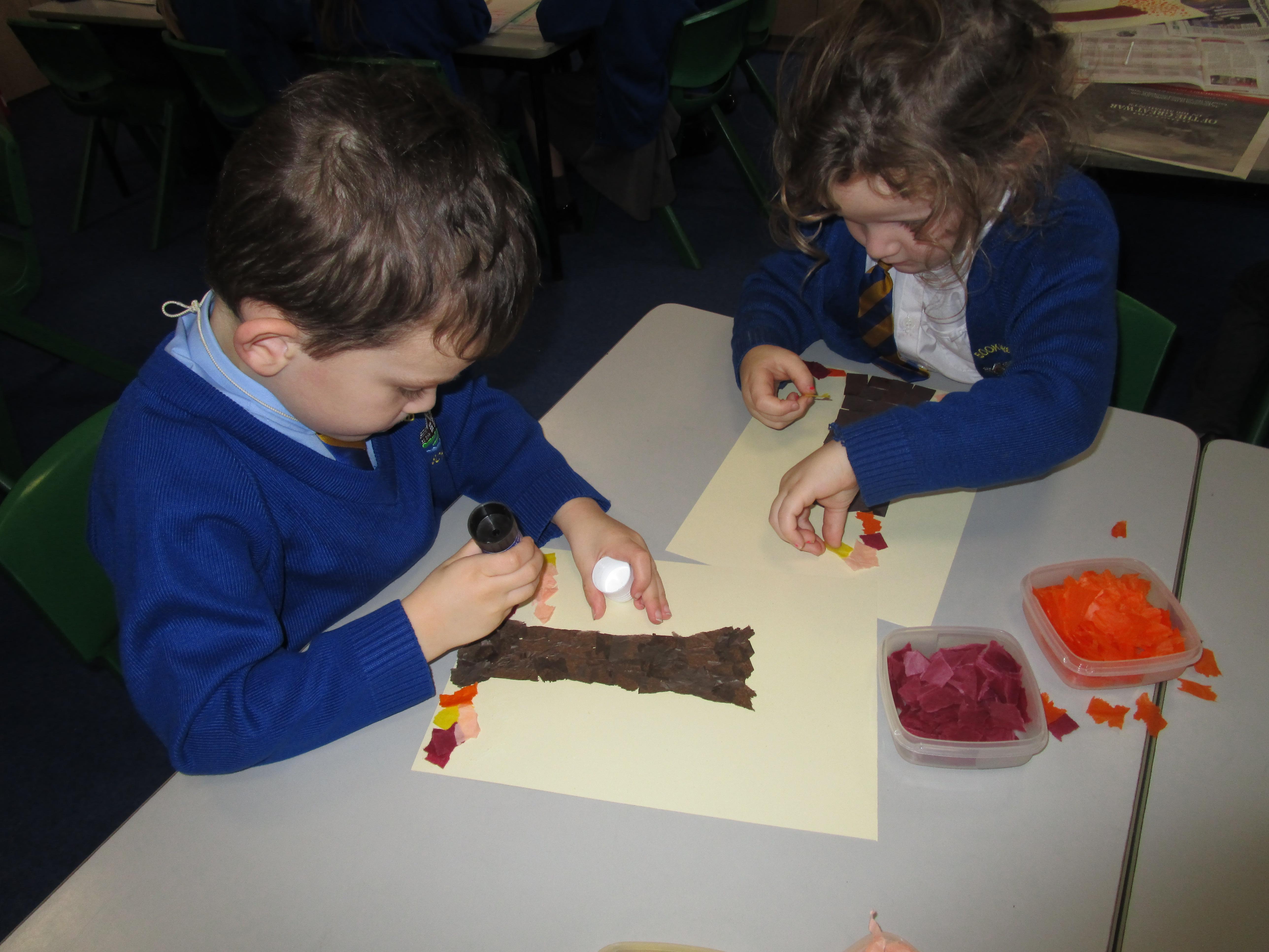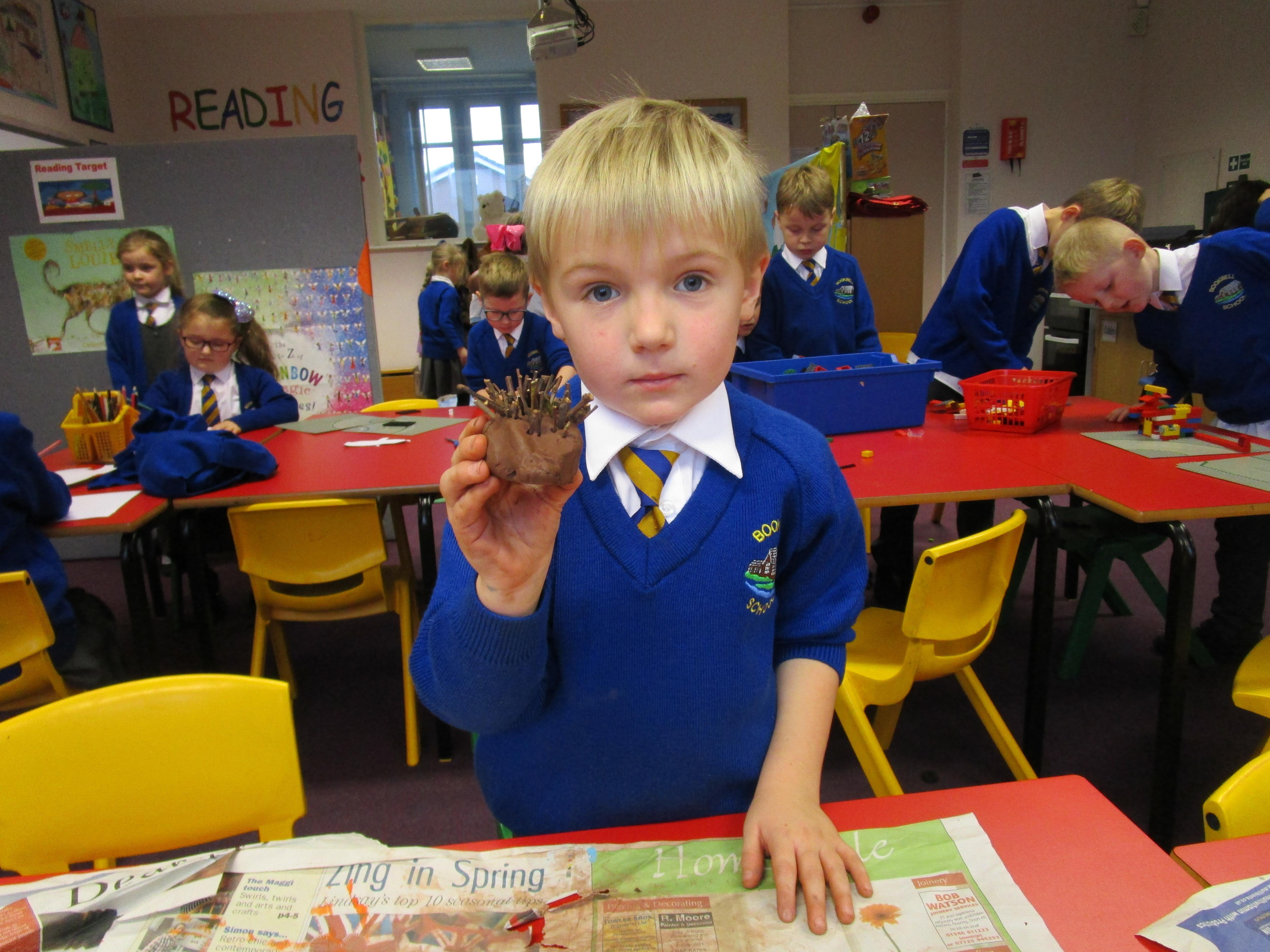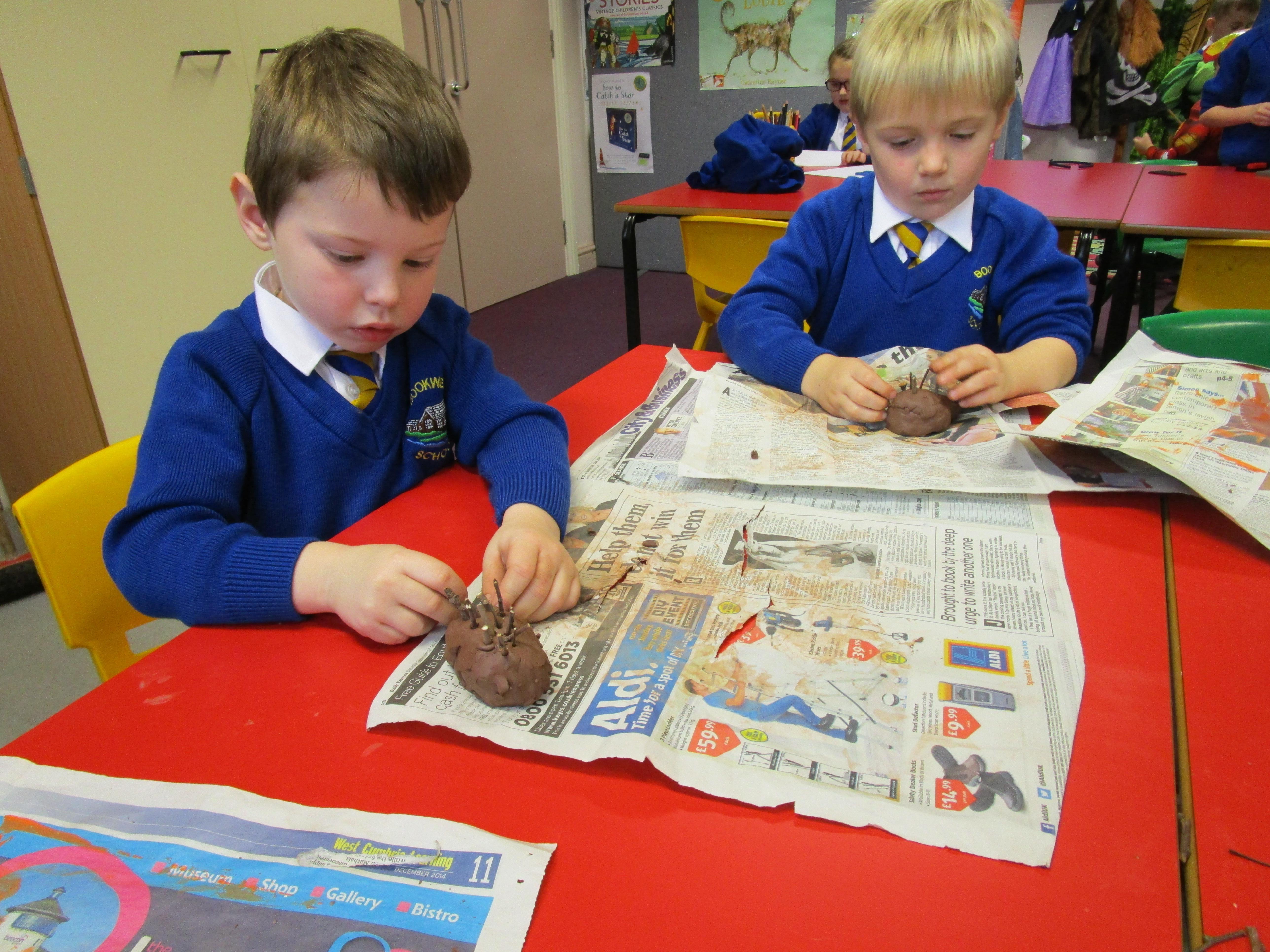 The children have been very busy creating clay hedgehogs to tie in with the book we have been reading in class, 'The Hodgeheg'. They have also been creating autumn collages.