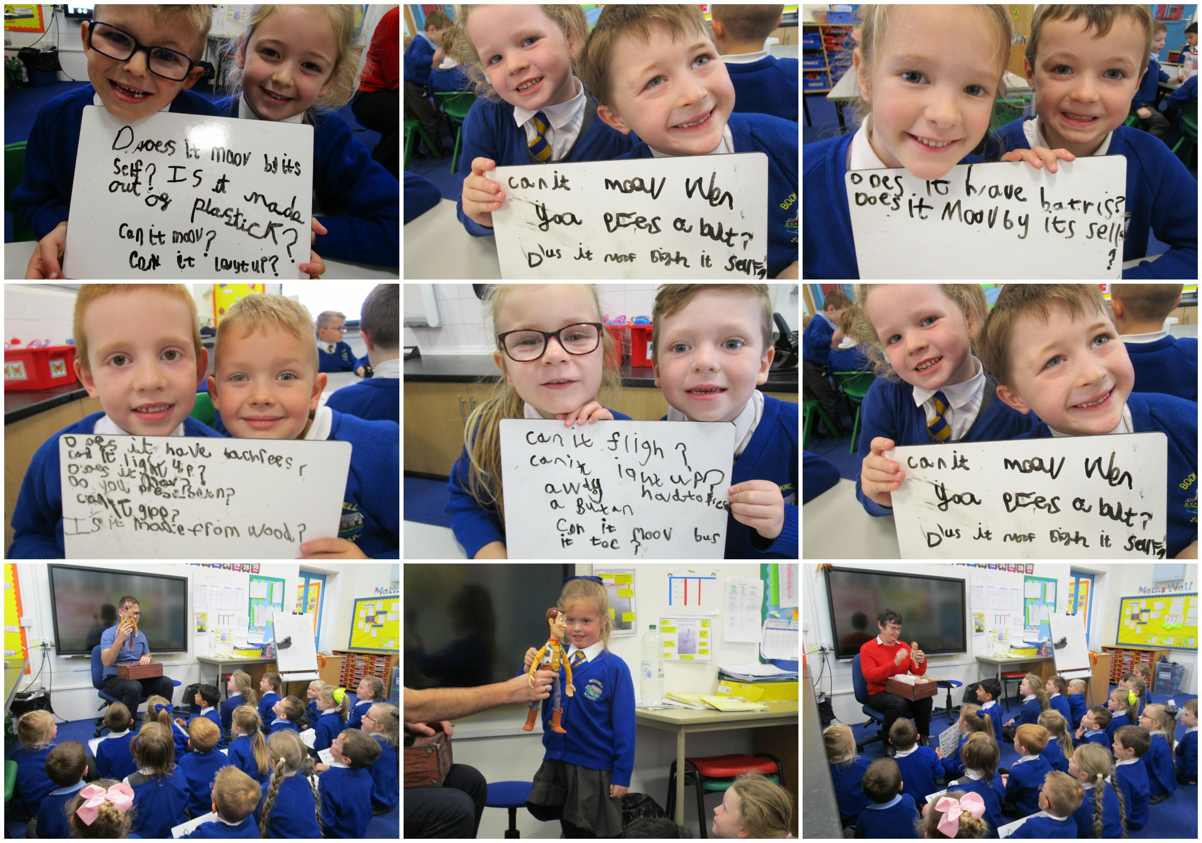 Today in class both Mr Corlett and Mrs Forrester both brought in an old and new toy from their childhood for the children to look at. Before they were shown the toys the children had think of questions to ask the adults so that they could try and predict whether the toys were old or new. They asked some fantastic questions and made excellent predictions! They really enjoyed hearing Woody talk and were amazed that Mrs Forrester's doll was over 100 years old!