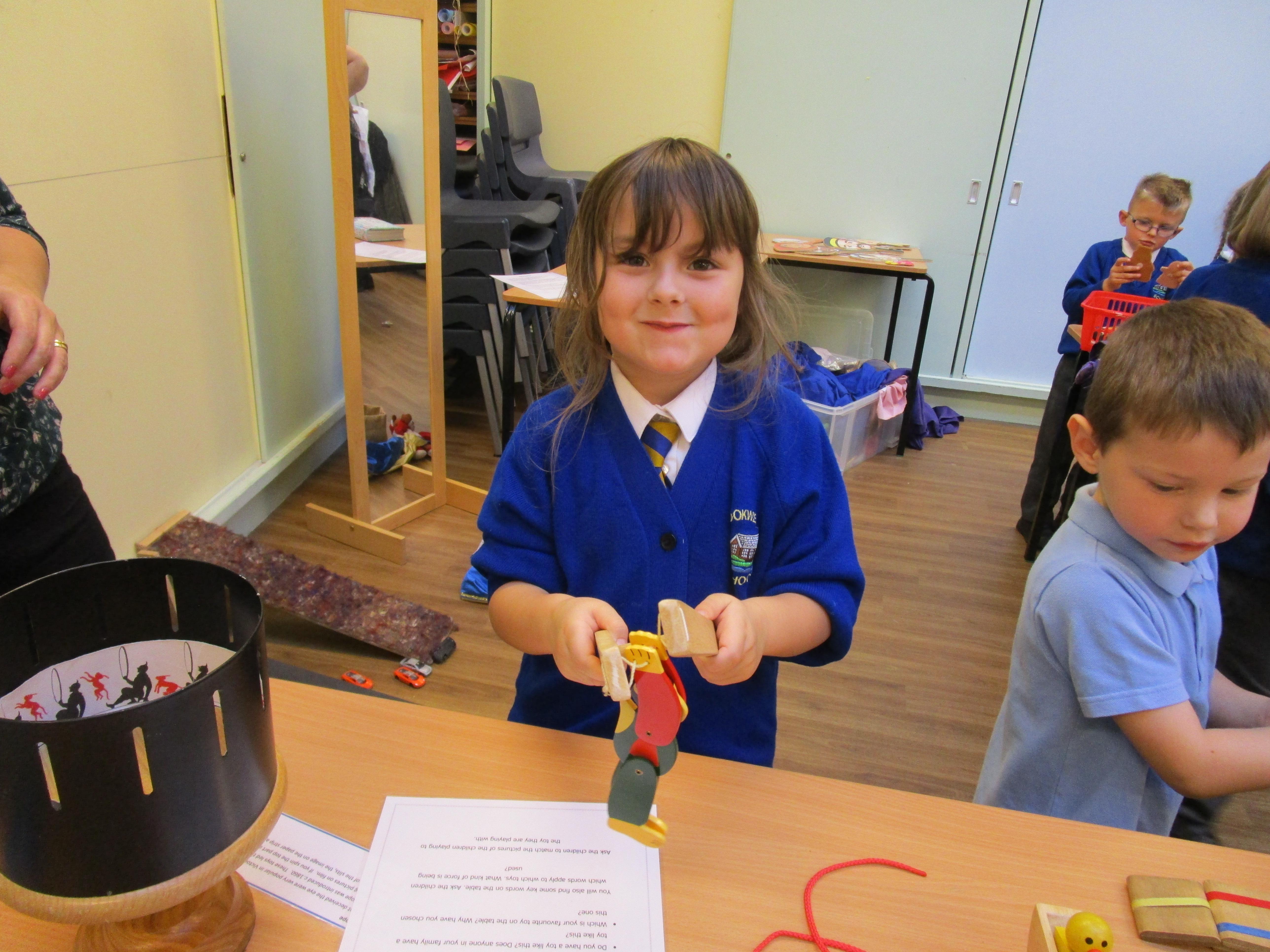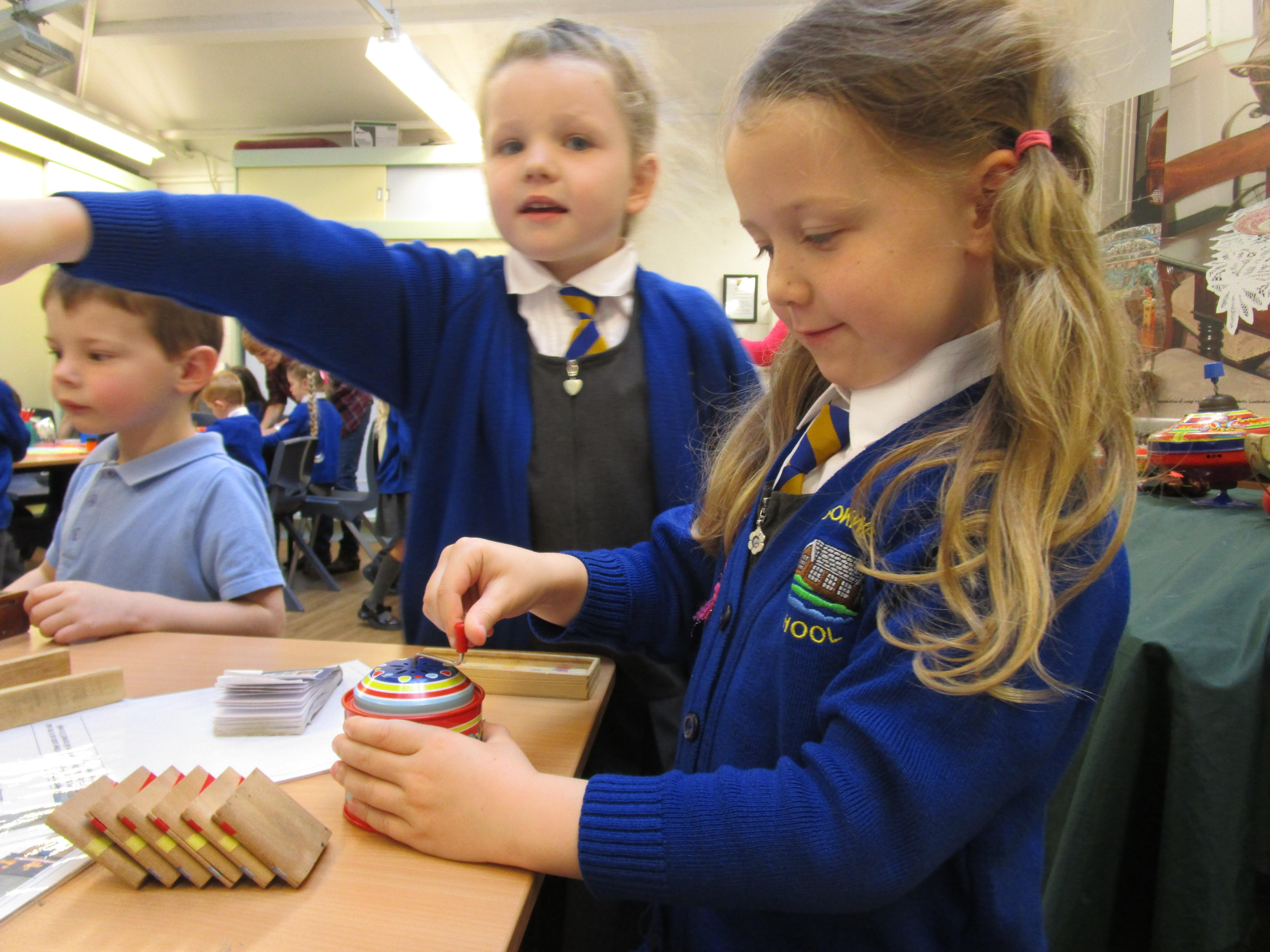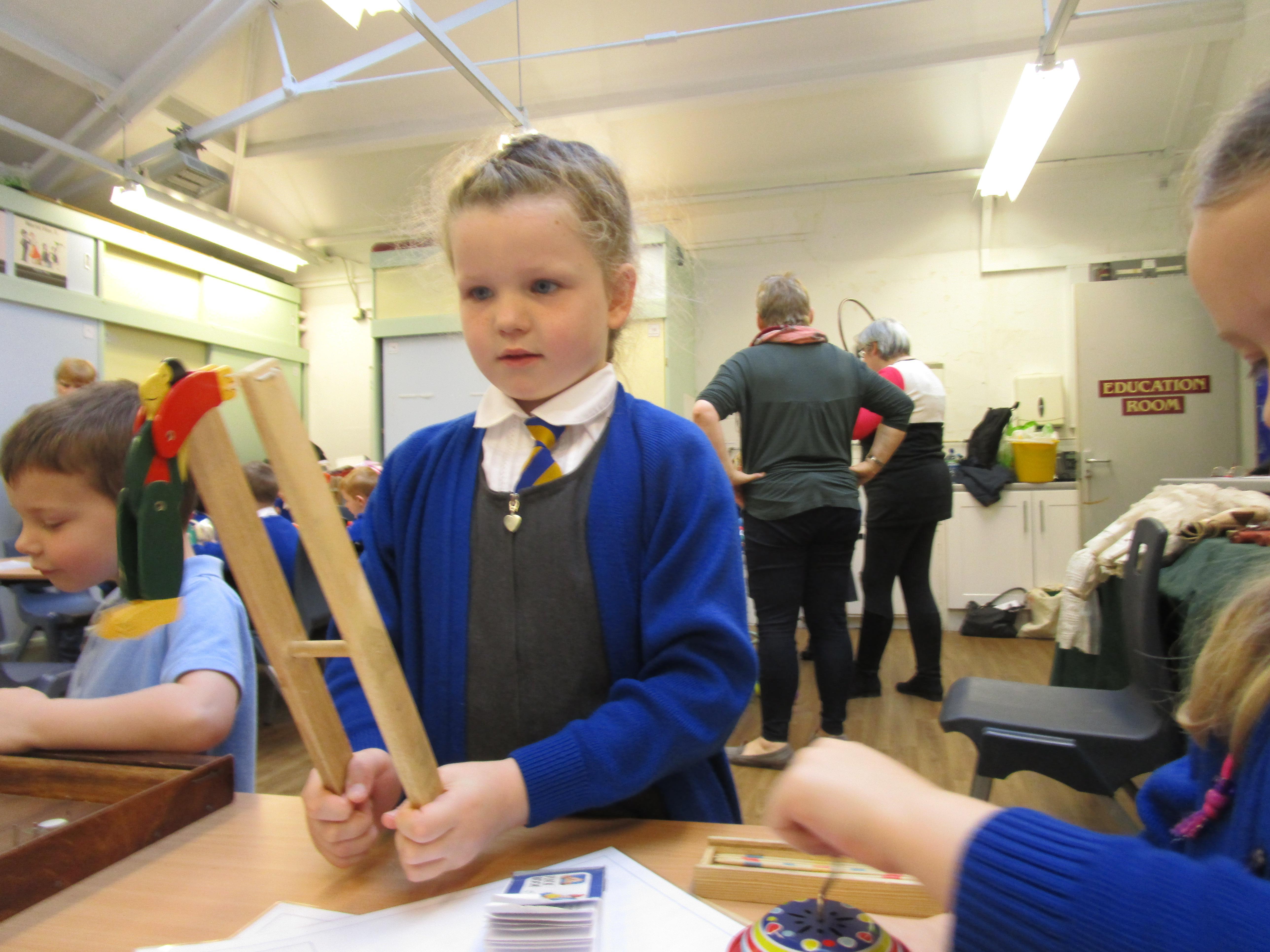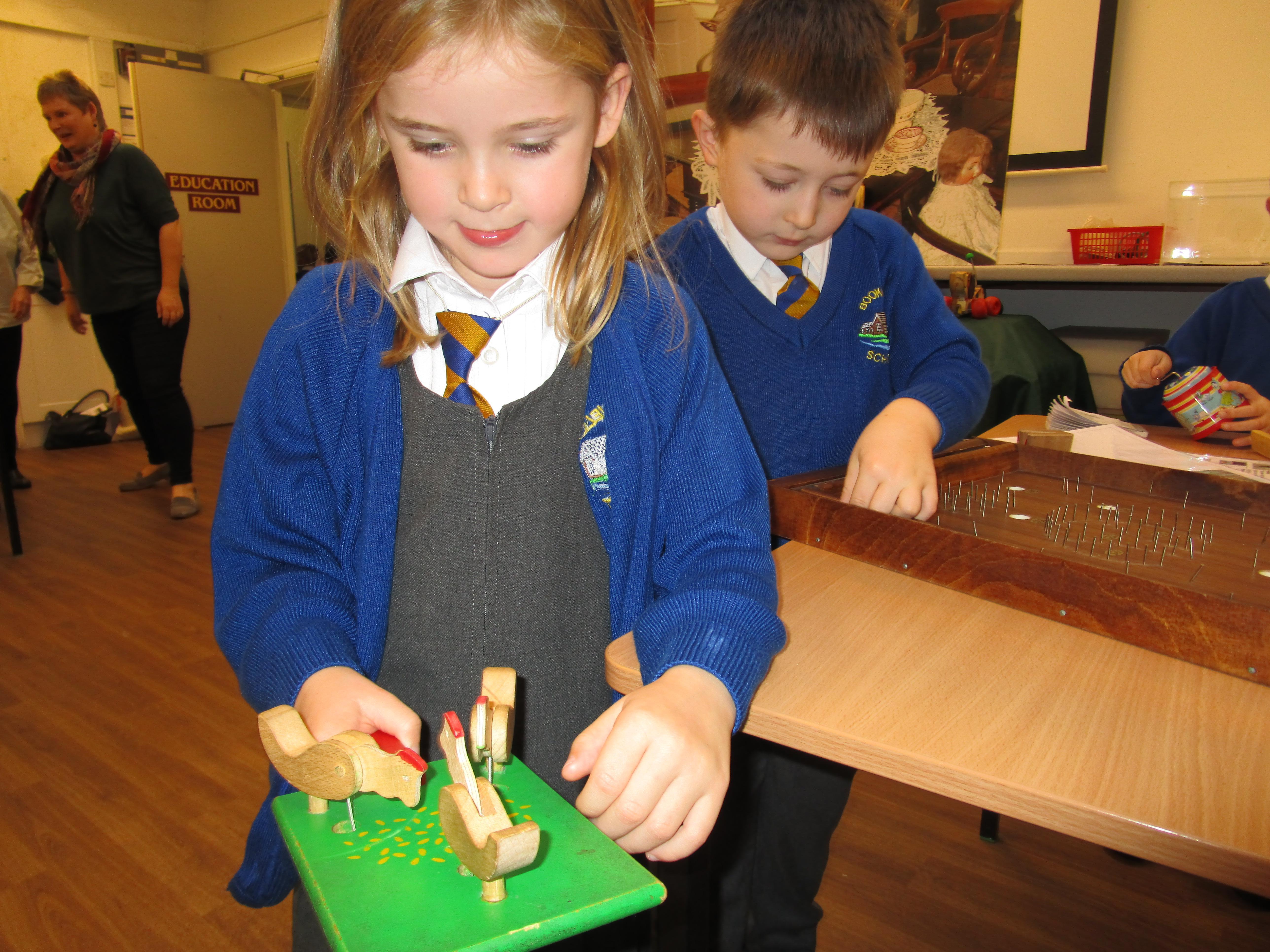 The children all really enjoyed our trip to Tullie House today, where we learnt about old toys. First the children were shown some old toys by our guide. Then they got the chance to play with outside toys from the past and to explore toys from the past that require a push or a pull movement to work. The children also got the opportunity to play with dress up toys as well as creating some toys of their own.