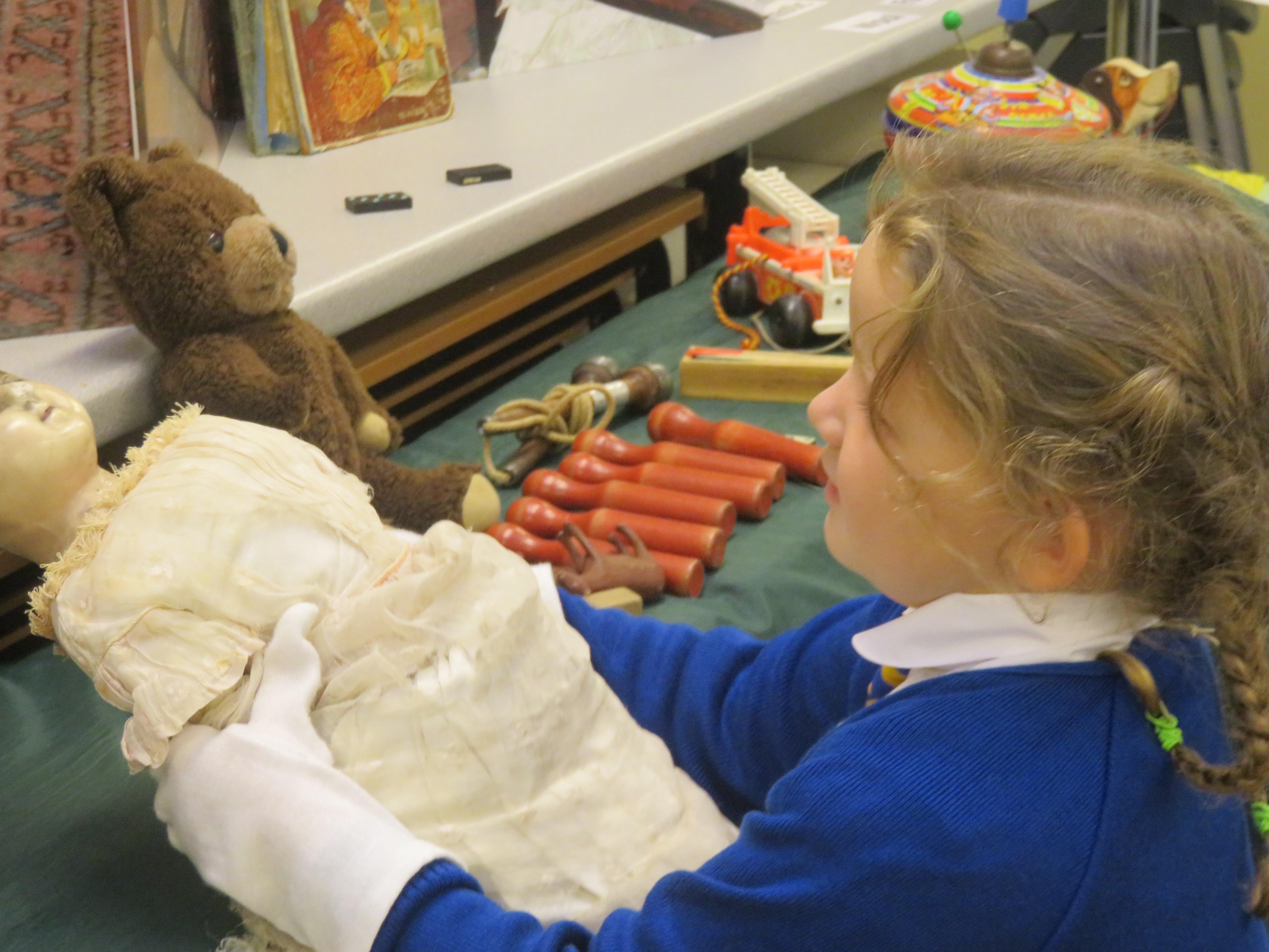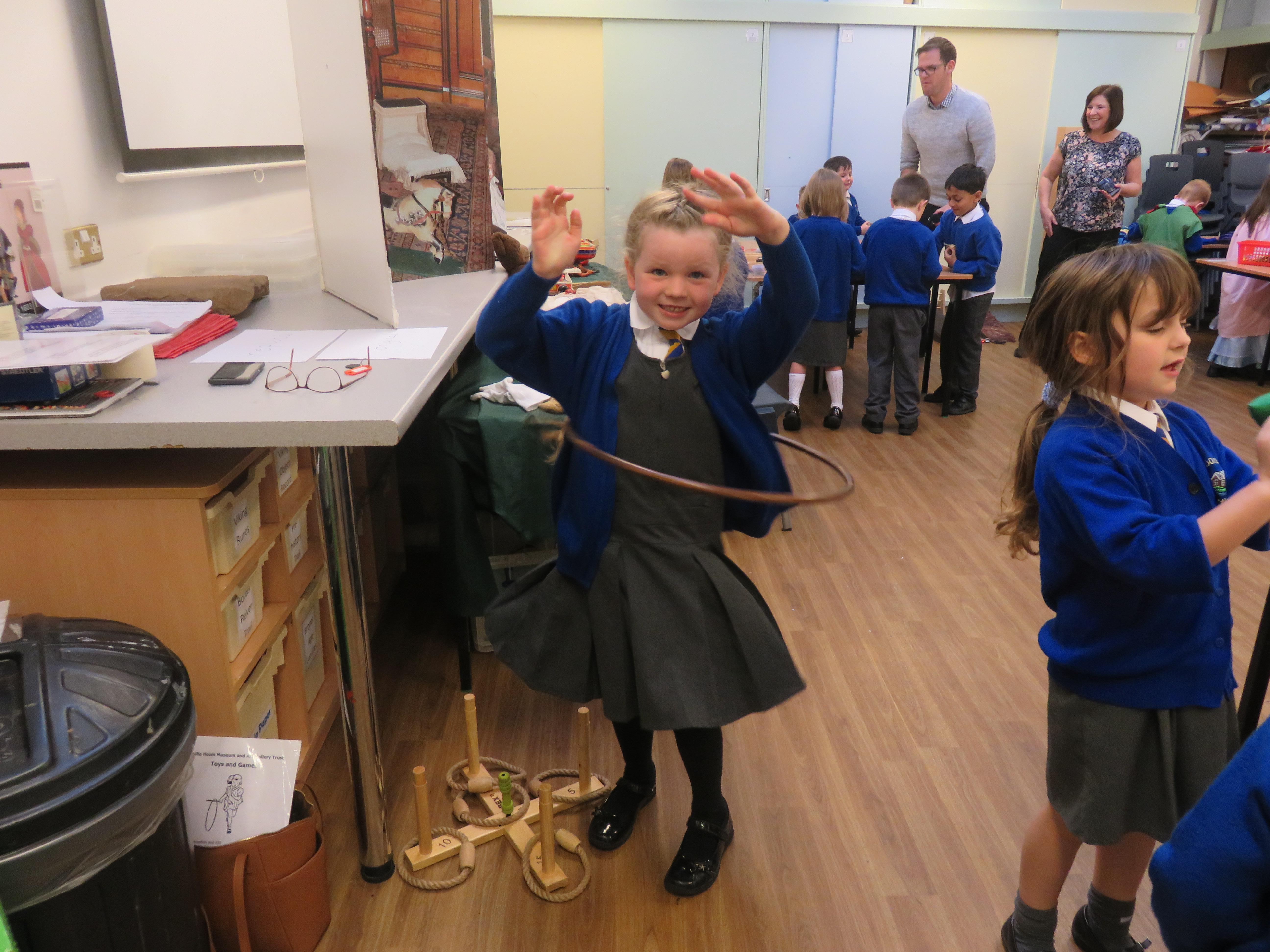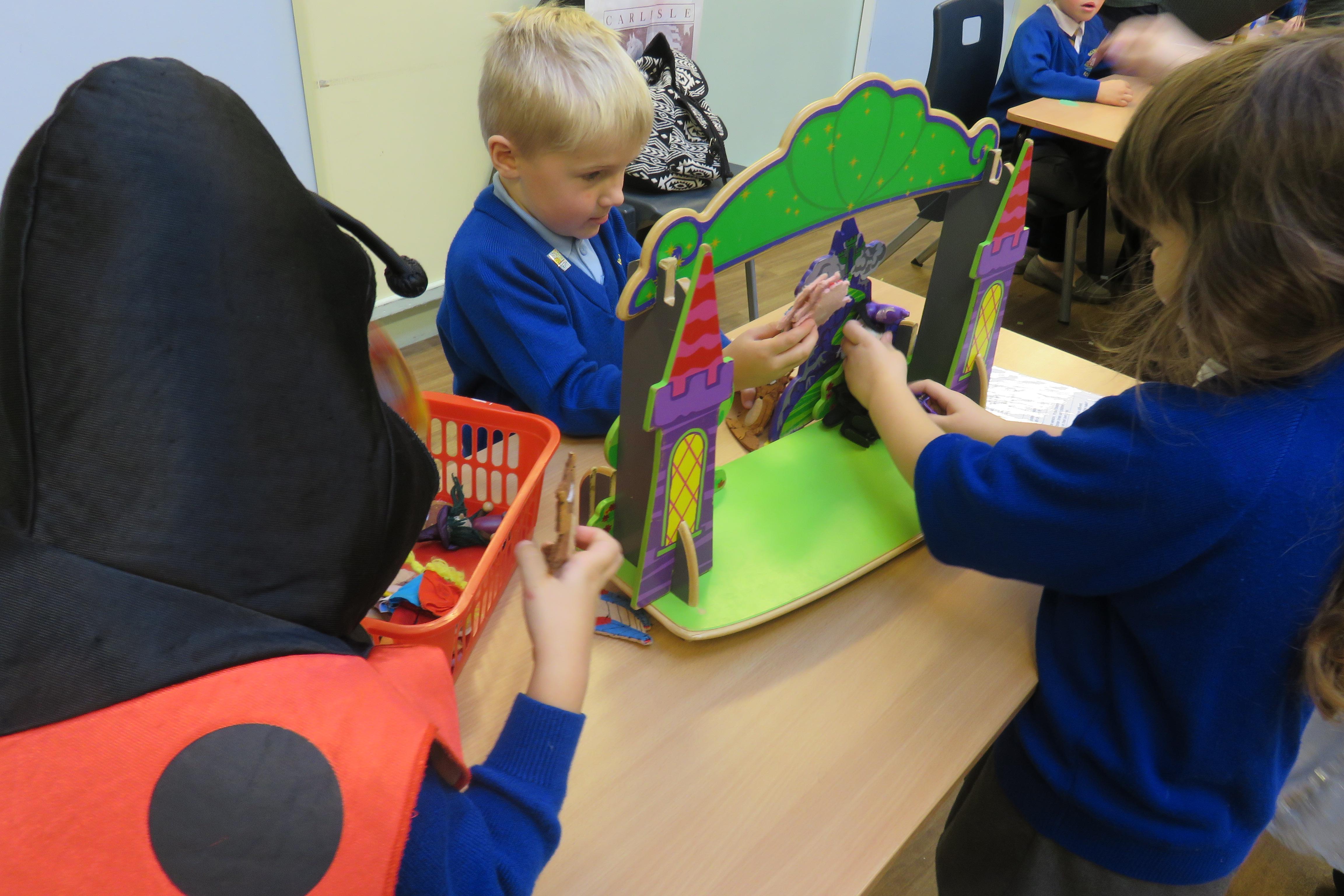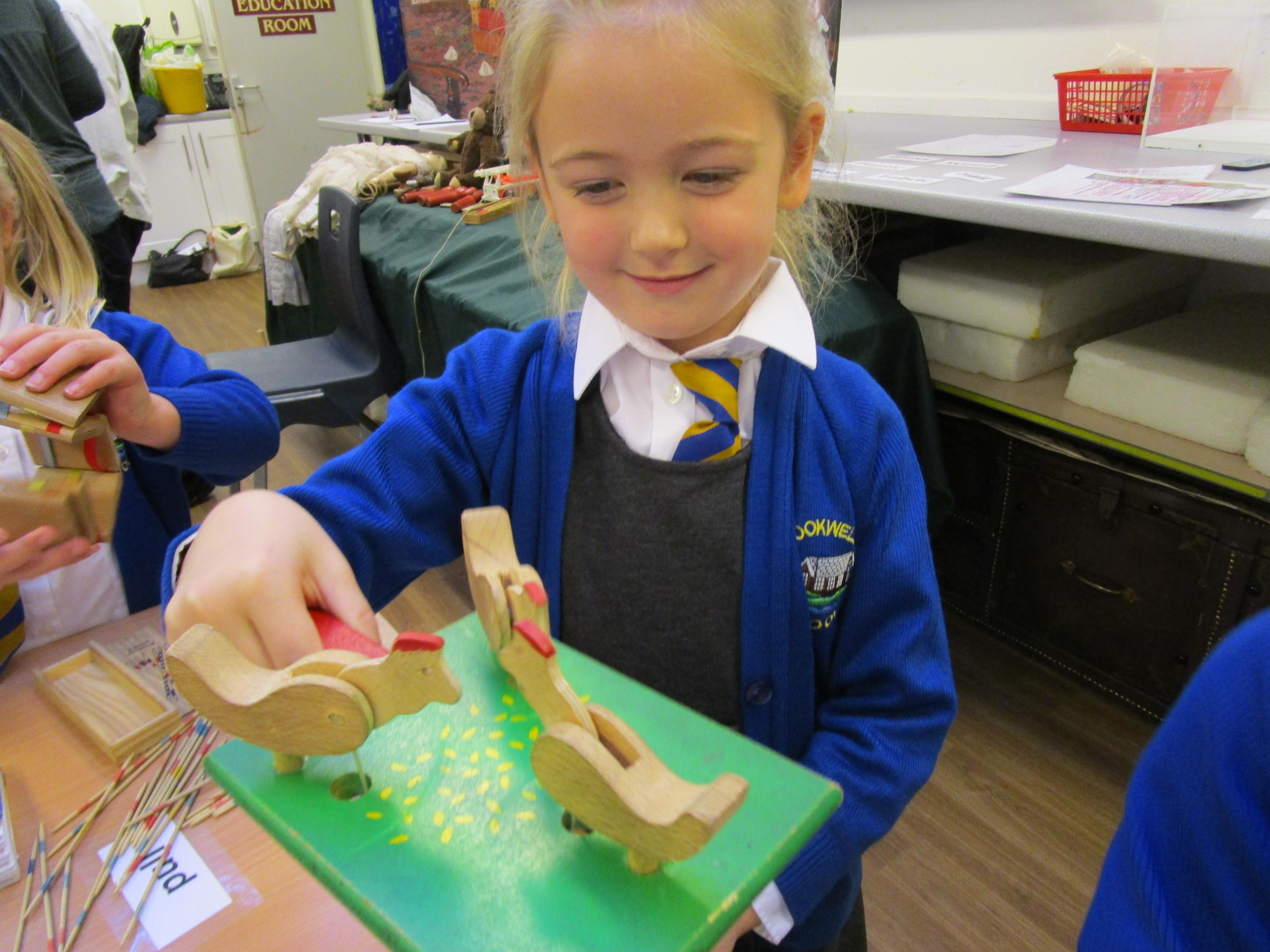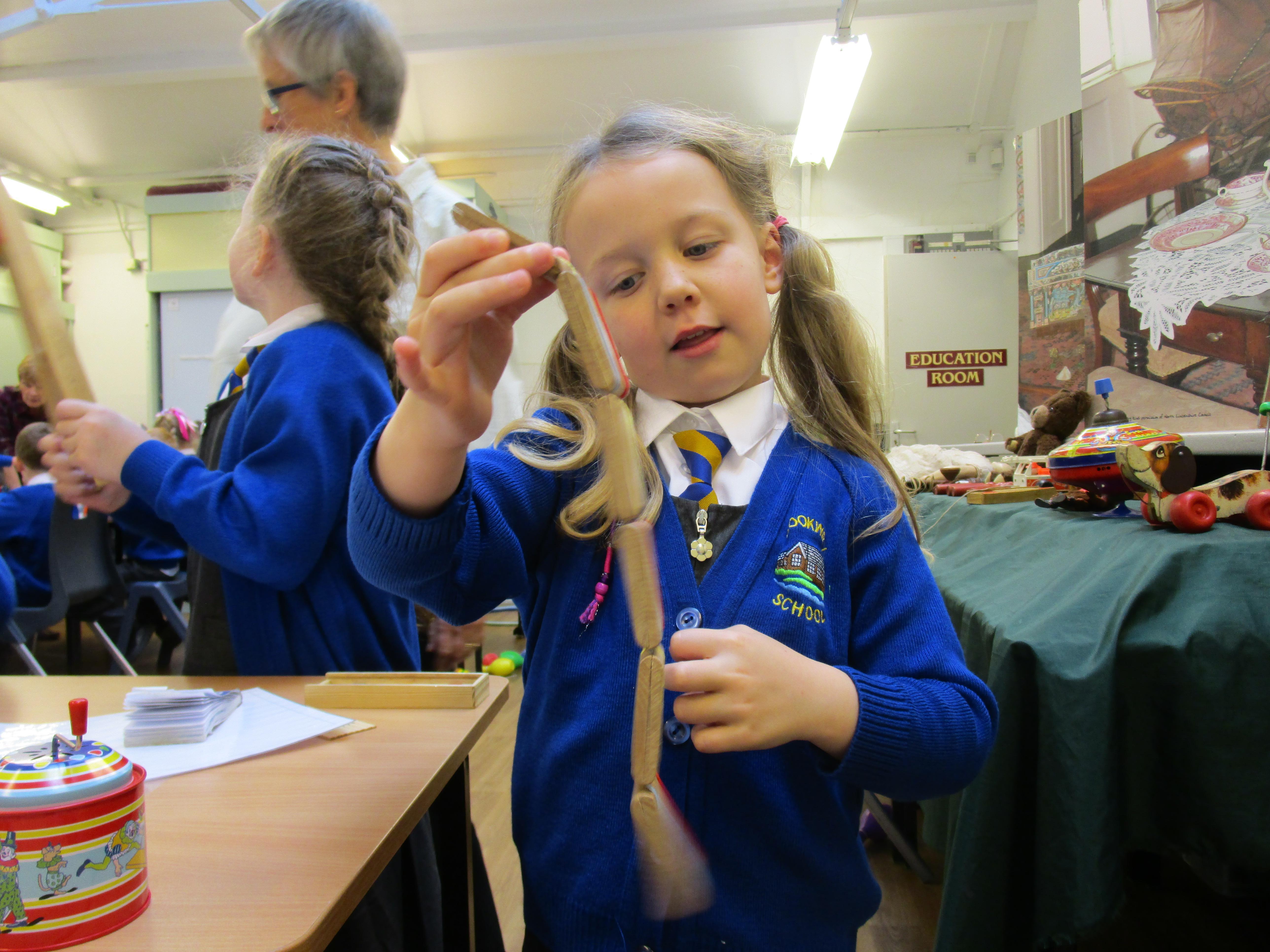 The children all really enjoyed our trip to Tullie House today, where we learnt about old toys. First the children were shown some old toys by our guide. Then they got the chance to play with outside toys from the past and to explore toys from the past that require a push or a pull movement to work. The children also got the opportunity to play with dress up toys as well as creating some toys of their own.
