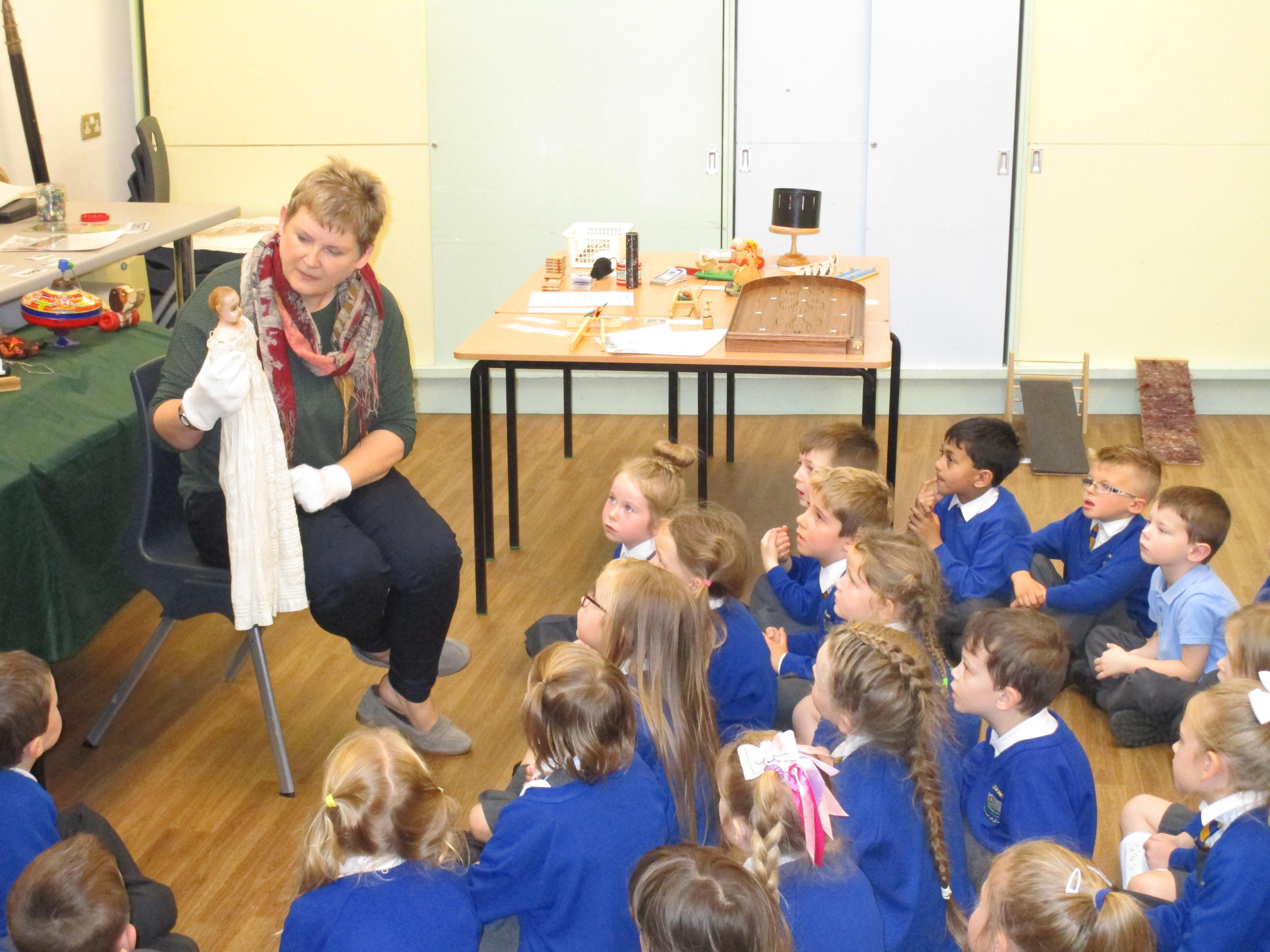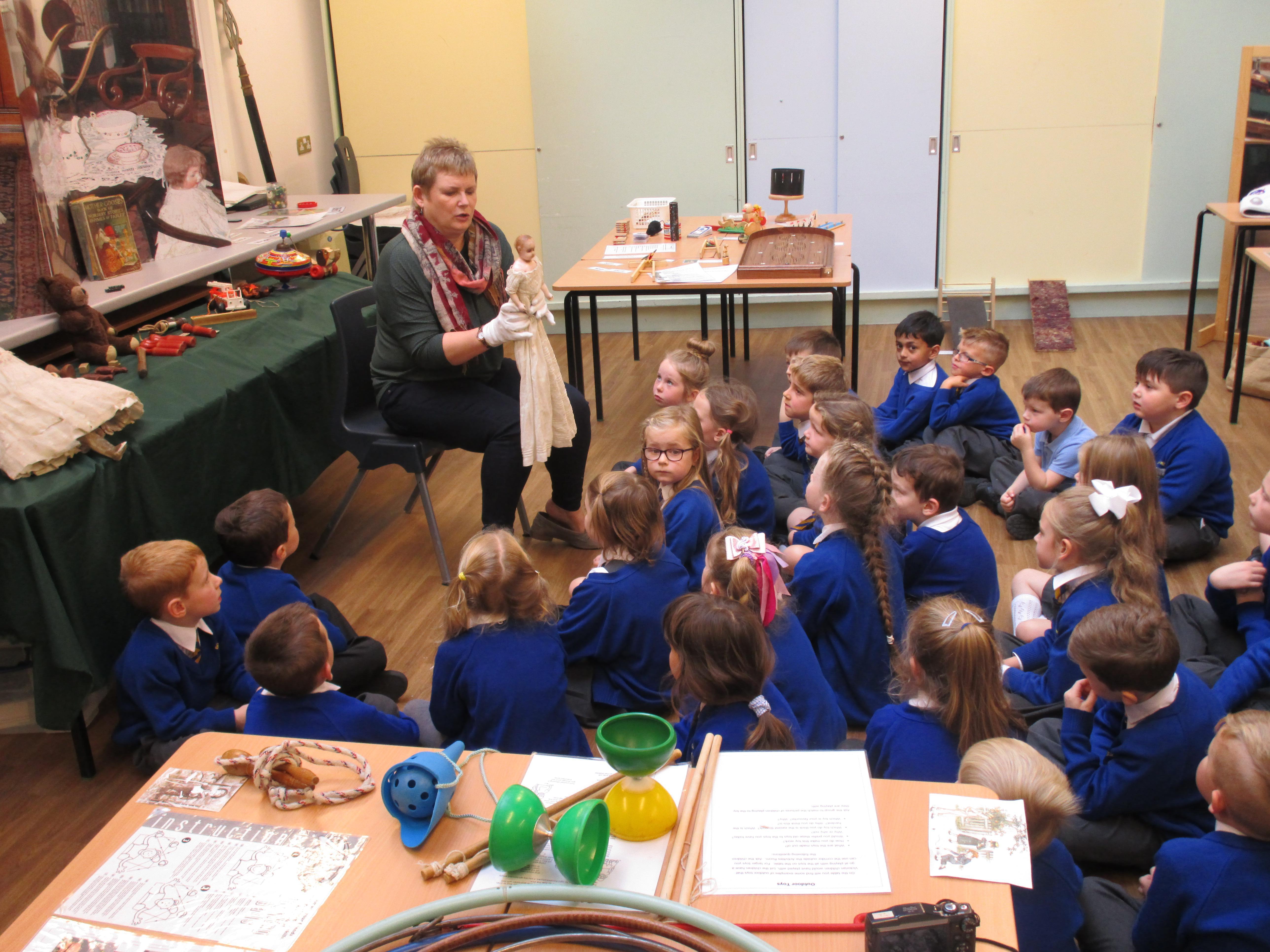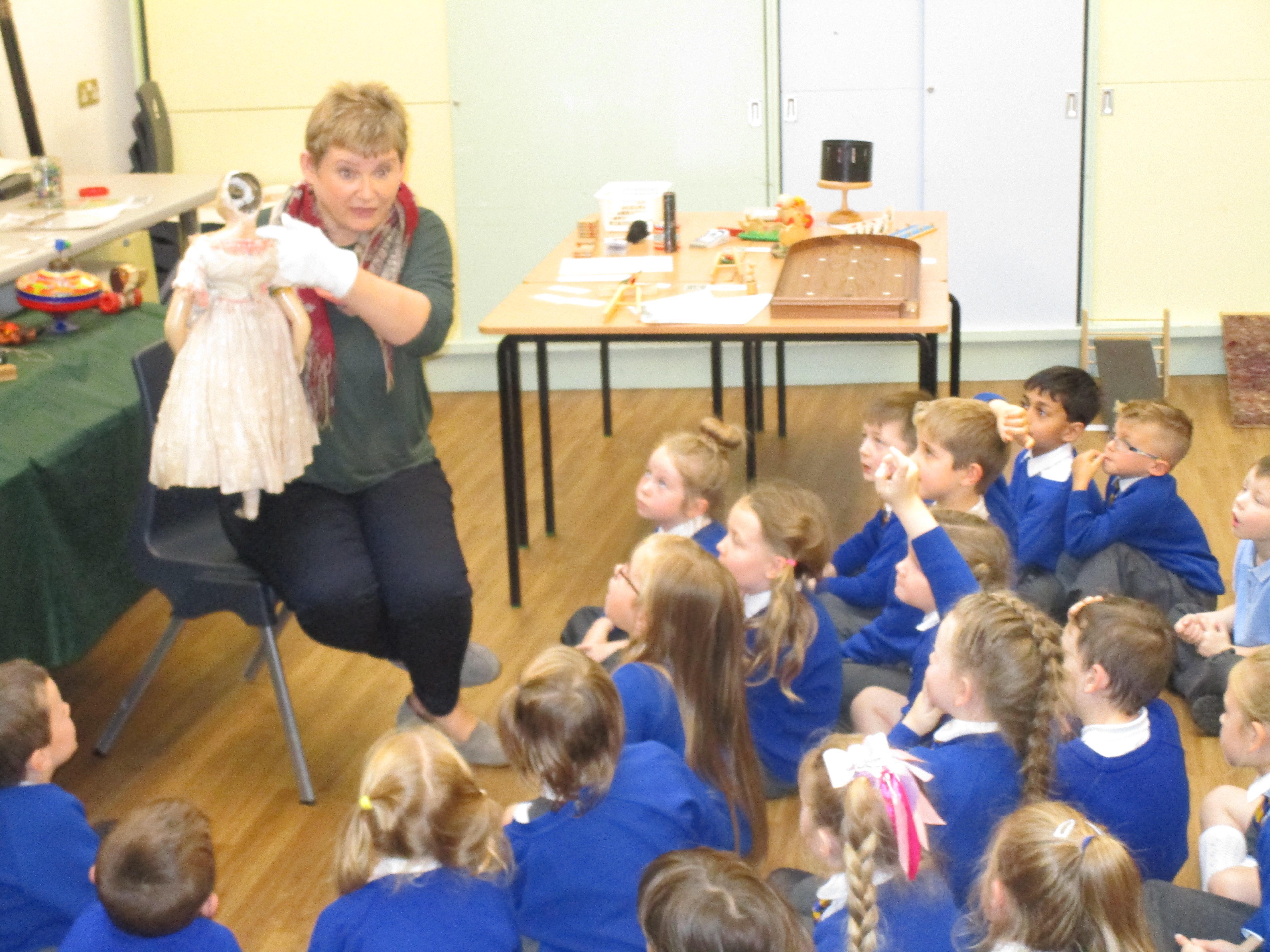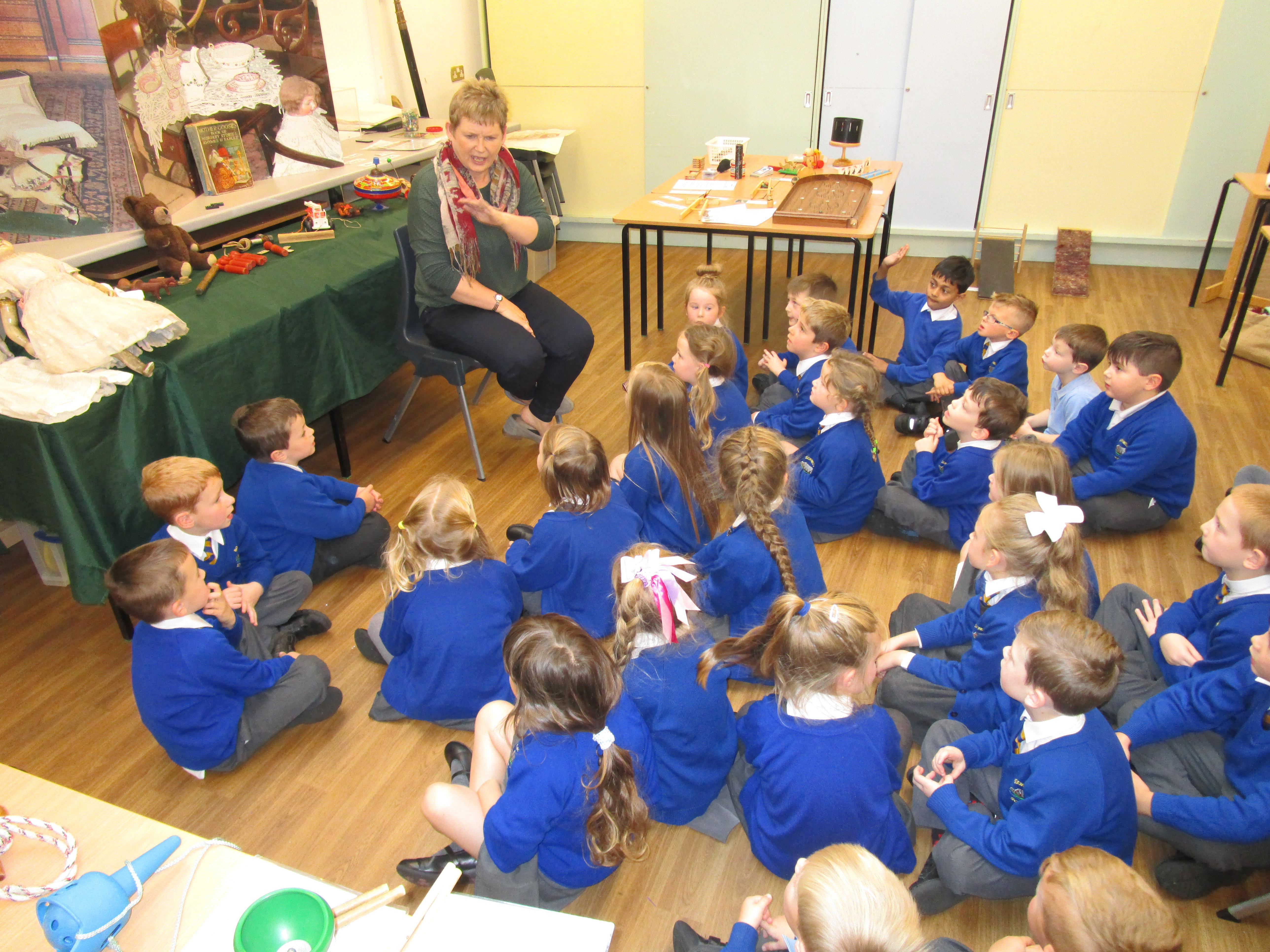 Today the children have been learning about toys from the past. They had to think of their own questions to ask our special visitor (Mrs Graham) about the toys she played with when she was their age. The children learnt lots of interesting facts and enjoyed listening to Mrs Graham's stories about when she was a child. They were shocked to learn that she didn't have a mobile phone and that she didn't have a TV when she was their age! They were also shocked to learn that their were no light switches and that she didn't have any toys with batteries in! Mrs Graham also brought in lots of toys from the past and showed children games that she played as a child.