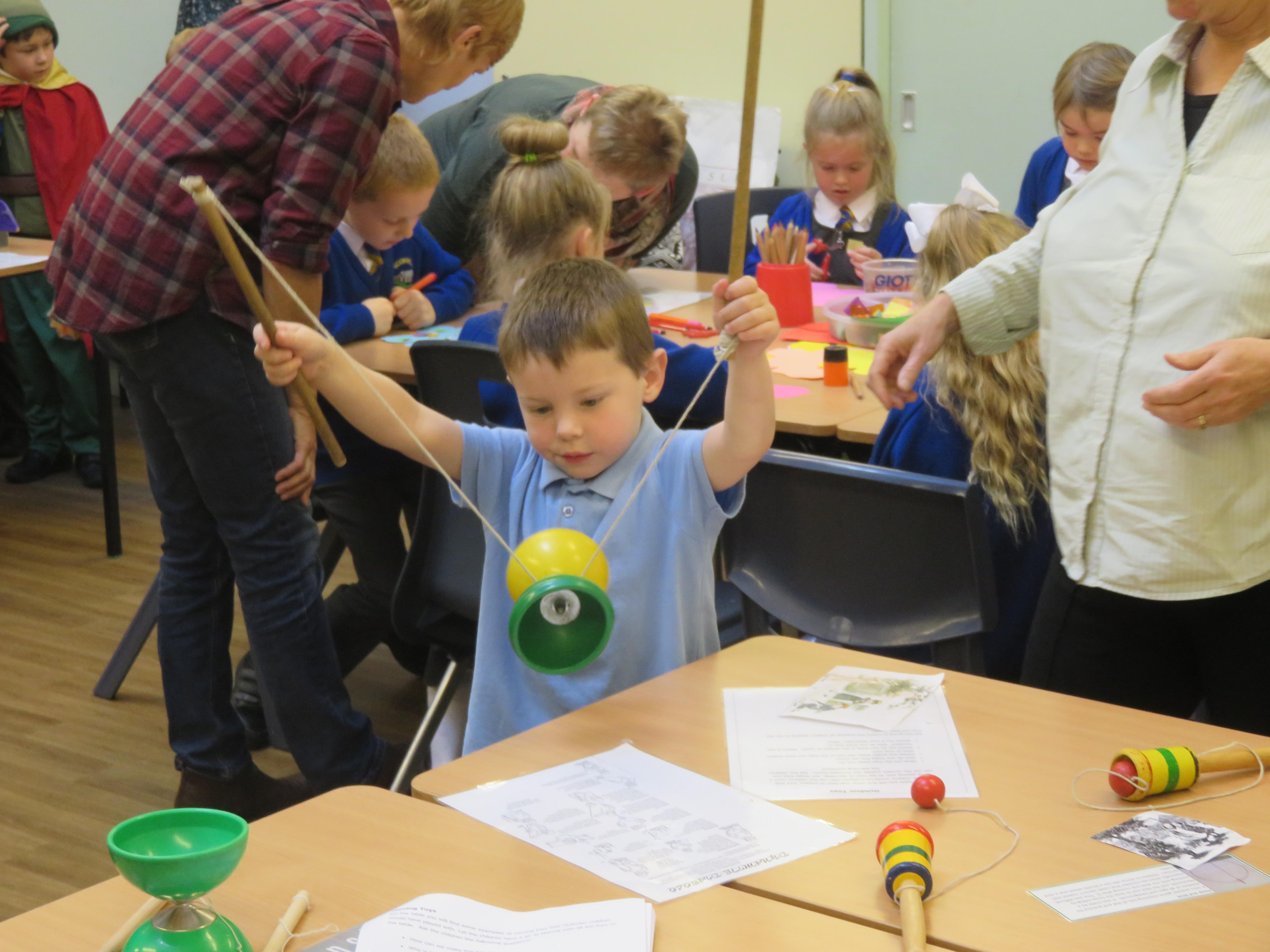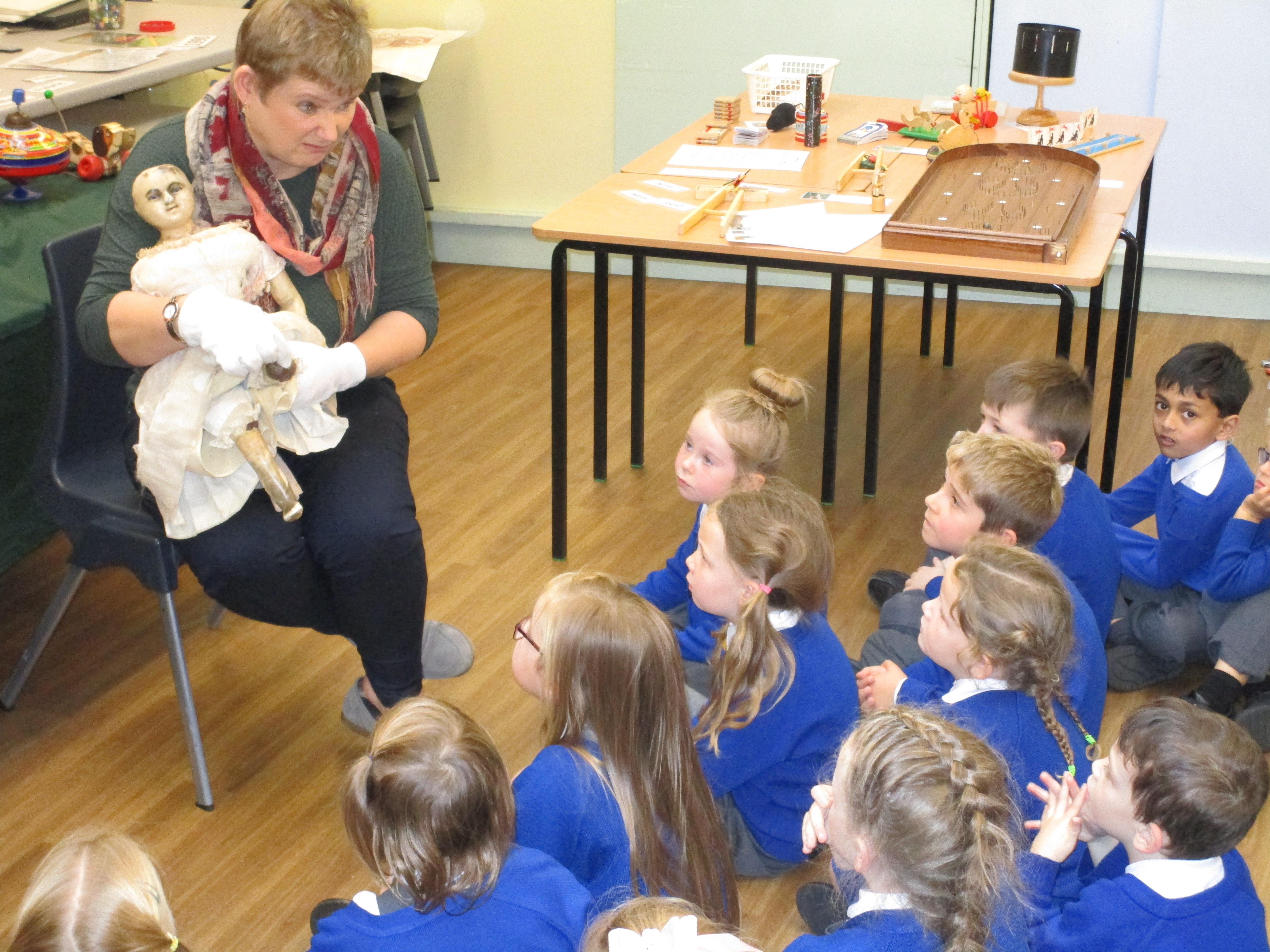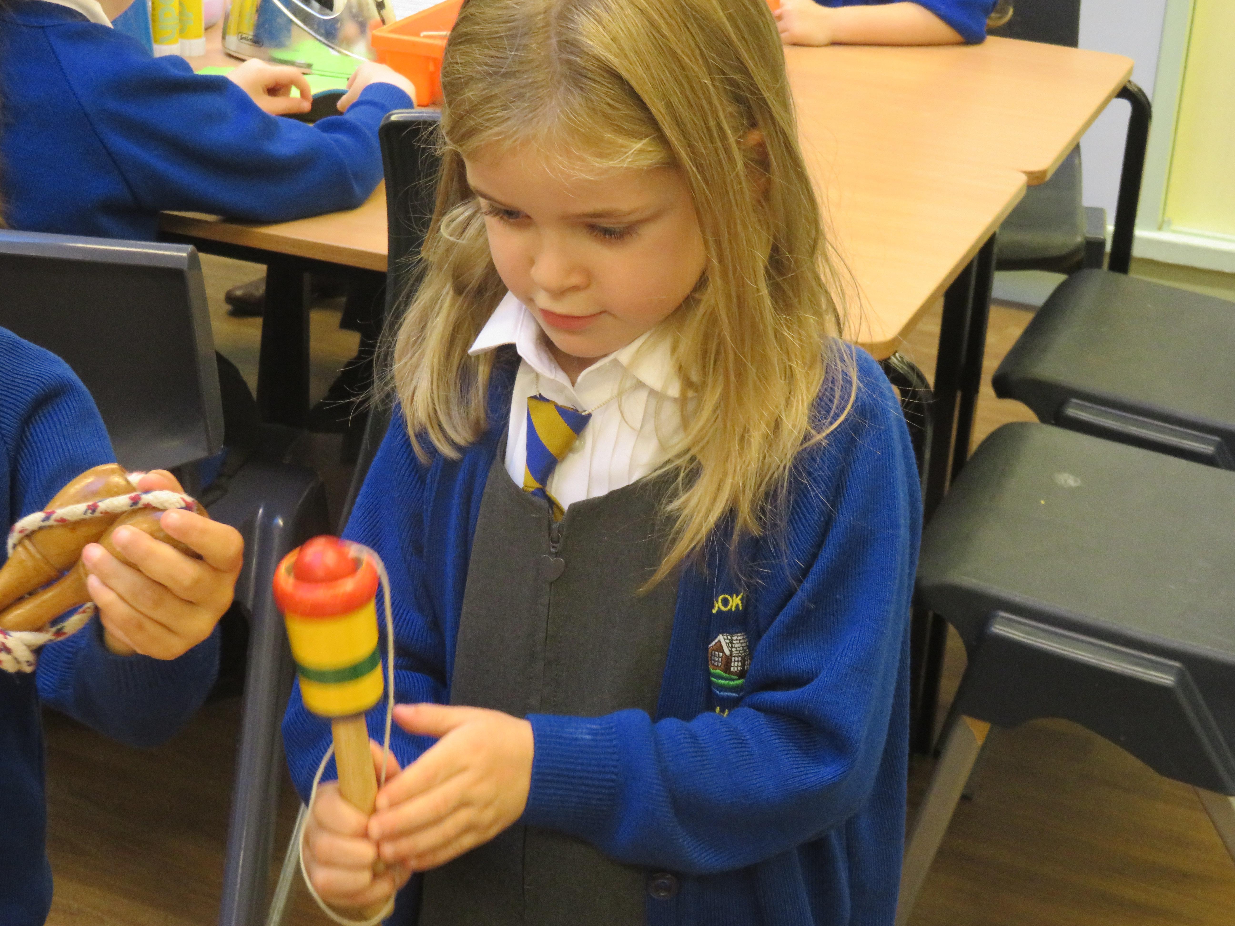 Today the children have been learning about toys from the past. They had to think of their own questions to ask our special visitor (Mrs Graham) about the toys she played with when she was their age. The children learnt lots of interesting facts and enjoyed listening to Mrs Graham's stories about when she was a child. They were shocked to learn that she didn't have a mobile phone and that she didn't have a TV when she was their age! They were also shocked to learn that their were no light switches and that she didn't have any toys with batteries in! Mrs Graham also brought in lots of toys from the past and showed children games that she played as a child.