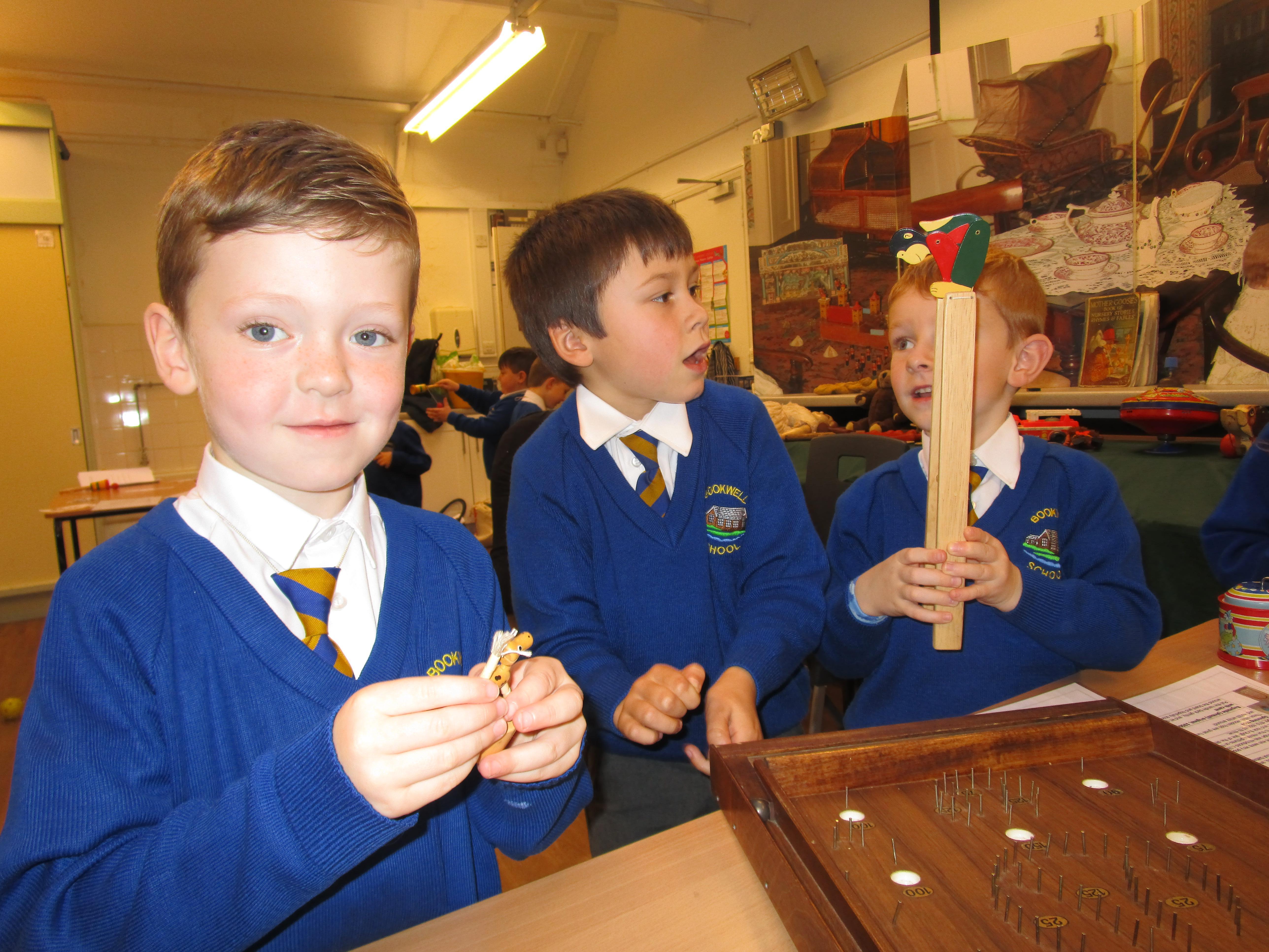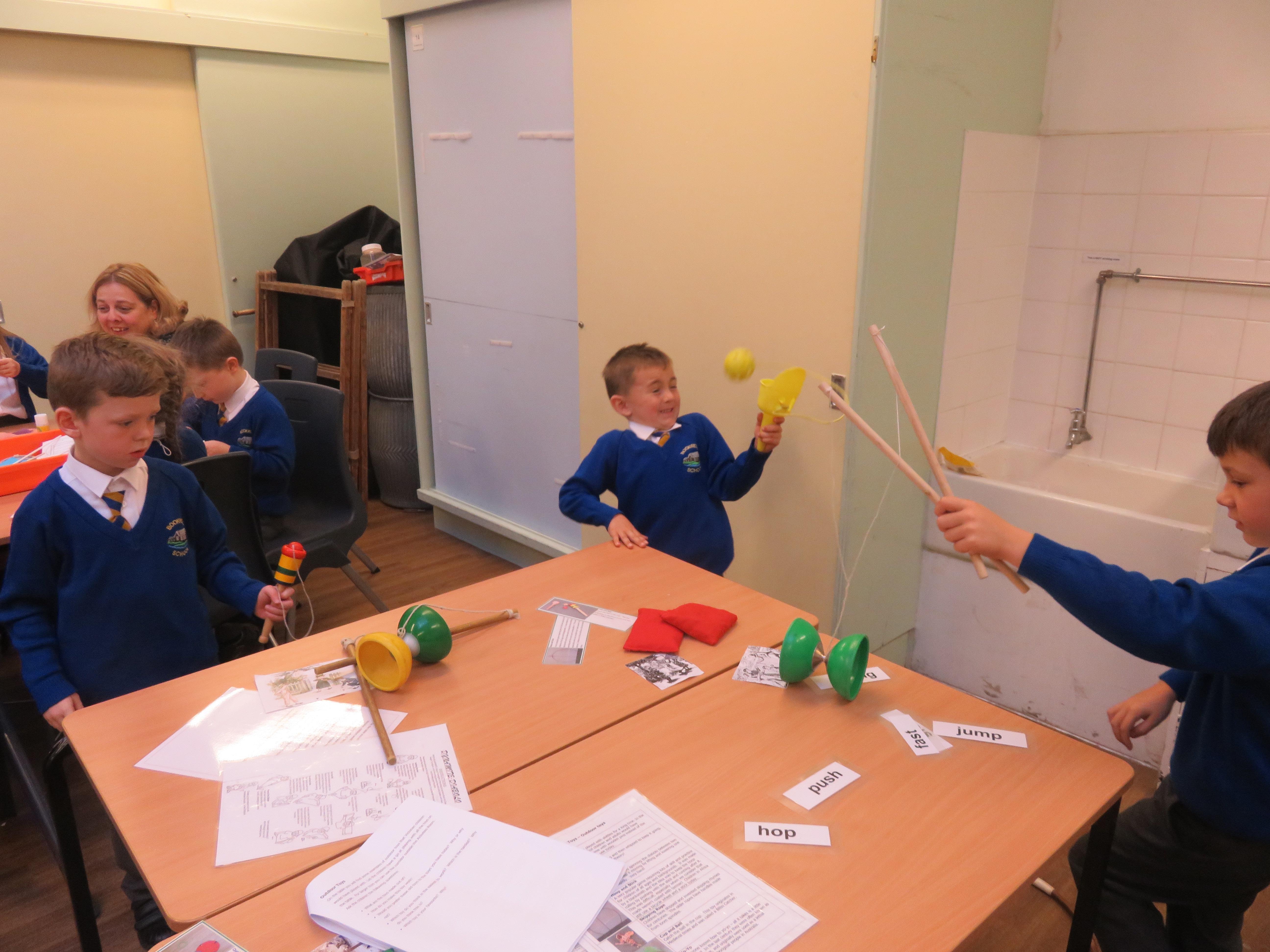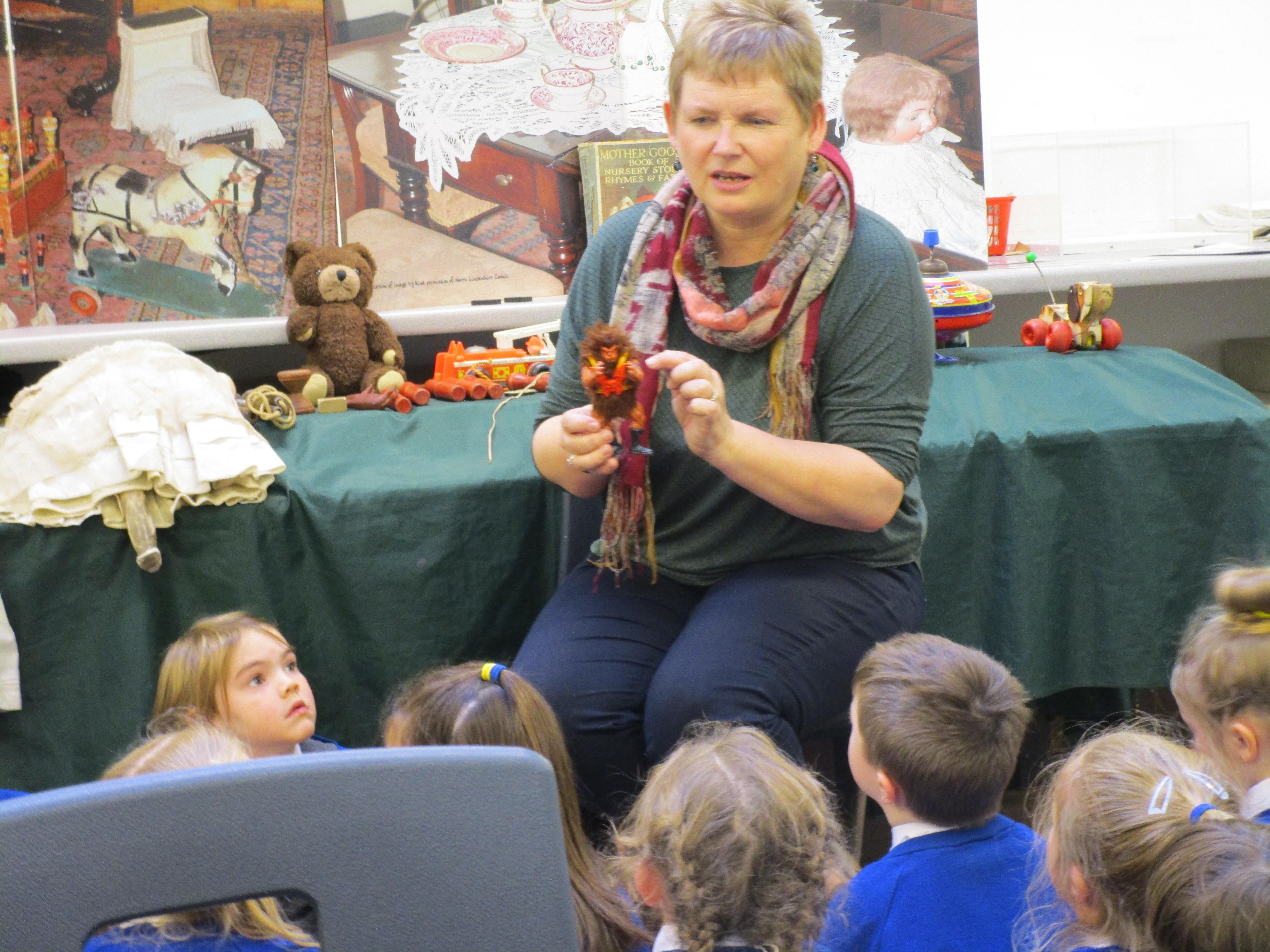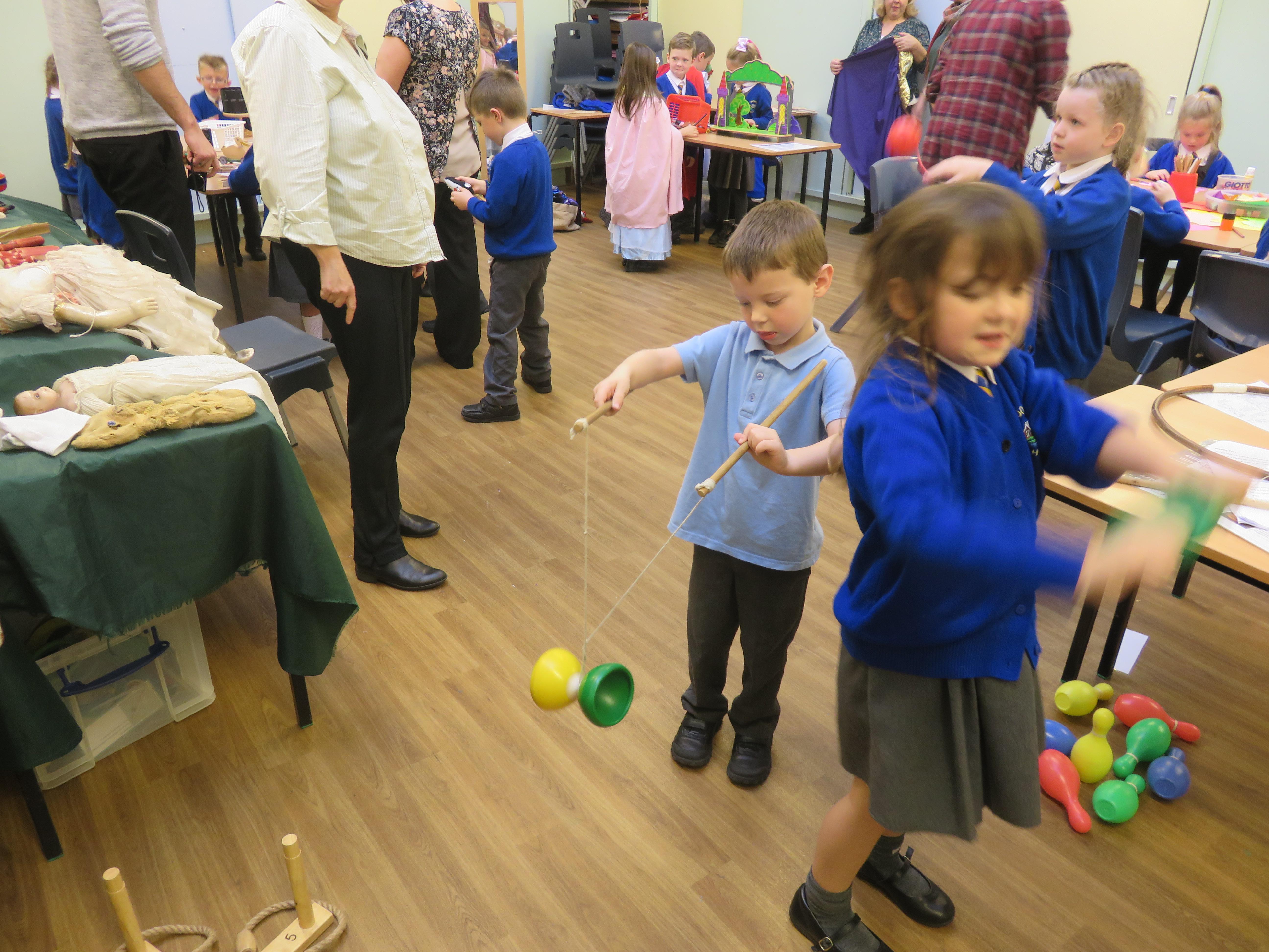 Today the children have been learning about toys from the past. They had to think of their own questions to ask our special visitor (Mrs Graham) about the toys she played with when she was their age. The children learnt lots of interesting facts and enjoyed listening to Mrs Graham's stories about when she was a child. They were shocked to learn that she didn't have a mobile phone and that she didn't have a TV when she was their age! They were also shocked to learn that their were no light switches and that she didn't have any toys with batteries in! Mrs Graham also brought in lots of toys from the past and showed children games that she played as a child.