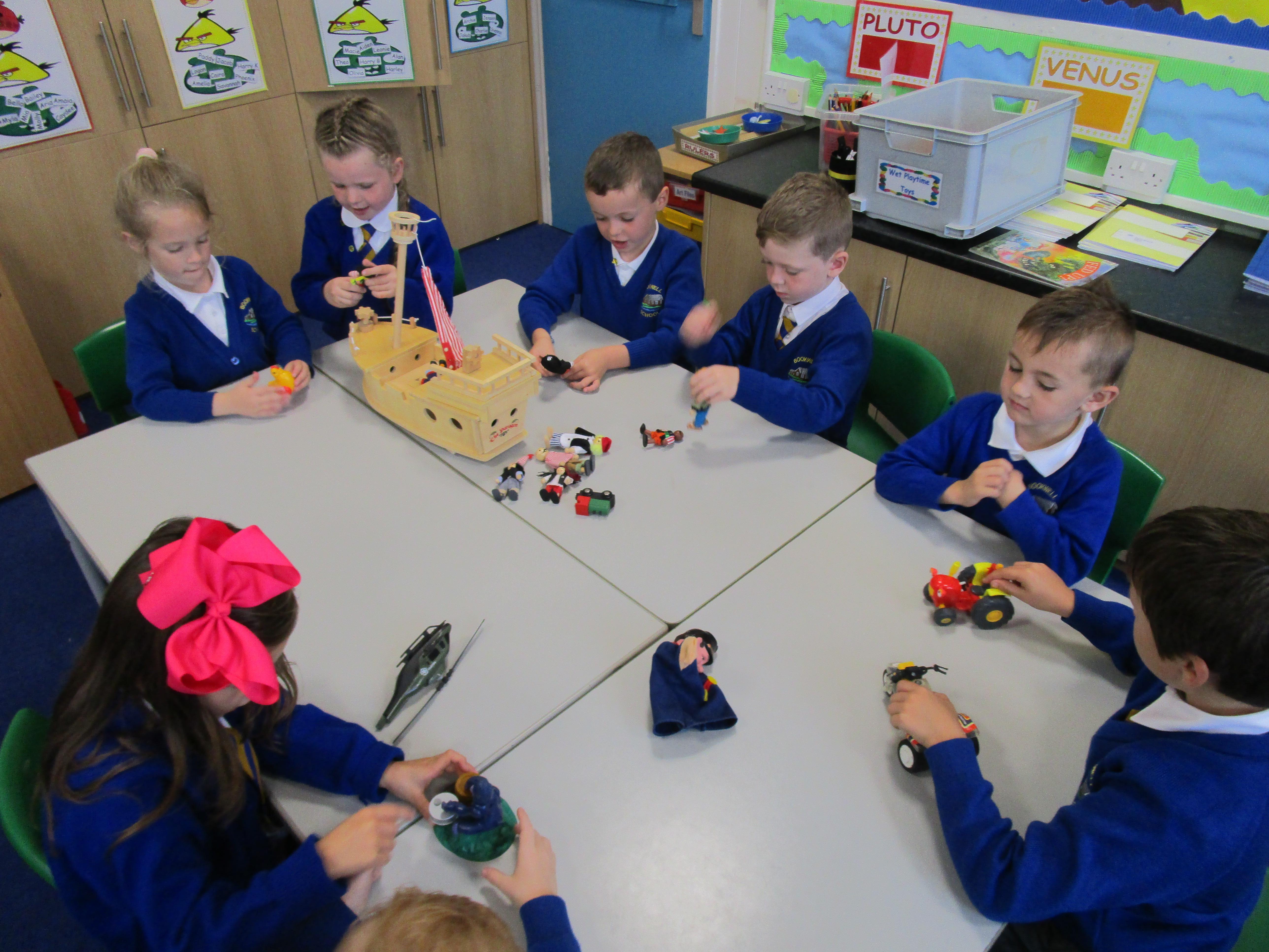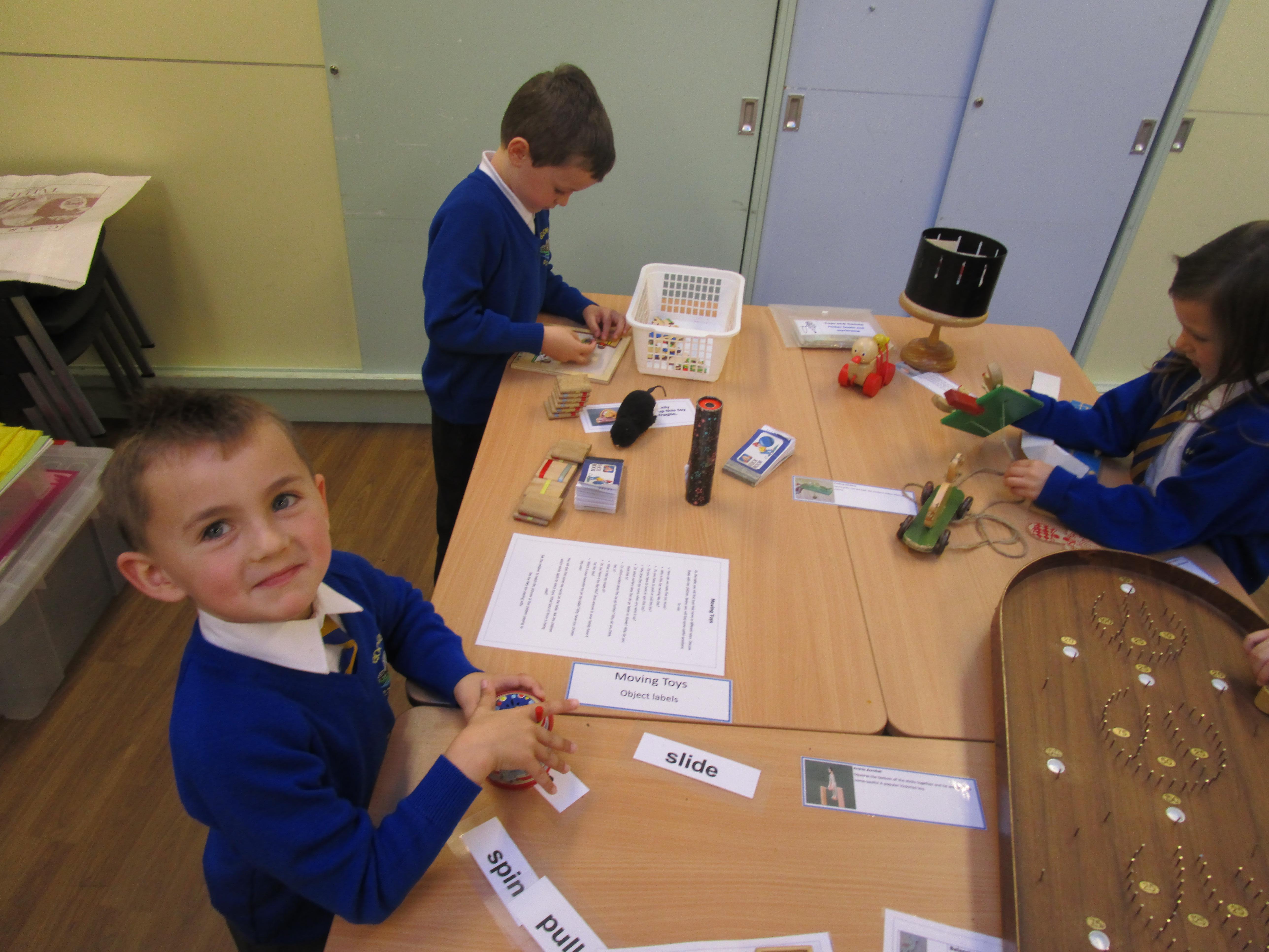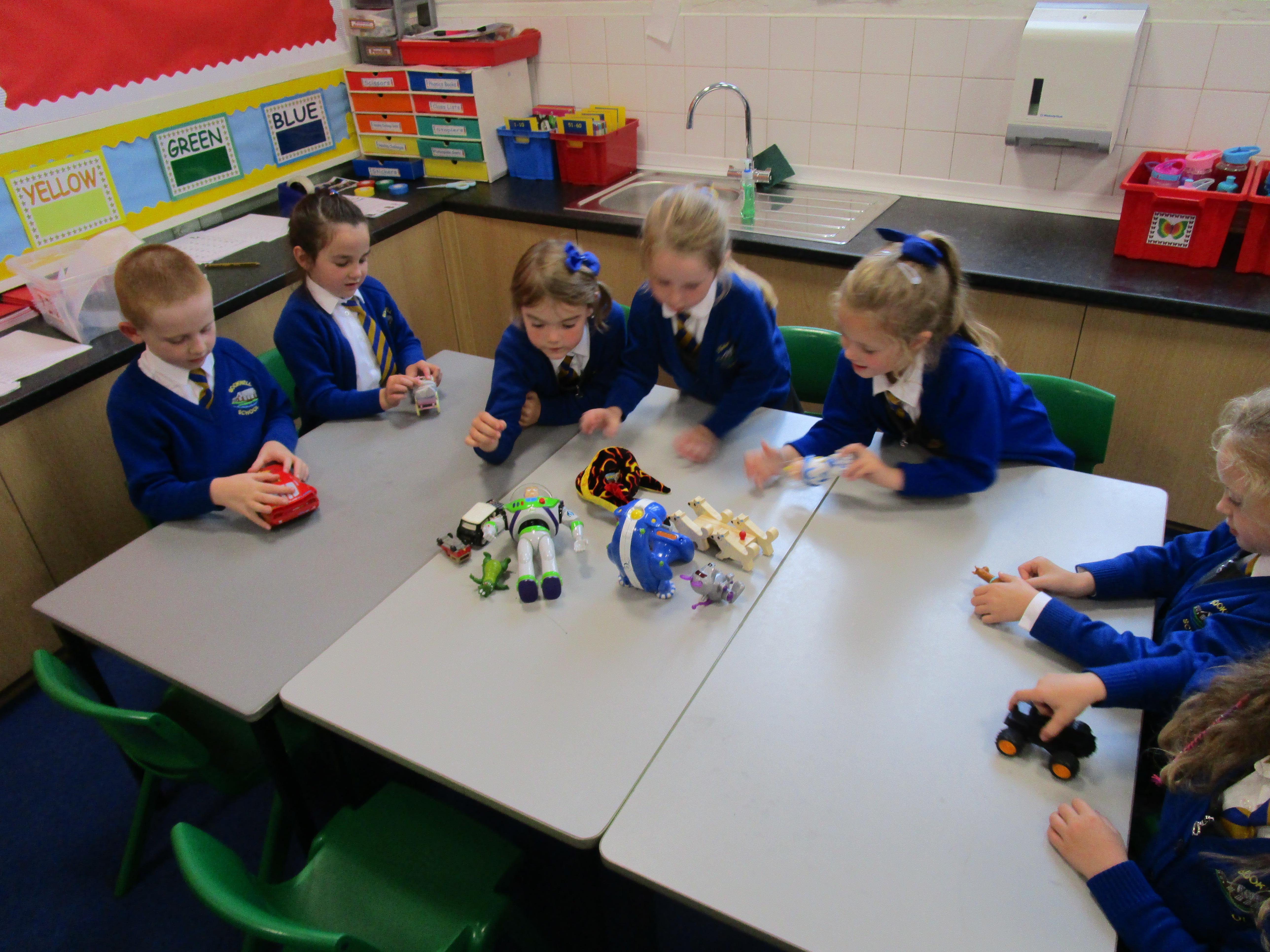 Today in class we started our 'Toys' topic. The children has a range of different toys on their table and they had to work together to answer a range of questions. Each group had a different toy on their table and they had to try and work out: what their toy was made from, how it worked, what it can do, how they could play with it and how it works. The children then had to write about their favourite toy, explaining what it can do and what it is made from.