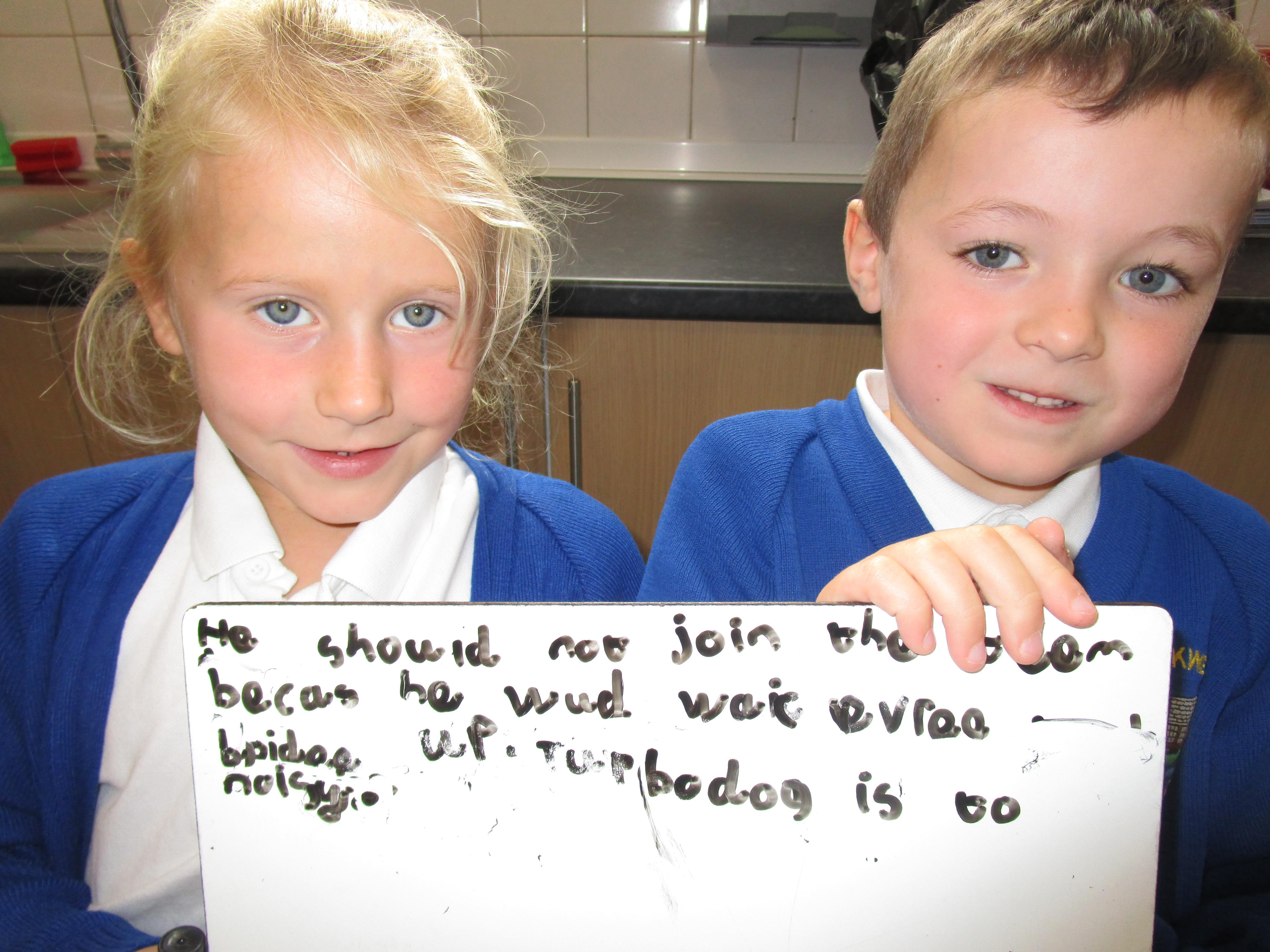We started reading 'Traction Man meets Turbodog' in class today. The children met a new character in the book called Turbodog and had to help Traction Man decide whether or not he should let Turbodog join his team. In the end it was decided that he shouldn't join the team because he always ruins Traction Man's missions.