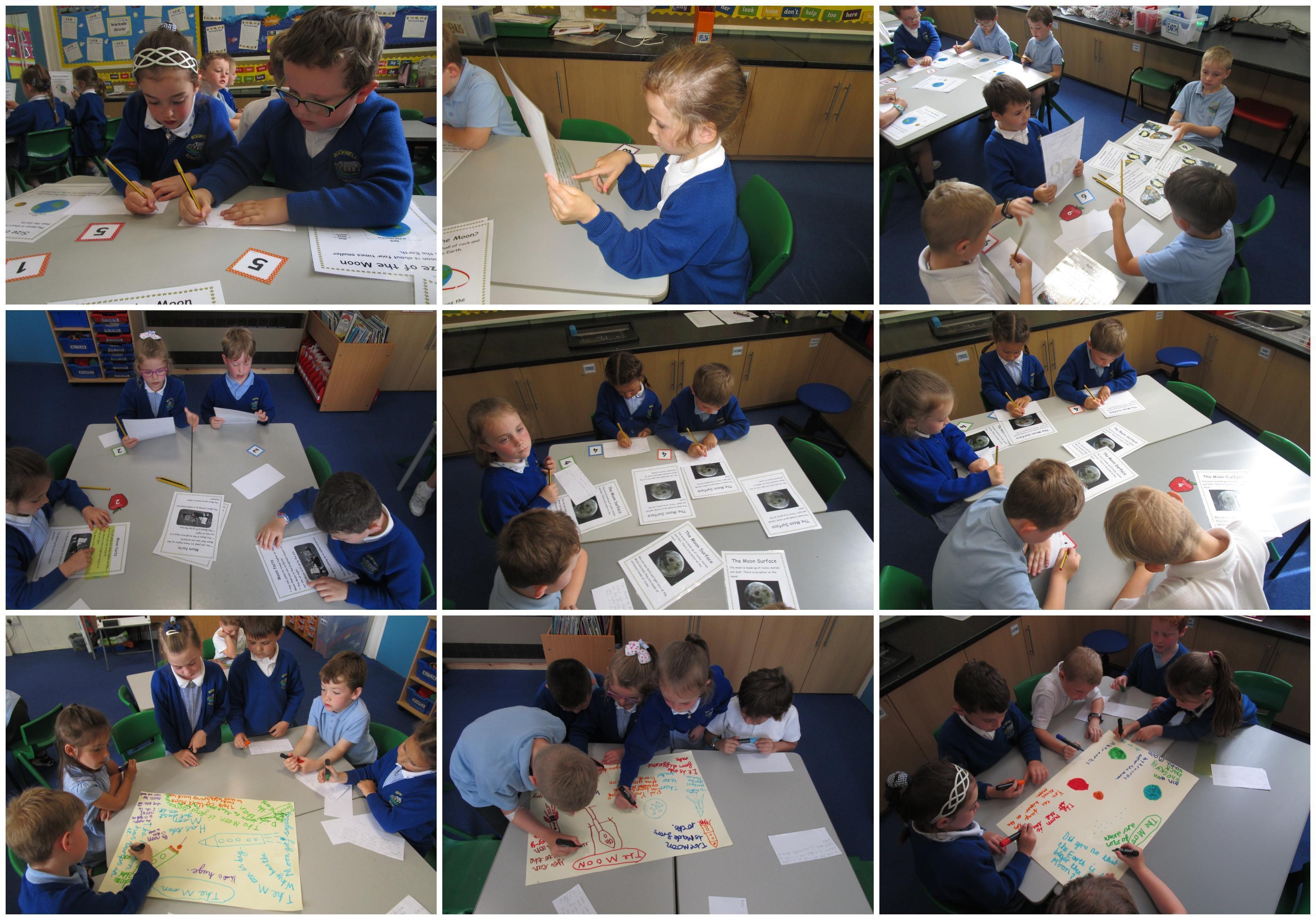 Today the children have been doing a jigsaw activity to learn new facts about the Moon. First they had to research the facts on research tables and then when they returned to their home table they had to share what they had learned with others in their group. Then the children had to design a poster sharing what they had learnt and they had to present their poster to the rest of the class.