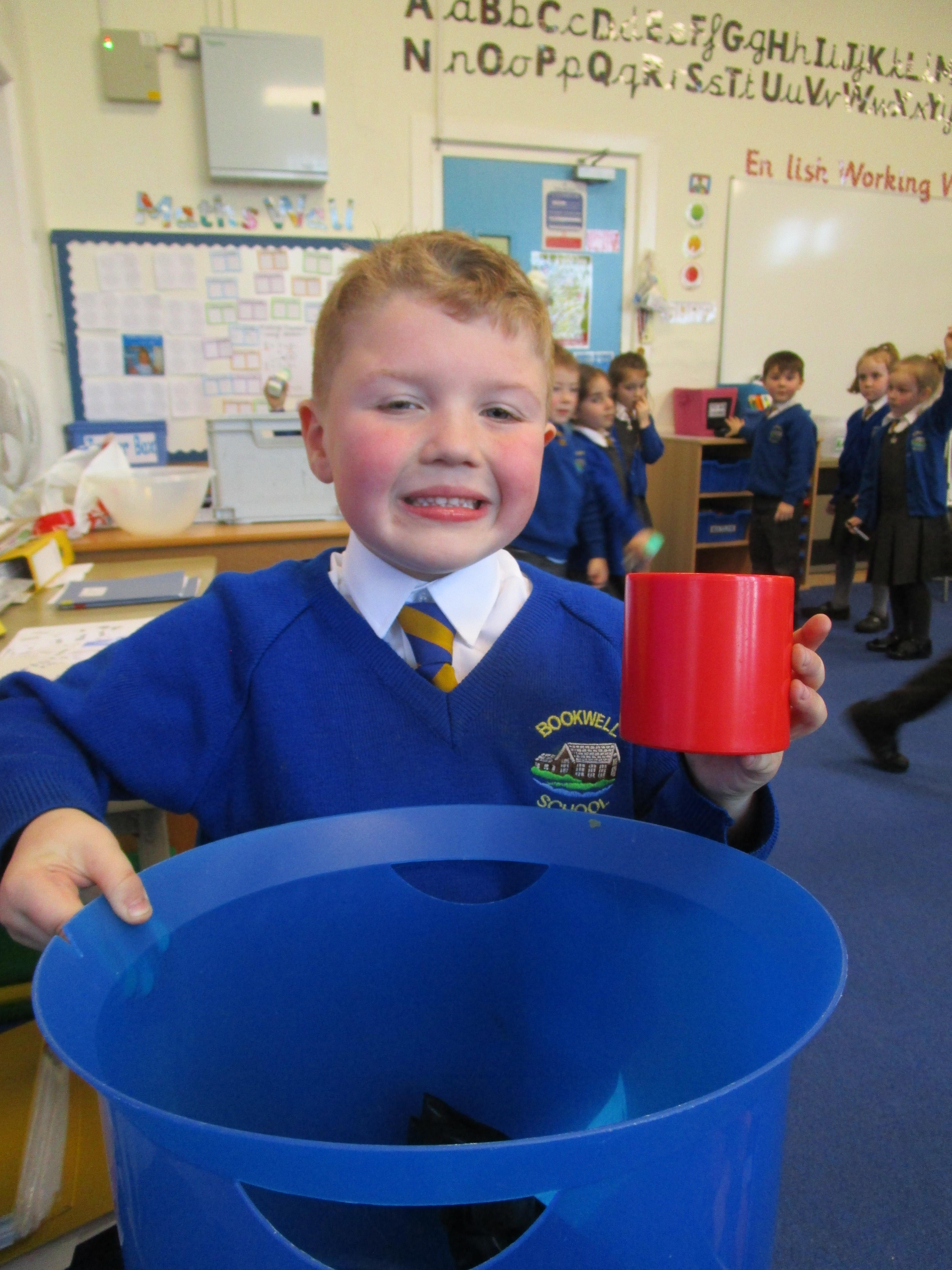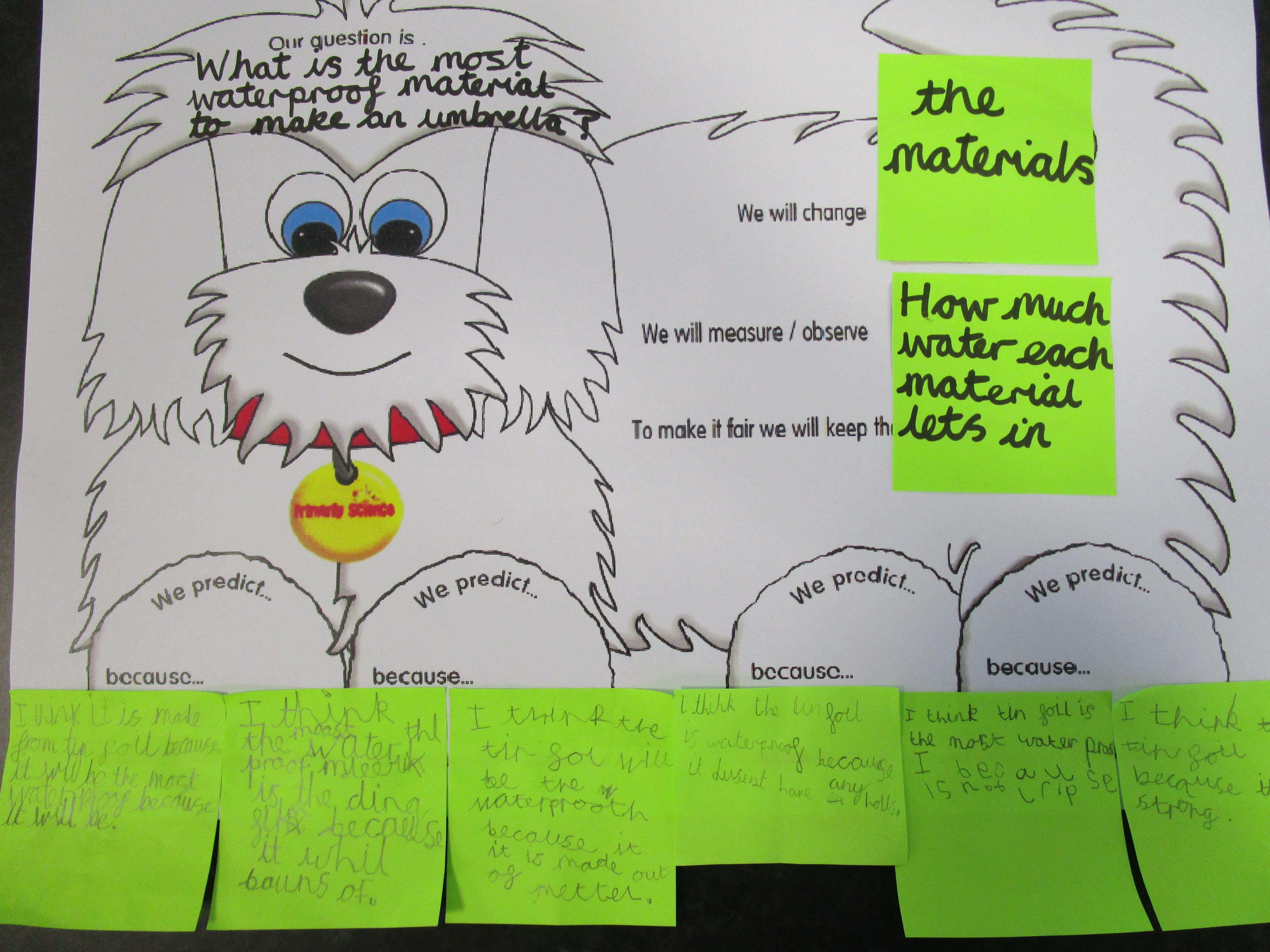 Today the children have been investigating which material would be the most suitable to make an umbrella. The two most waterproof materials were plastic and tinfoil but the children decided that plastic would be more suitable as it does not tear as easily as tinfoil. First we made our predictions...